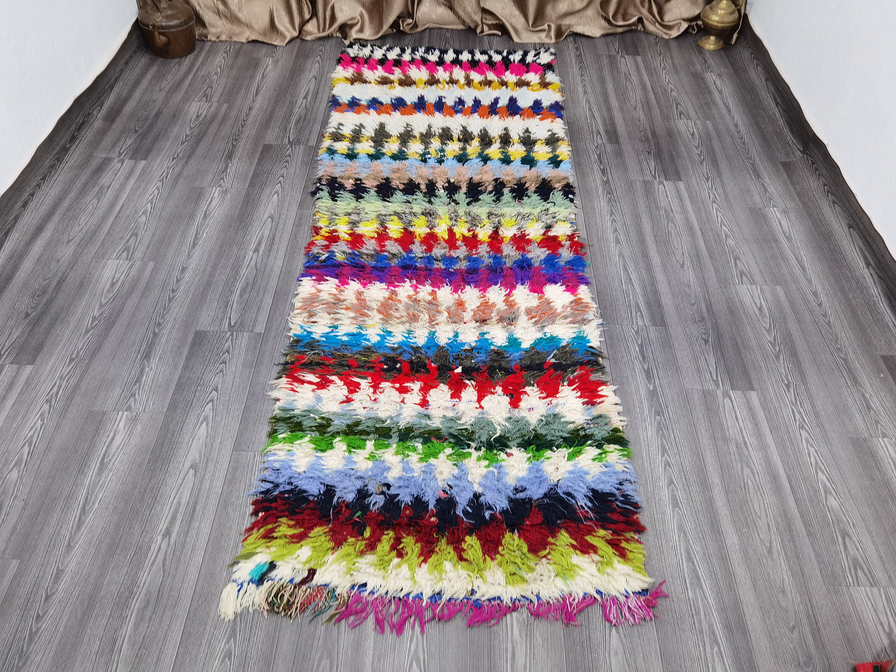 Azilal Runner Rug , handmade moroccan carpet , natural handknit rug , berber runner . berber vintage rugs ,colorful area rug , Unique woven
