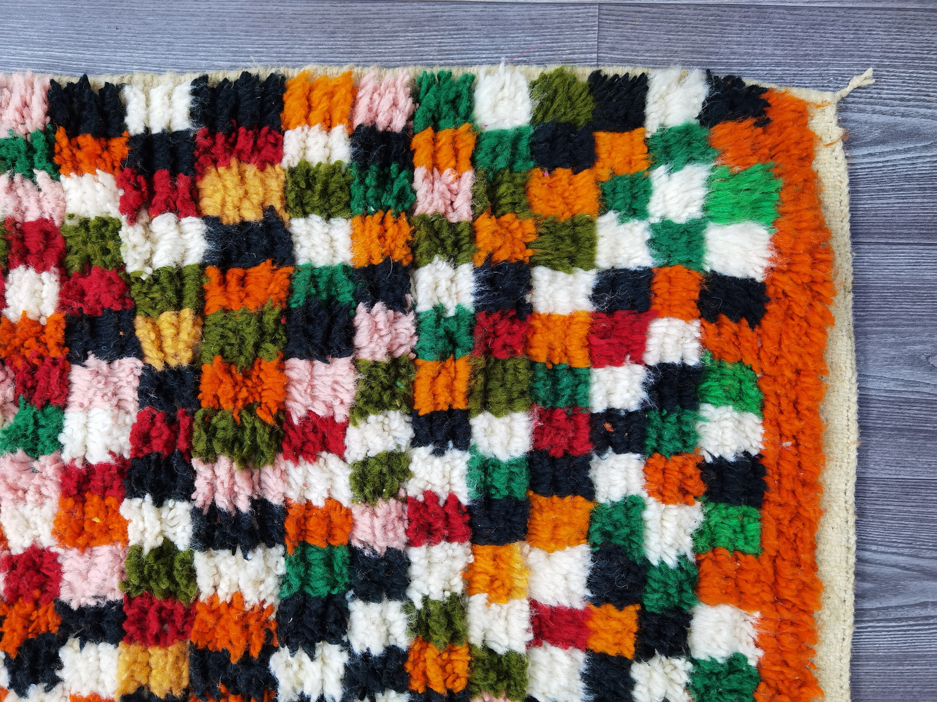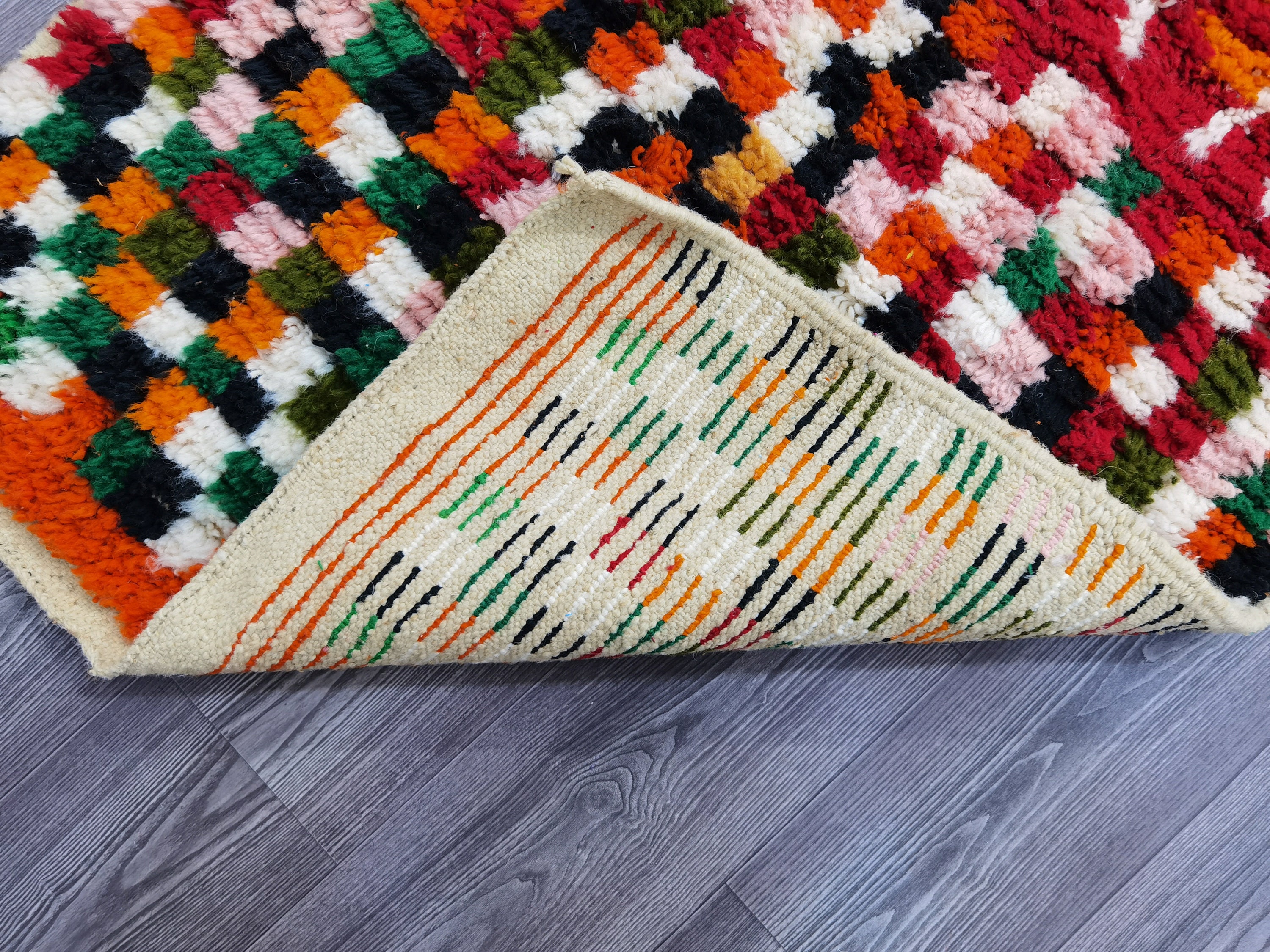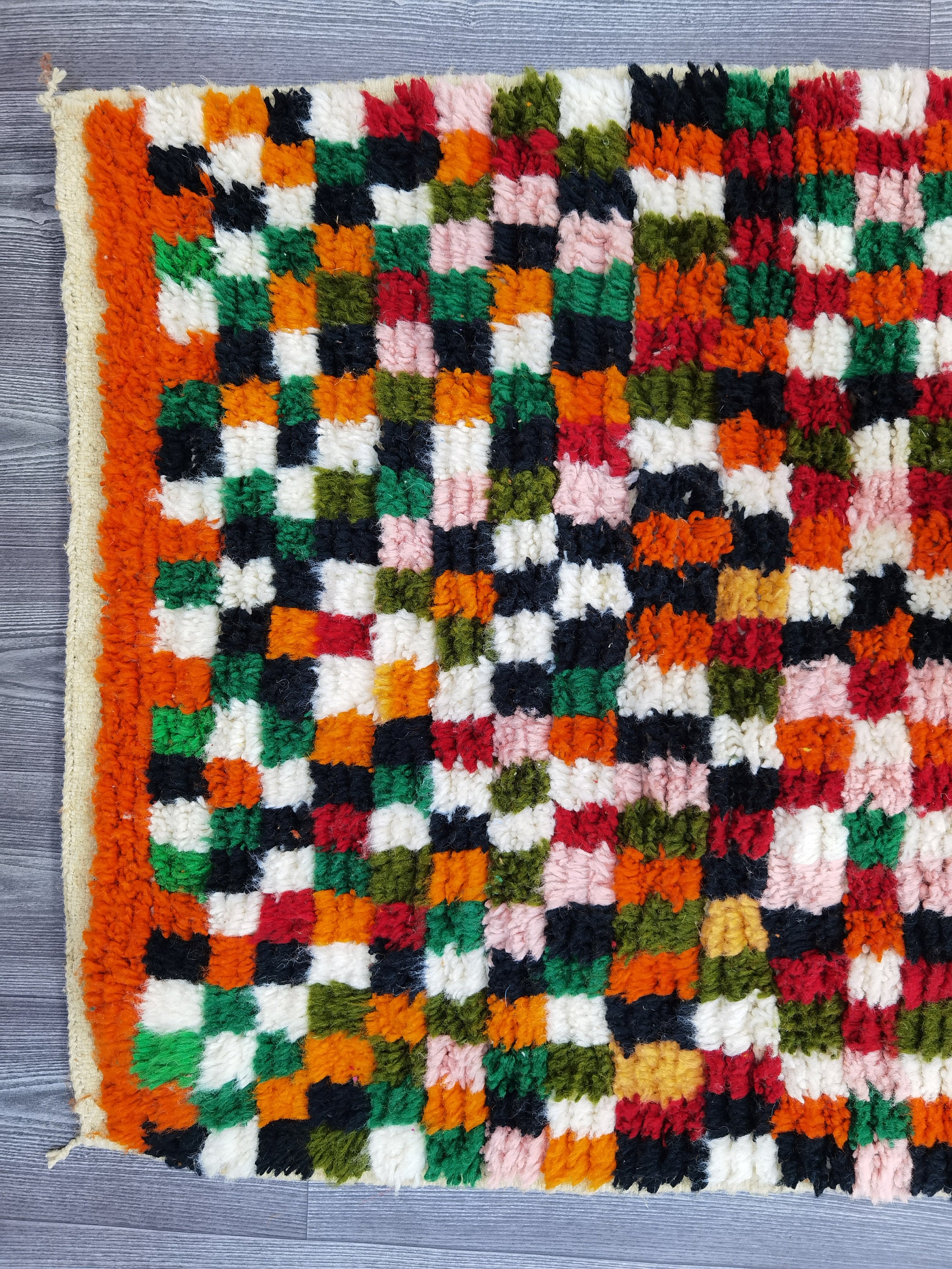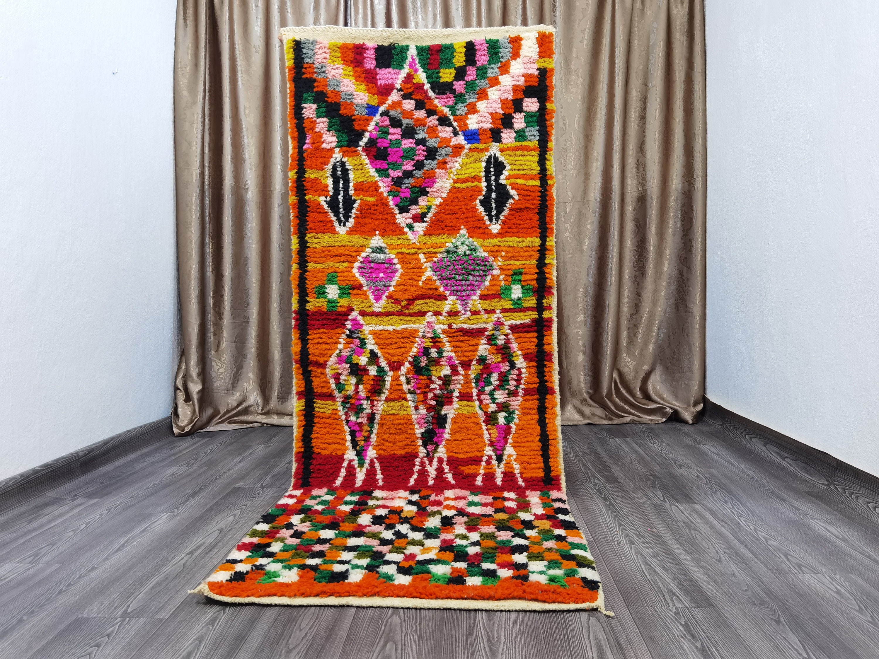 This unique Handwoven Moroccan Boujaad wool rug is one of a kind. A unique rare artistic handmade art, a beautiful combination of colors. which makes it the best choice whether for your house or your showroom. The famous Boujaad rug is now on the cover of the worldโs leading home decoration magazines. This rug with character goes perfectly with all interior styles, Bohemian, Modern, Minimalist, Scandinavian, Traditional, which makes it the best choice for your needs.