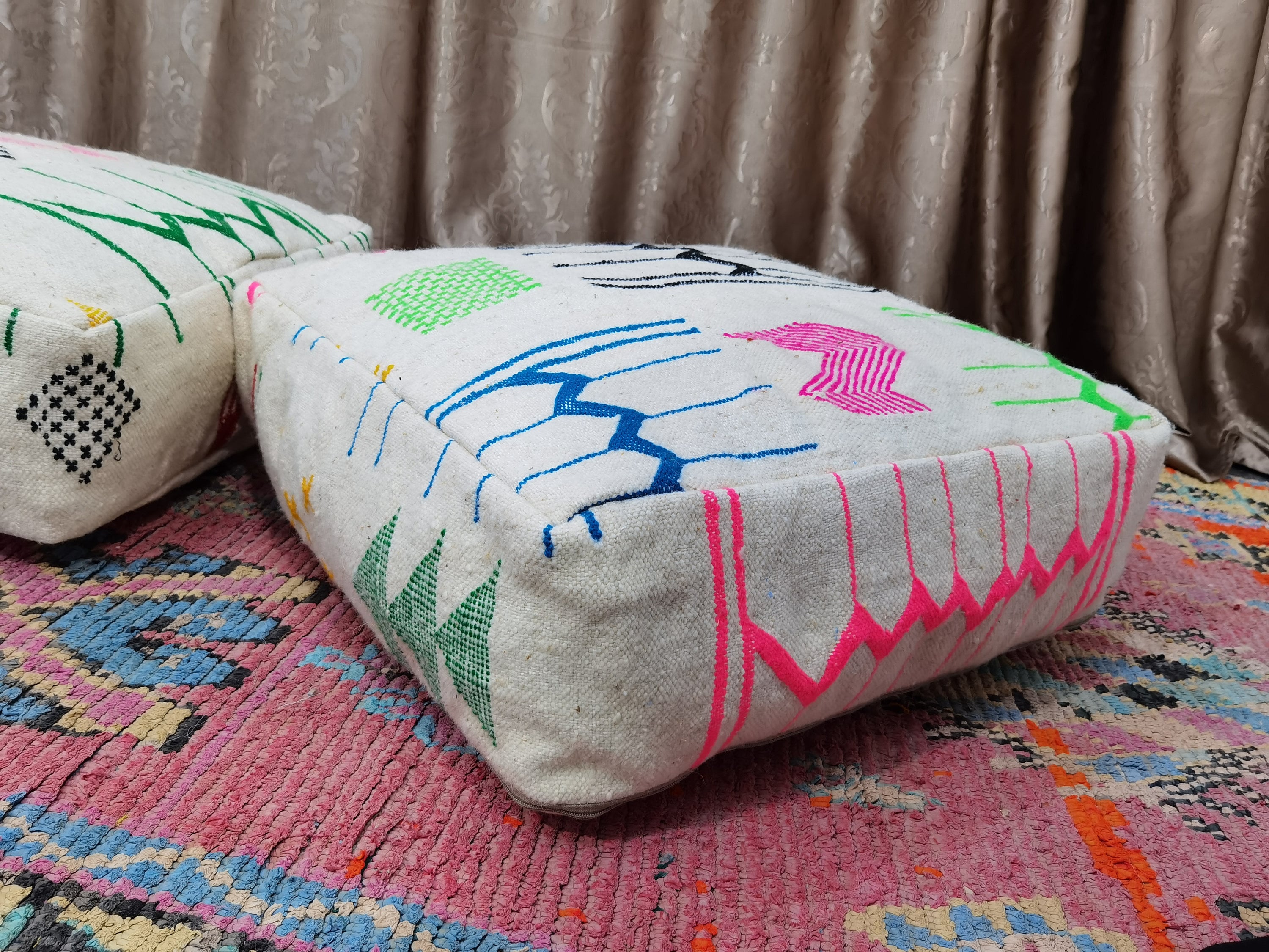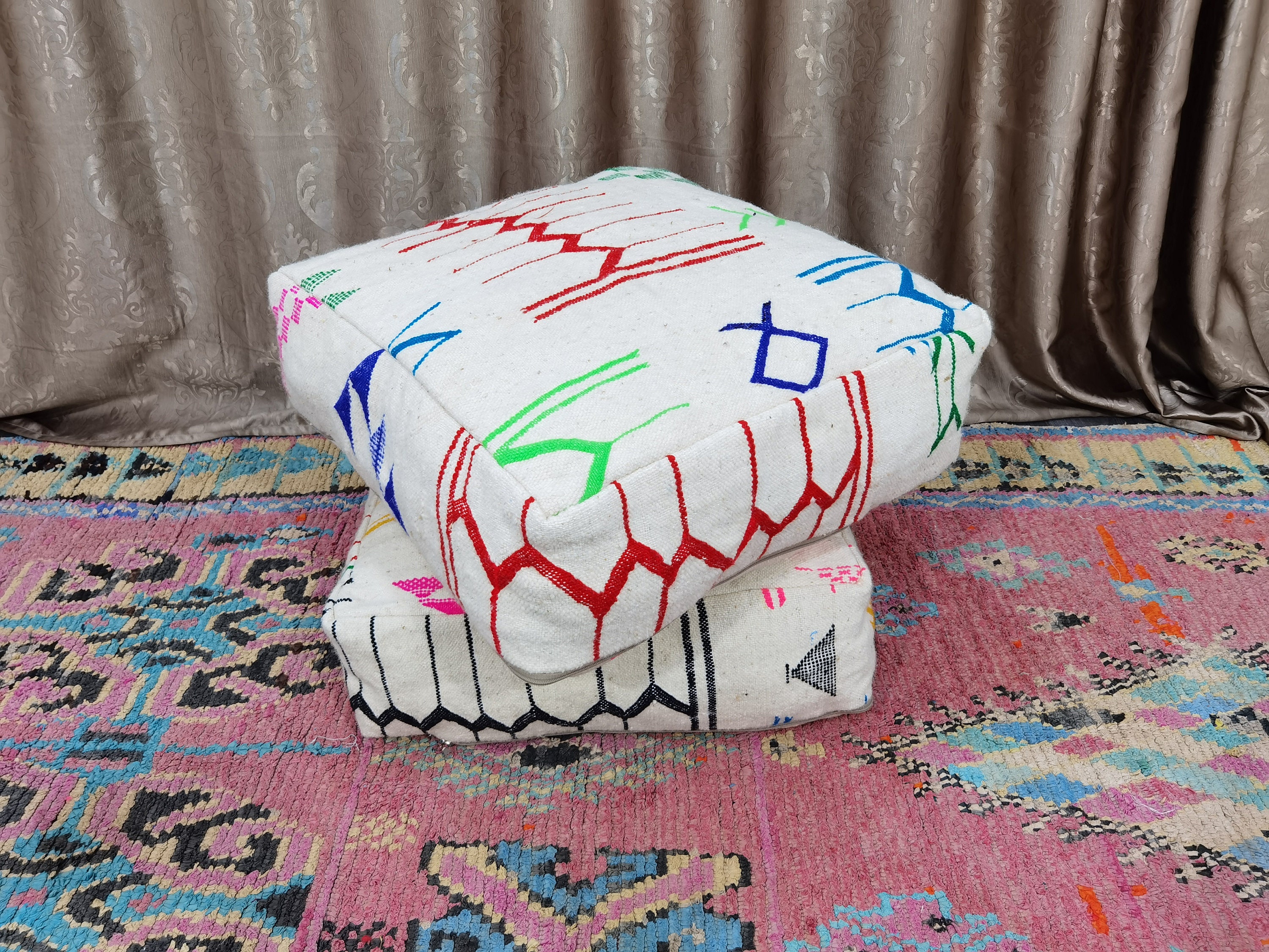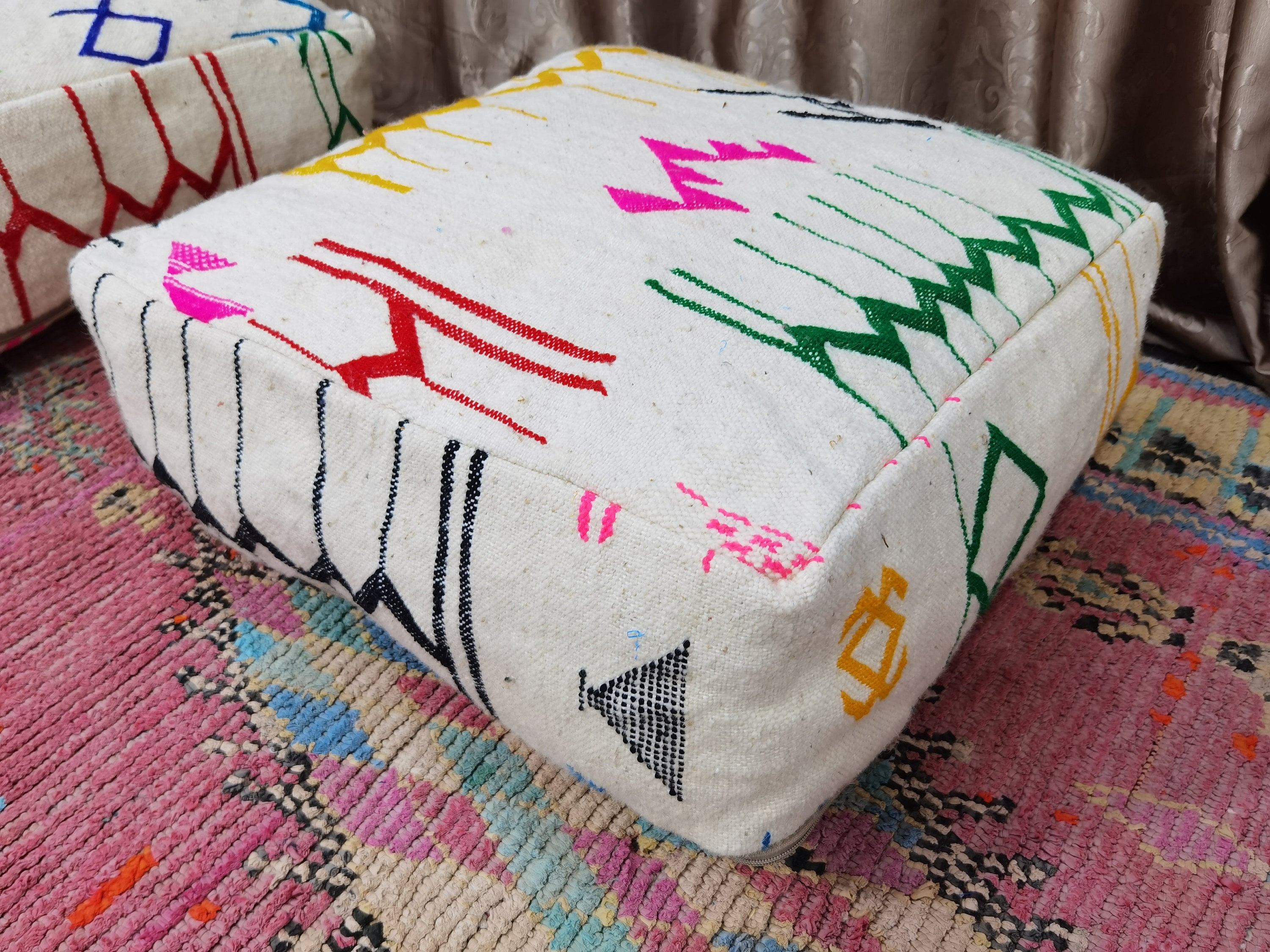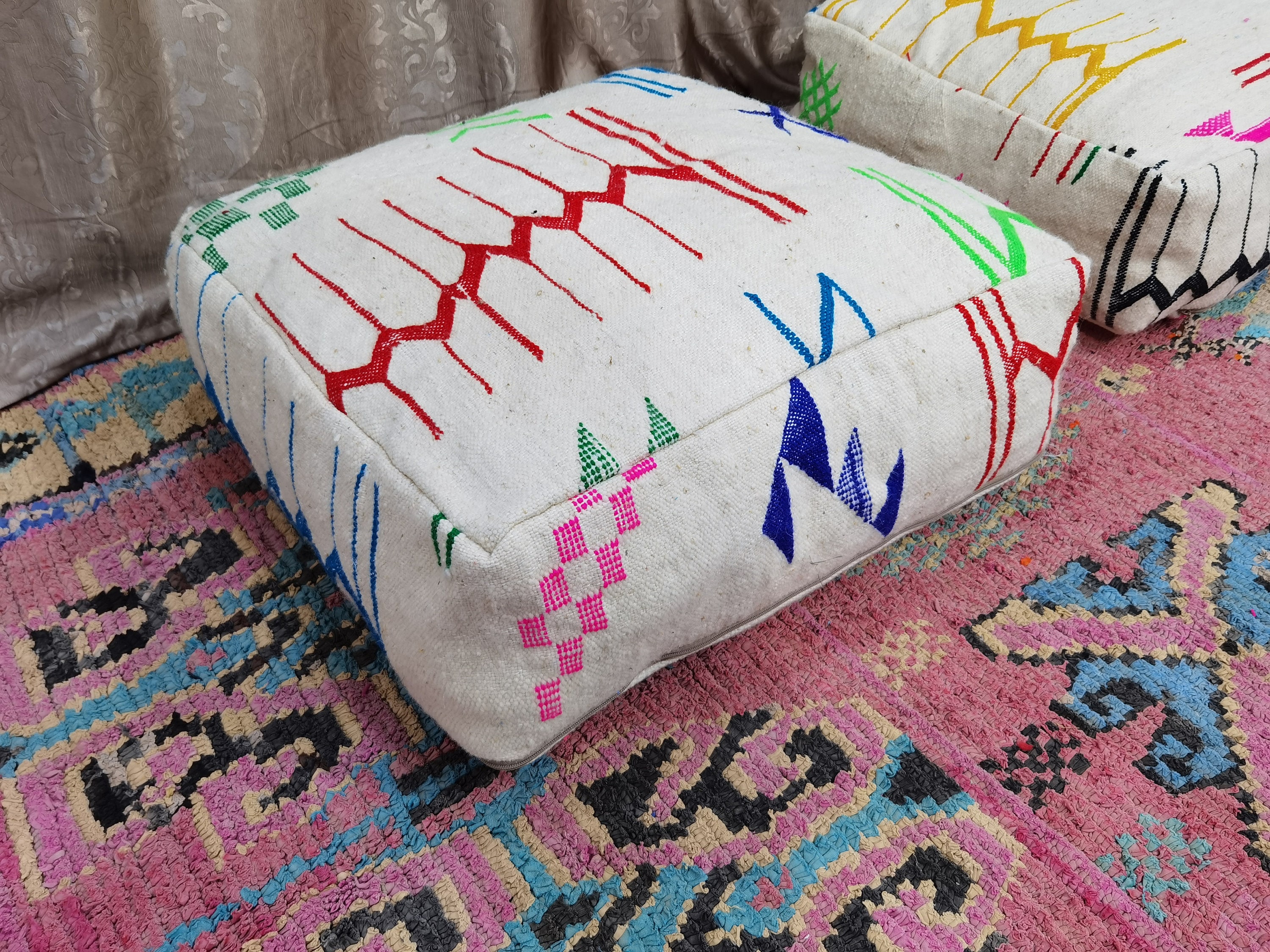 Handmade Moroccan Wool Floor Cushion: Berber Square Pouf Ottoman