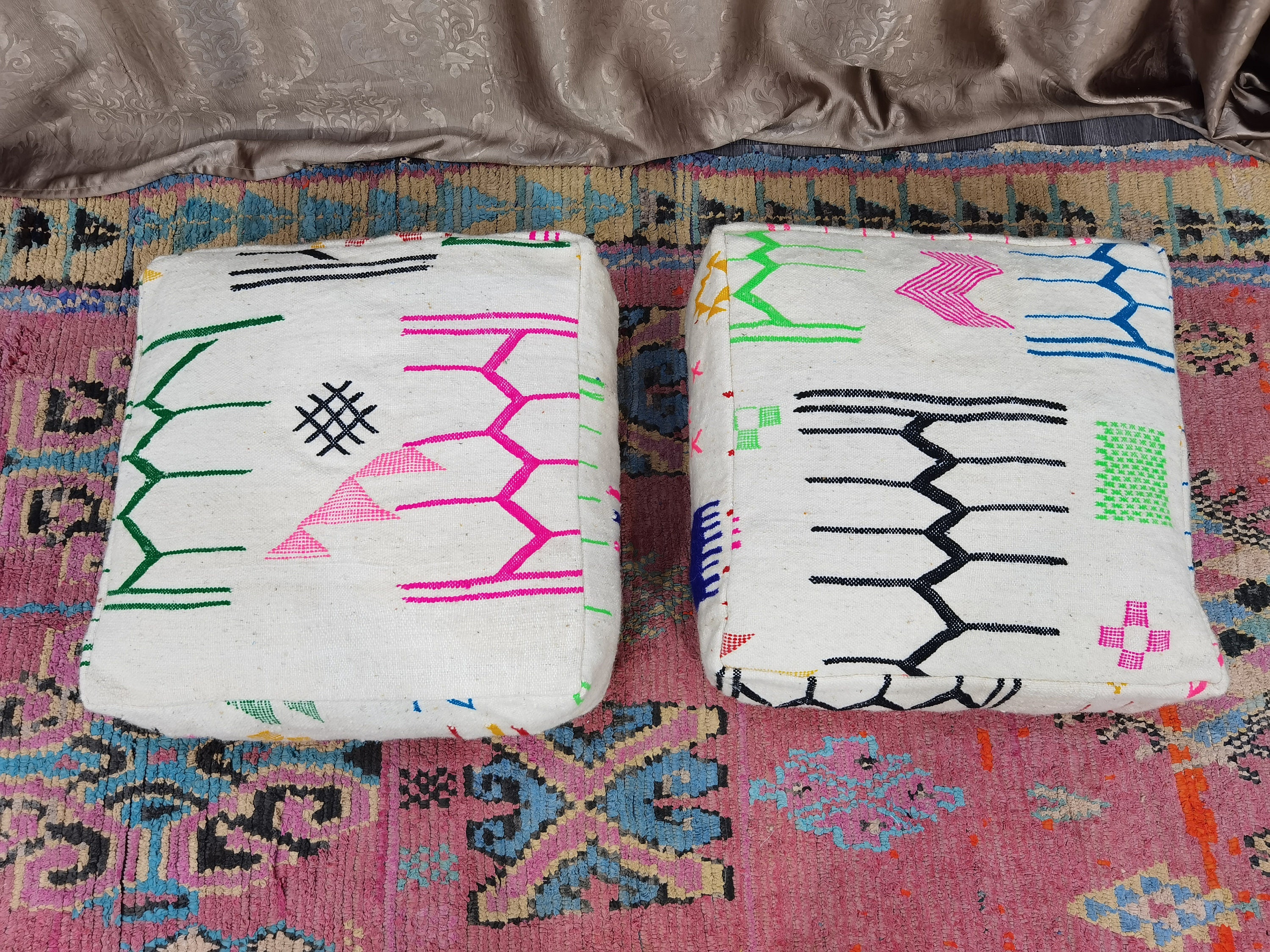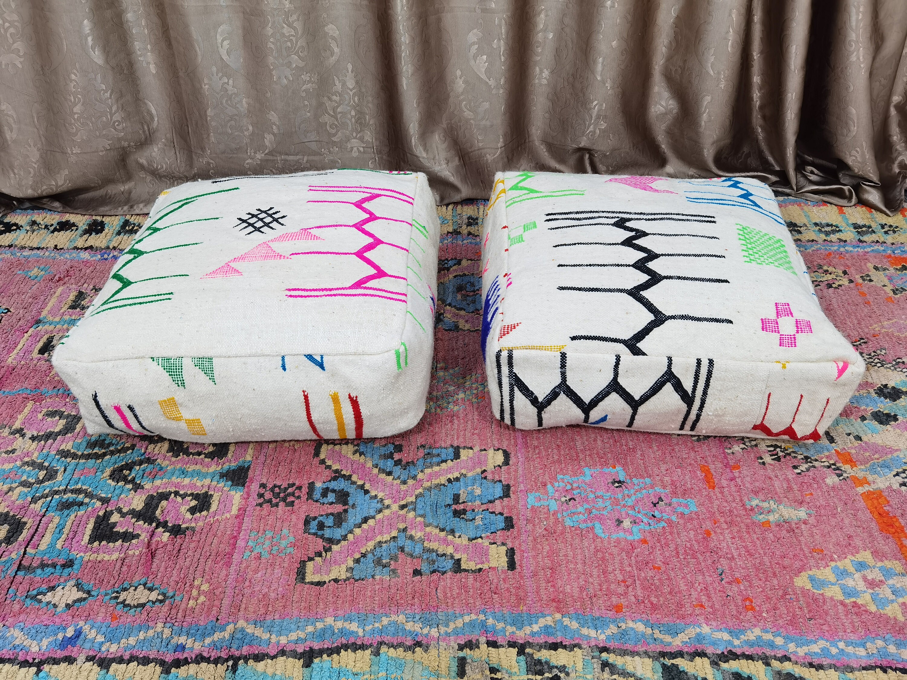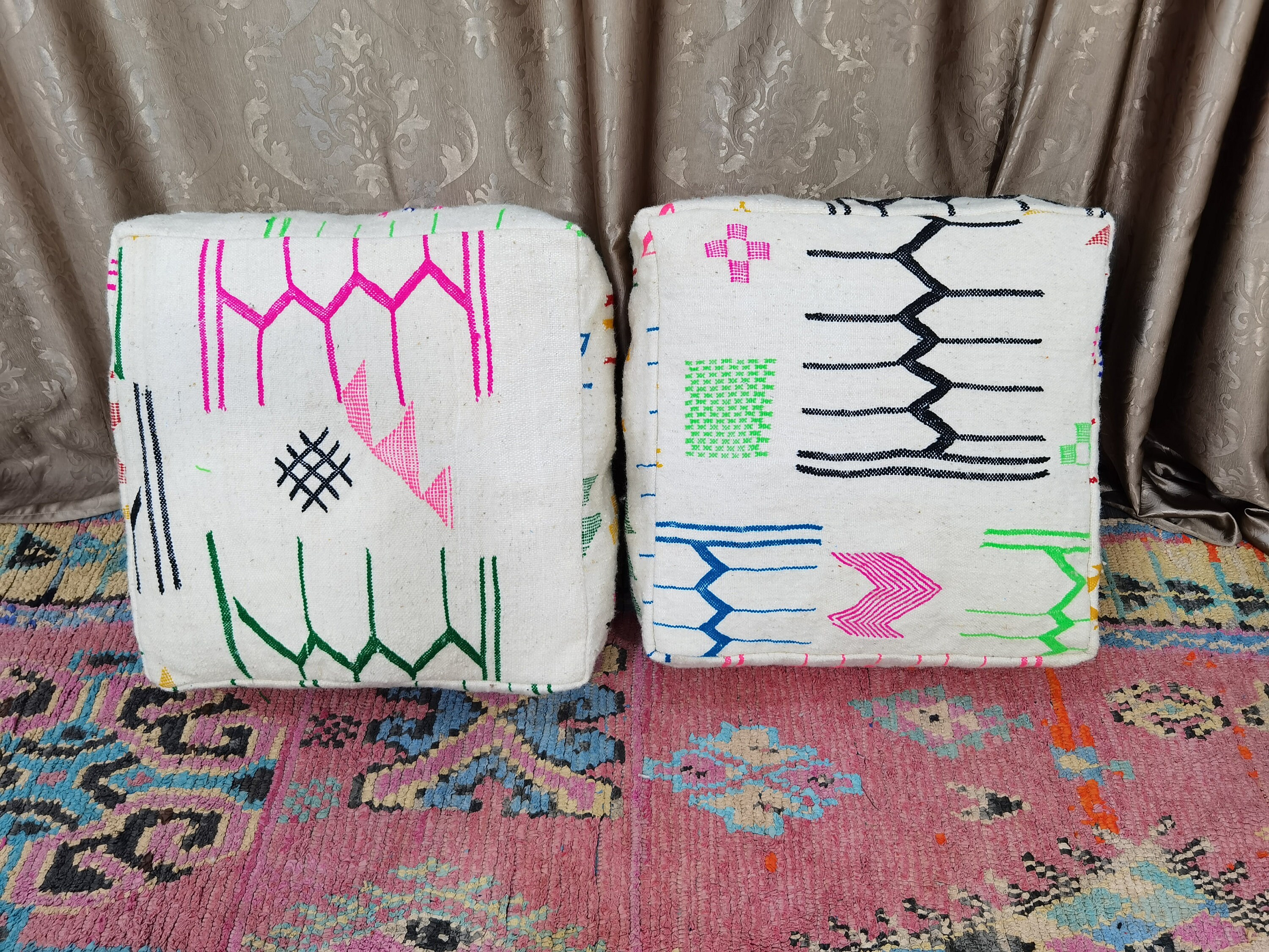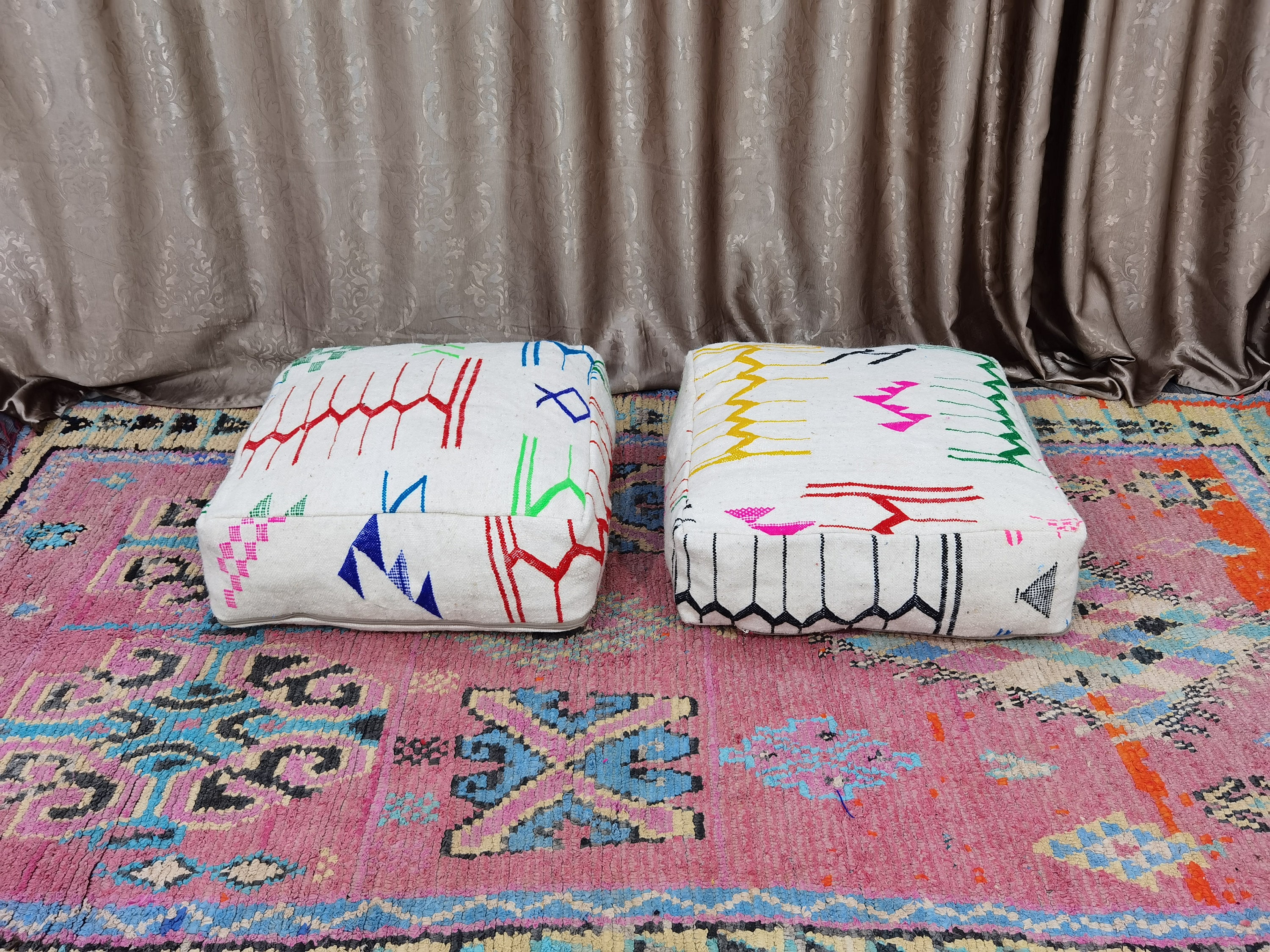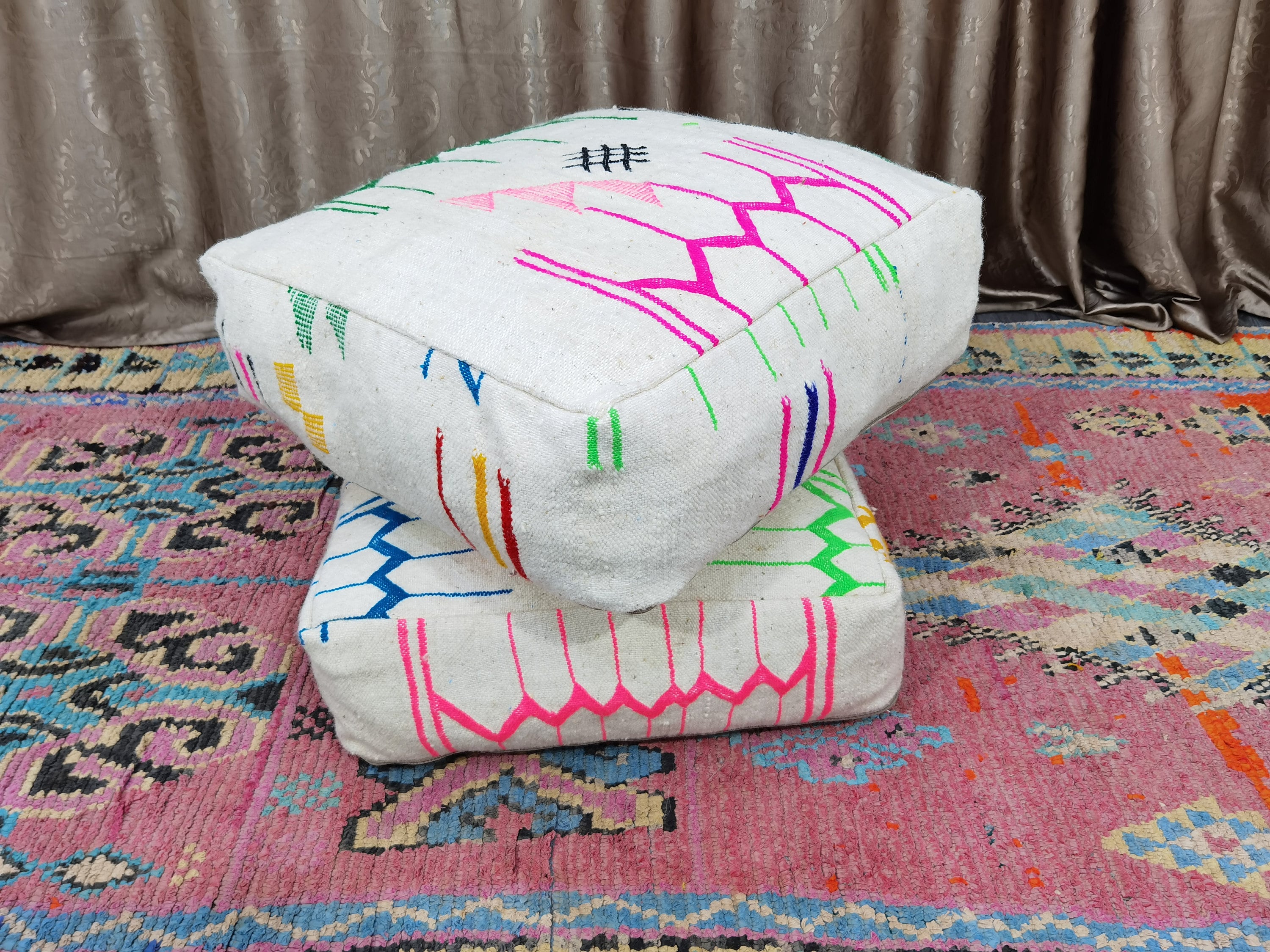 Handmade Moroccan Wool Floor Cushion: Berber Square Pouf Ottoman