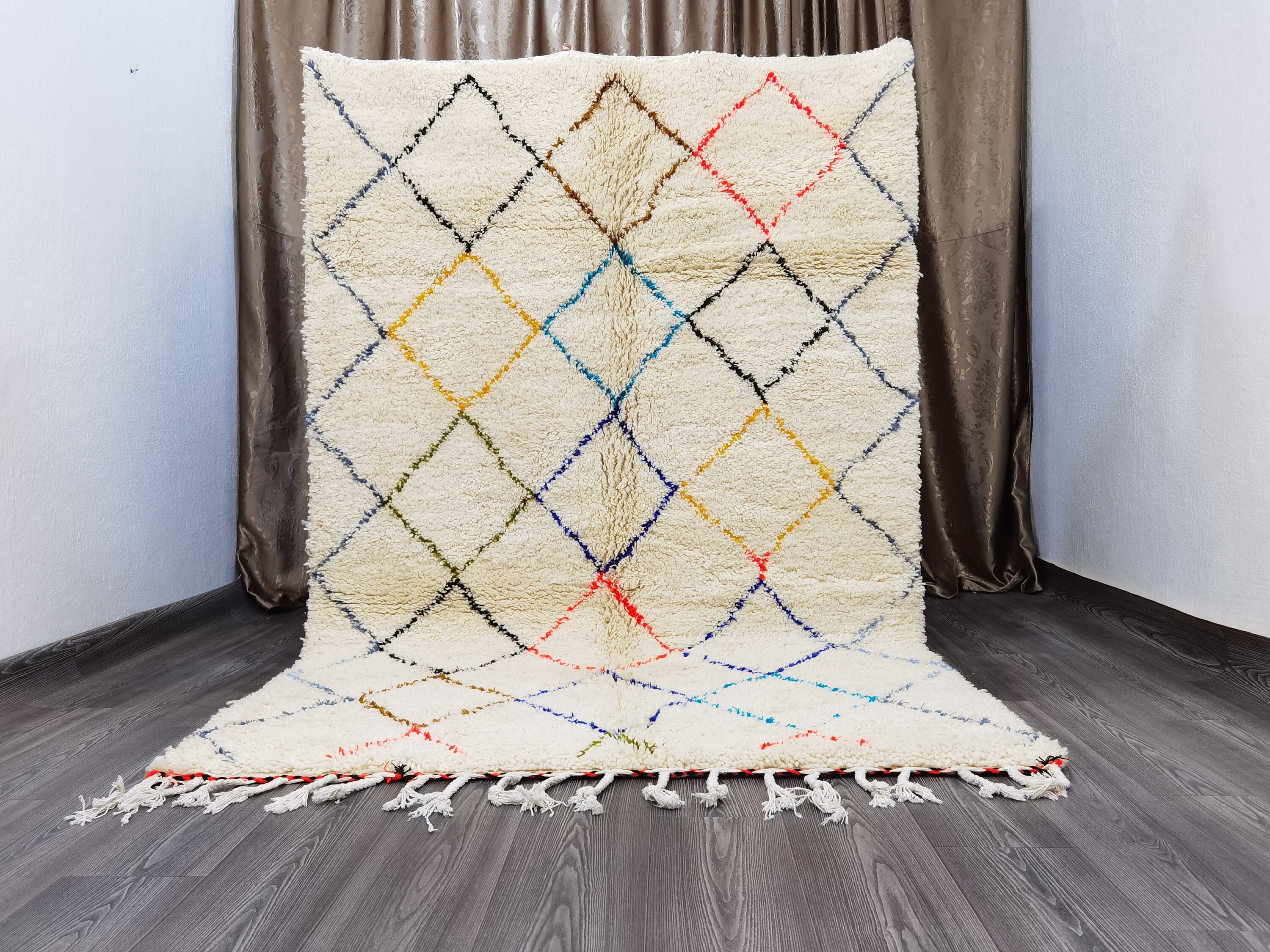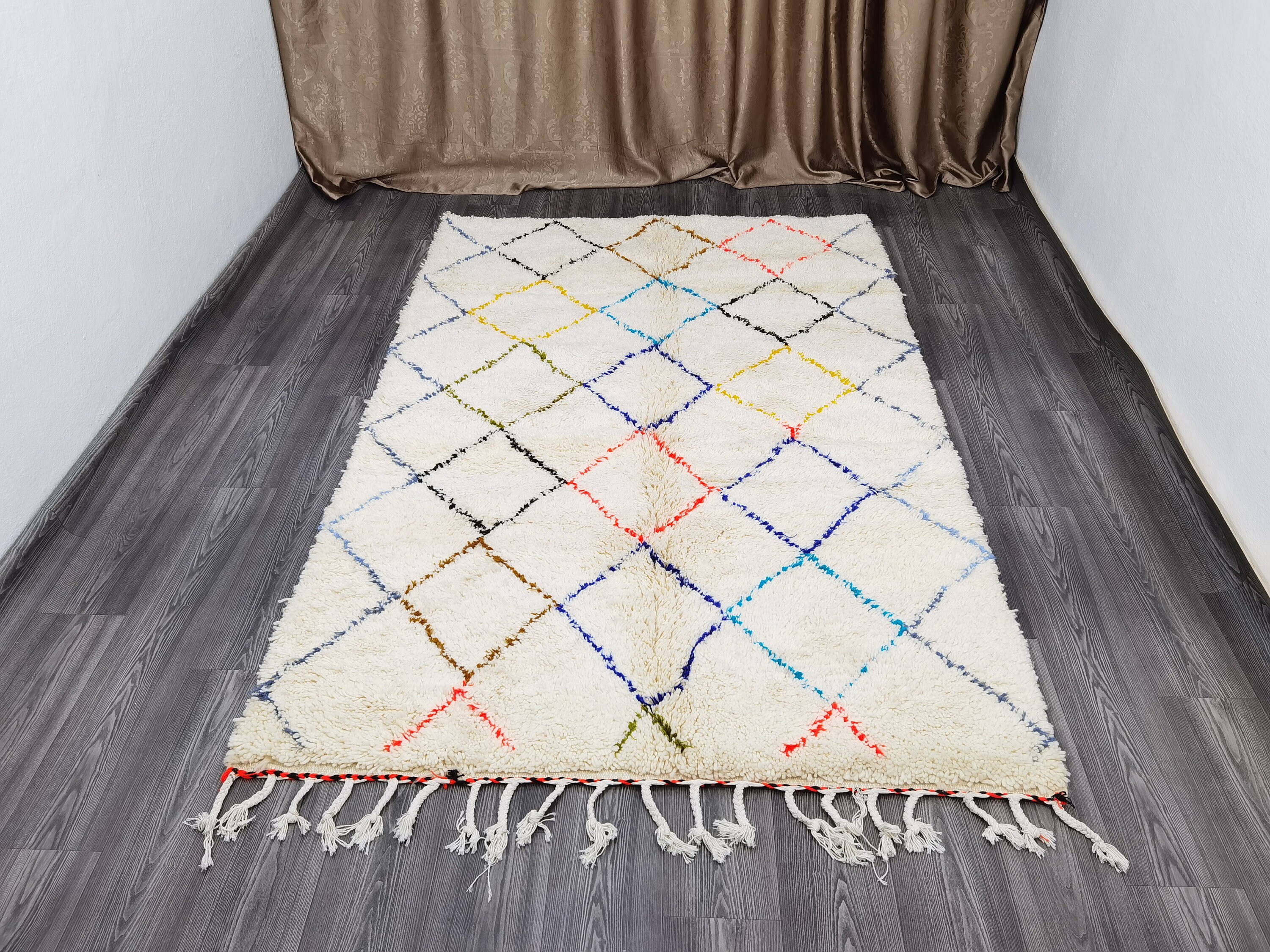Beni Ourain rugs bring a mix of authentic and luxurious design with unique patterns to your living room area. They also offer a super soft addition and full warmth as an ideal accessory to your flooring insofar as a knotted rug has become more and more special piece along with colors, symbols and tastes.