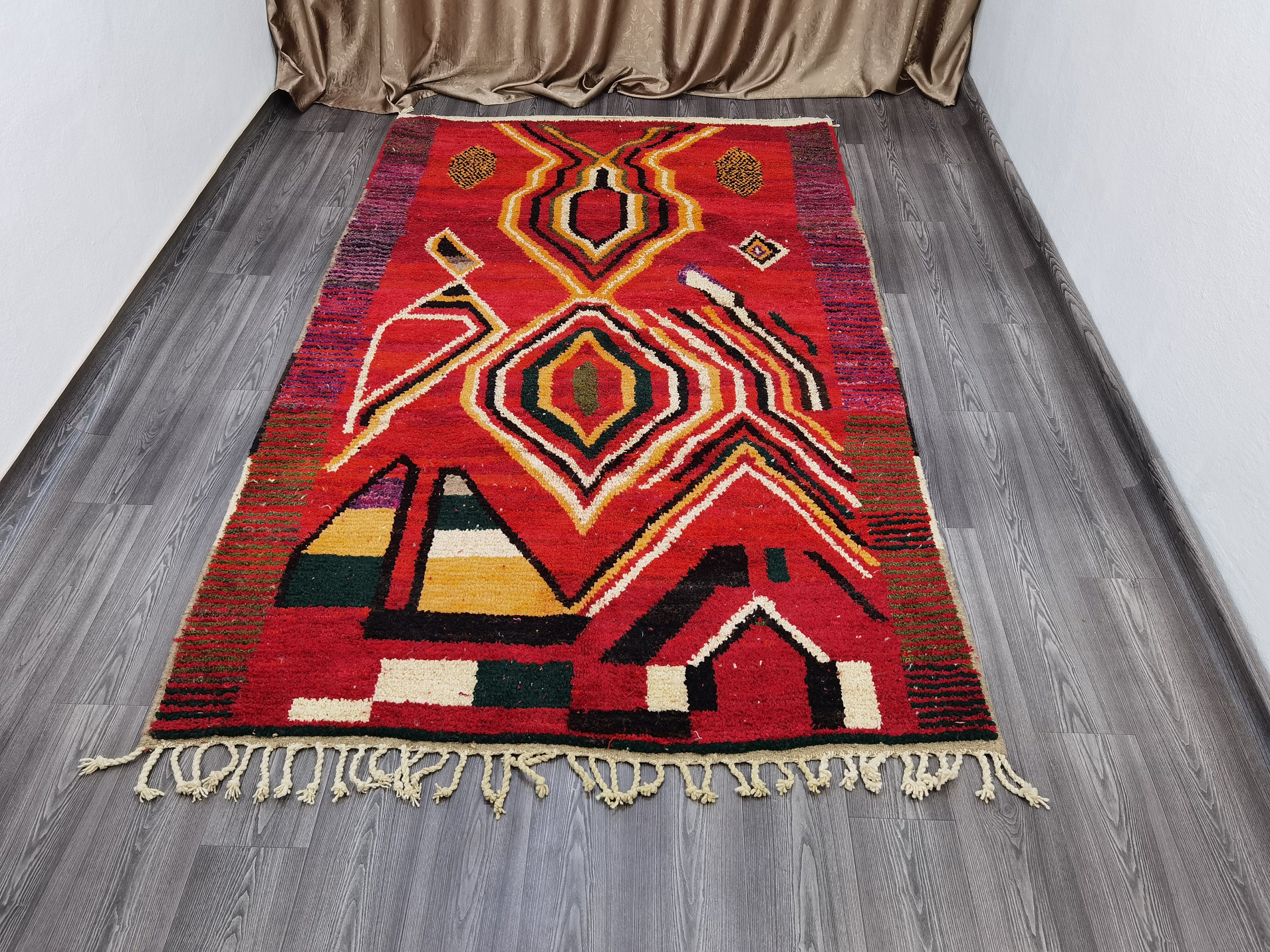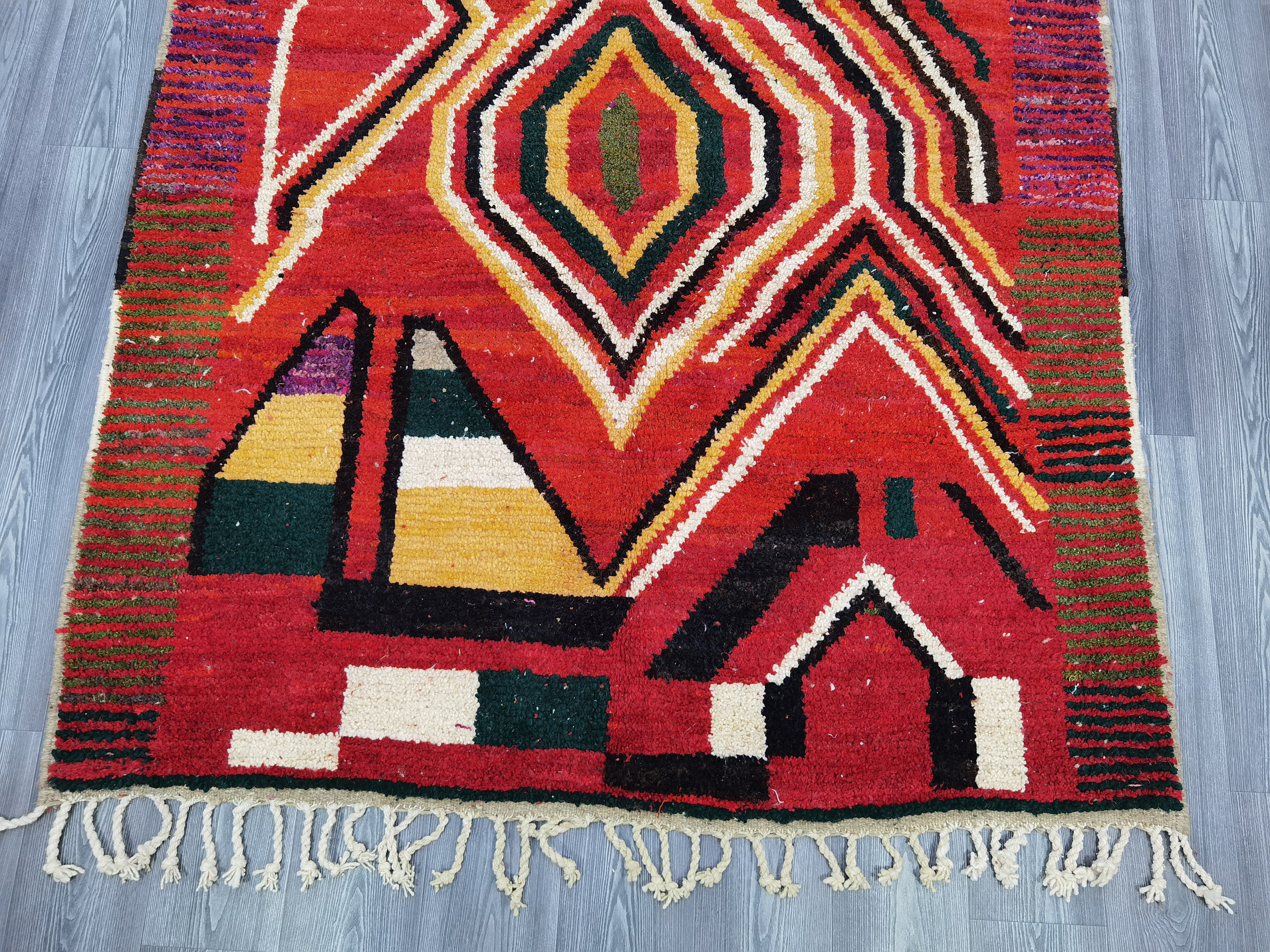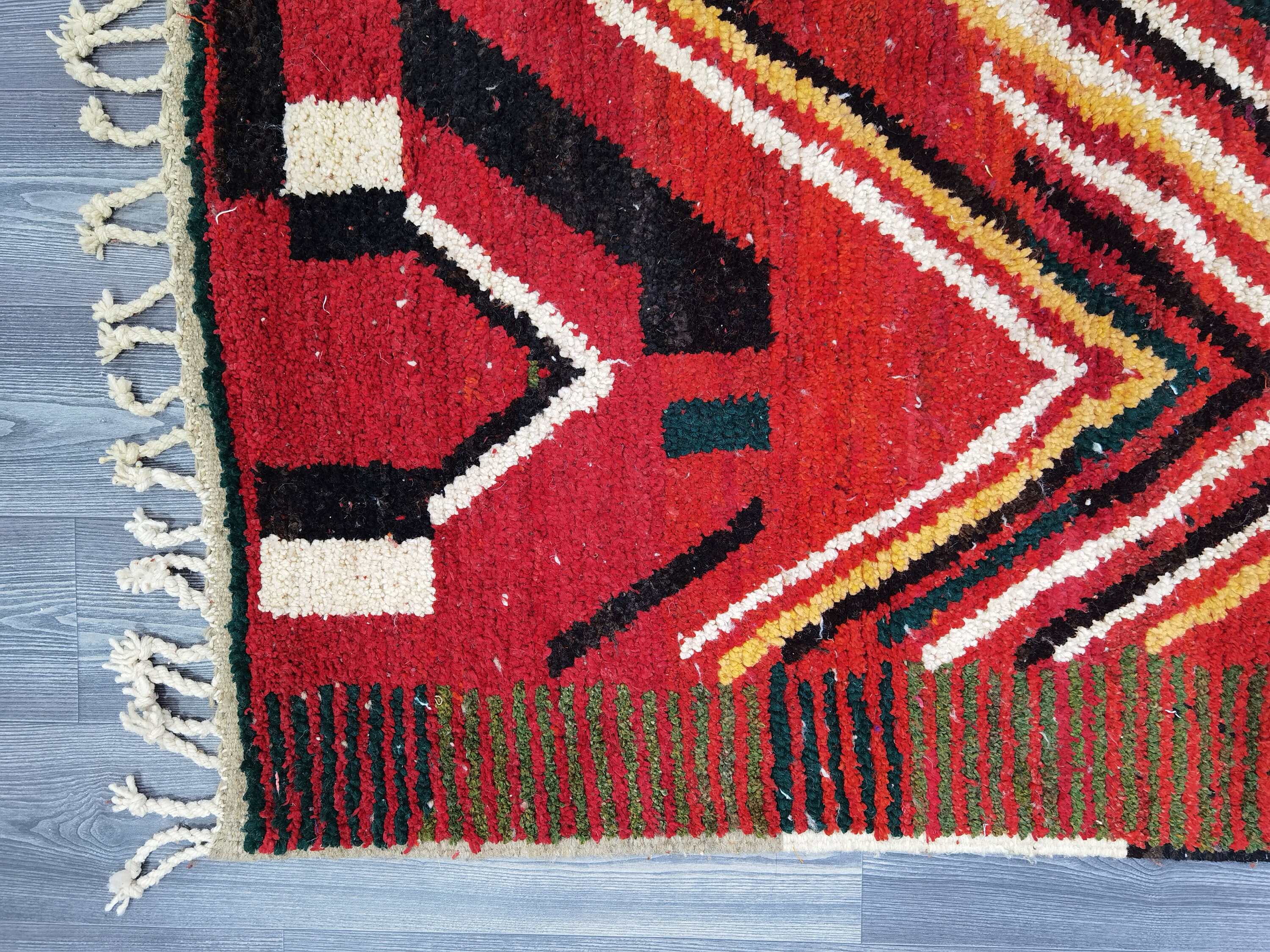 Custom Fabulous Boujaad Rug , Custom Fabulous Boujaad Rug , Hand knotted vintage moroccan rug , Abstract Red Boho Area carpet , Soft Rug