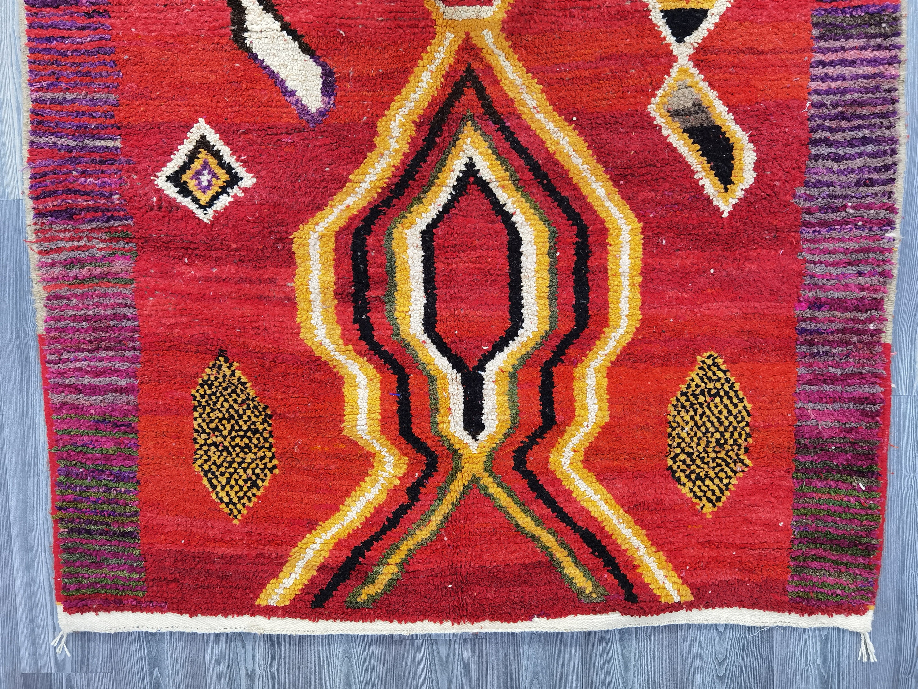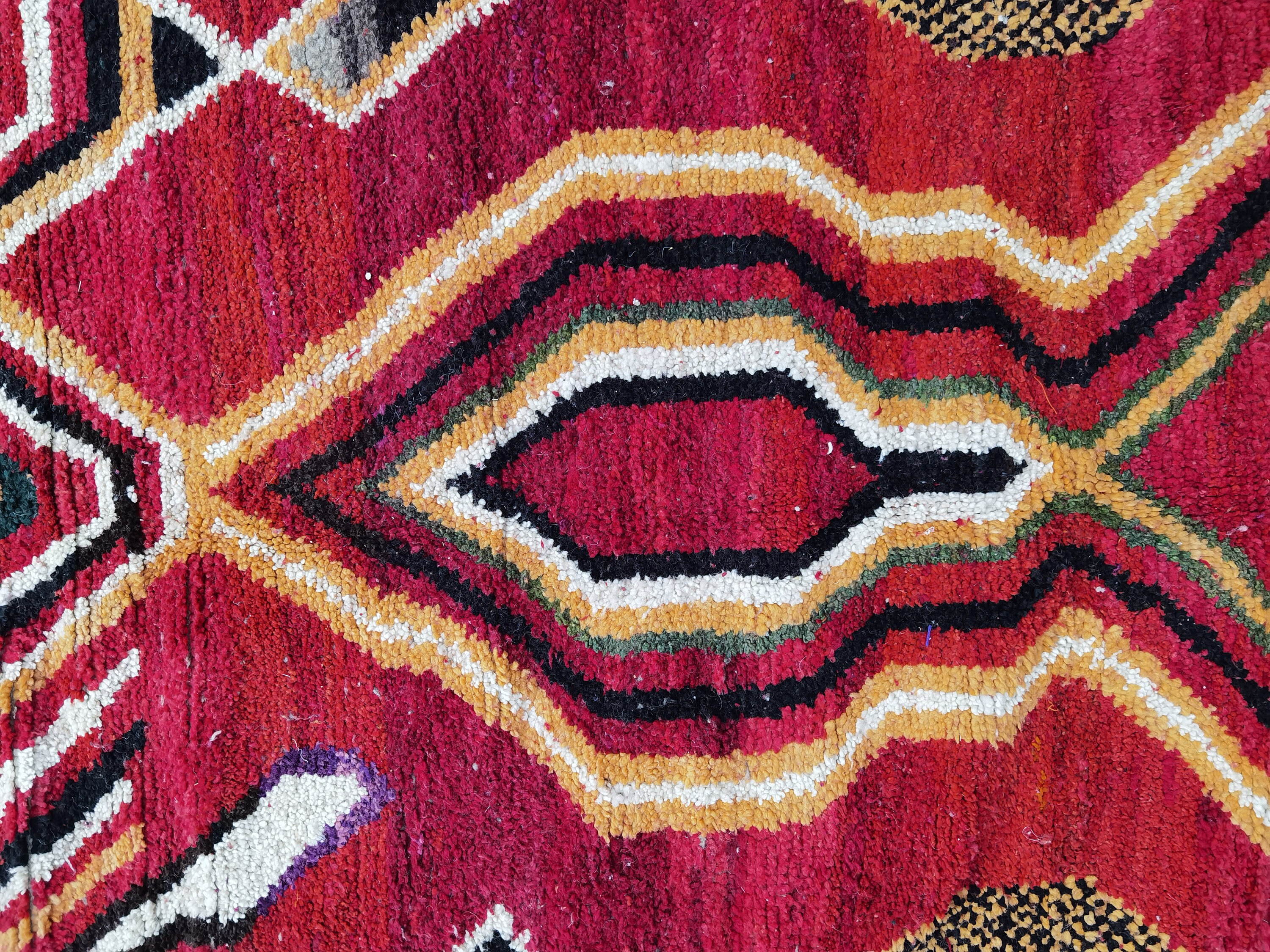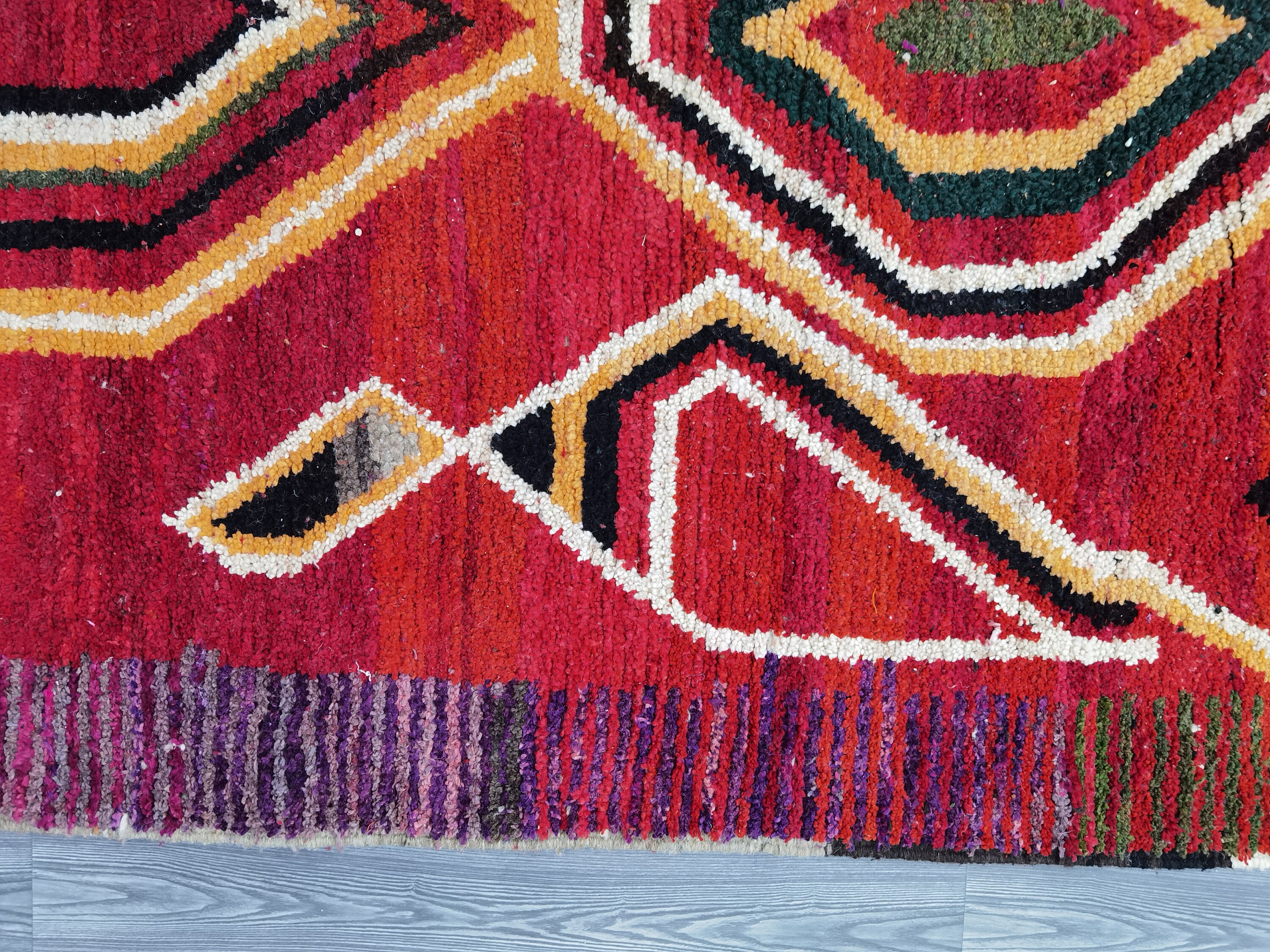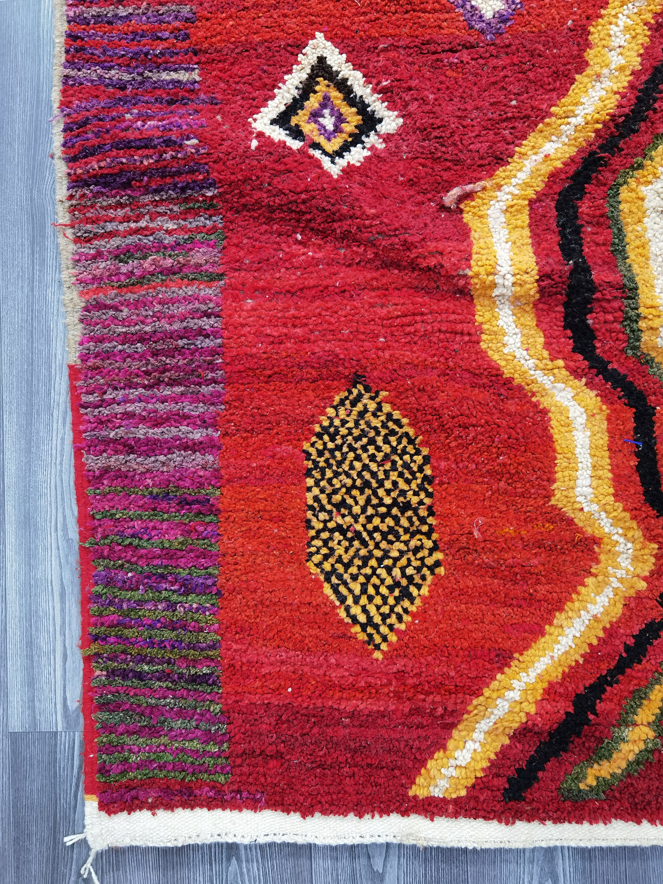 This unique Handwoven Moroccan Boujaad wool rug is one of a kind. A unique rare artistic handmade art, a beautiful combination of colors. which makes it the best choice whether for your house or your showroom. The famous Boujaad rug is now on the cover of the world’s leading home decoration magazines. This rug with character goes perfectly with all interior styles, Bohemian, Modern, Minimalist, Scandinavian, Traditional, which makes it the best choice for your needs.