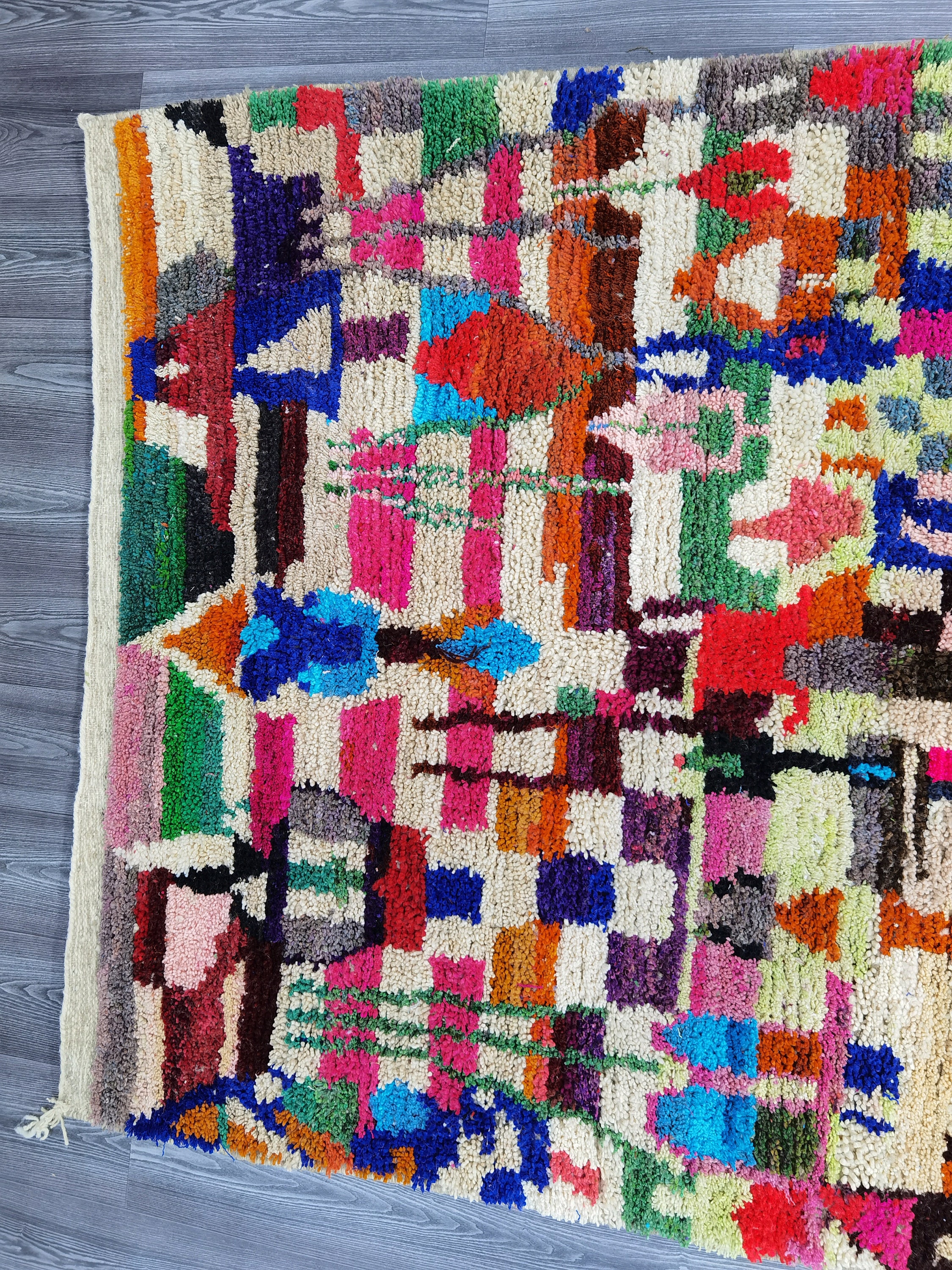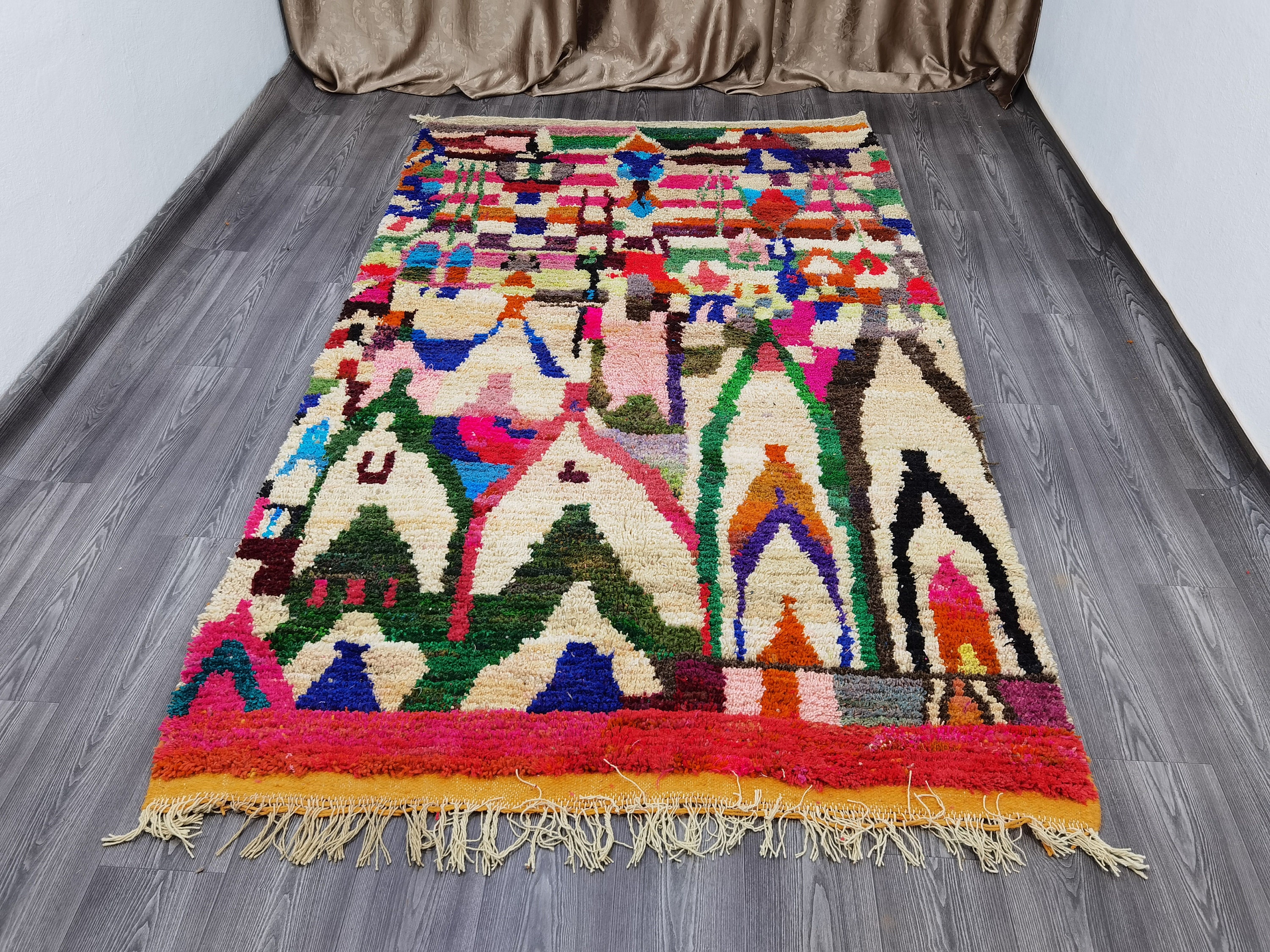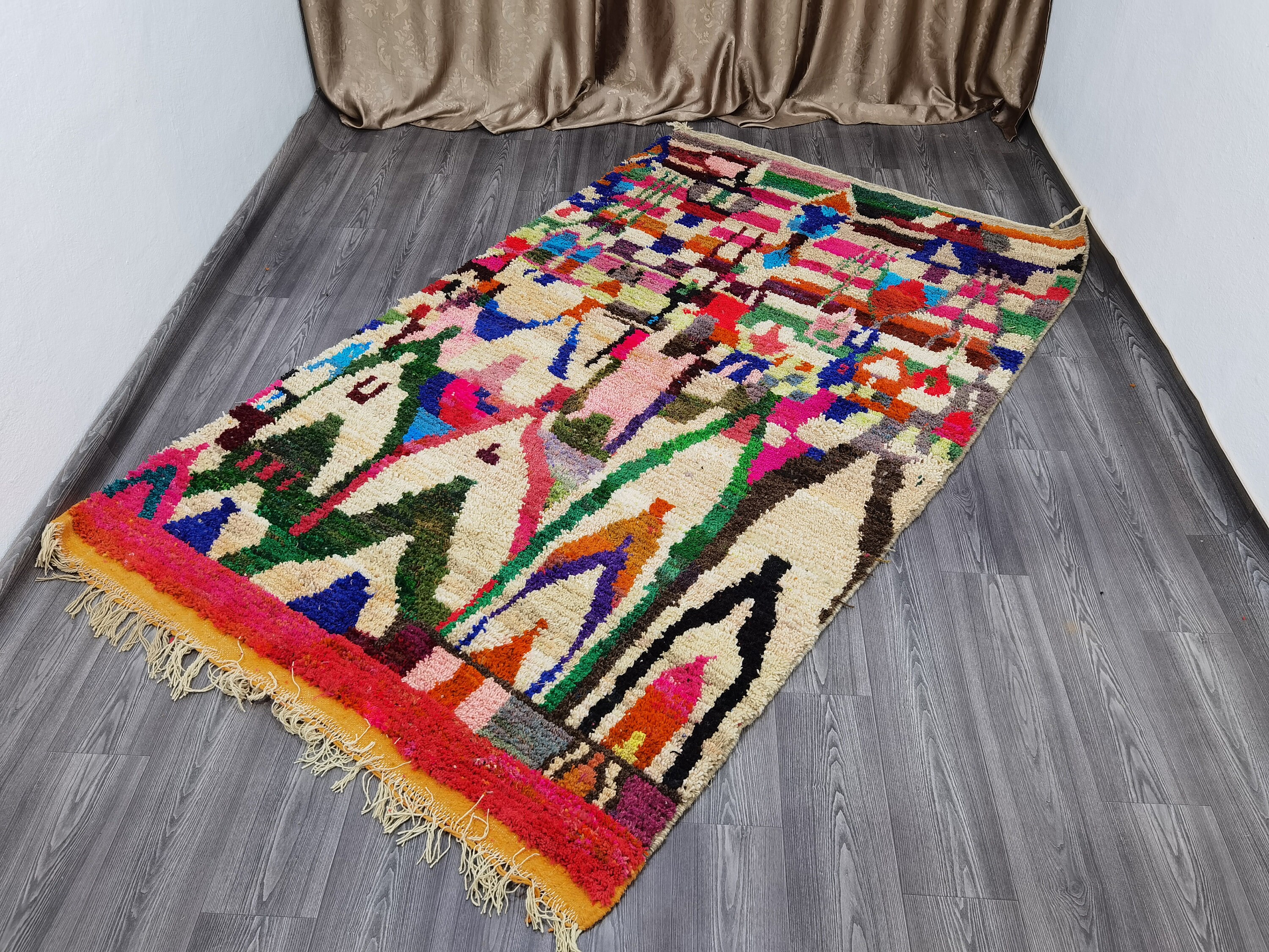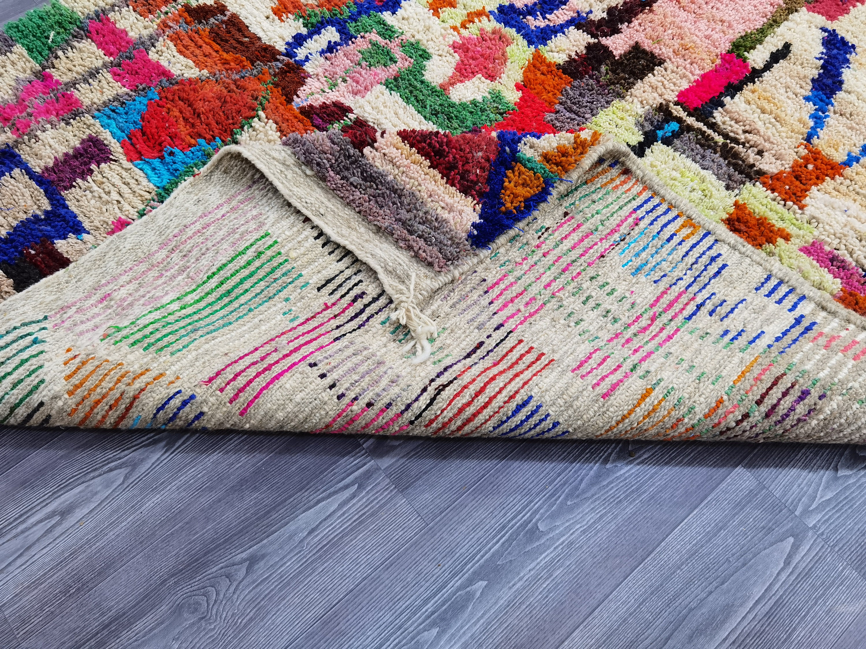 This unique Handwoven Moroccan Boujaad wool rug is one of a kind. A unique rare artistic handmade art, a beautiful combination of colors. which makes it the best choice whether for your house or your showroom. The famous Boujaad rug is now on the cover of the world’s leading home decoration magazines. This rug with character goes perfectly with all interior styles, Bohemian, Modern, Minimalist, Scandinavian, Traditional, which makes it the best choice for your needs.