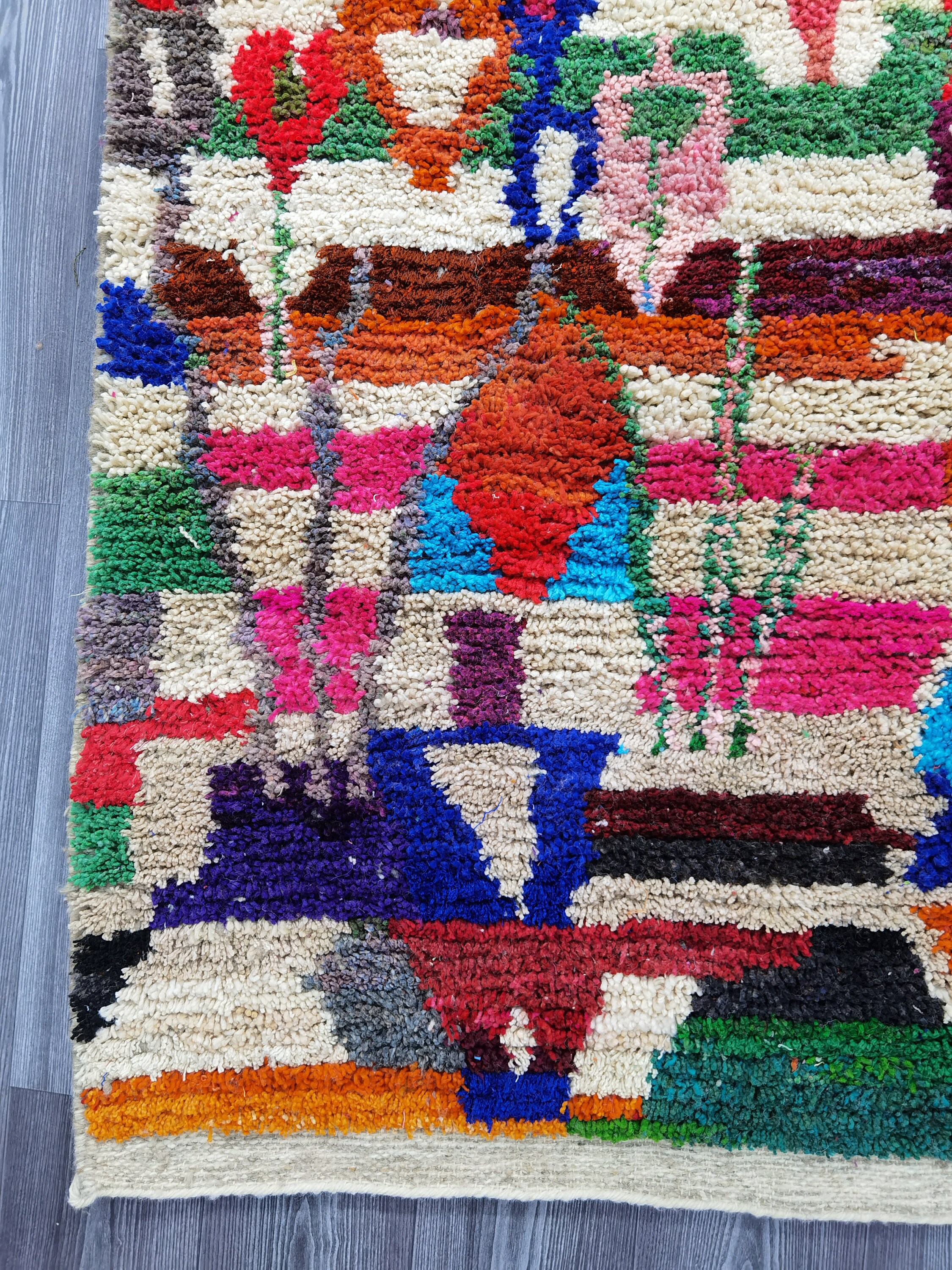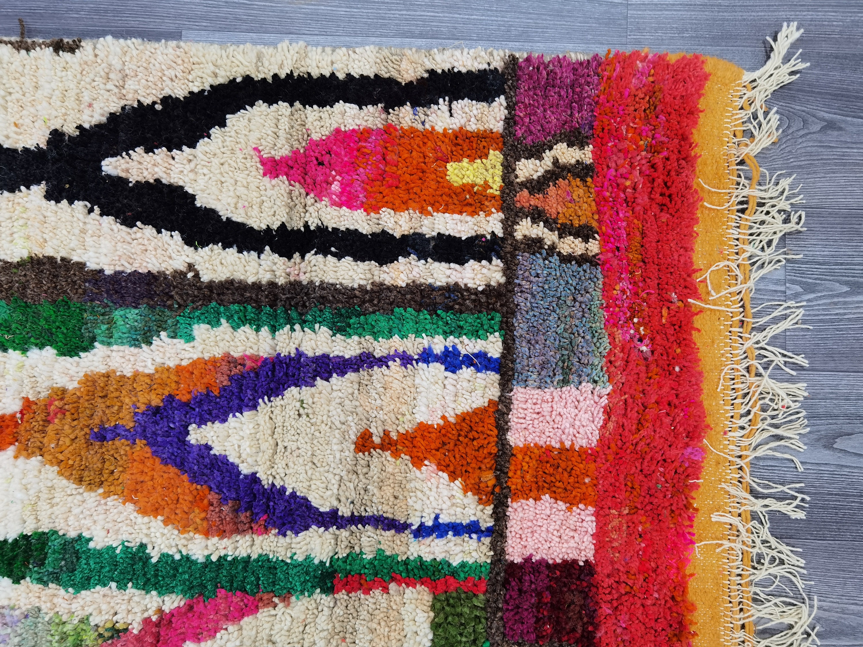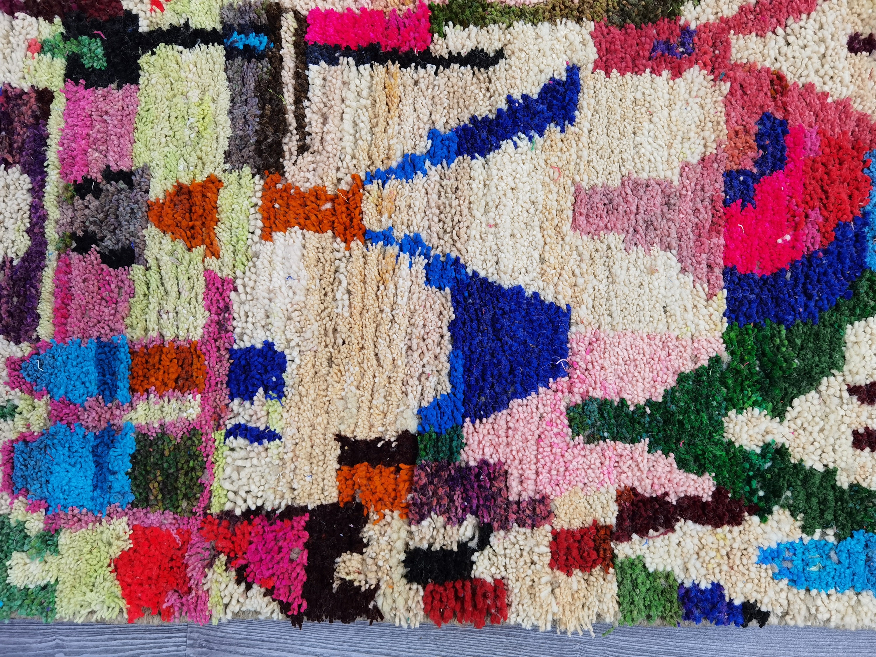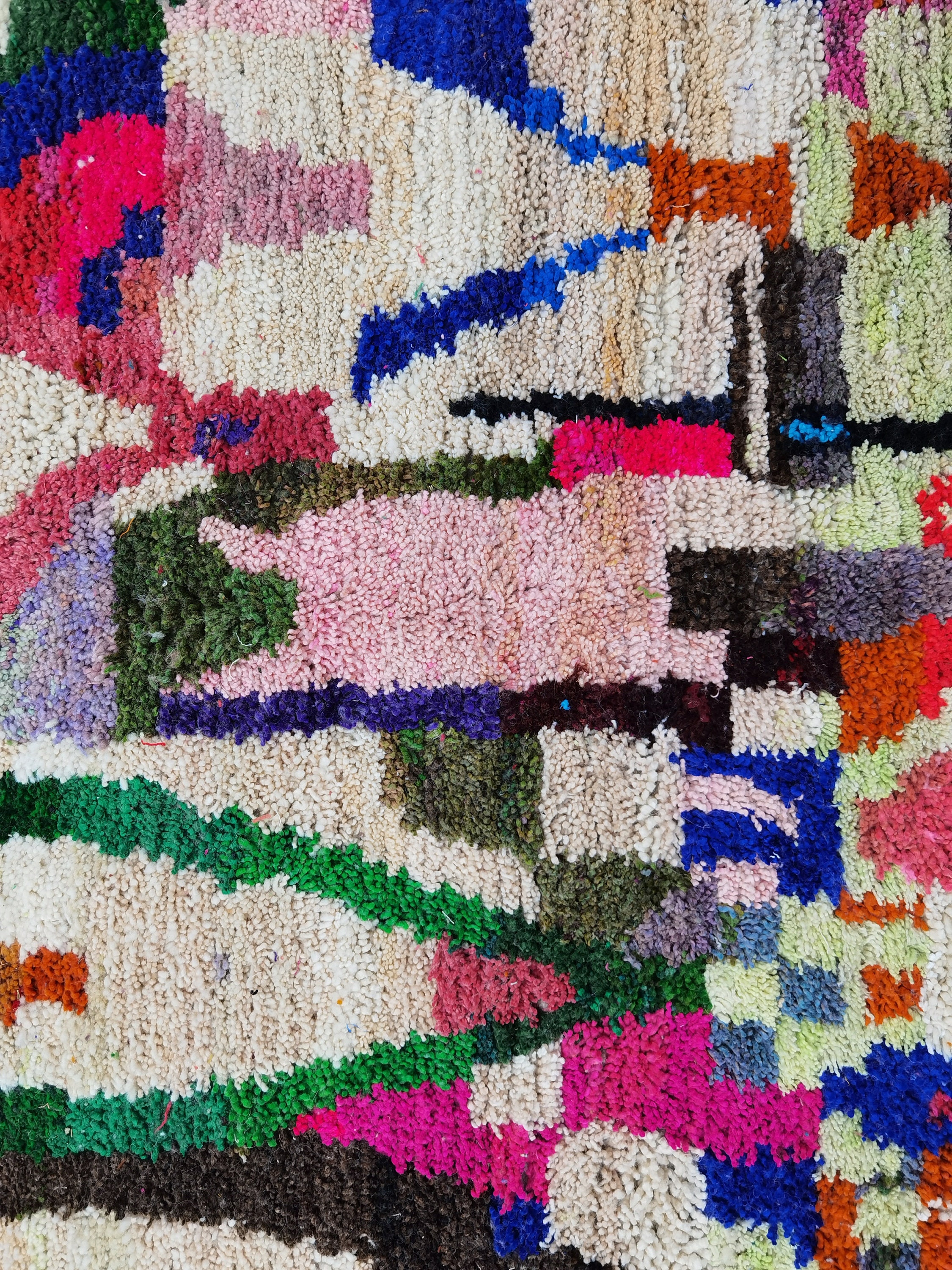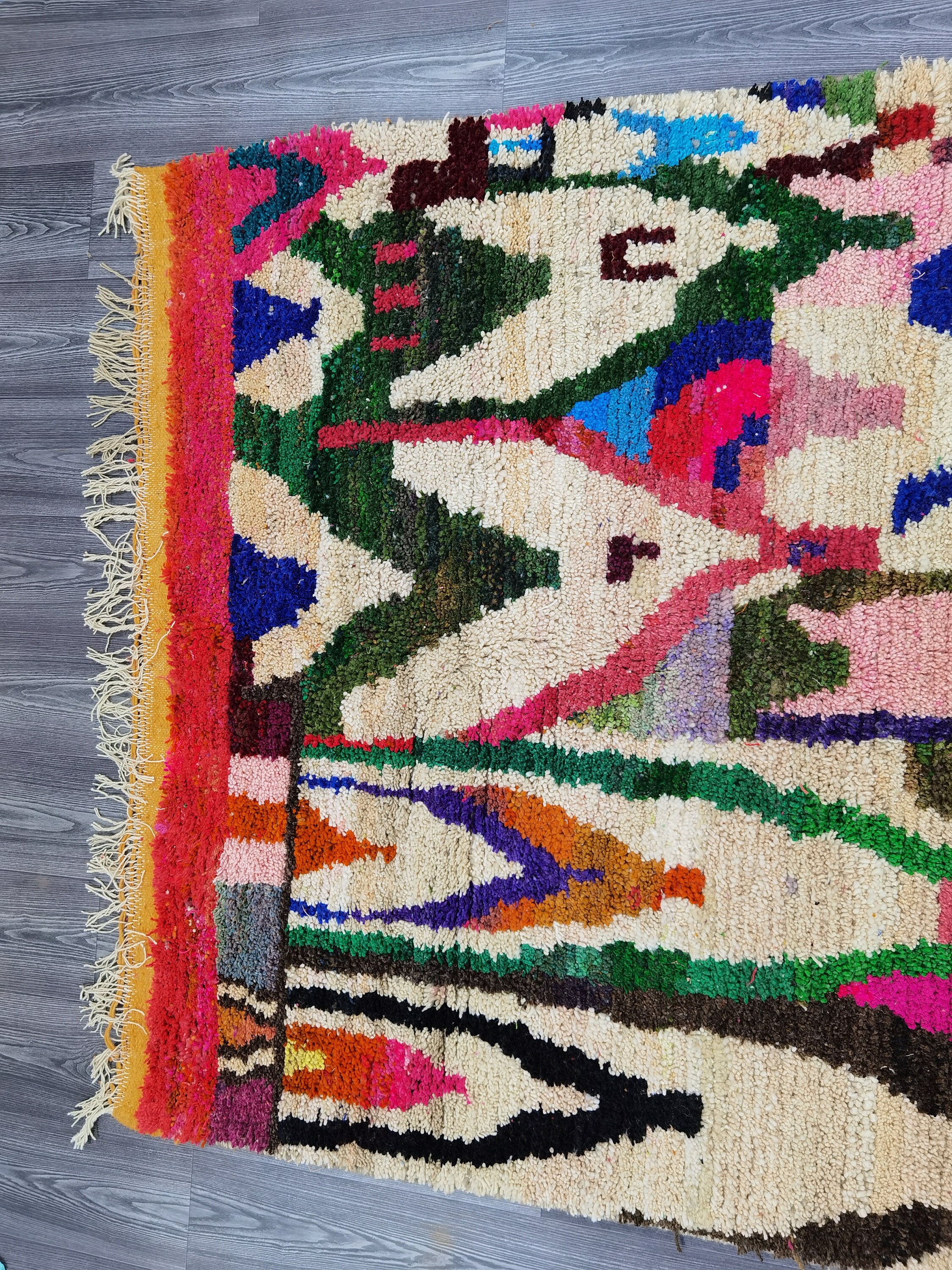 This unique Handwoven Moroccan Boujaad wool rug is one of a kind. A unique rare artistic handmade art, a beautiful combination of colors. which makes it the best choice whether for your house or your showroom. The famous Boujaad rug is now on the cover of the world’s leading home decoration magazines. This rug with character goes perfectly with all interior styles, Bohemian, Modern, Minimalist, Scandinavian, Traditional, which makes it the best choice for your needs.