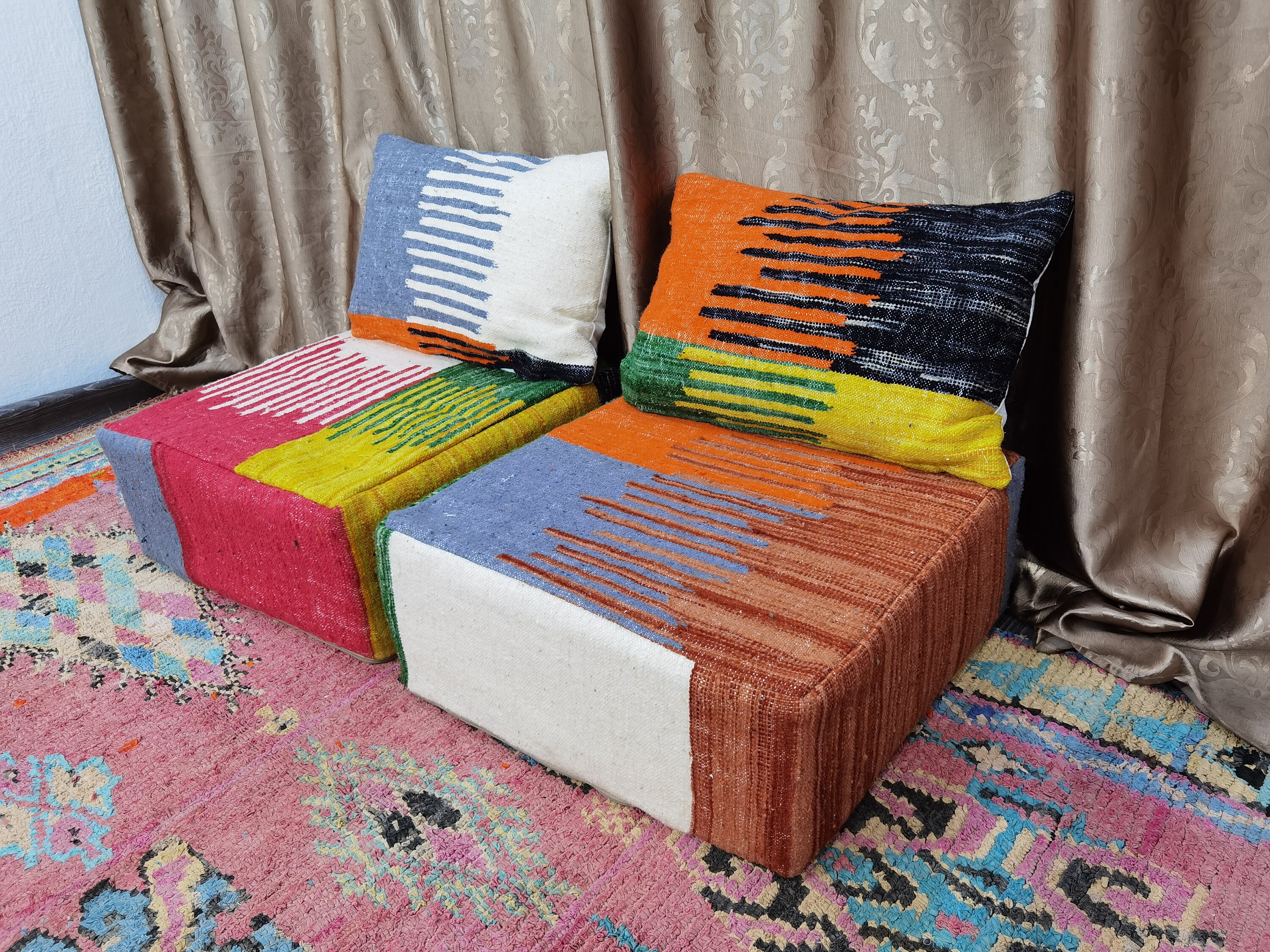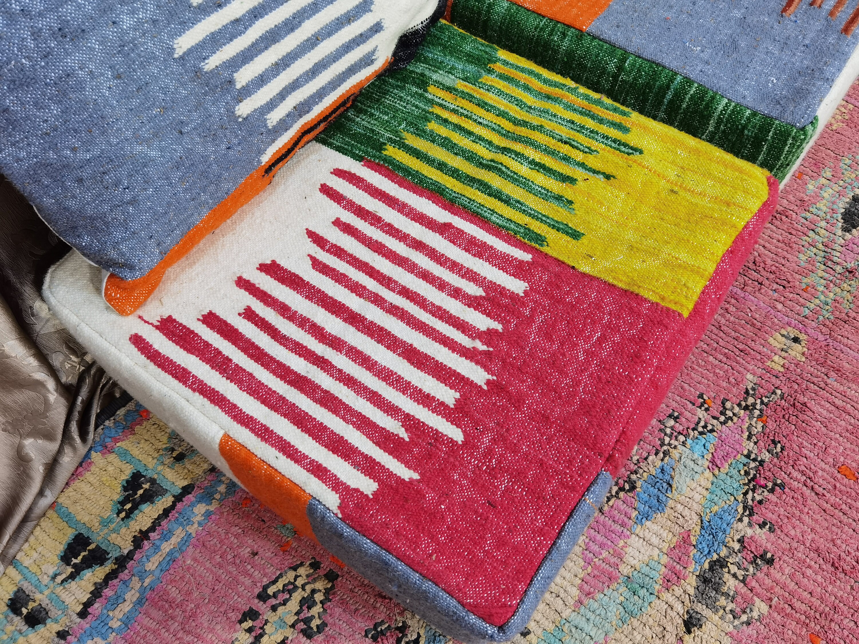 Custom Moroccan salon-Unstuffed Seats Cushions-2 Back Cushions+2 Pouffe Moroccan - morocco sofa-rug pouf-handmade rug cushion-carpet cushion