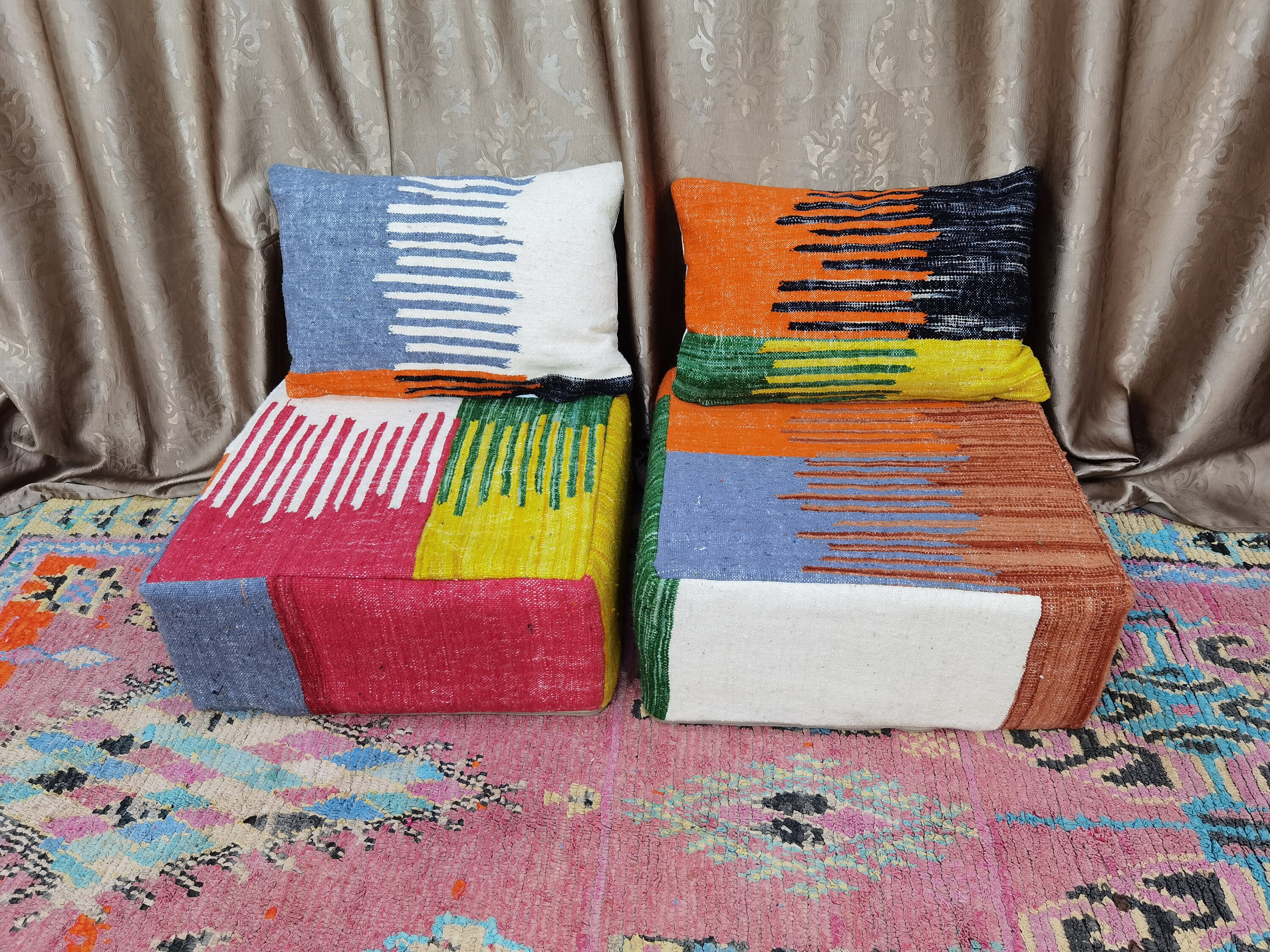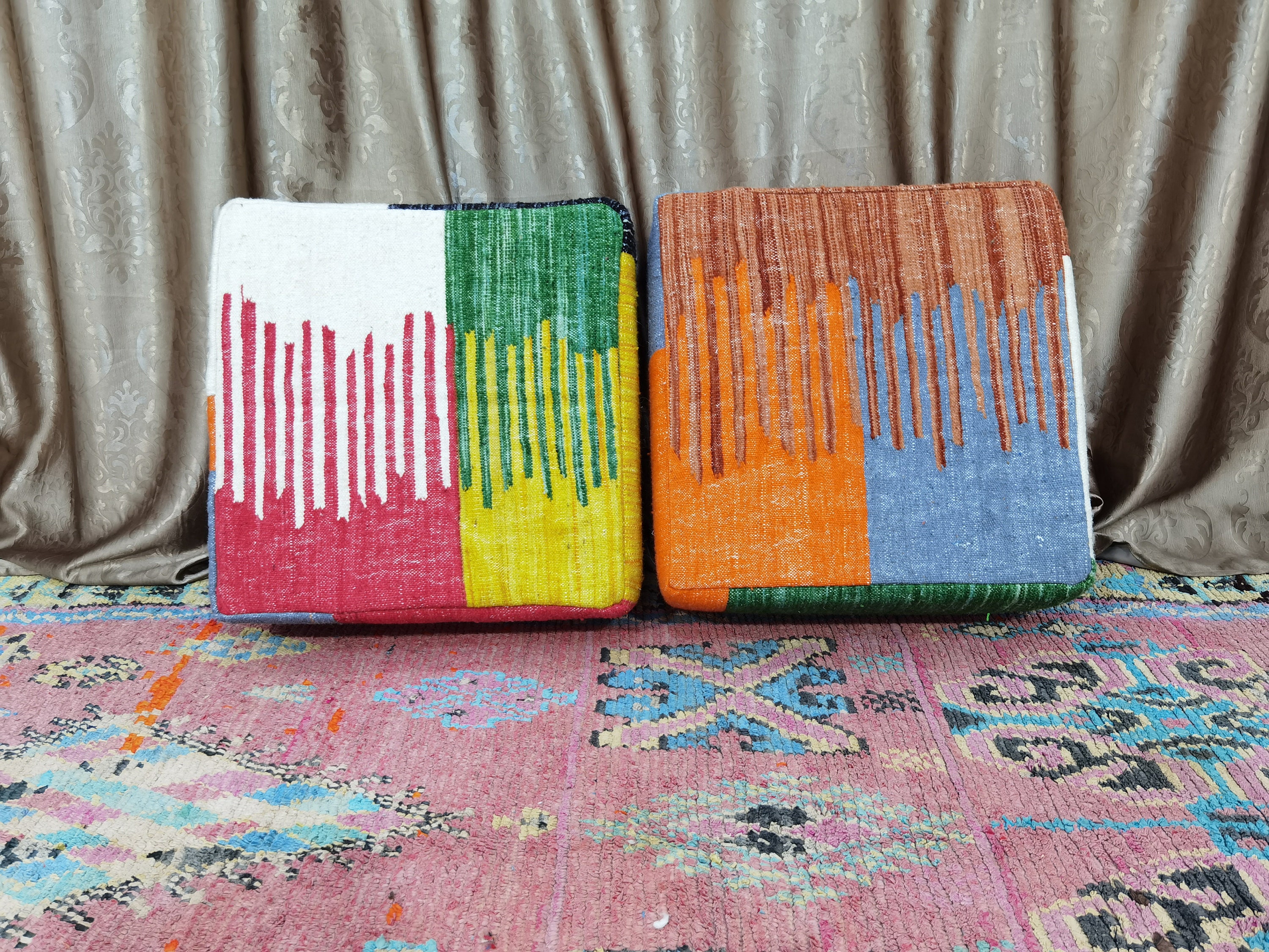 - 2 Handmade rug floor cushions , 60x60x25 cm / 24x24x10 Inch.