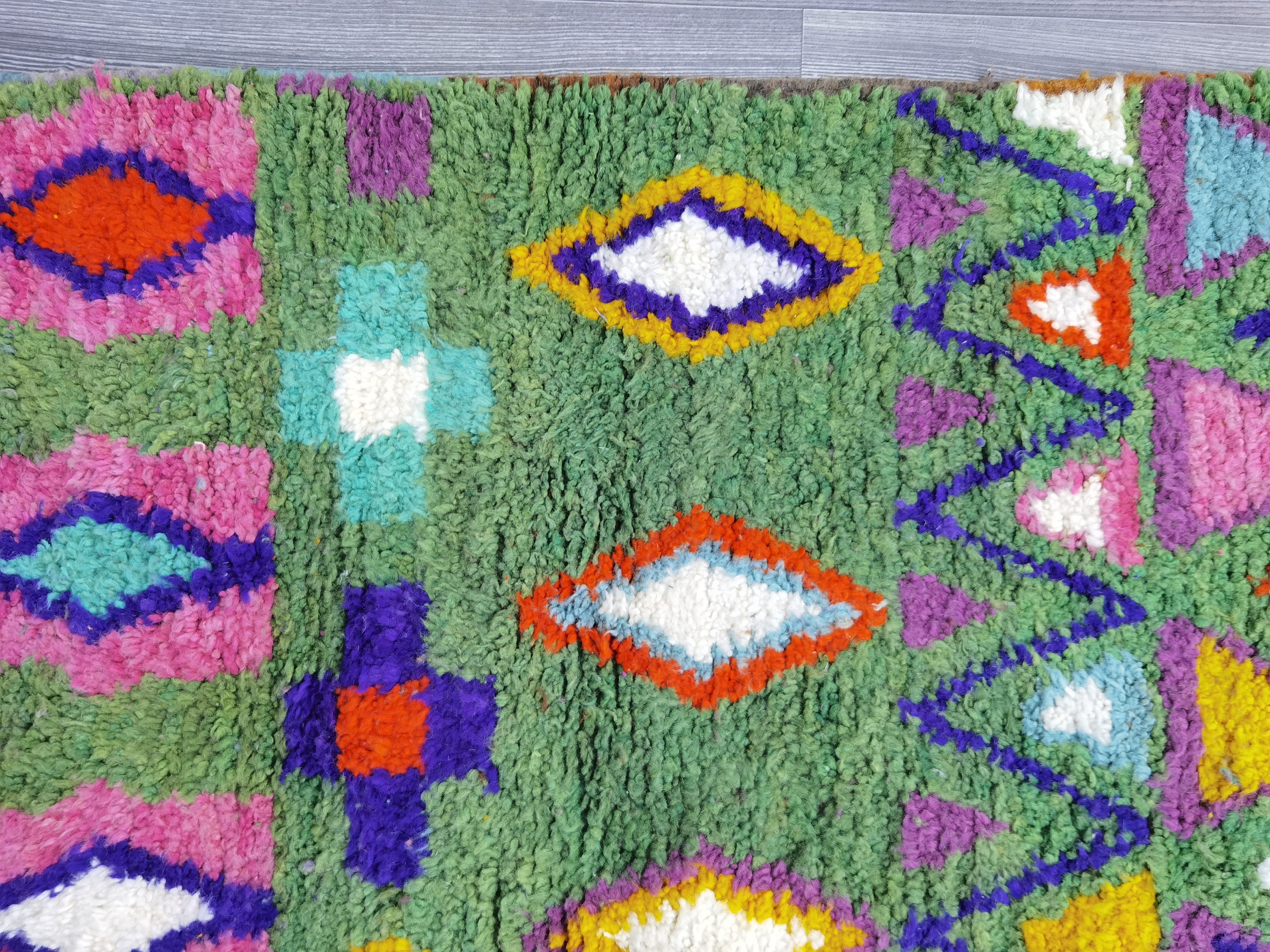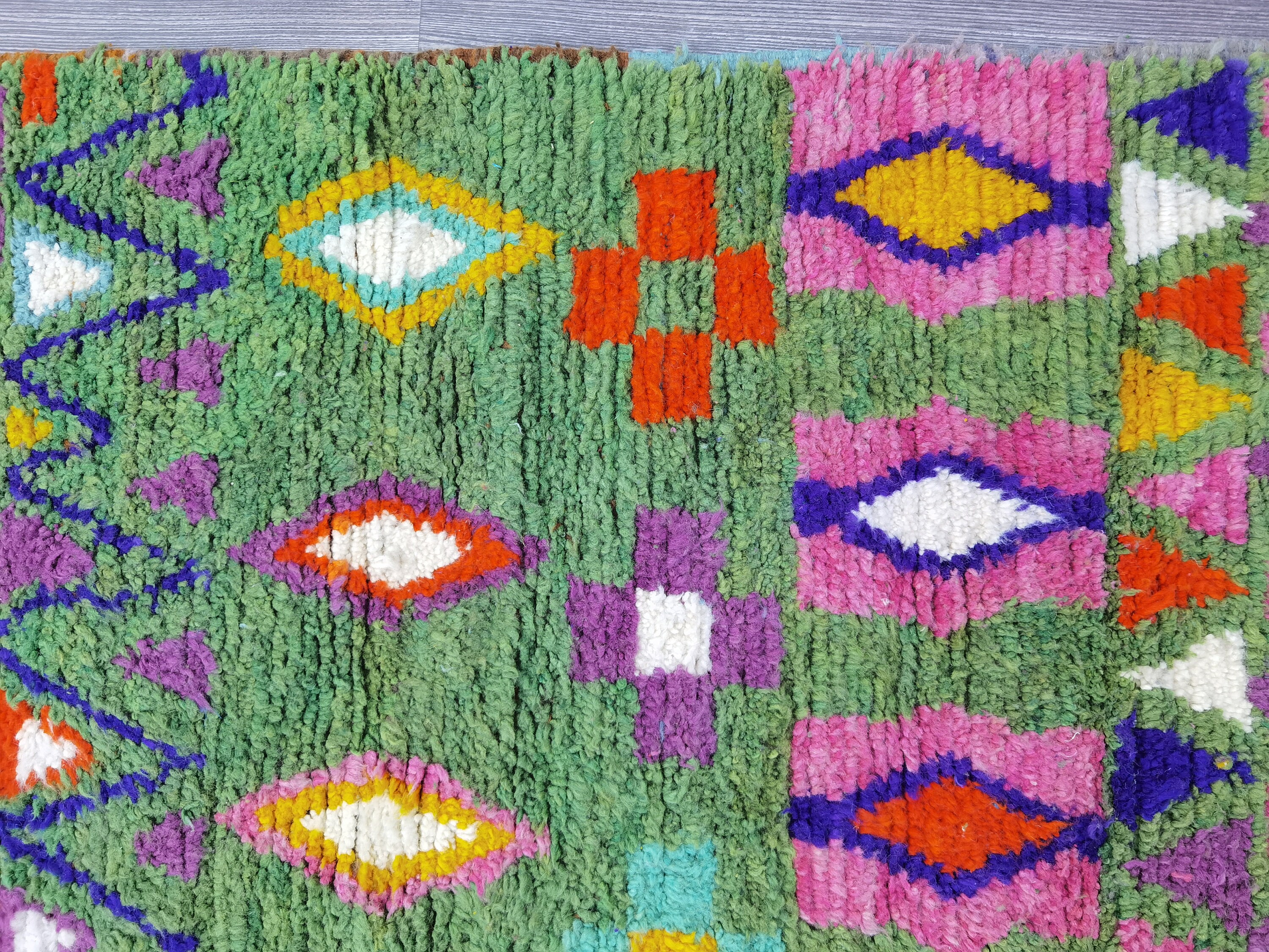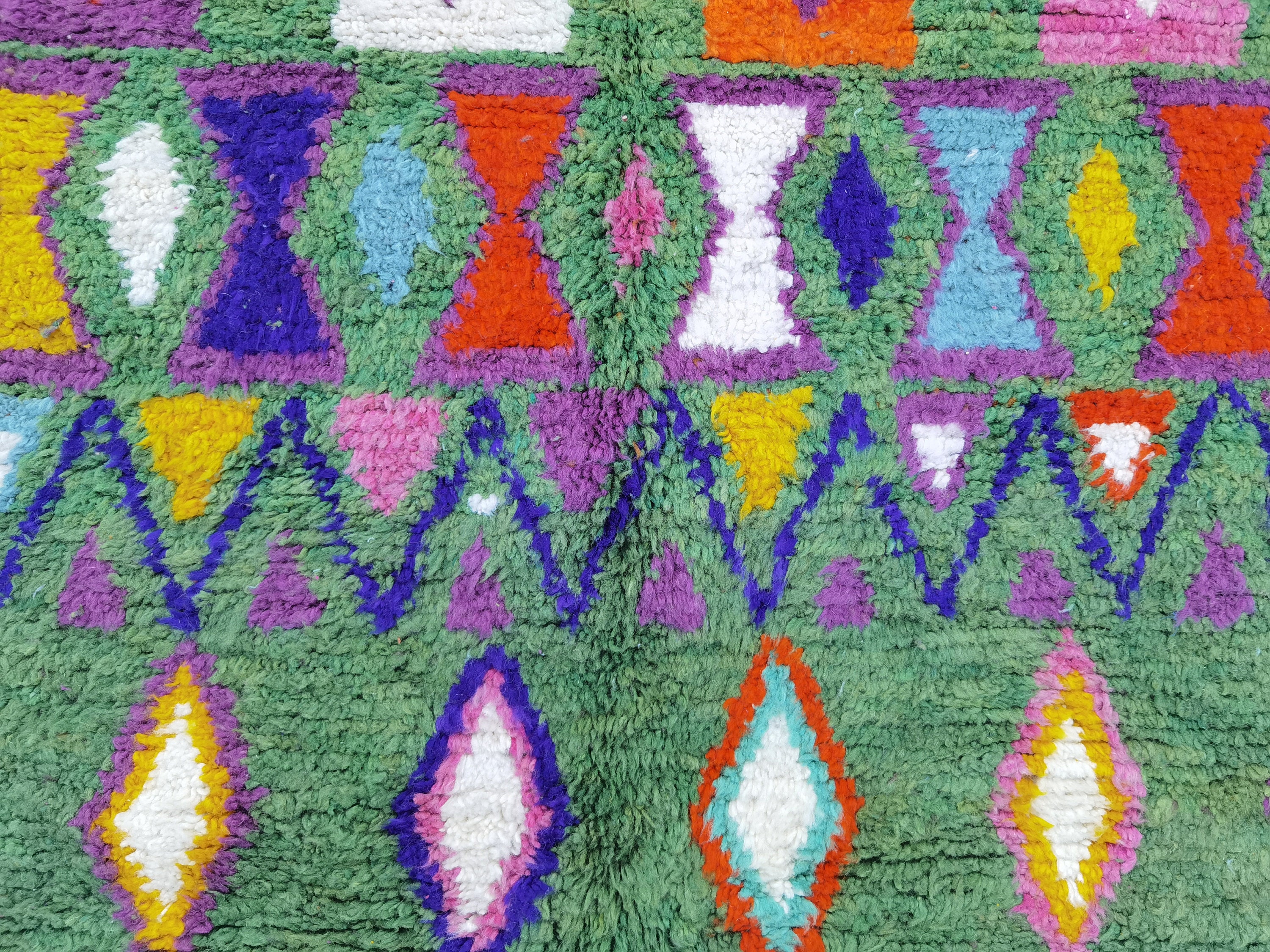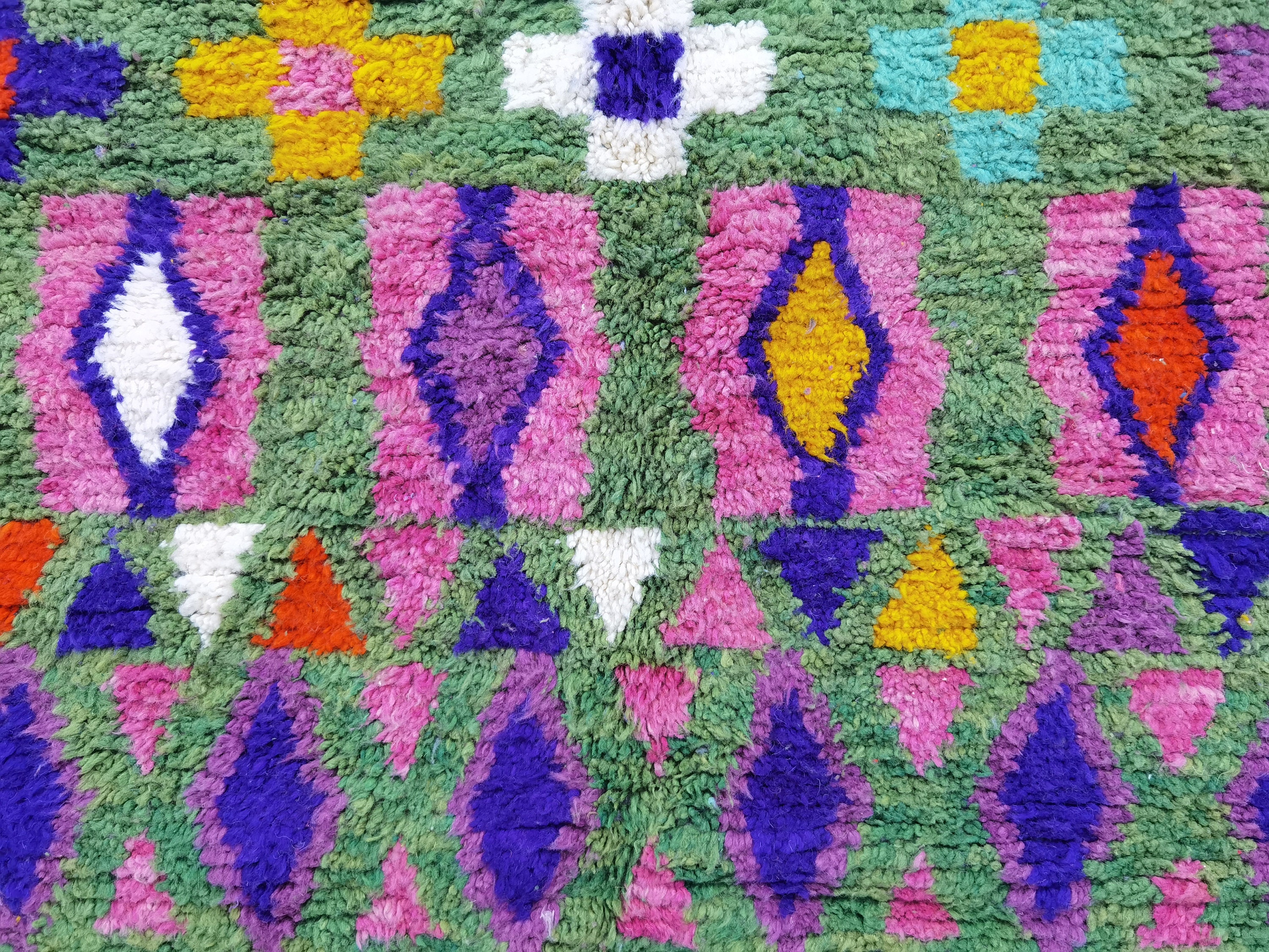 This unique Handwoven Moroccan Boujaad wool rug is one of a kind. A unique rare artistic handmade art, a beautiful combination of colors. which makes it the best choice whether for your house or your showroom. The famous Boujaad rug is now on the cover of the world’s leading home decoration magazines. This rug with character goes perfectly with all interior styles, Bohemian, Modern, Minimalist, Scandinavian, Traditional, which makes it the best choice for your needs.