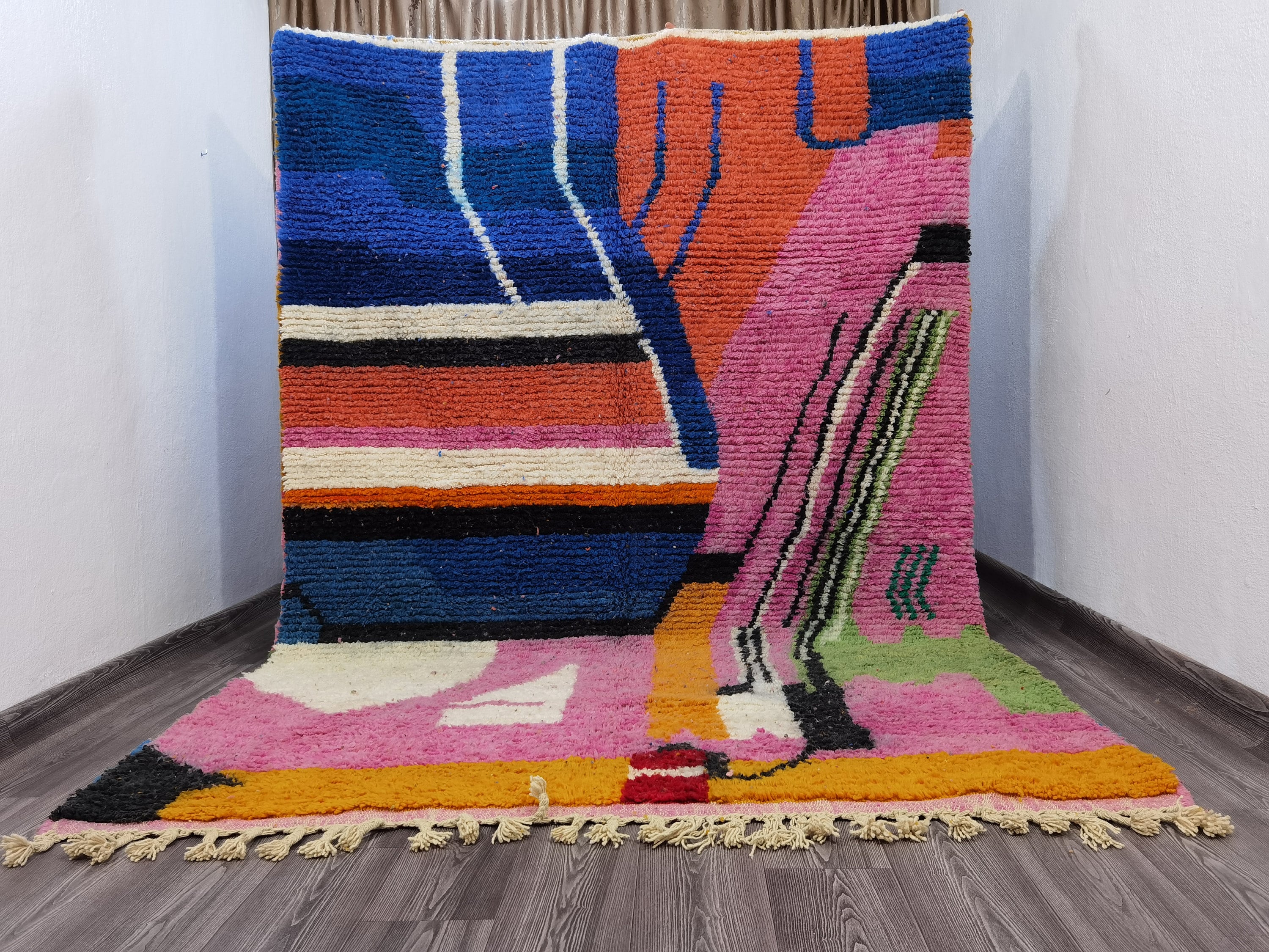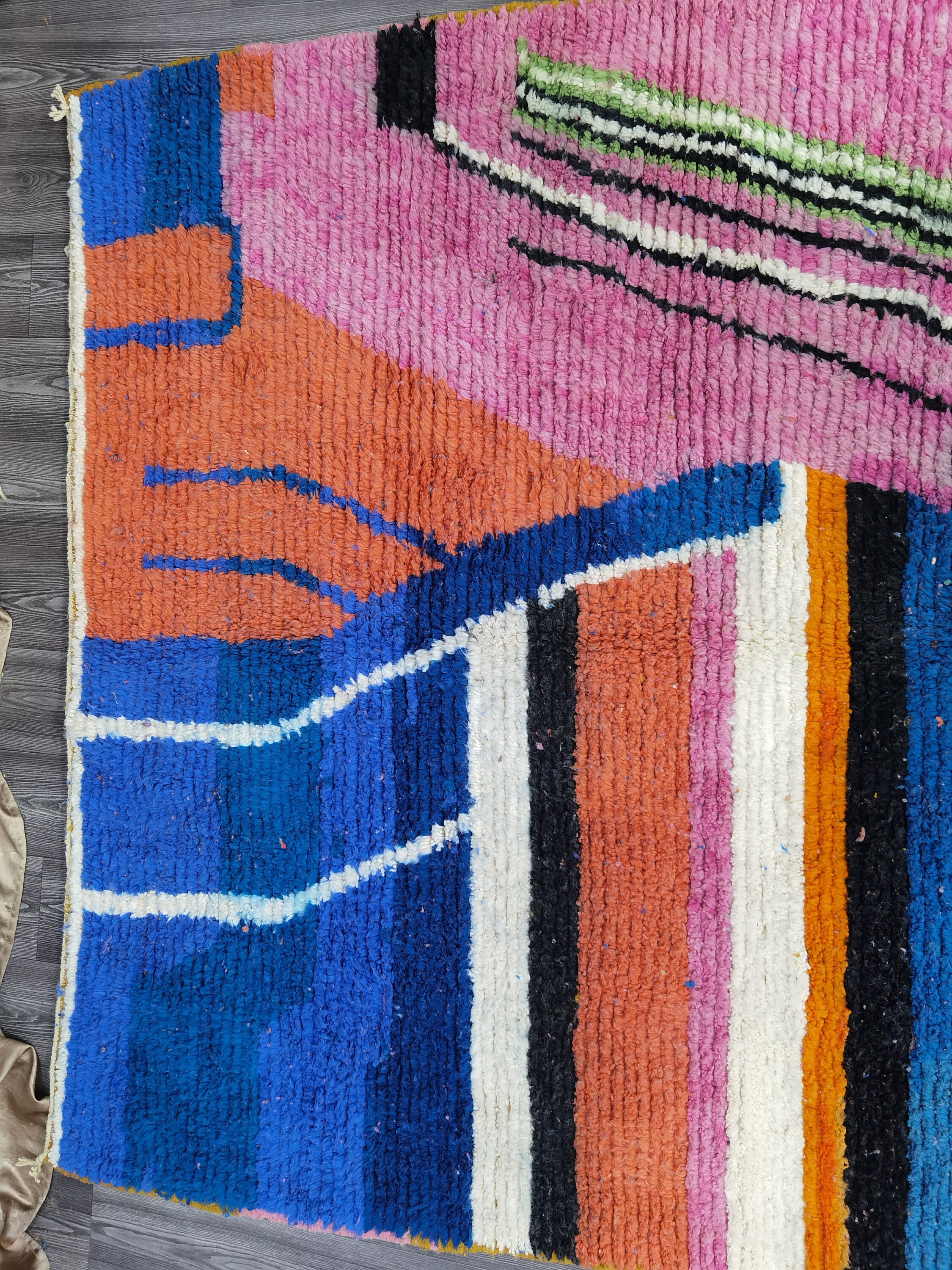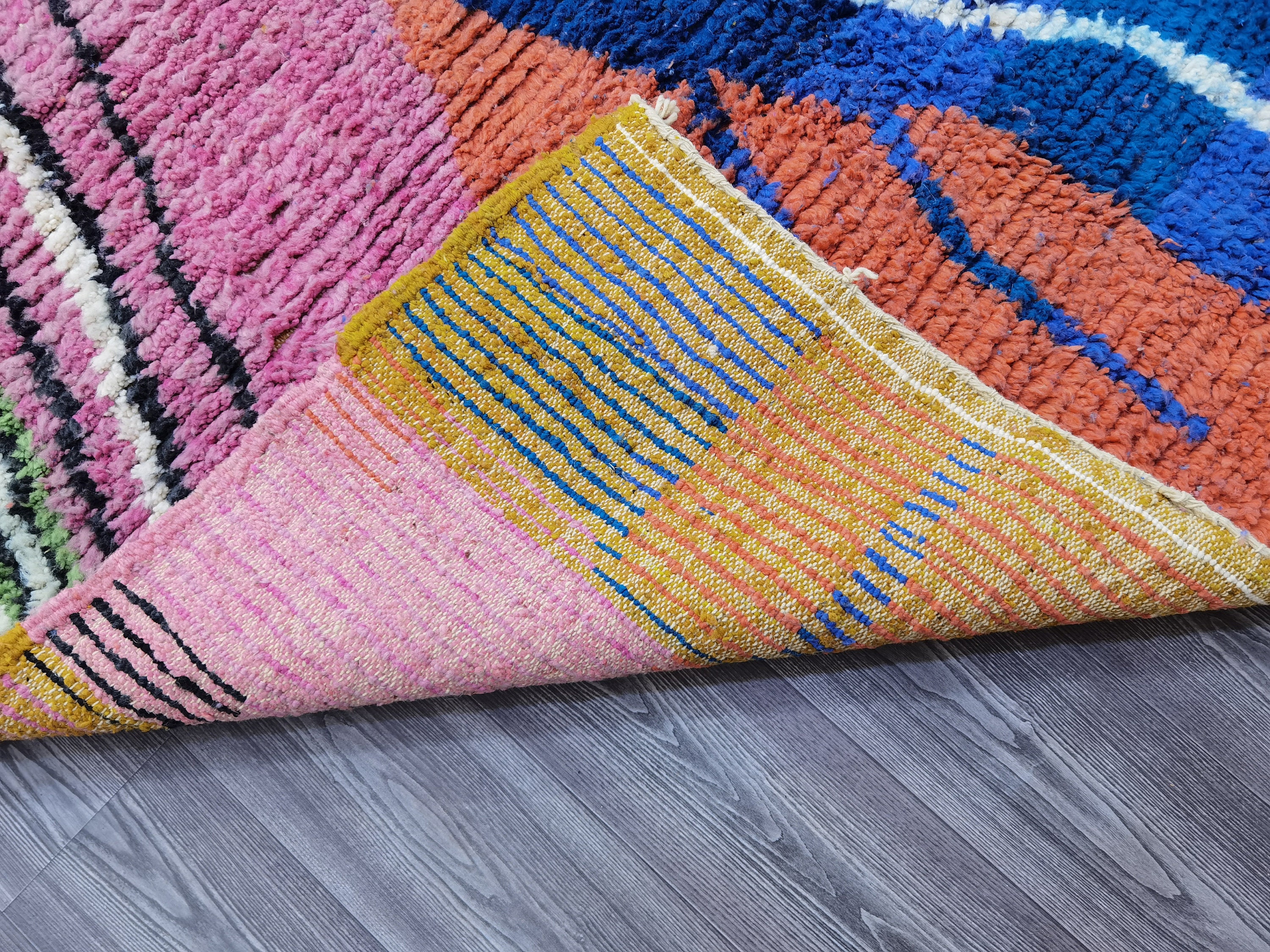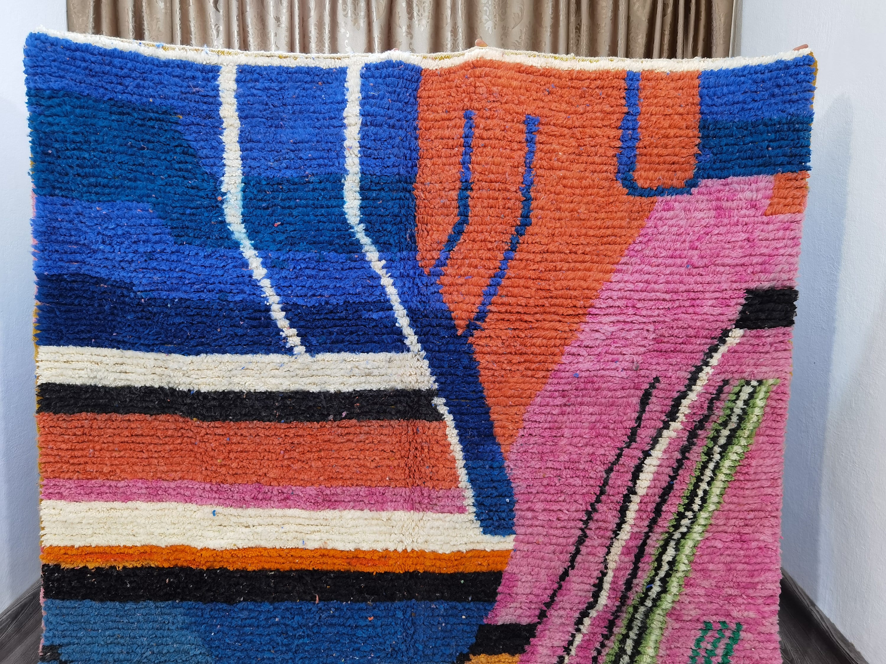 This unique Handwoven Moroccan Boujaad wool rug is one of a kind. A unique rare artistic handmade art, a beautiful combination of colors. which makes it the best choice whether for your house or your showroom. The famous Boujaad rug is now on the cover of the world’s leading home decoration magazines. This rug with character goes perfectly with all interior styles, Bohemian, Modern, Minimalist, Scandinavian, Traditional, which makes it the best choice for your needs.