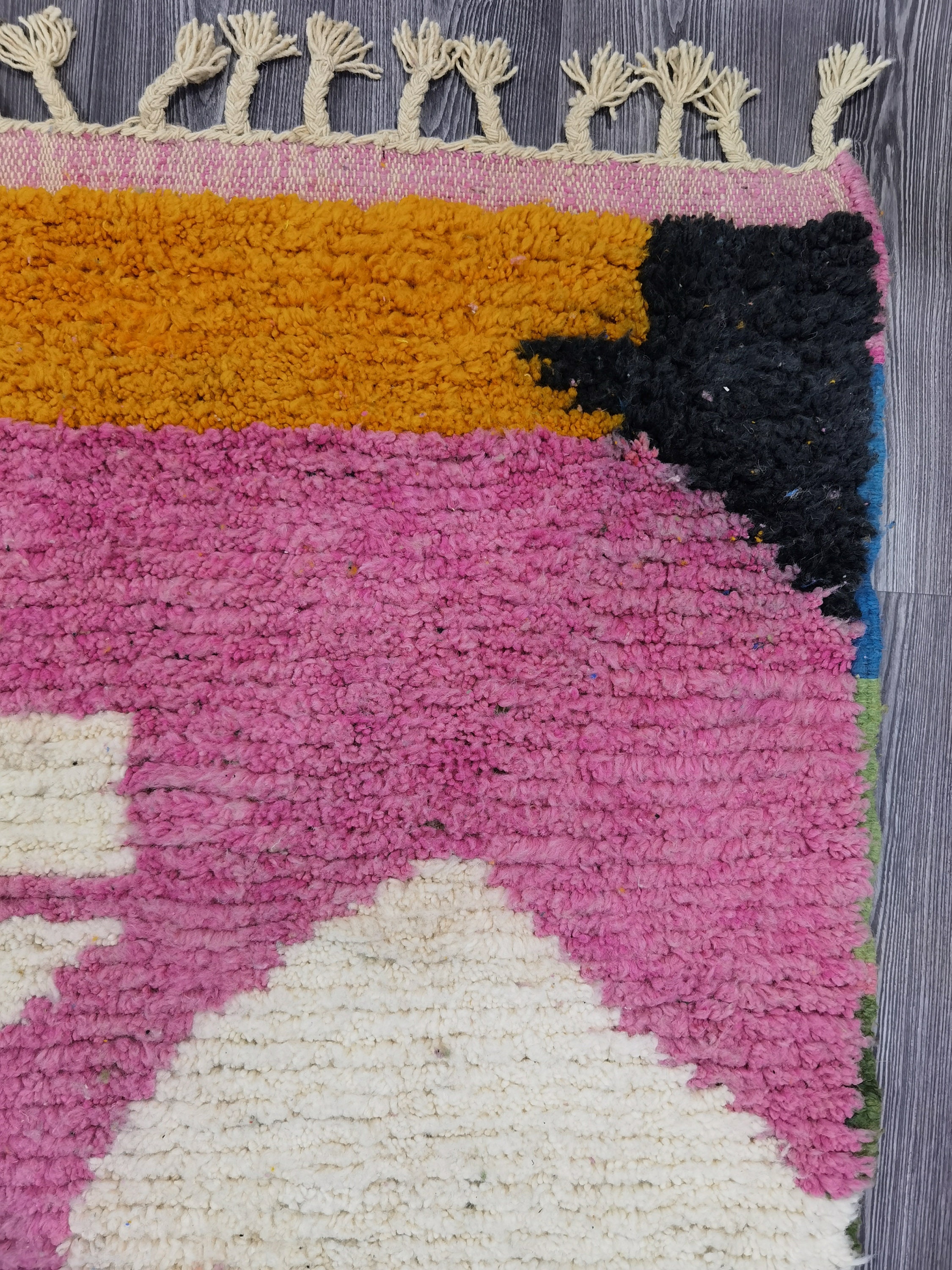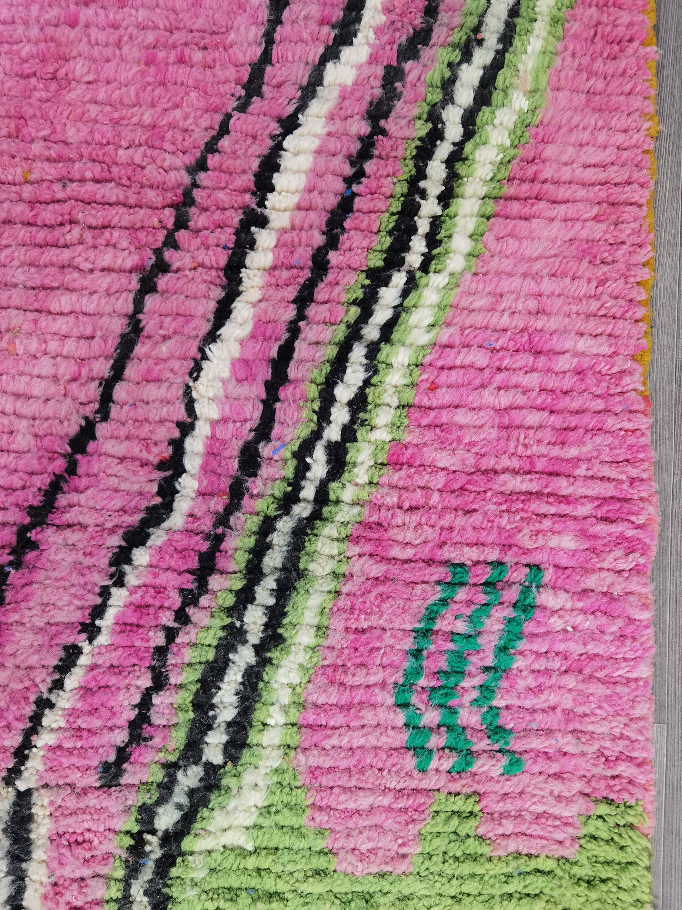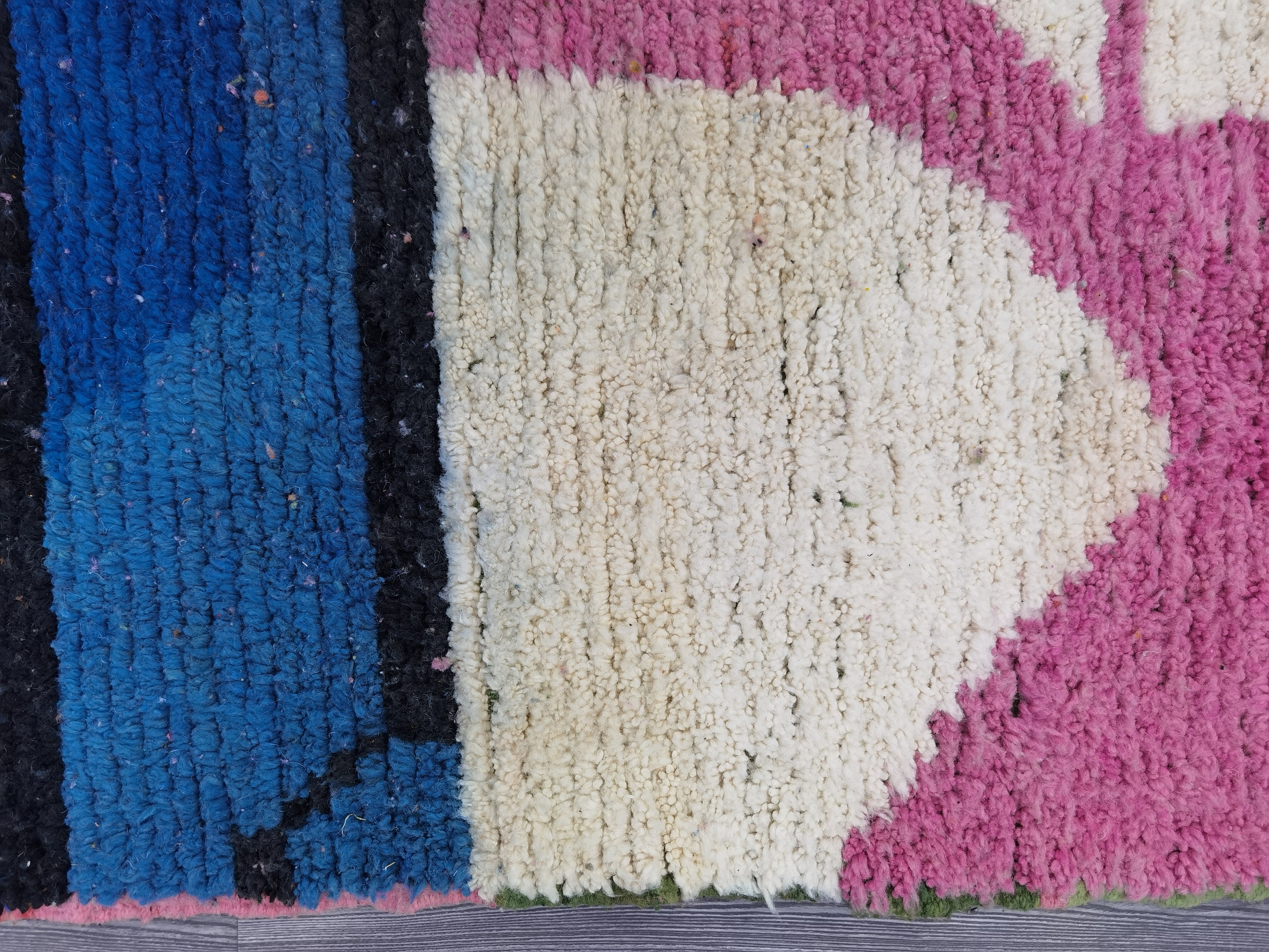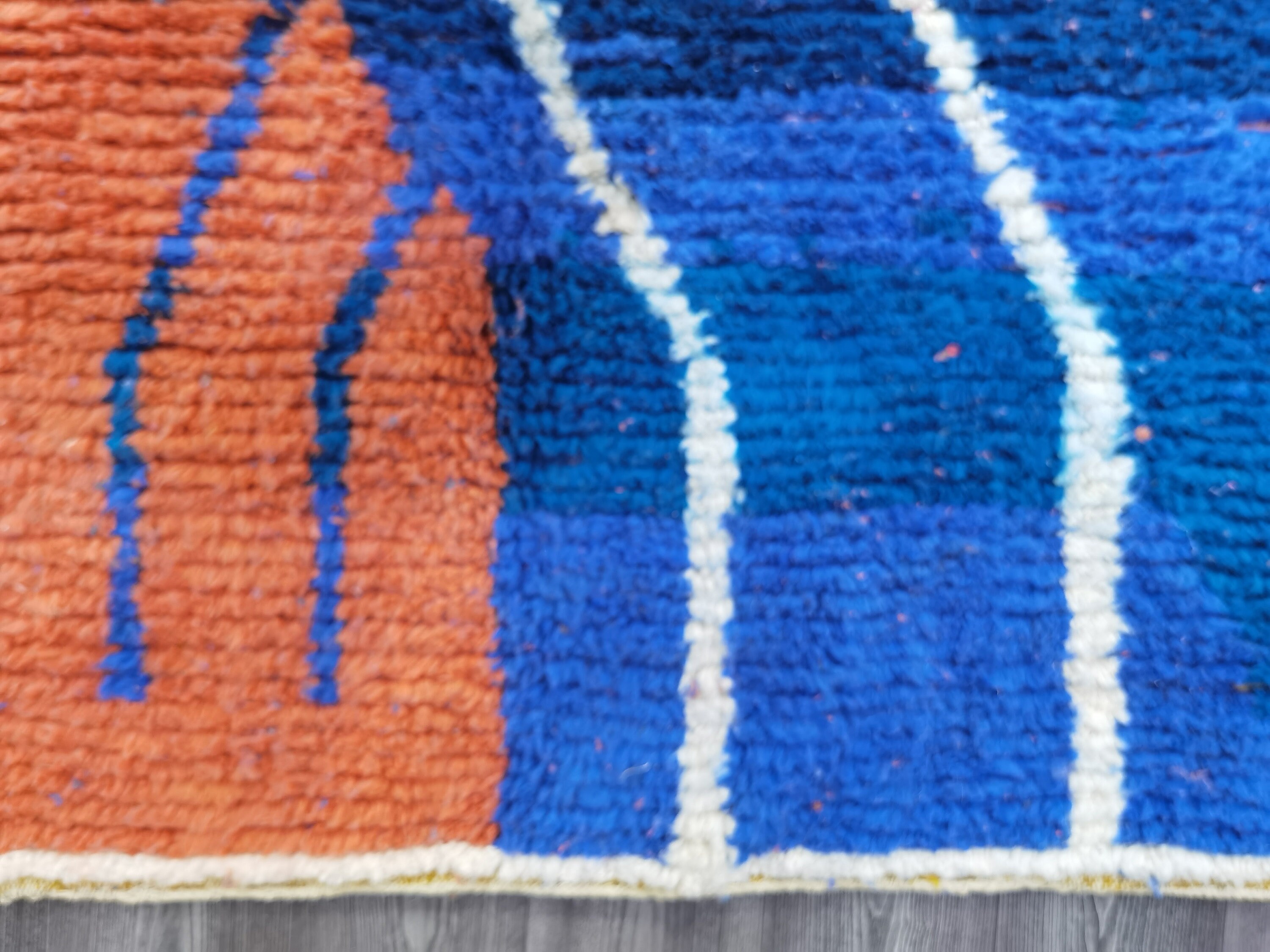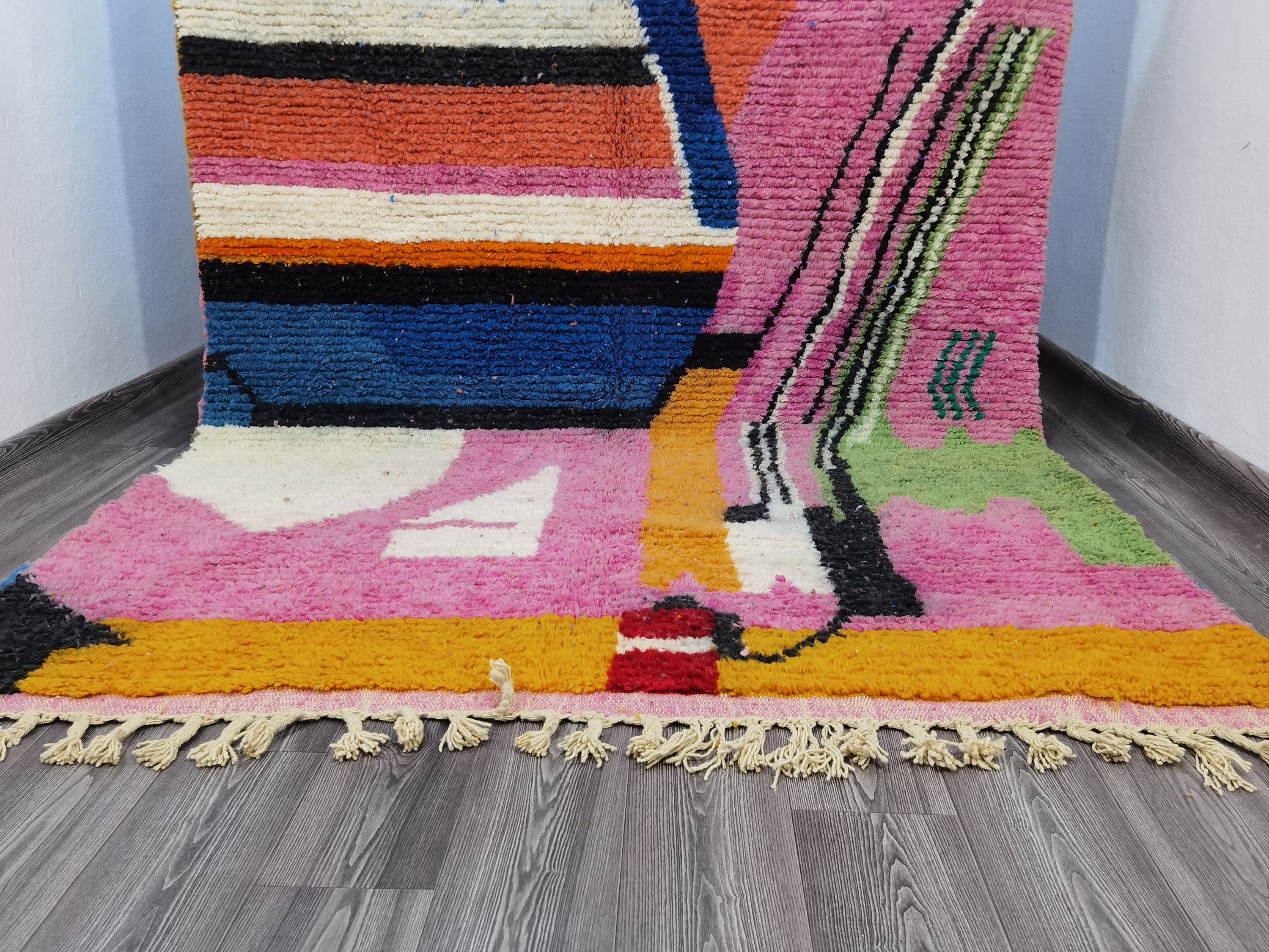 This unique Handwoven Moroccan Boujaad wool rug is one of a kind. A unique rare artistic handmade art, a beautiful combination of colors. which makes it the best choice whether for your house or your showroom. The famous Boujaad rug is now on the cover of the world’s leading home decoration magazines. This rug with character goes perfectly with all interior styles, Bohemian, Modern, Minimalist, Scandinavian, Traditional, which makes it the best choice for your needs.