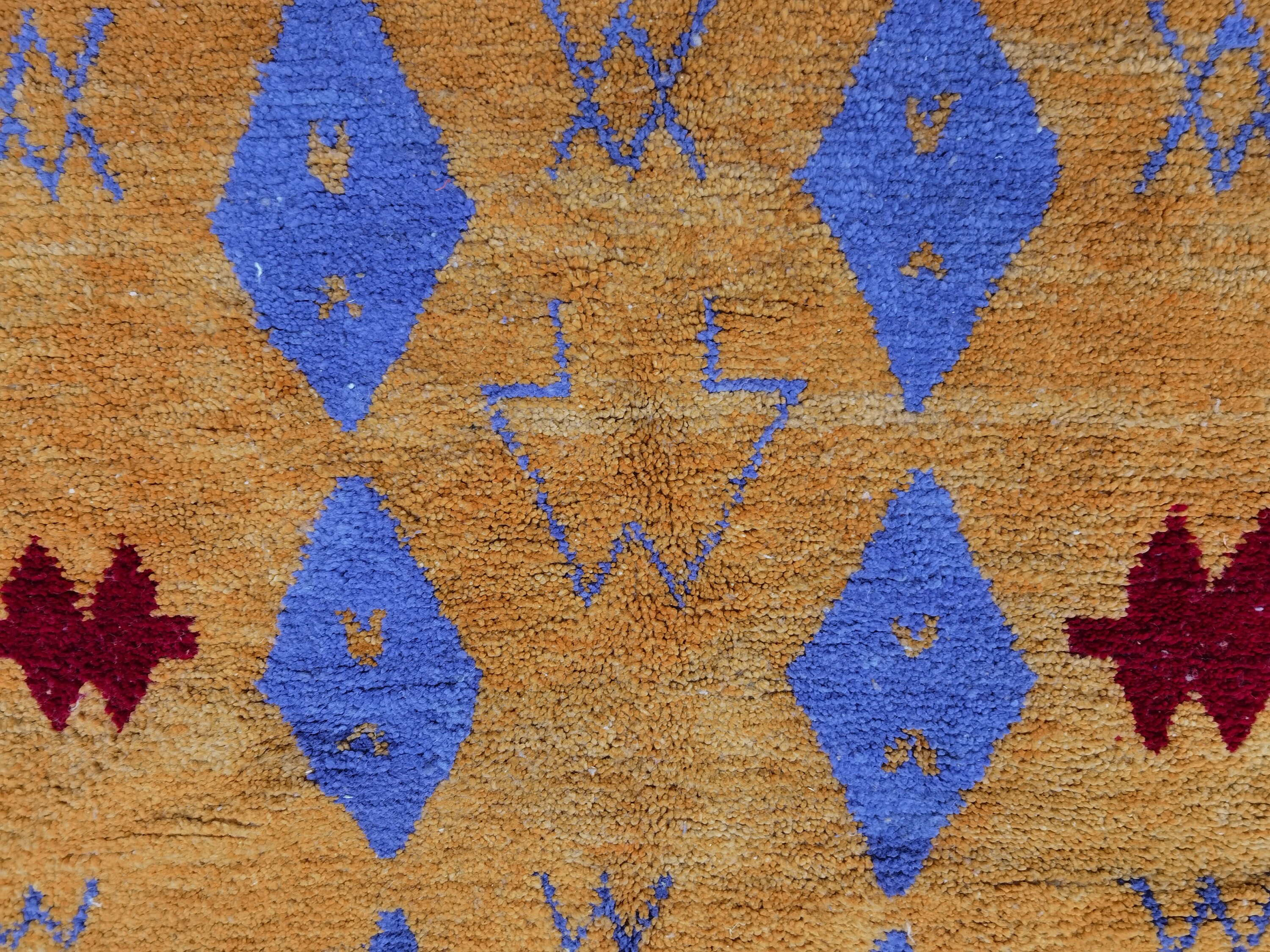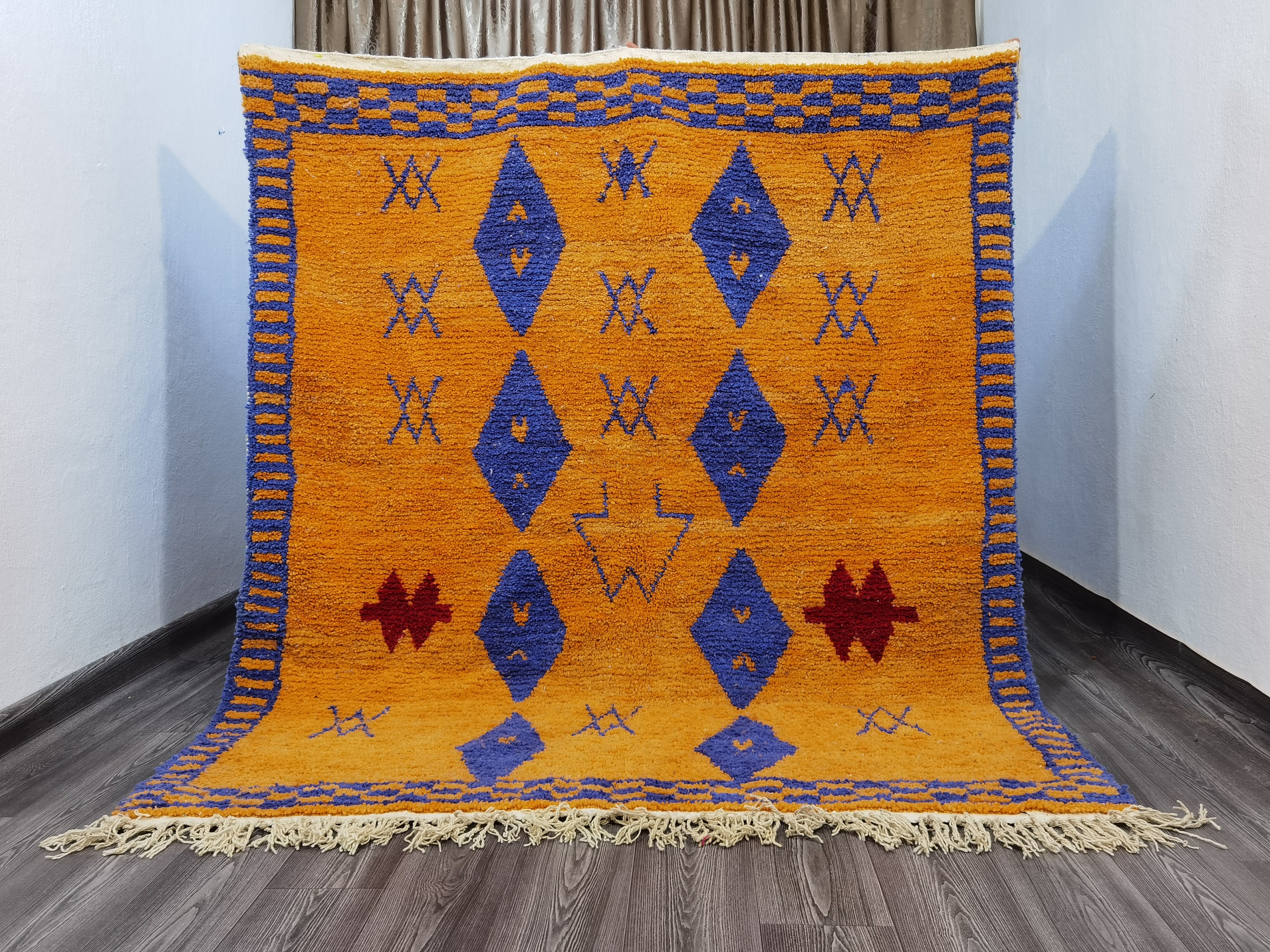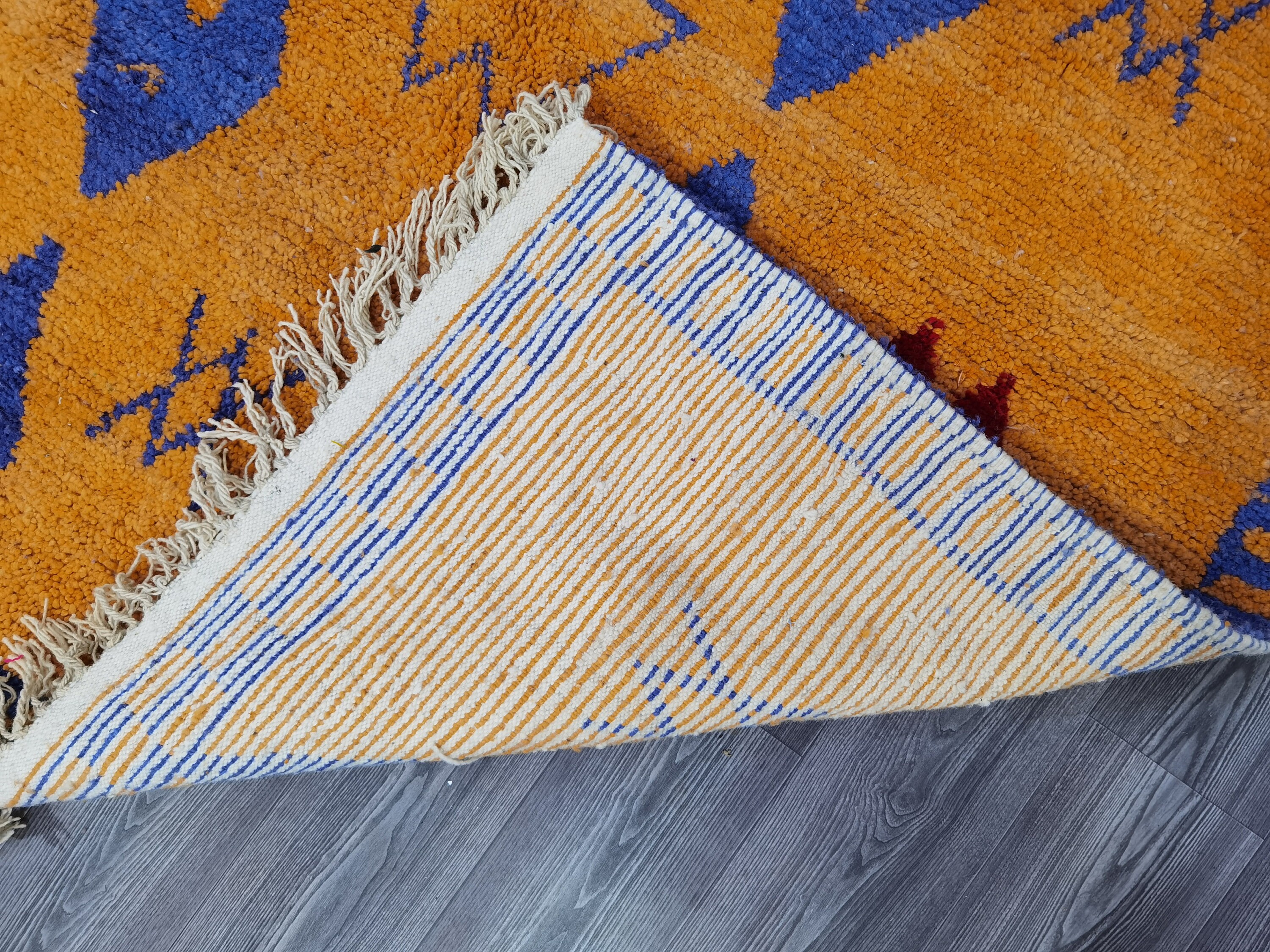 This unique Handwoven Moroccan Boujaad wool rug is one of a kind. A unique rare artistic handmade art, a beautiful combination of colors. which makes it the best choice whether for your house or your showroom. The famous Boujaad rug is now on the cover of the world’s leading home decoration magazines. This rug with character goes perfectly with all interior styles, Bohemian, Modern, Minimalist, Scandinavian, Traditional, which makes it the best choice for your needs.