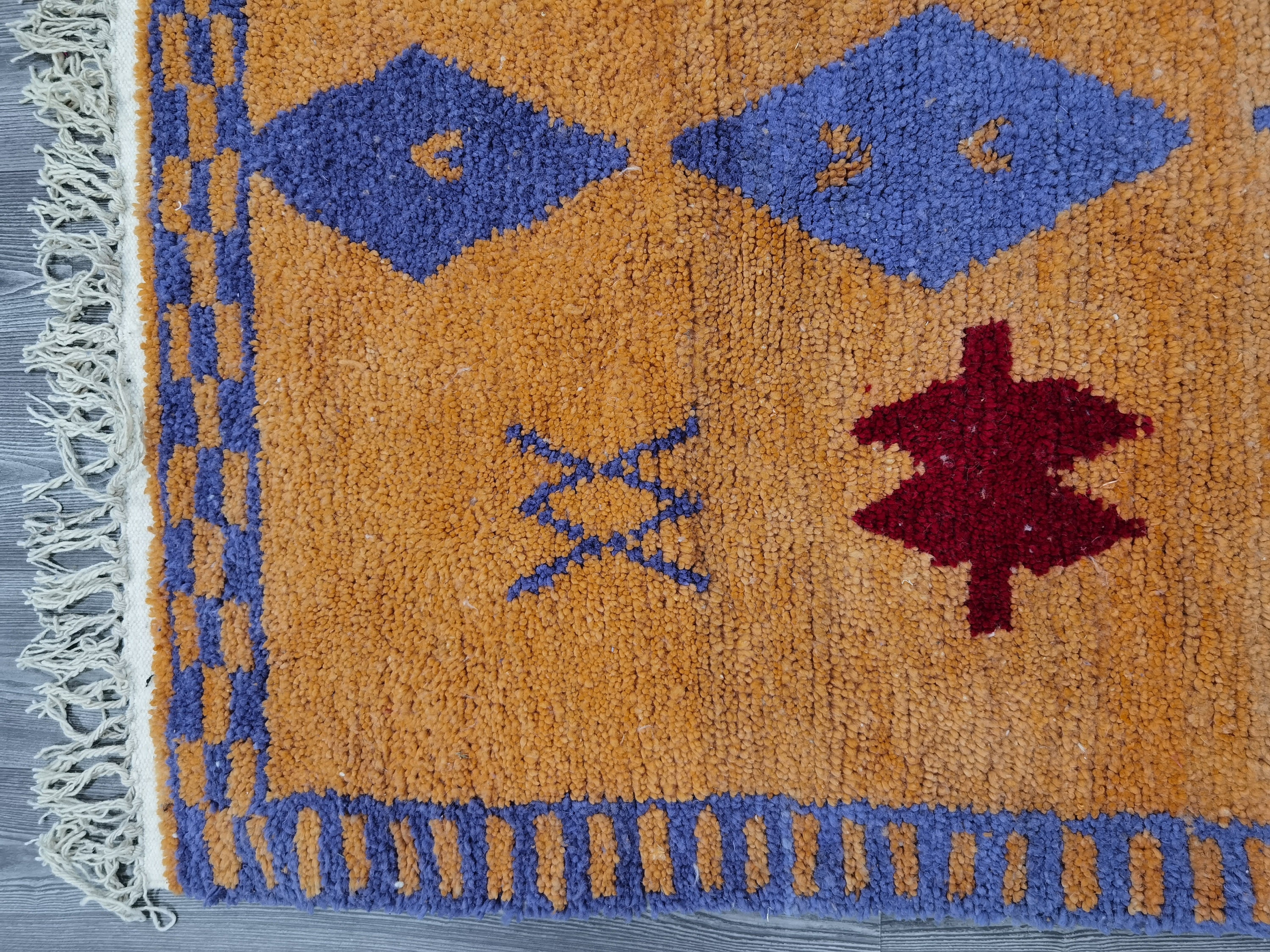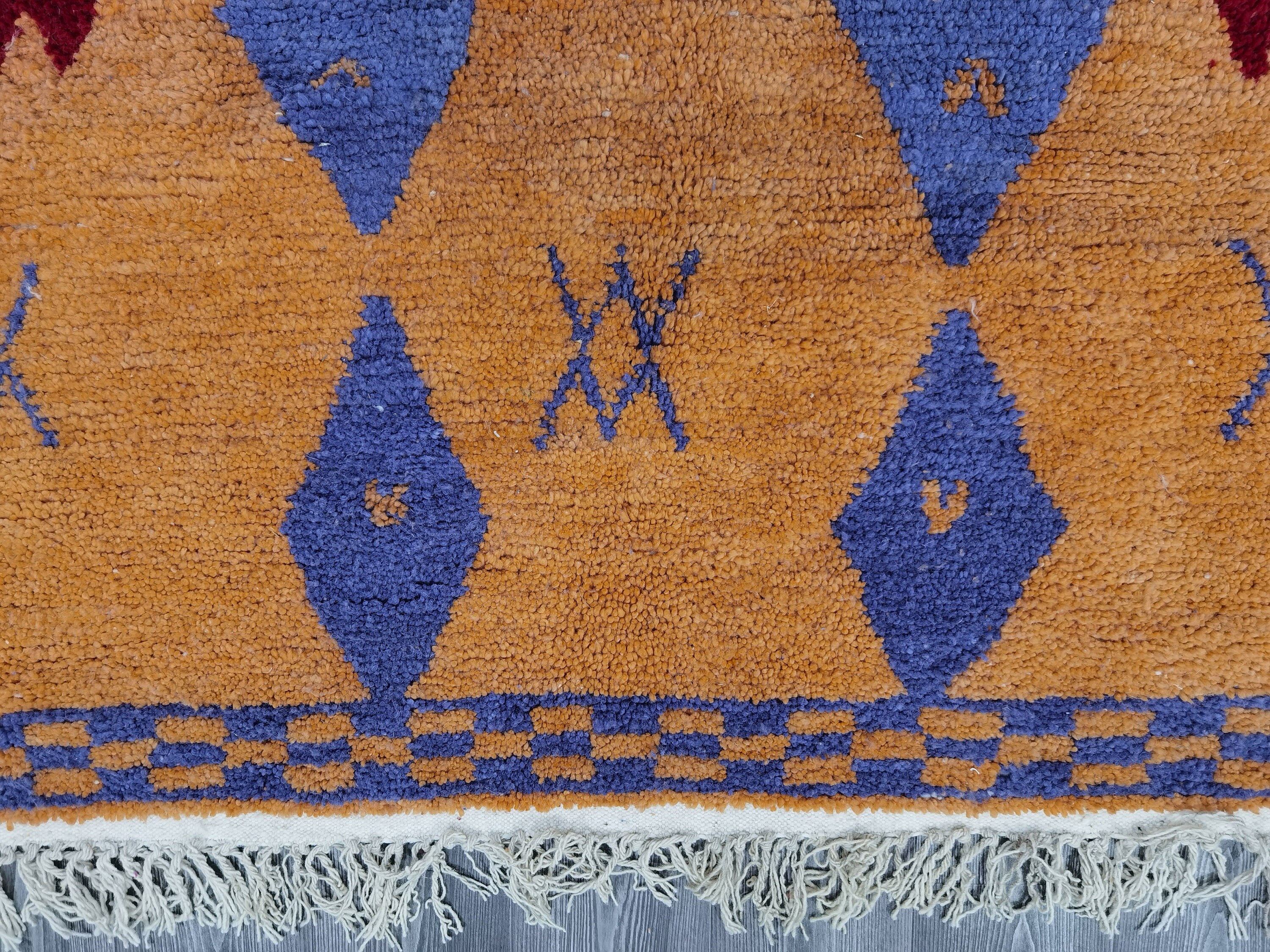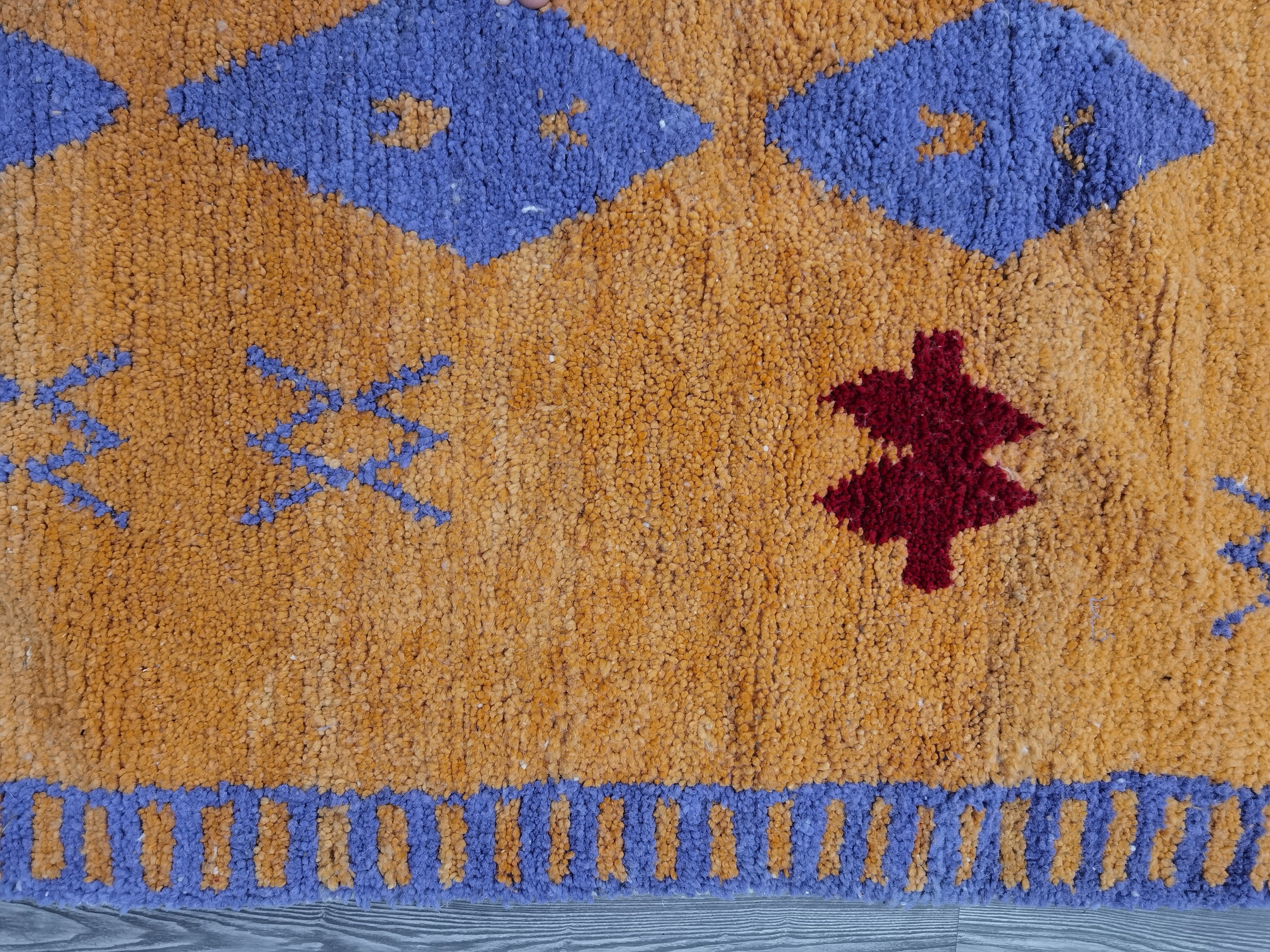 This unique Handwoven Moroccan Boujaad wool rug is one of a kind. A unique rare artistic handmade art, a beautiful combination of colors. which makes it the best choice whether for your house or your showroom. The famous Boujaad rug is now on the cover of the world’s leading home decoration magazines. This rug with character goes perfectly with all interior styles, Bohemian, Modern, Minimalist, Scandinavian, Traditional, which makes it the best choice for your needs.