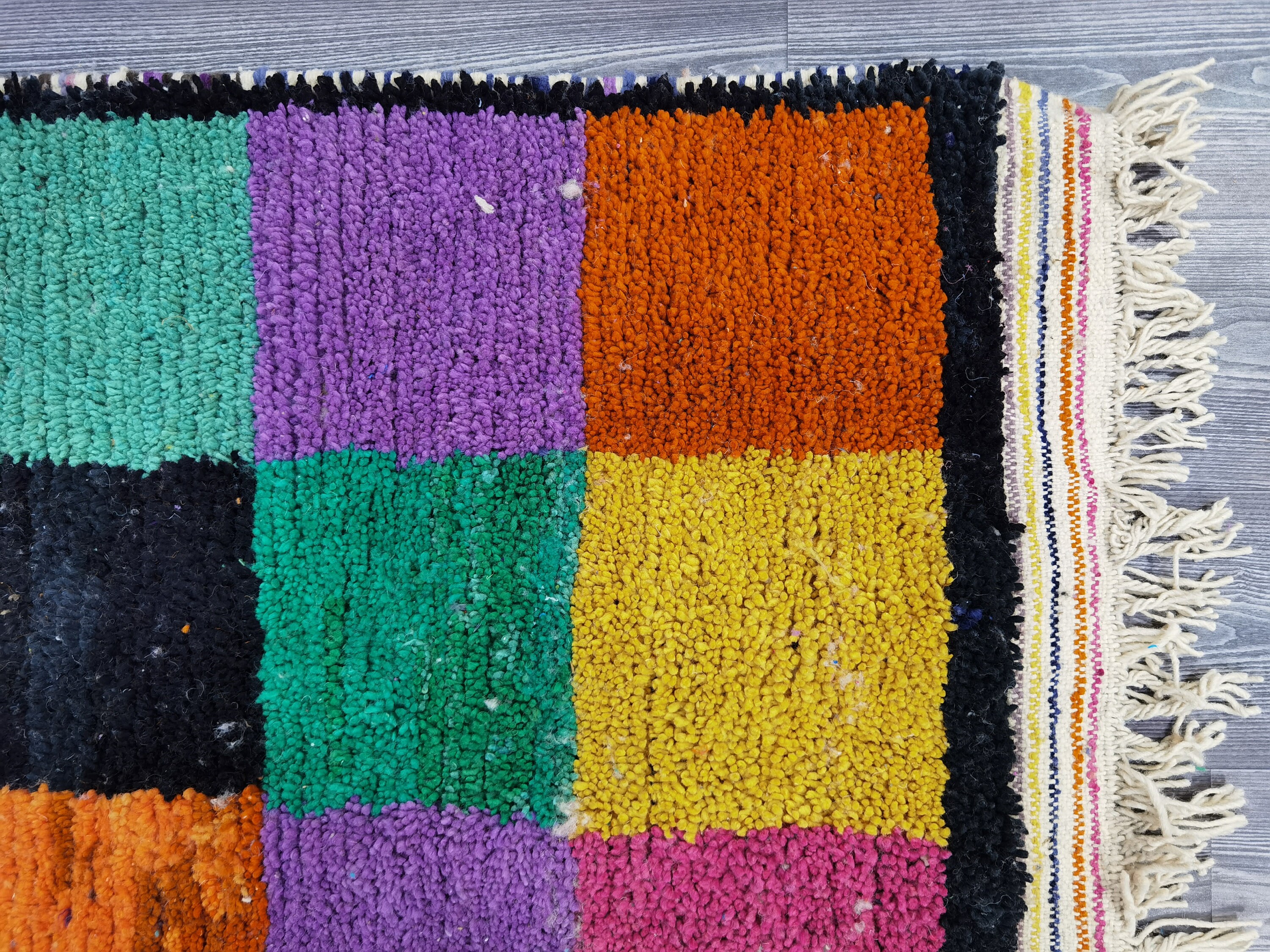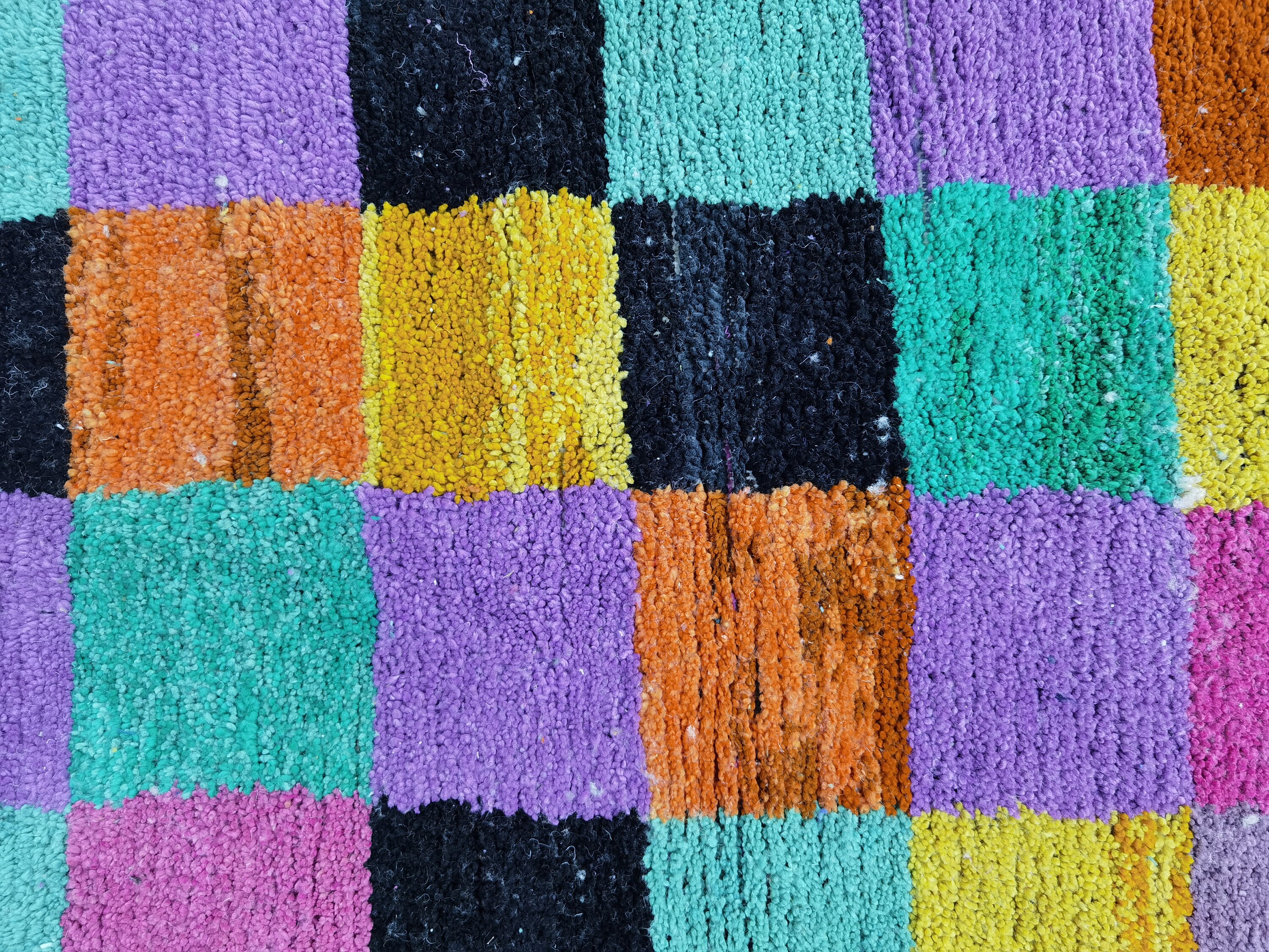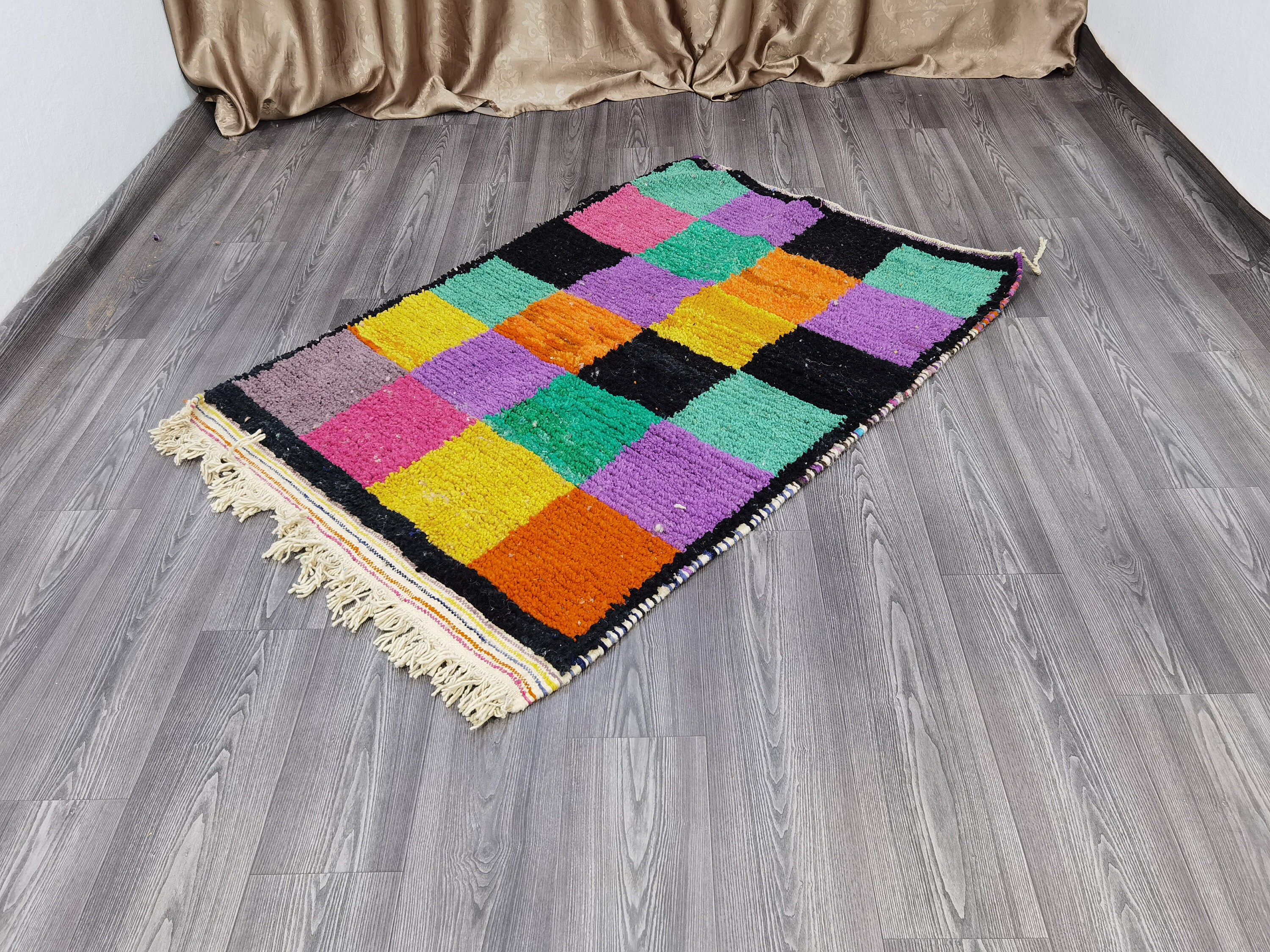 Checkered Moroccan Rug Multicolor, Checkered Carpet Beni Ourain, Custom Berber Area Rug, Handwoven Wool Rug,Azilal Wool Rug, Moroccan Rug