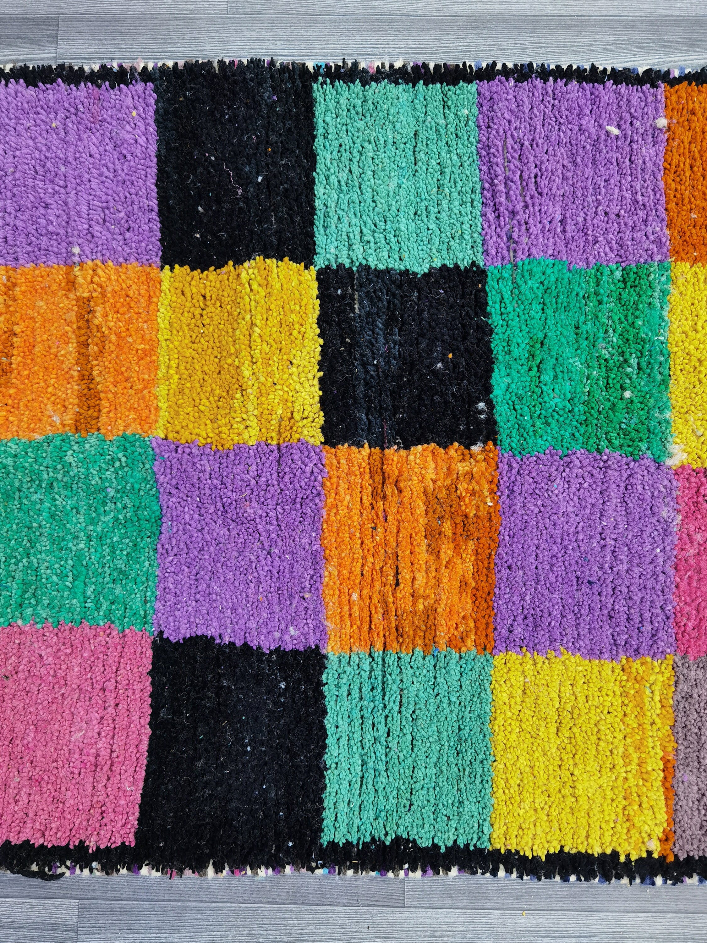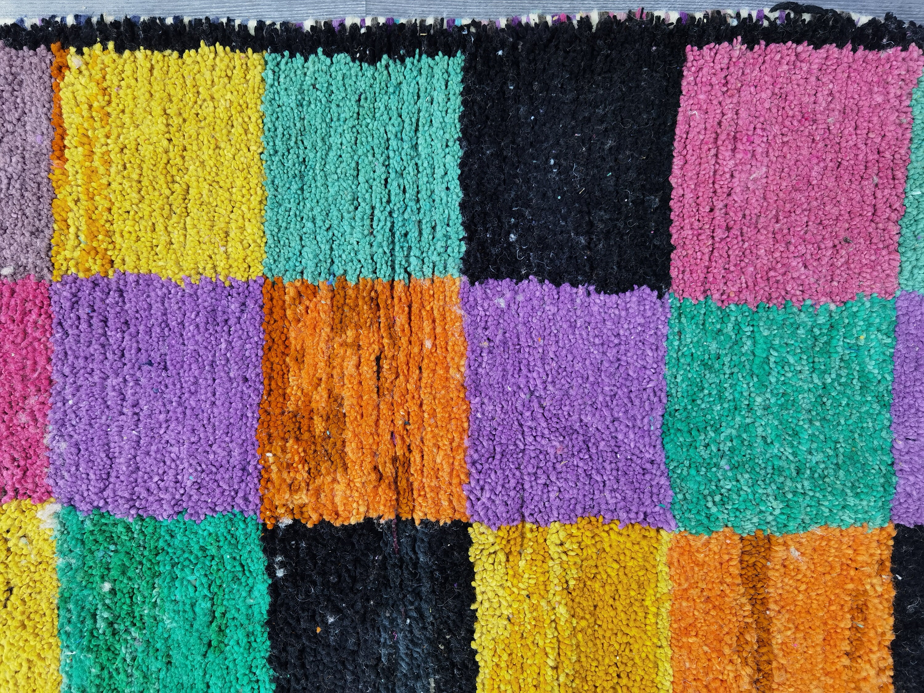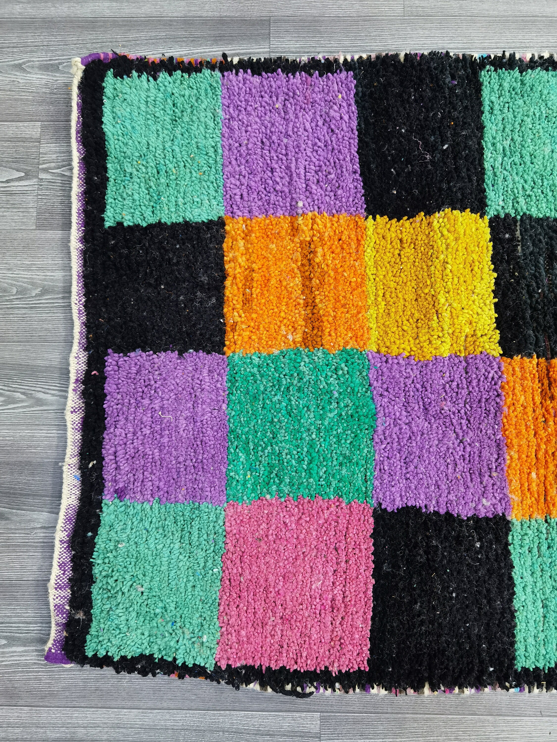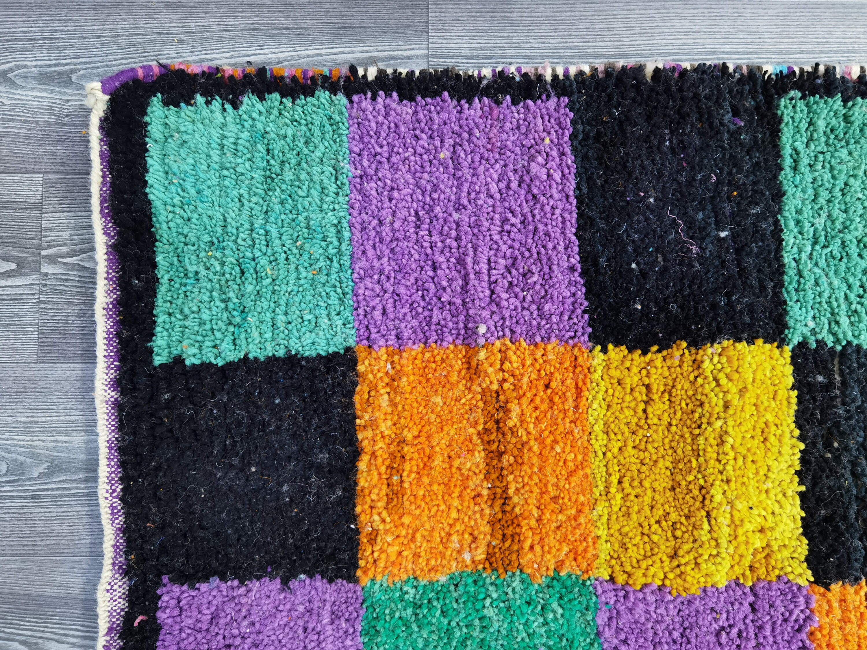 Checkered Moroccan Rug Multicolor, Checkered Carpet Beni Ourain, Custom Berber Area Rug, Handwoven Wool Rug,Azilal Wool Rug, Moroccan Rug
