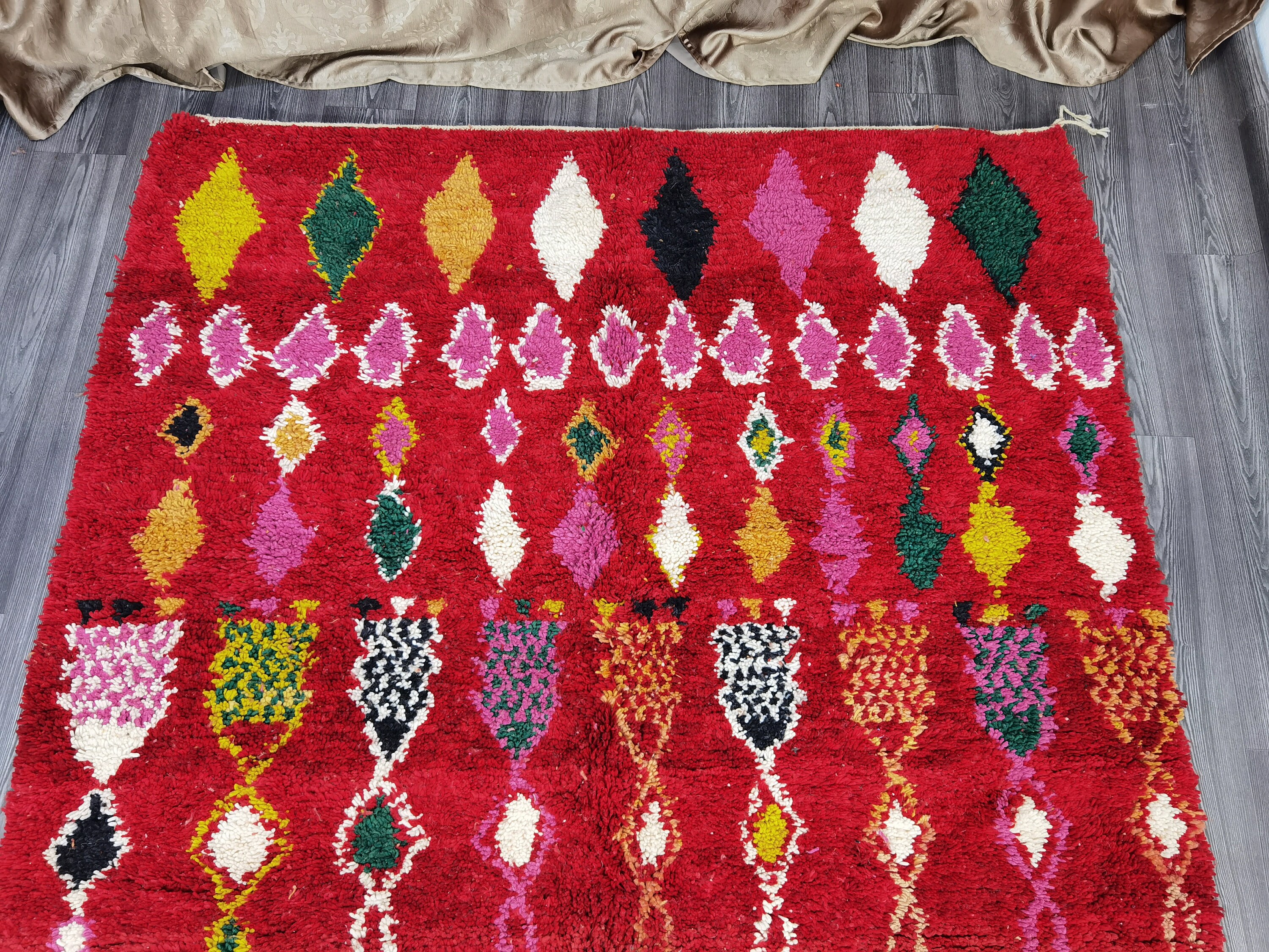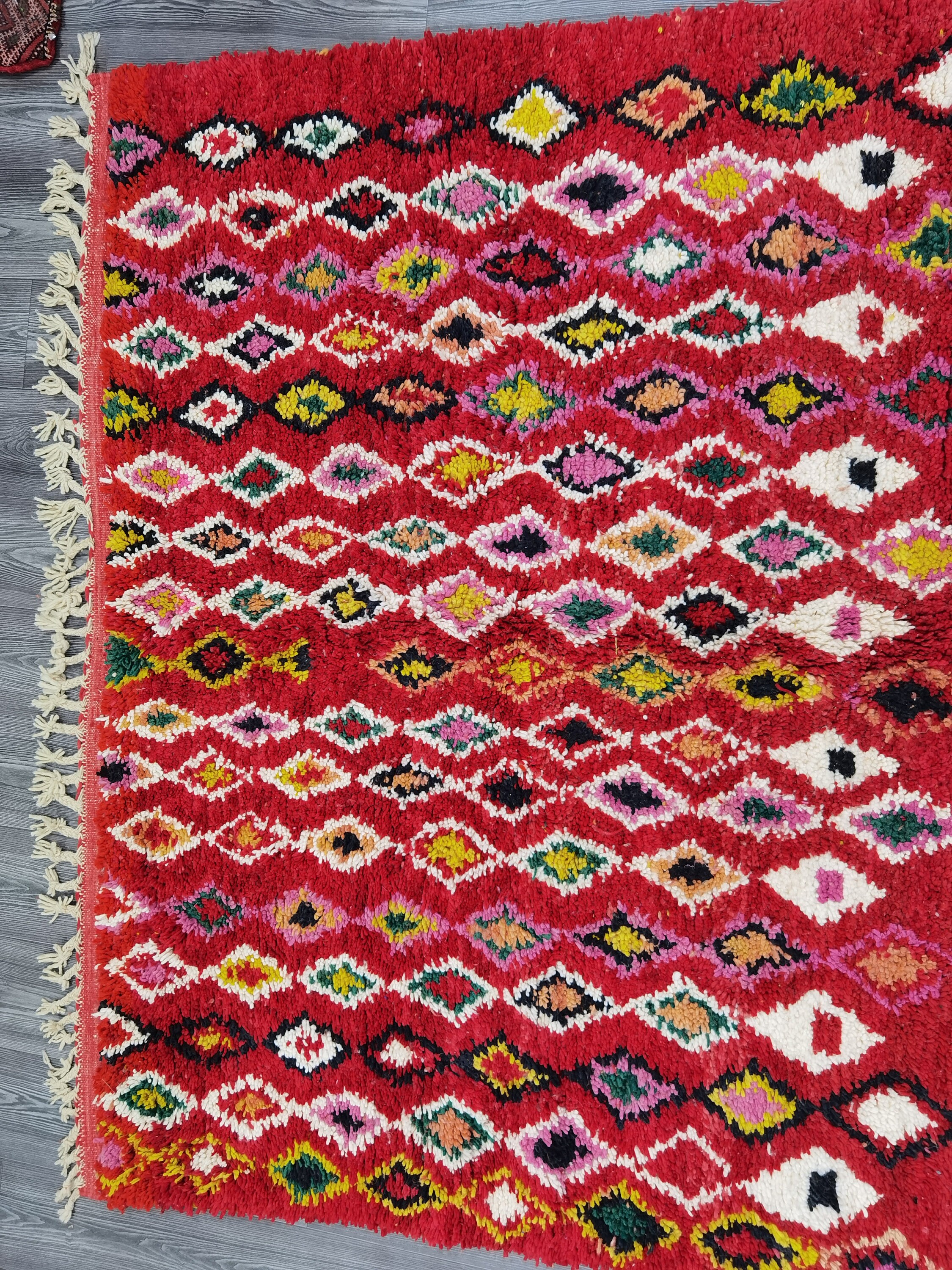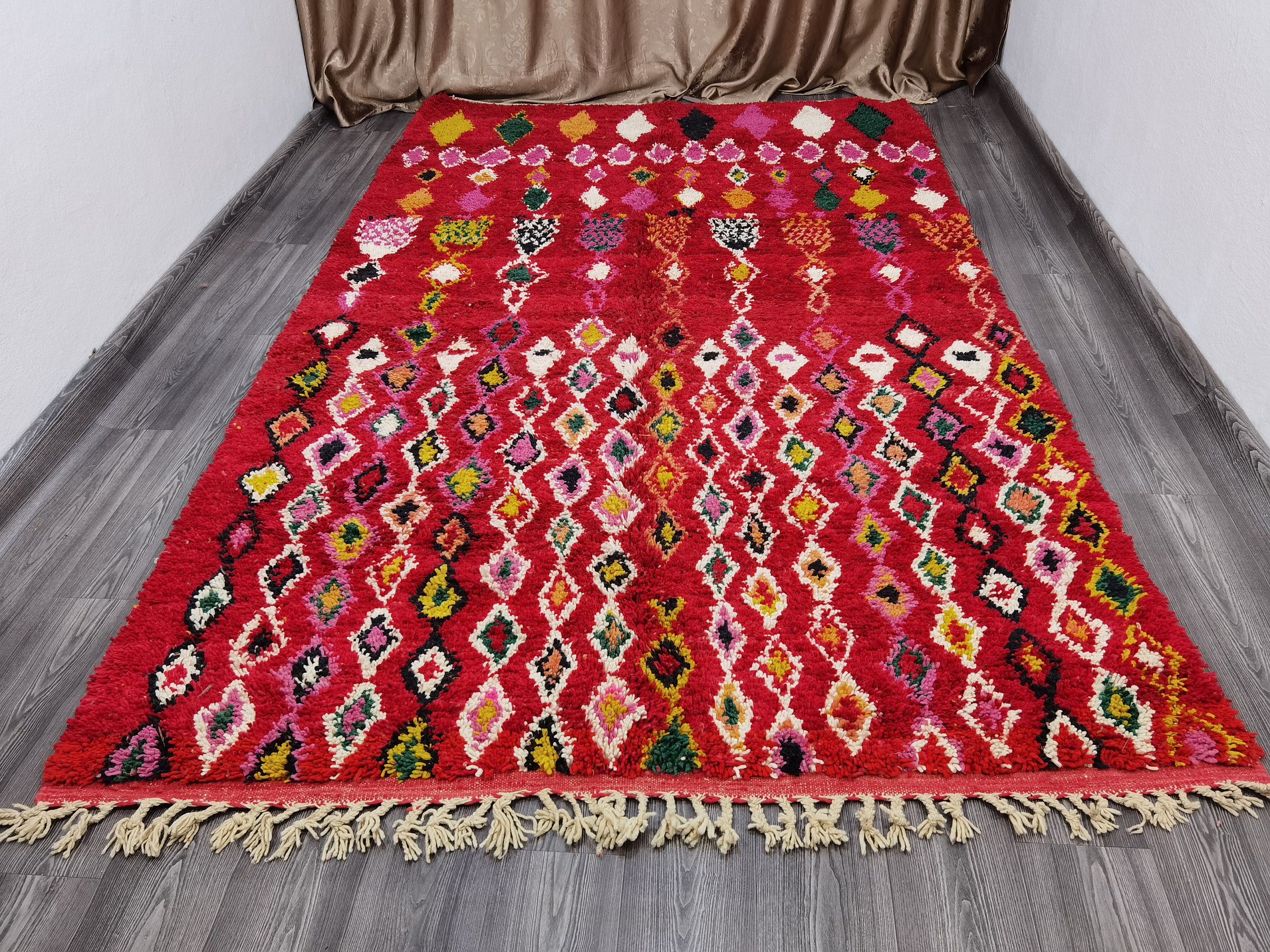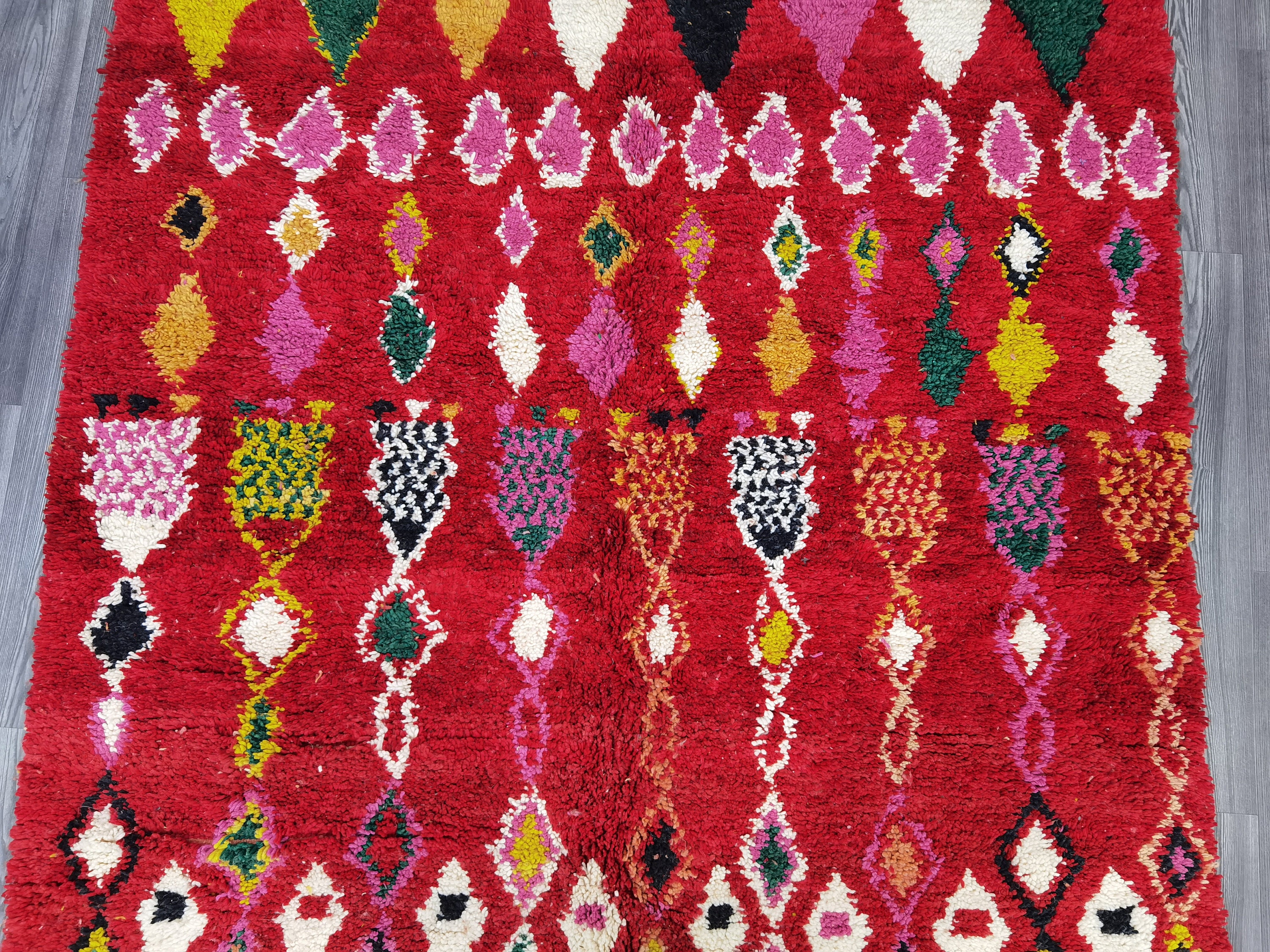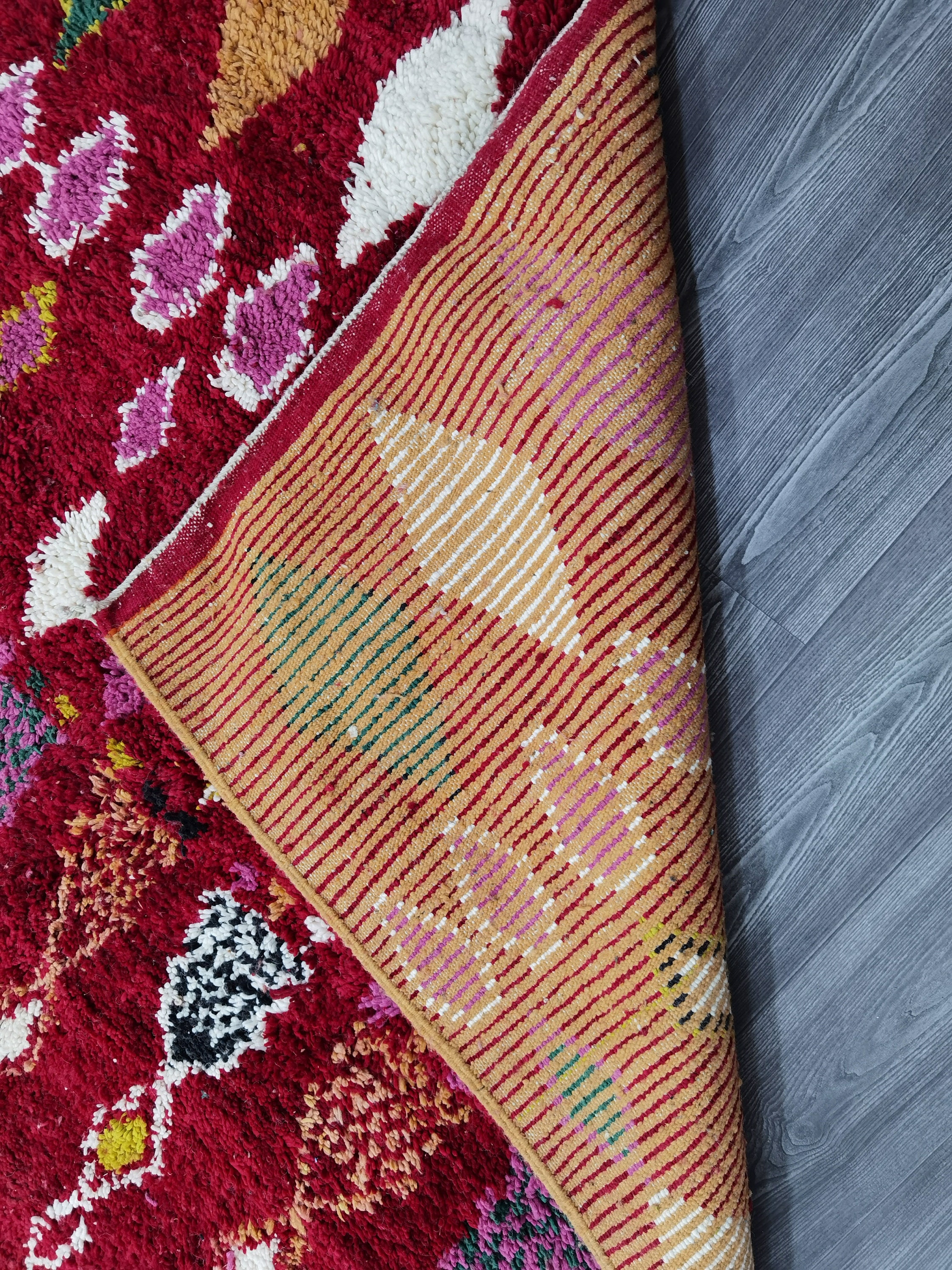 This unique Handwoven Moroccan Boujaad wool rug is one of a kind. A unique rare artistic handmade art, a beautiful combination of colors. which makes it the best choice whether for your house or your showroom. The famous Boujaad rug is now on the cover of the world’s leading home decoration magazines. This rug with character goes perfectly with all interior styles, Bohemian, Modern, Minimalist, Scandinavian, Traditional, which makes it the best choice for your needs.