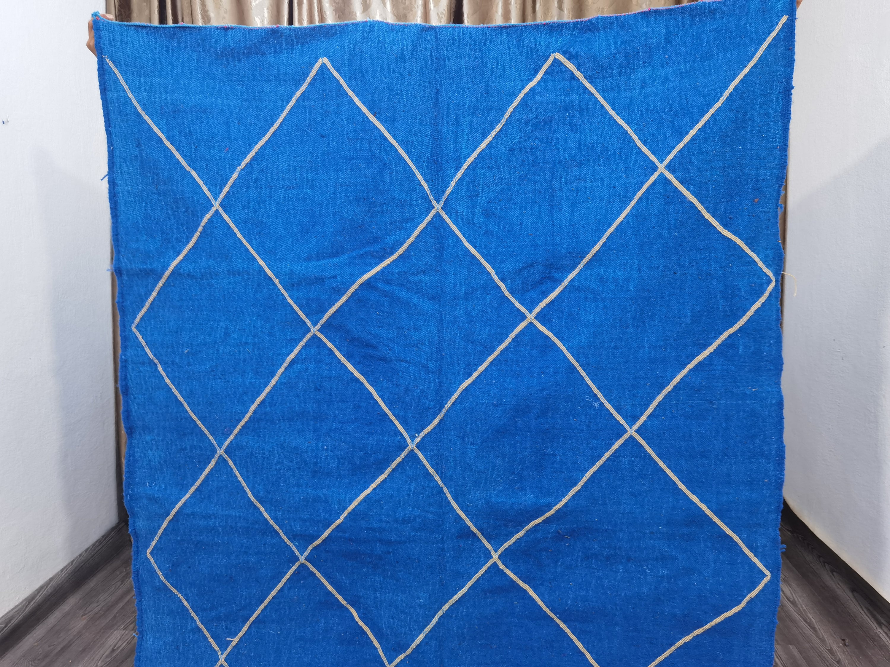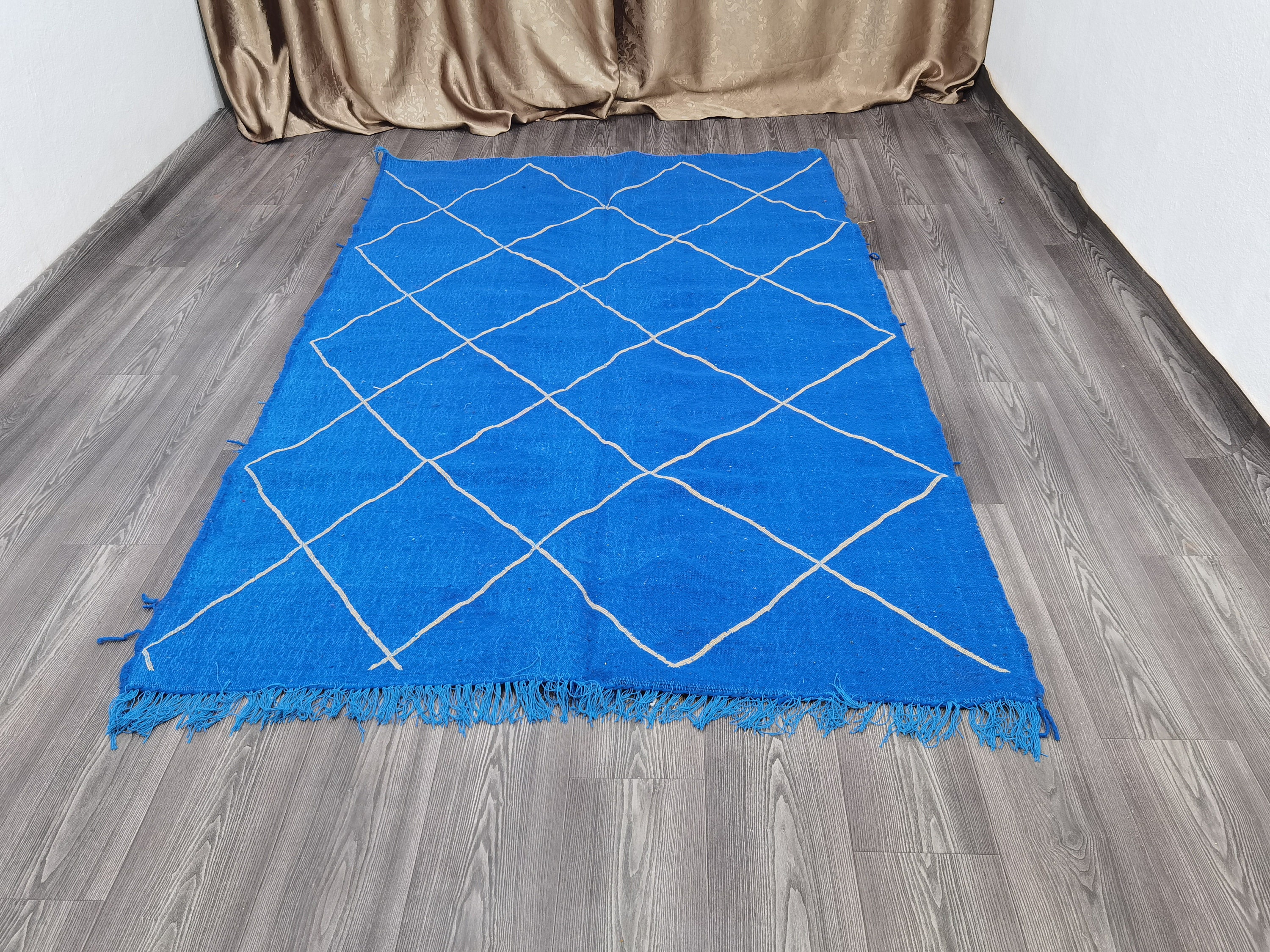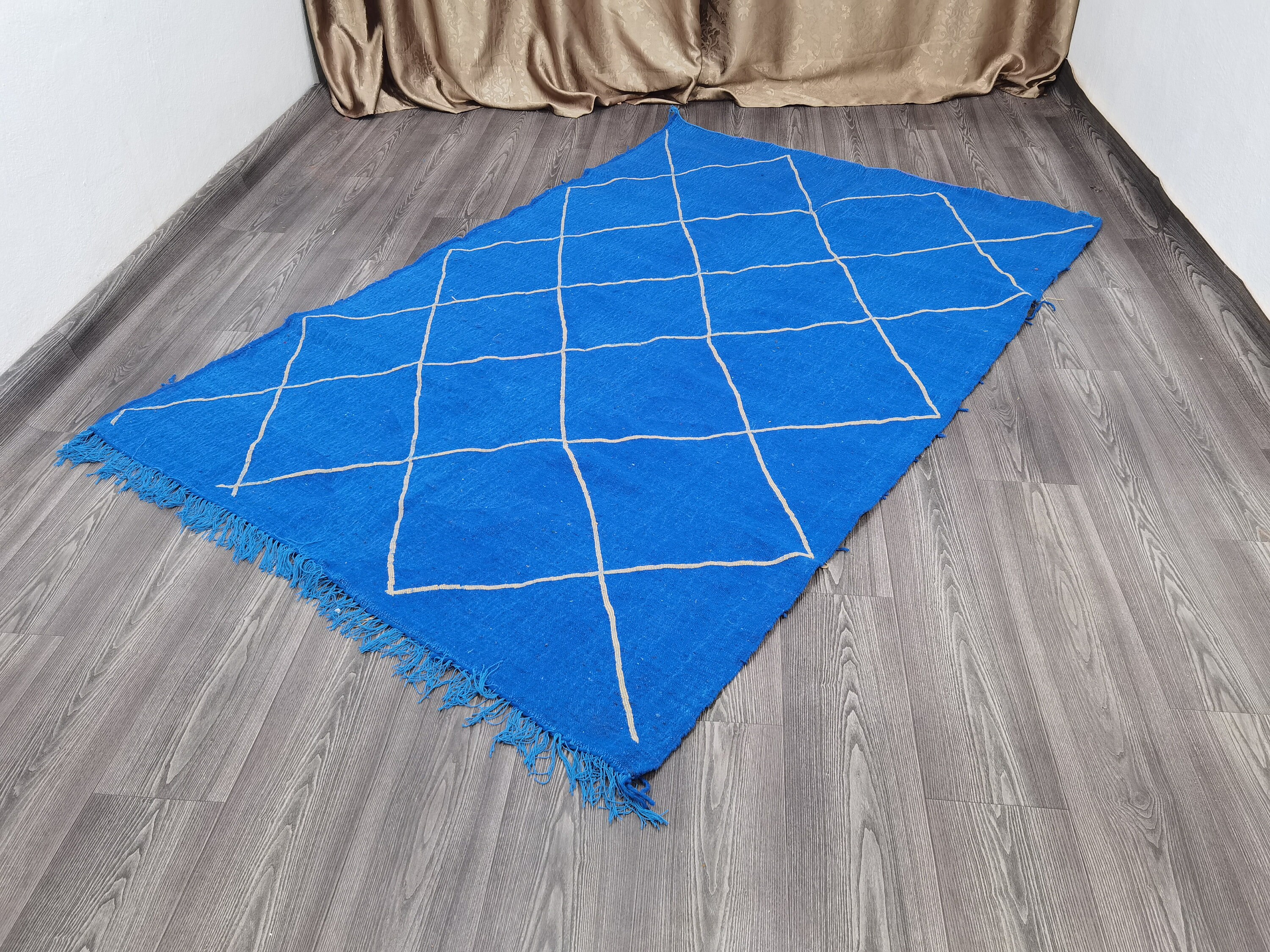 Custom Moroccan Kilim Rug, Blue Moroccan kilim rug, Hand knotted Wool rug, Kilim Flat rug, Custom area rug, Texture Kilim, Kilim Hanbal