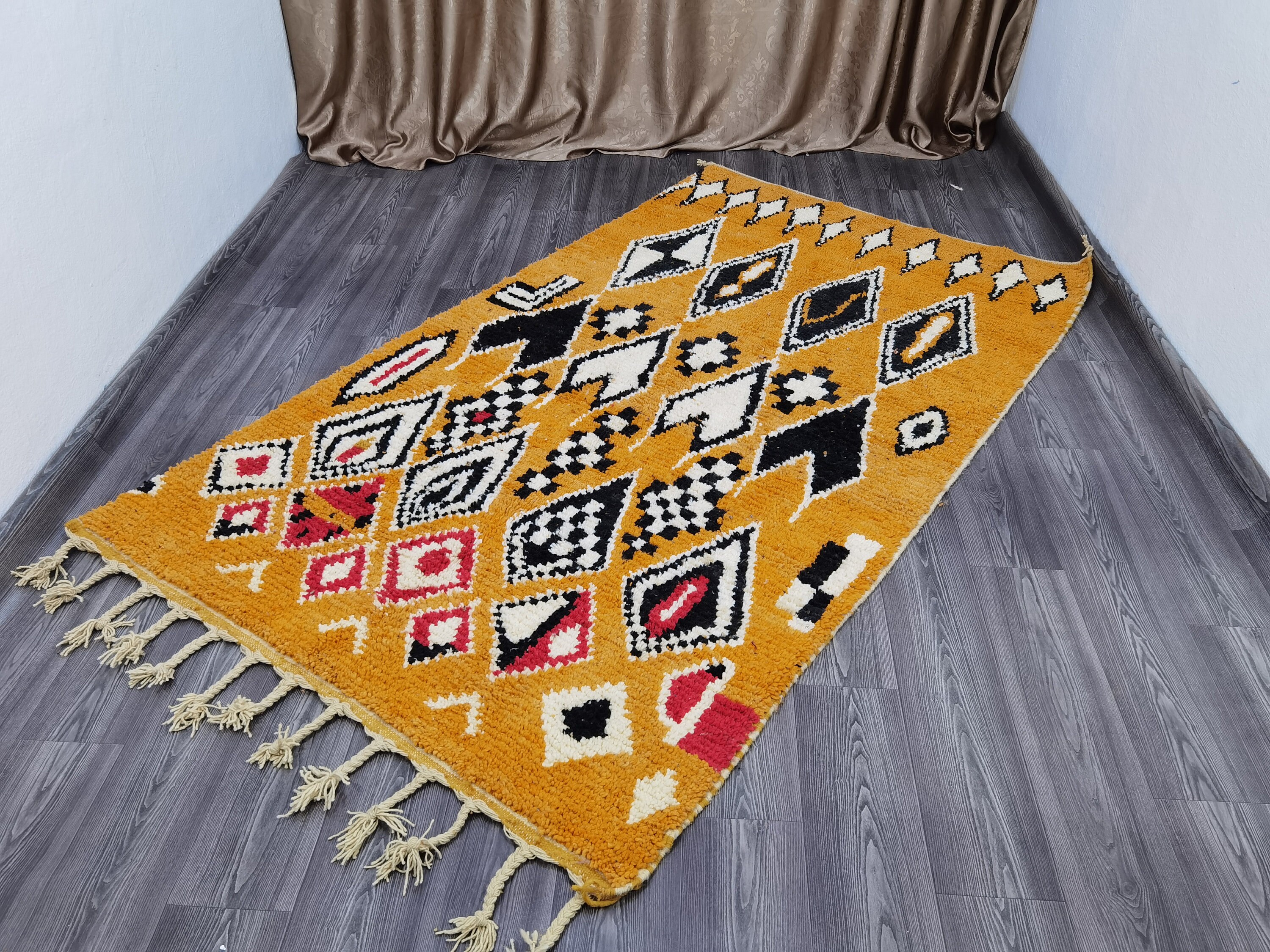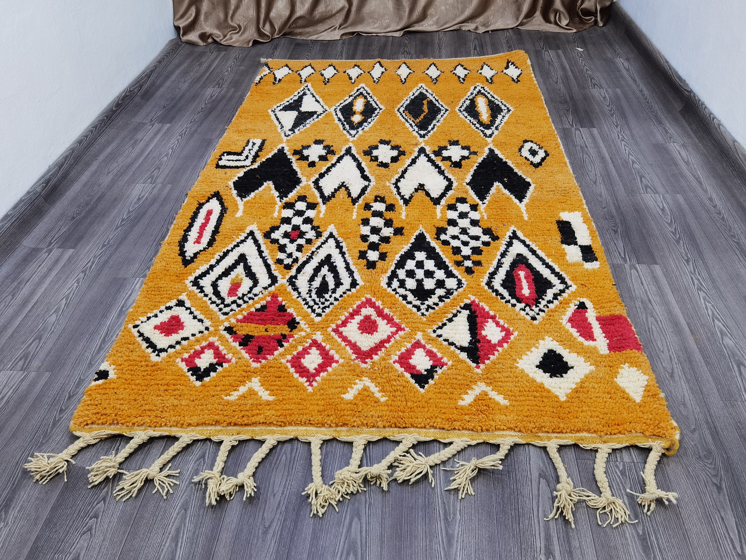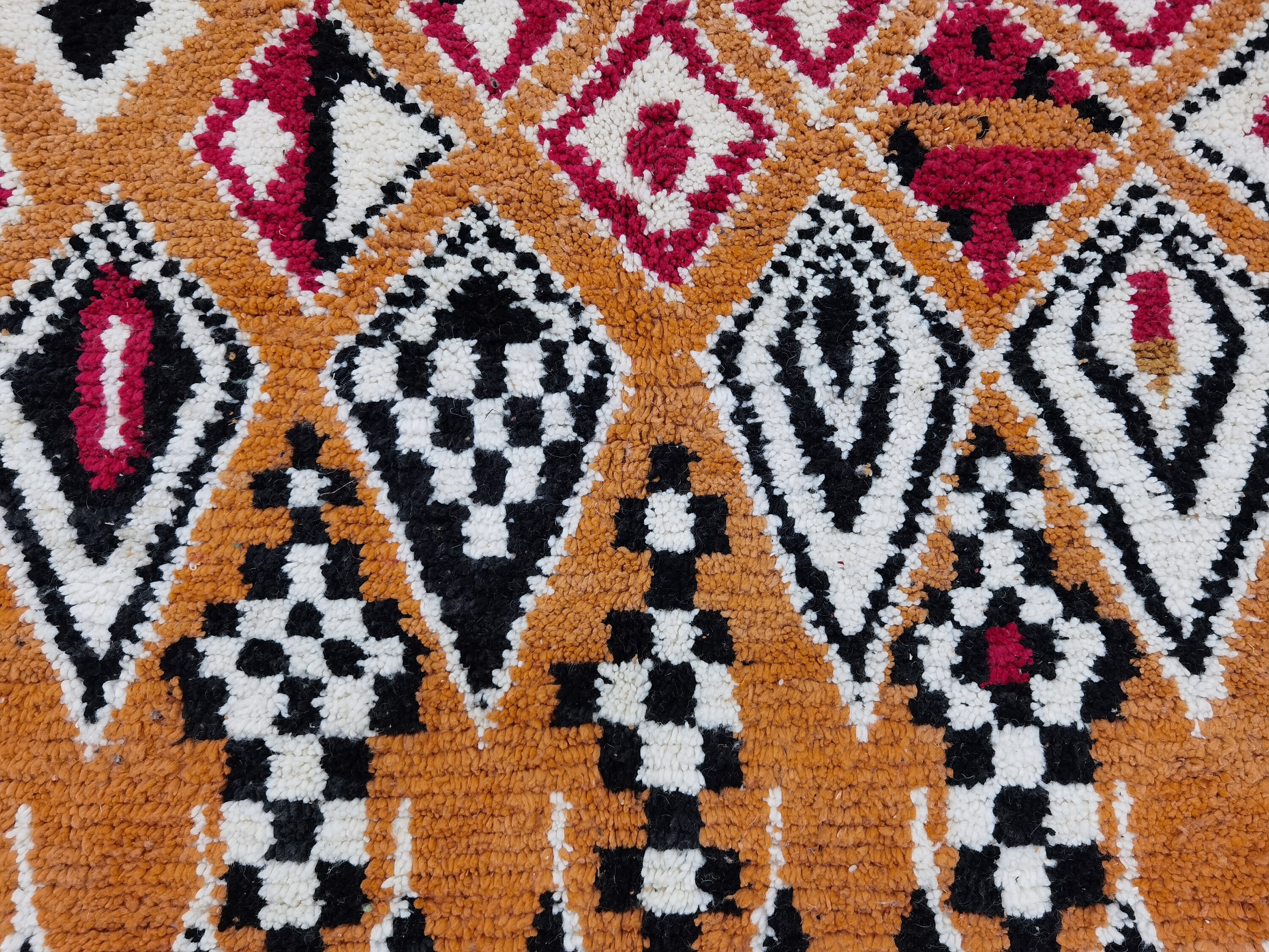 This unique Handwoven Moroccan Boujaad wool rug is one of a kind. A unique rare artistic handmade art, a beautiful combination of colors. which makes it the best choice whether for your house or your showroom. The famous Boujaad rug is now on the cover of the world’s leading home decoration magazines. This rug with character goes perfectly with all interior styles, Bohemian, Modern, Minimalist, Scandinavian, Traditional, which makes it the best choice for your needs.