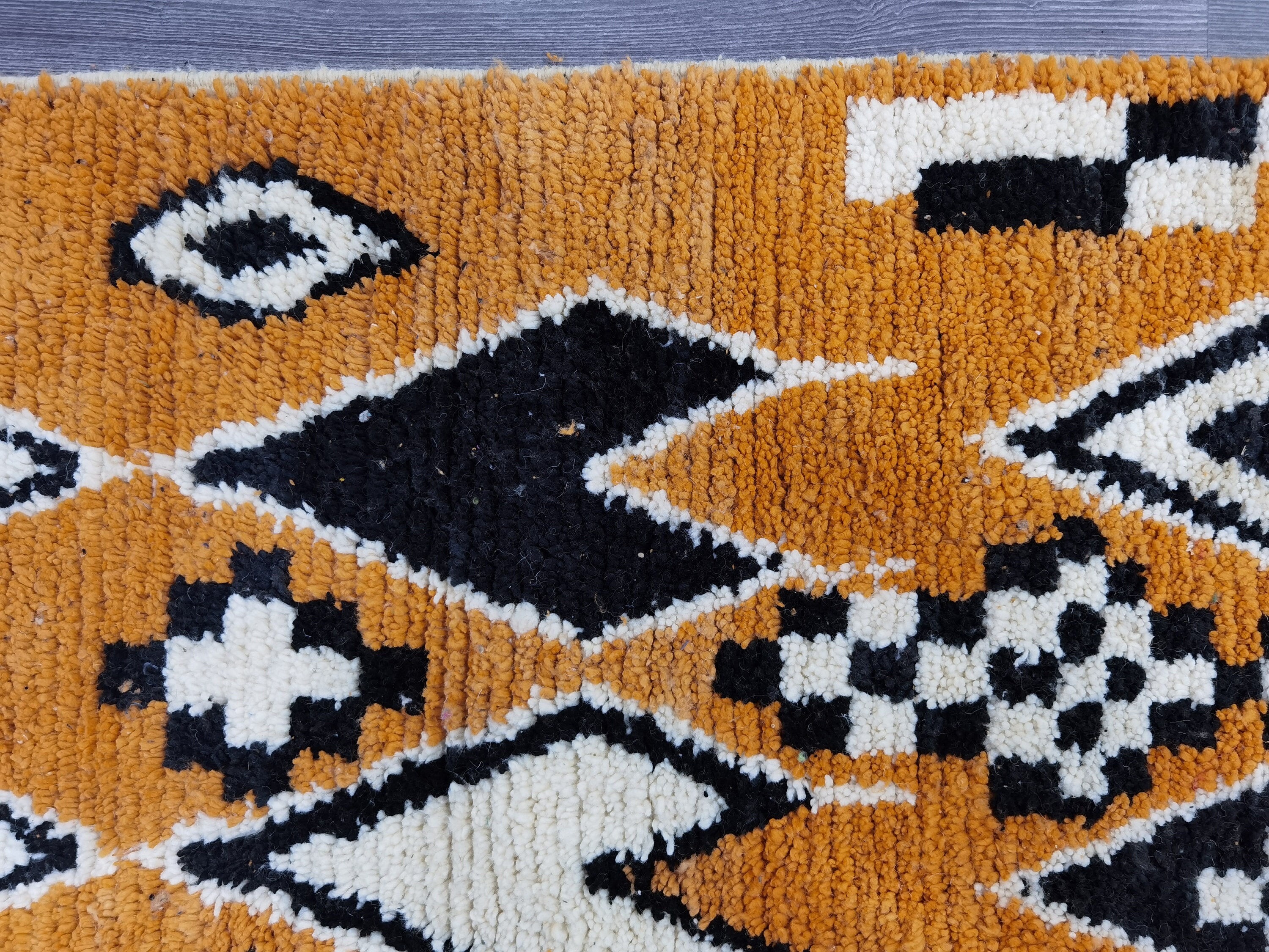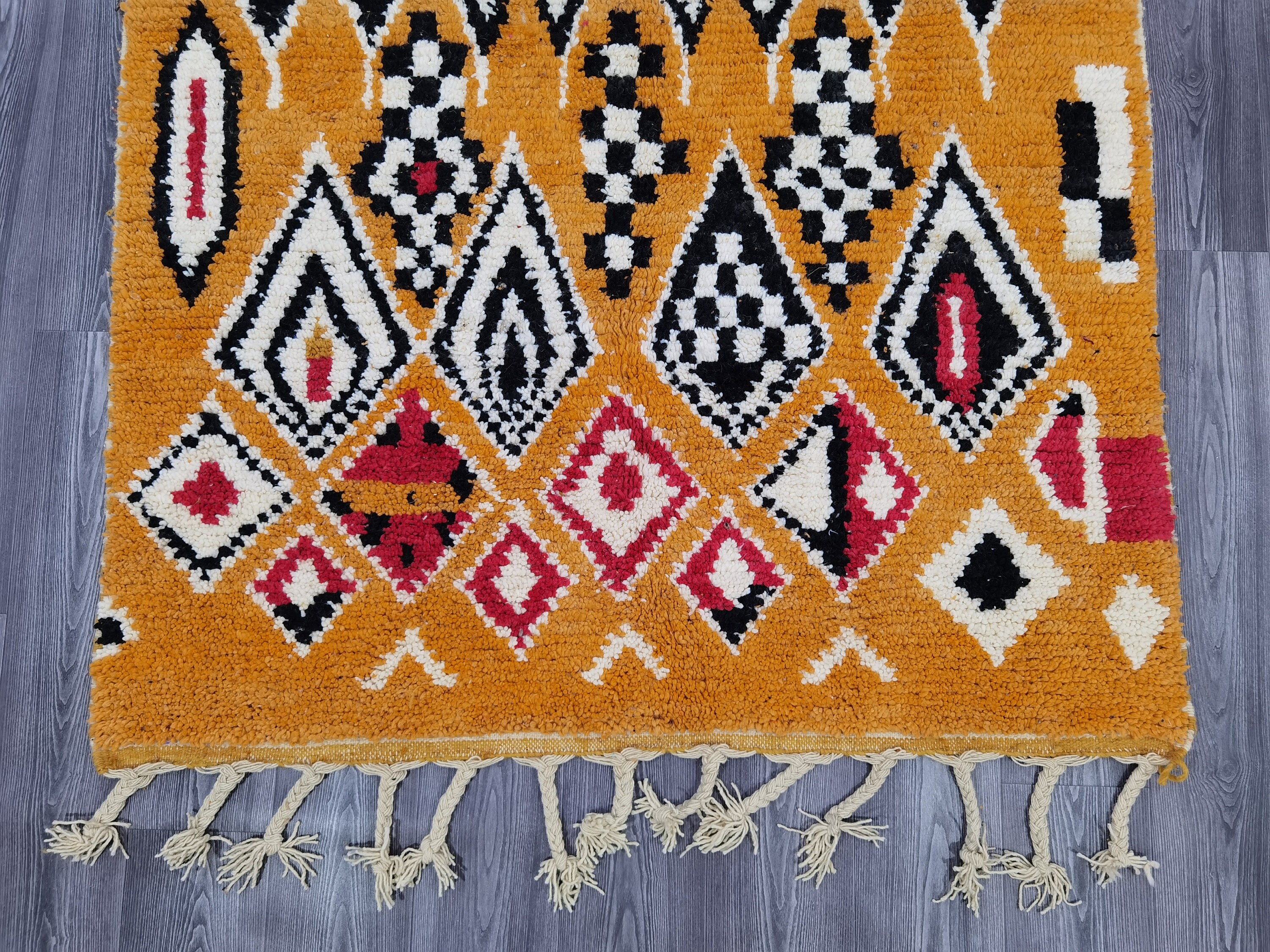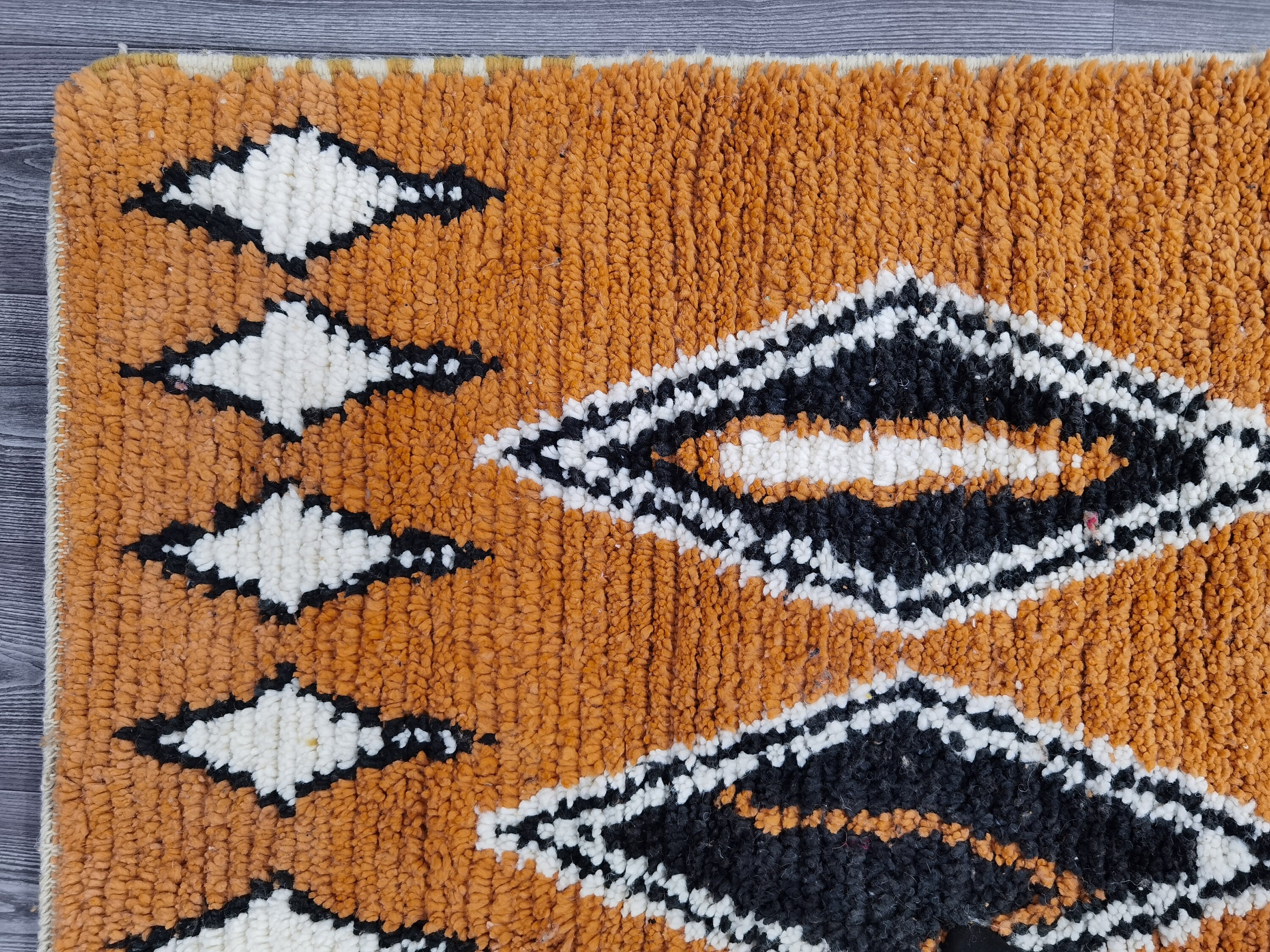 This unique Handwoven Moroccan Boujaad wool rug is one of a kind. A unique rare artistic handmade art, a beautiful combination of colors. which makes it the best choice whether for your house or your showroom. The famous Boujaad rug is now on the cover of the world’s leading home decoration magazines. This rug with character goes perfectly with all interior styles, Bohemian, Modern, Minimalist, Scandinavian, Traditional, which makes it the best choice for your needs.