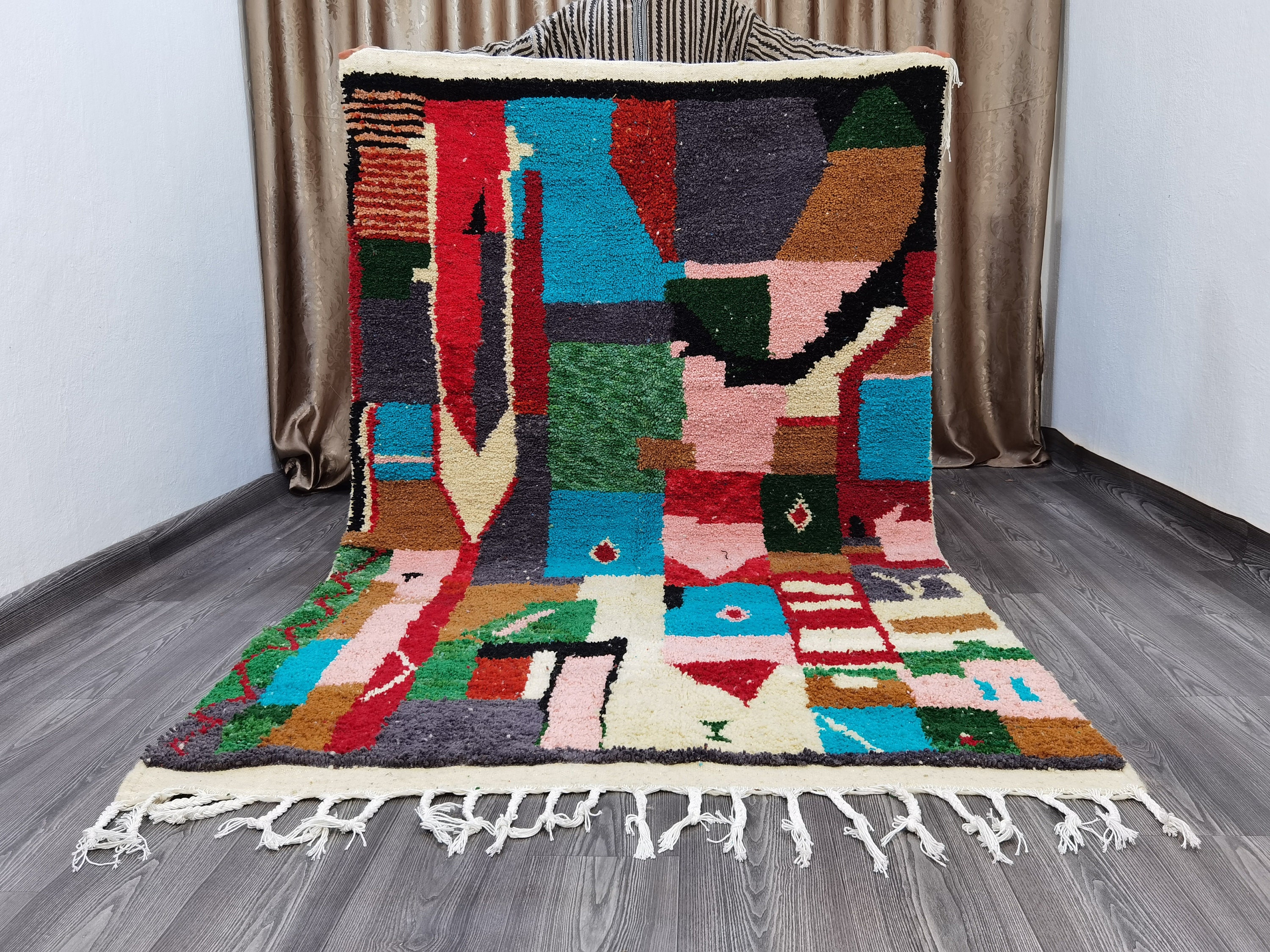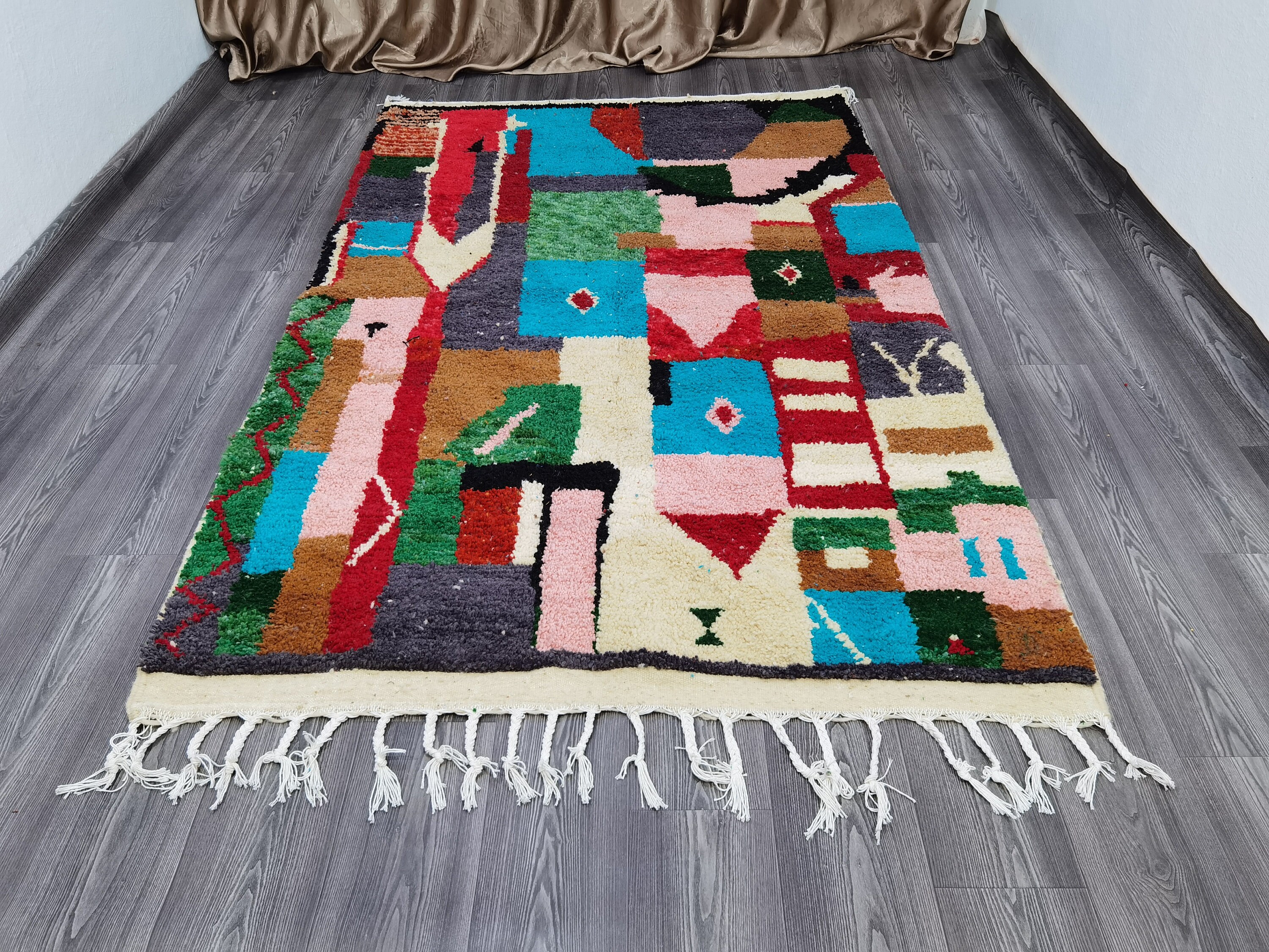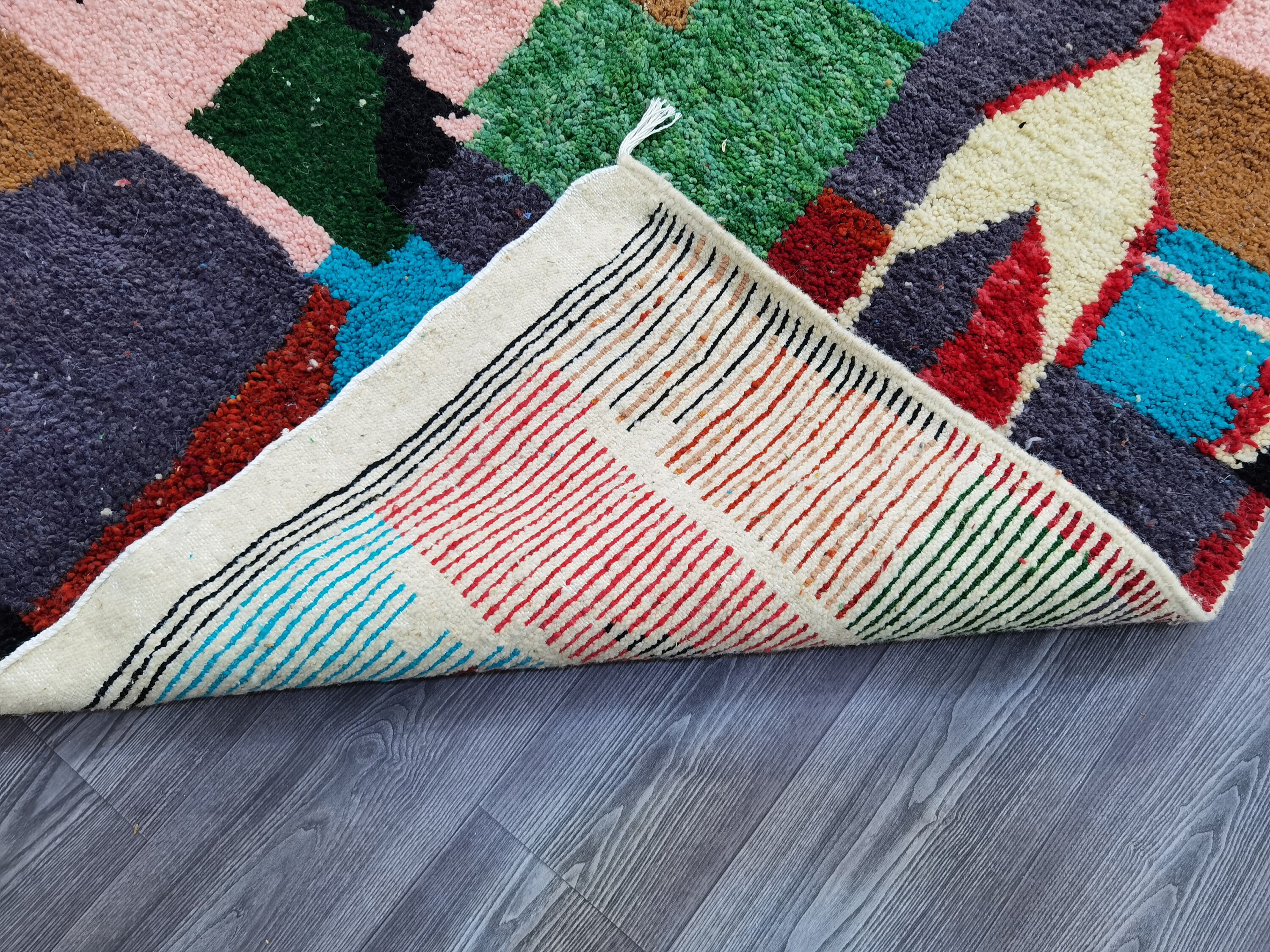 Introducing the azilal berber rug, a beautiful and unique handwoven rug made from 100% pure berber wool. This vibrant rug is perfect for adding character and color to any room in your home, and its soft, luxurious feel will make it a favorite among family and friends. Made in Morocco, this rug is sure to impress with its intricate design and stunning colors. Order yours today and enjoy years of enjoyment from this beautiful rug!
