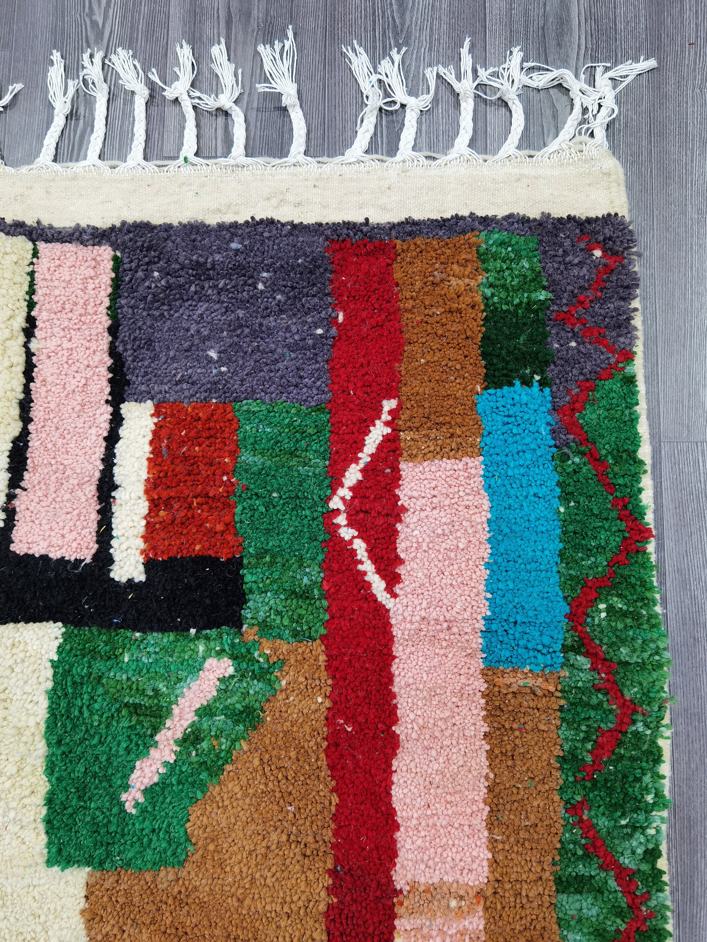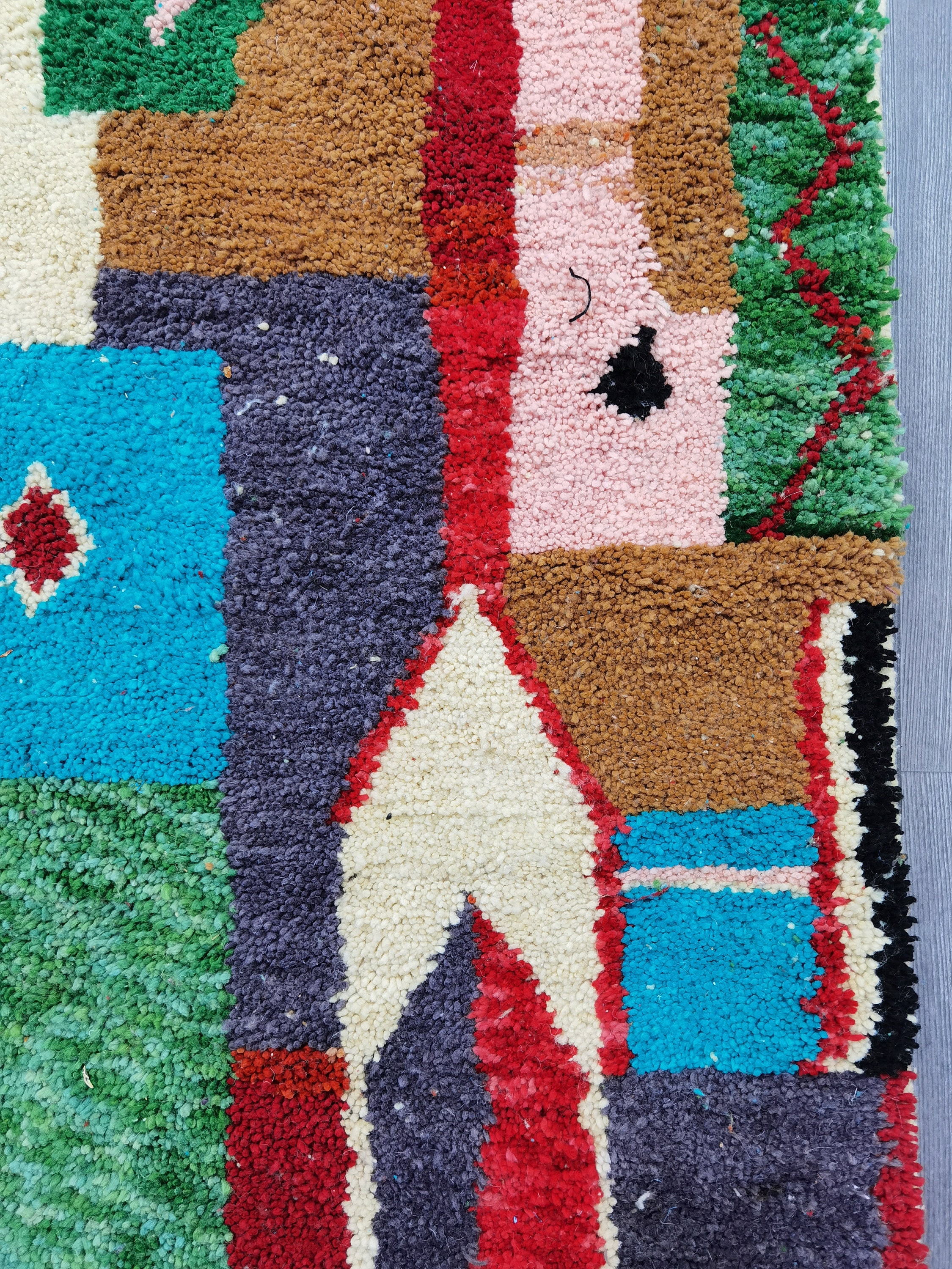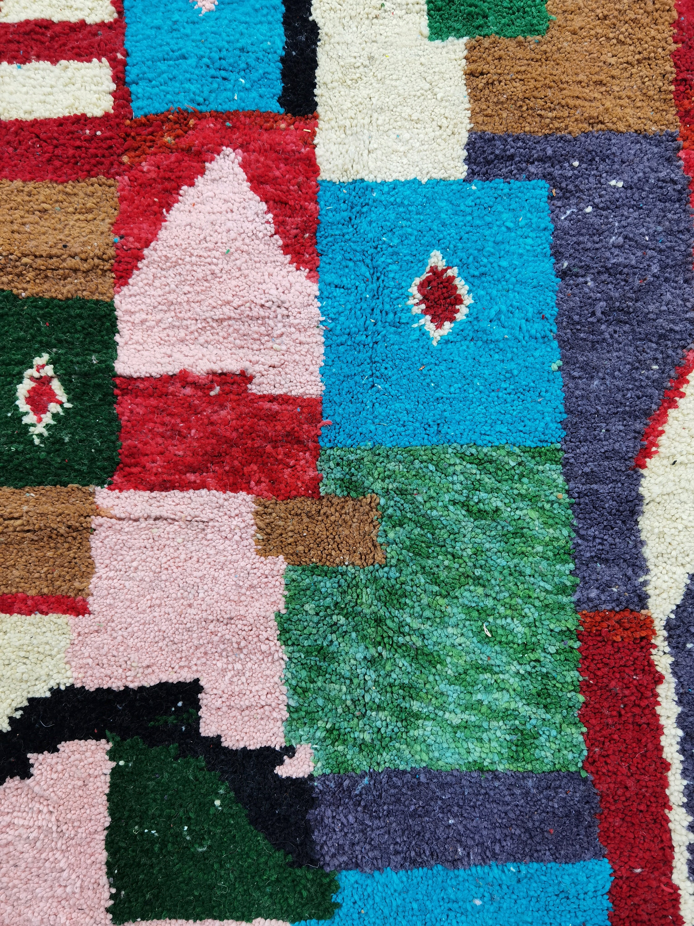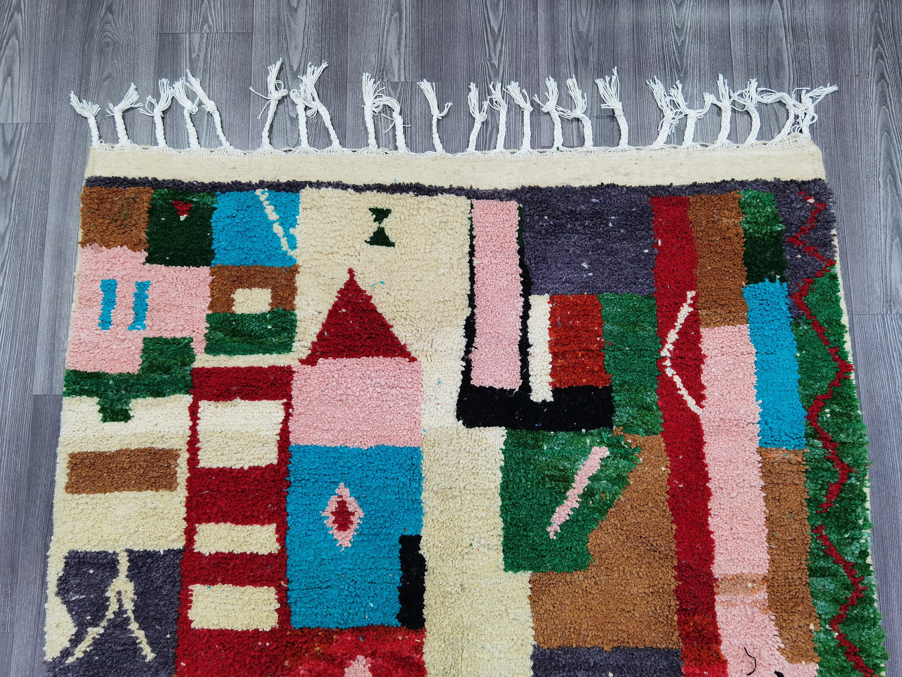 Introducing the azilal berber rug, a beautiful and unique handwoven rug made from 100% pure berber wool. This vibrant rug is perfect for adding character and color to any room in your home, and its soft, luxurious feel will make it a favorite among family and friends. Made in Morocco, this rug is sure to impress with its intricate design and stunning colors. Order yours today and enjoy years of enjoyment from this beautiful rug!