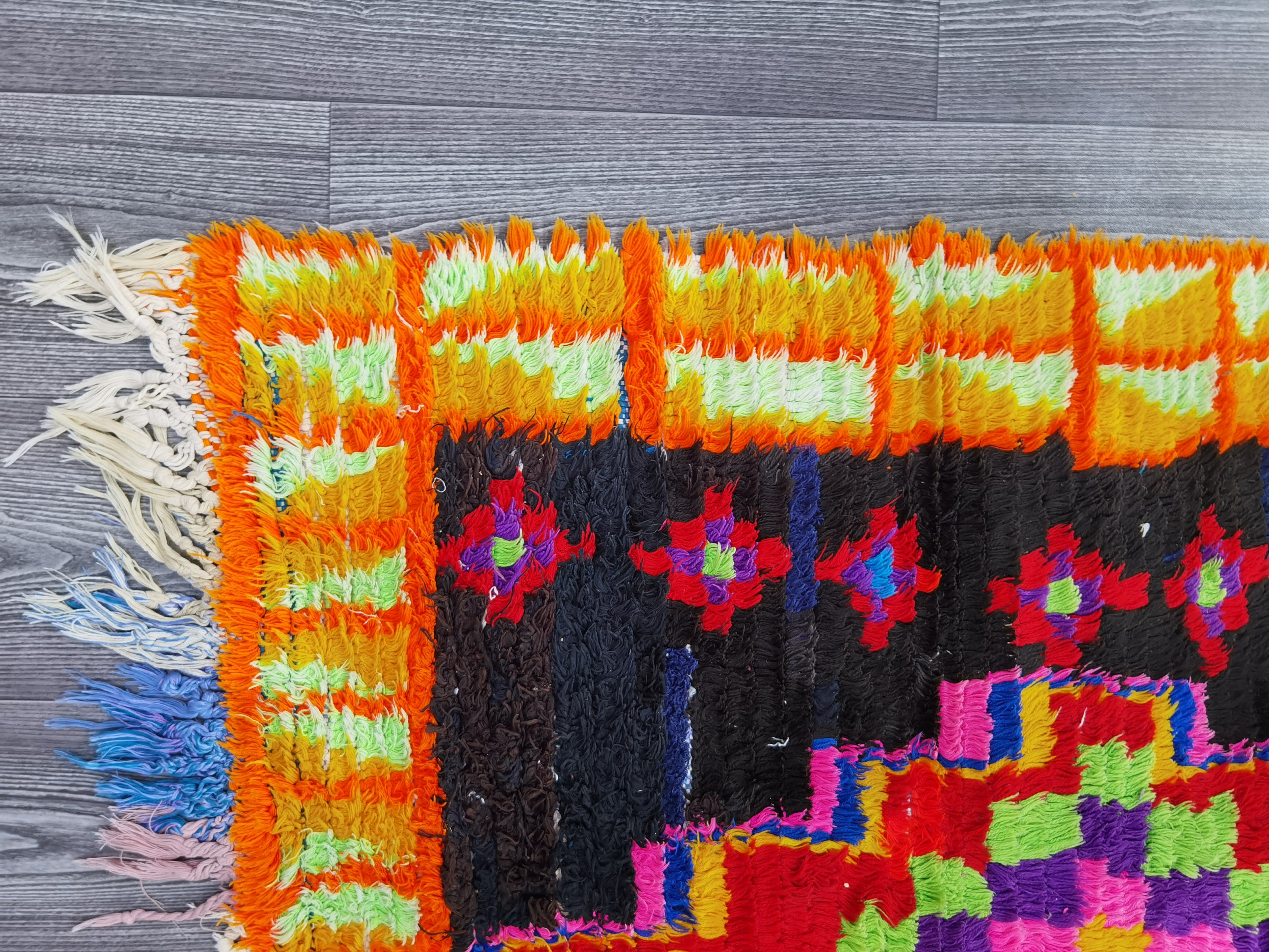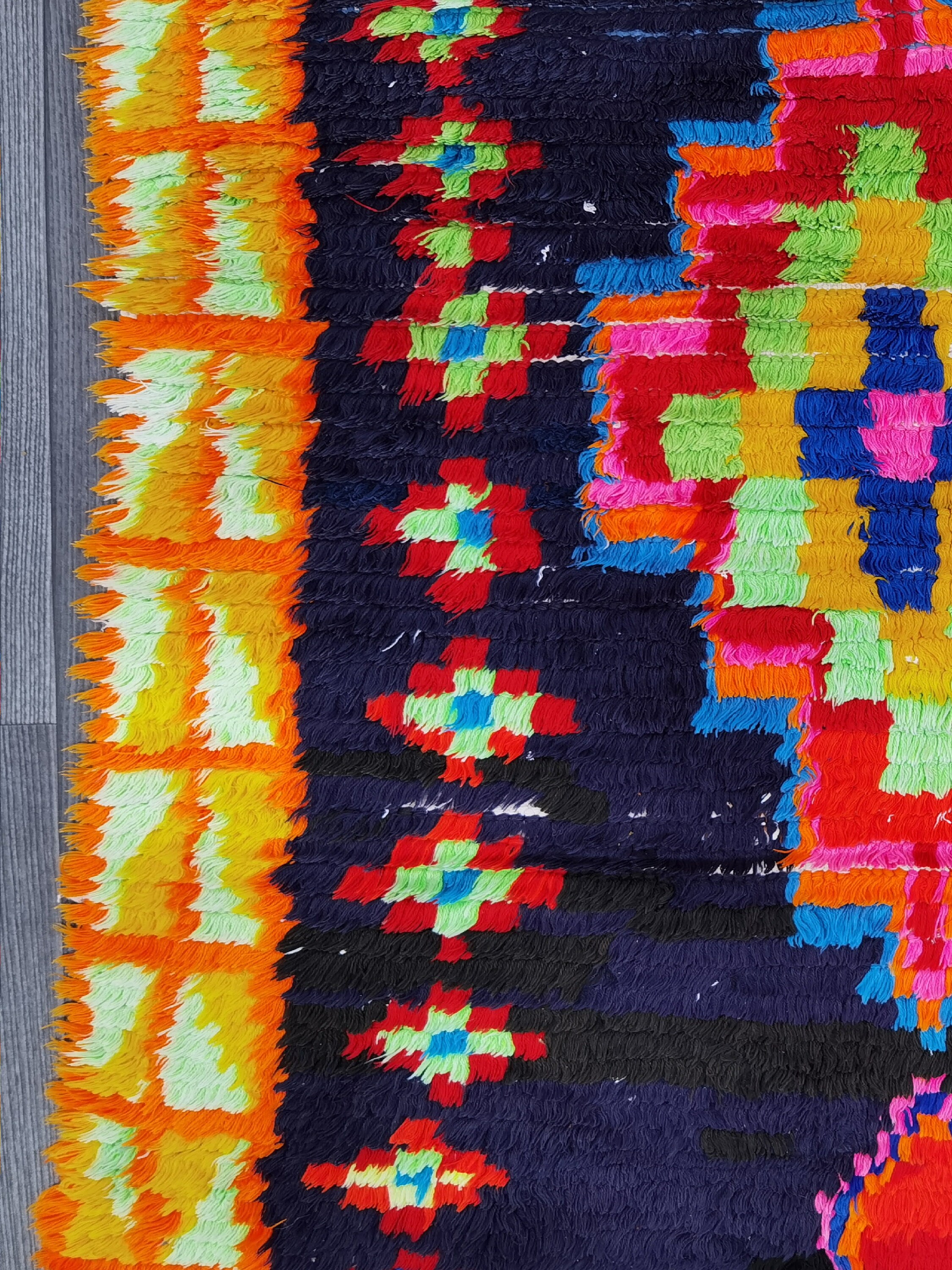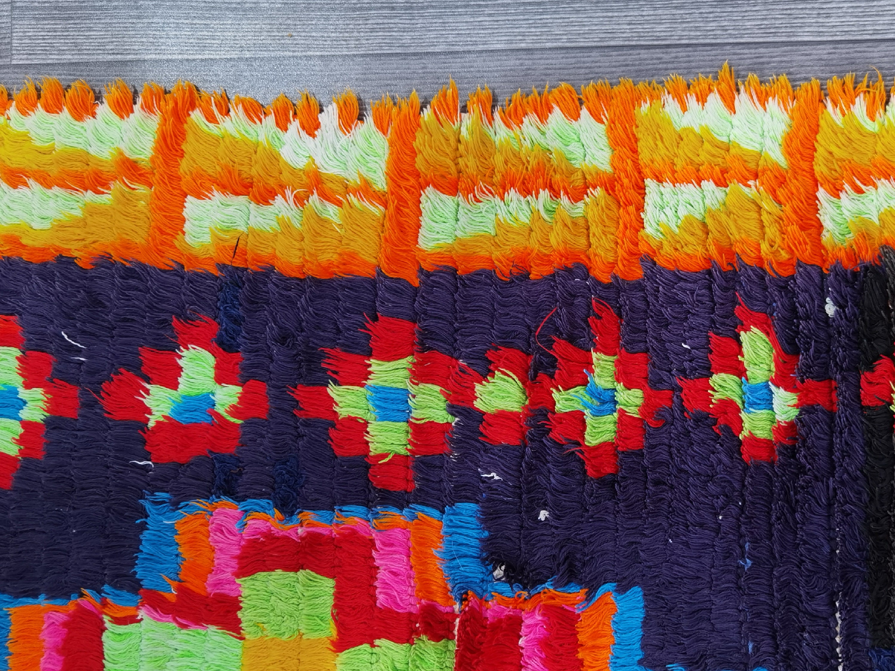 Moroccan rugs are a unique and interesting addition to any room. They can add character and warmth to any space, and are also very versatile - they can be used in any room in the house. This particular rug is made from hand-knotted moroccan thread, and is 274 cm long and 90 cm wide. It is in very good condition - it has been hand-knotted and is soft to the touch.