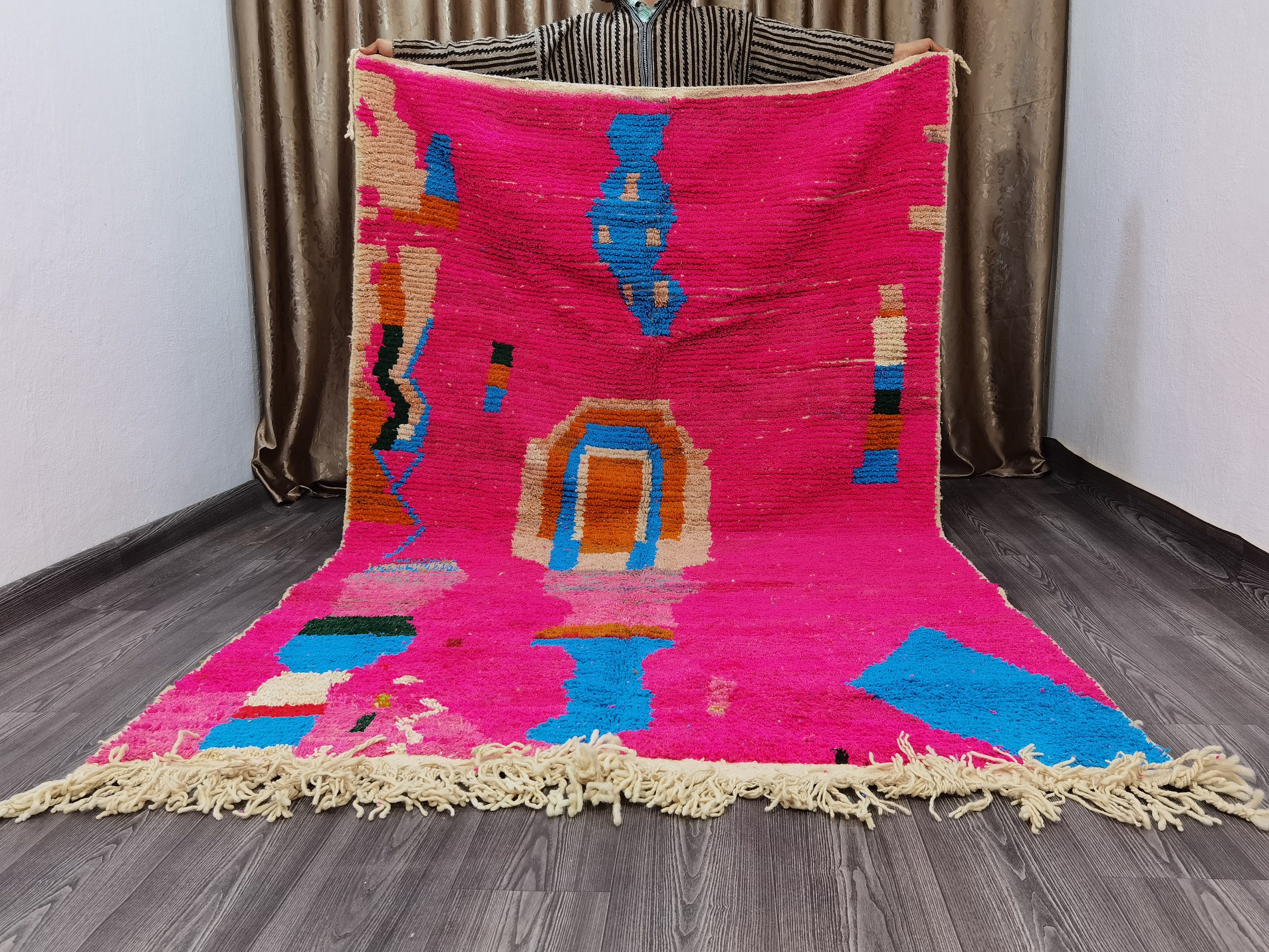 Introducing the azilal berber rug, a beautiful and unique handwoven rug made from 100% pure berber wool. This vibrant rug is perfect for adding character and color to any room in your home, and its soft, luxurious feel will make it a favorite among family and friends. Made in Morocco, this rug is sure to impress with its intricate design and stunning colors. Order yours today and enjoy years of enjoyment from this beautiful rug!