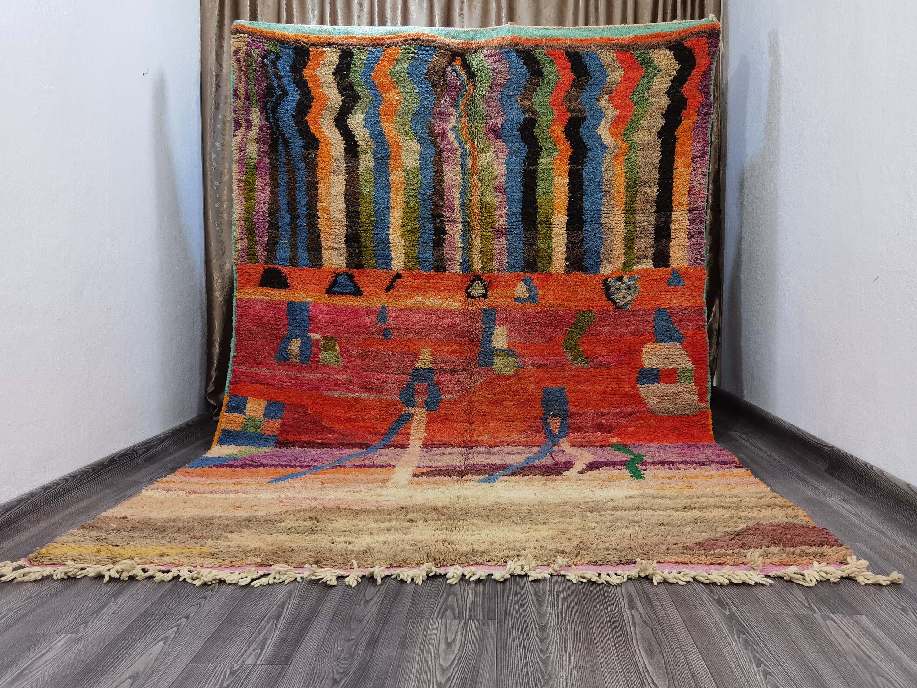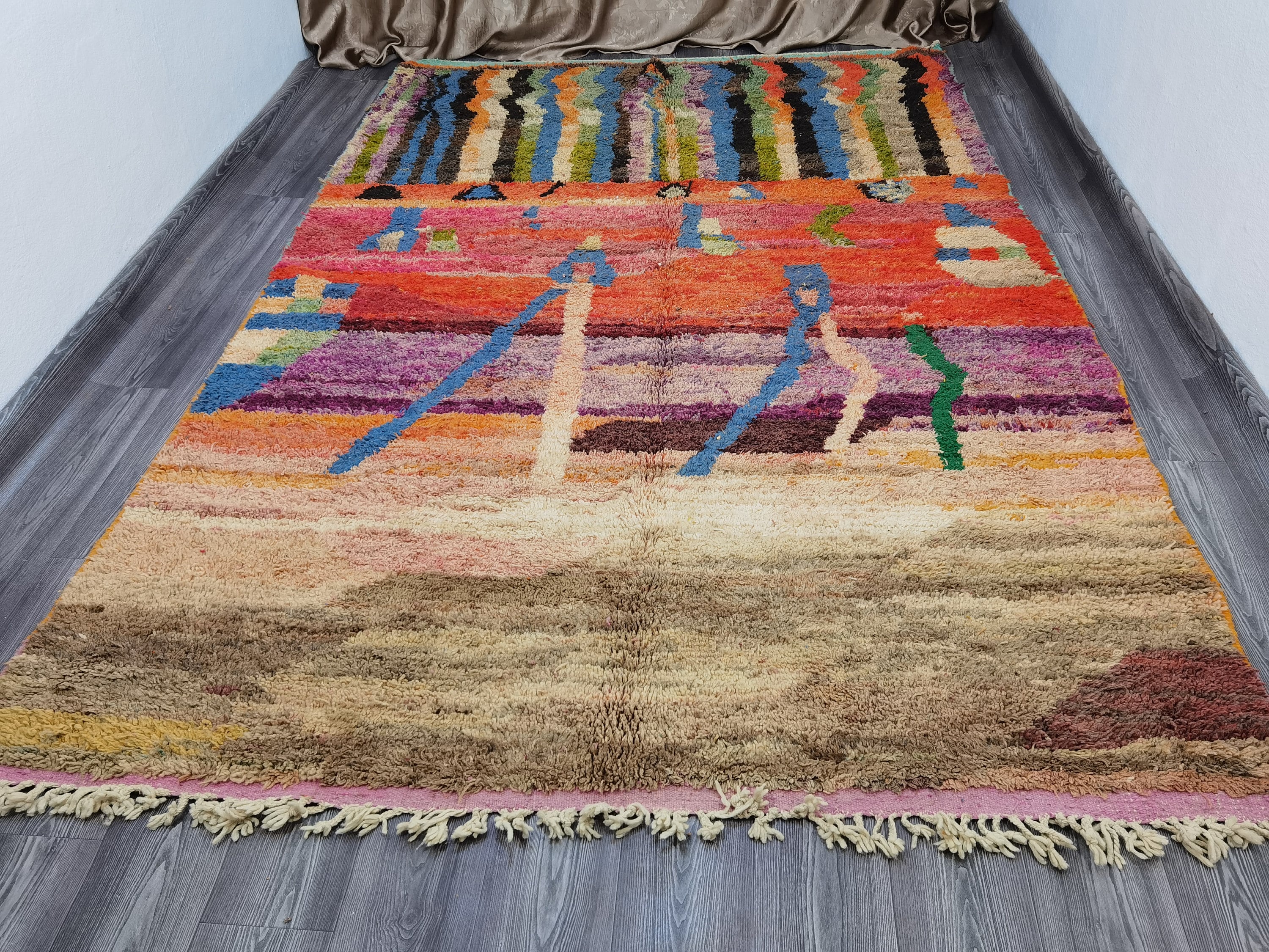 A multicolored berber rug is perfect for adding a touch of traditional Moroccan style to any room. Made from soft wool and hand-knotted, this rug is perfect for use in a living room or bedroom. Its vibrant colors will add personality and life to your space, while its luxurious feel will make it a favorite among guests.