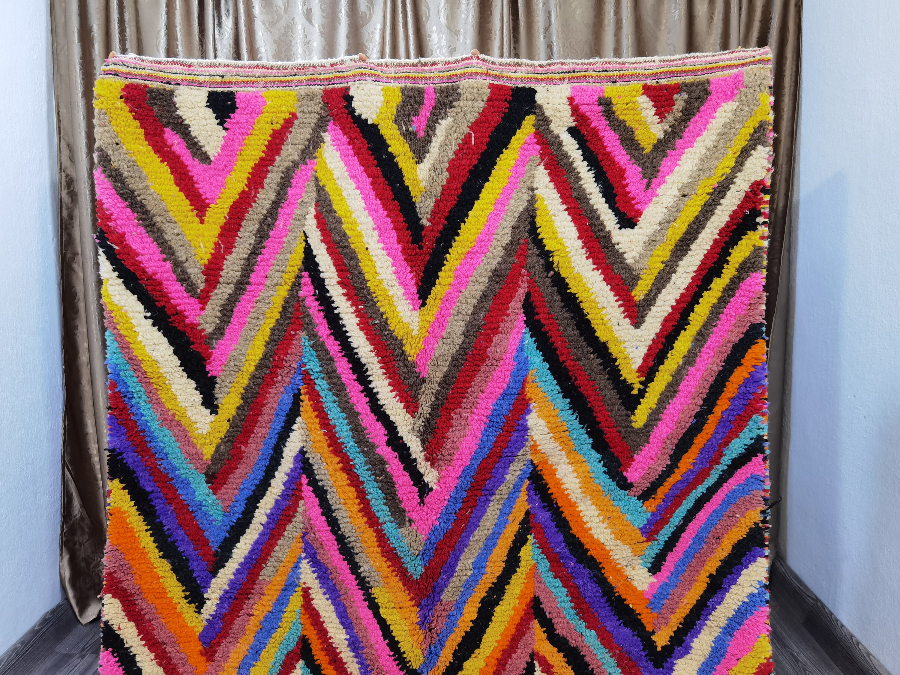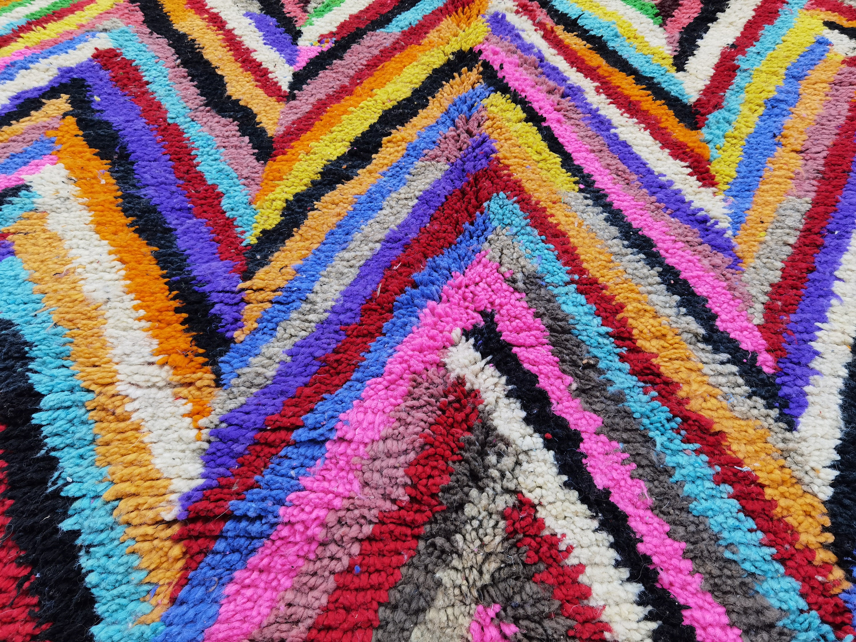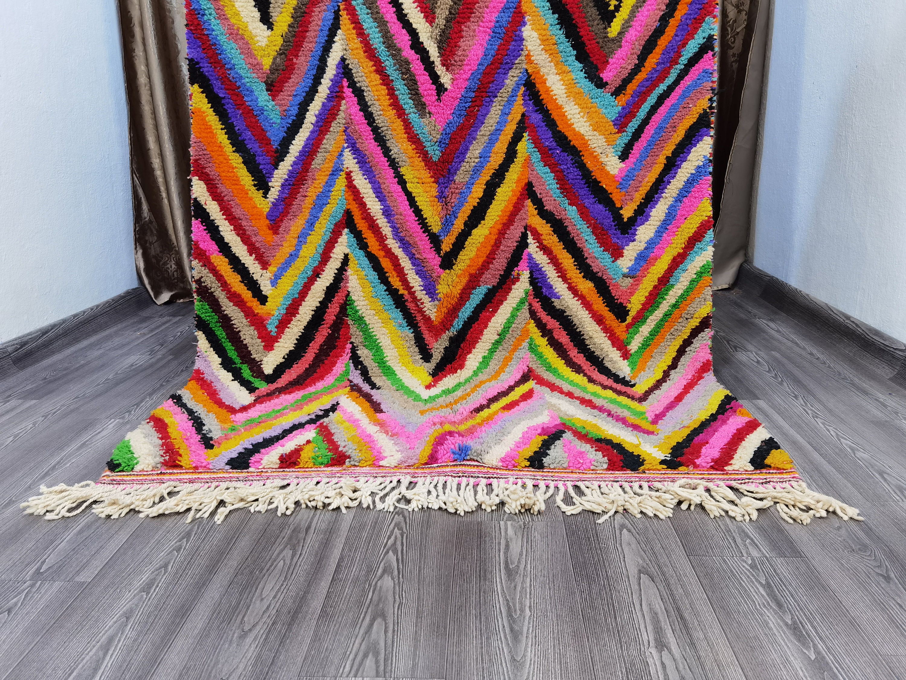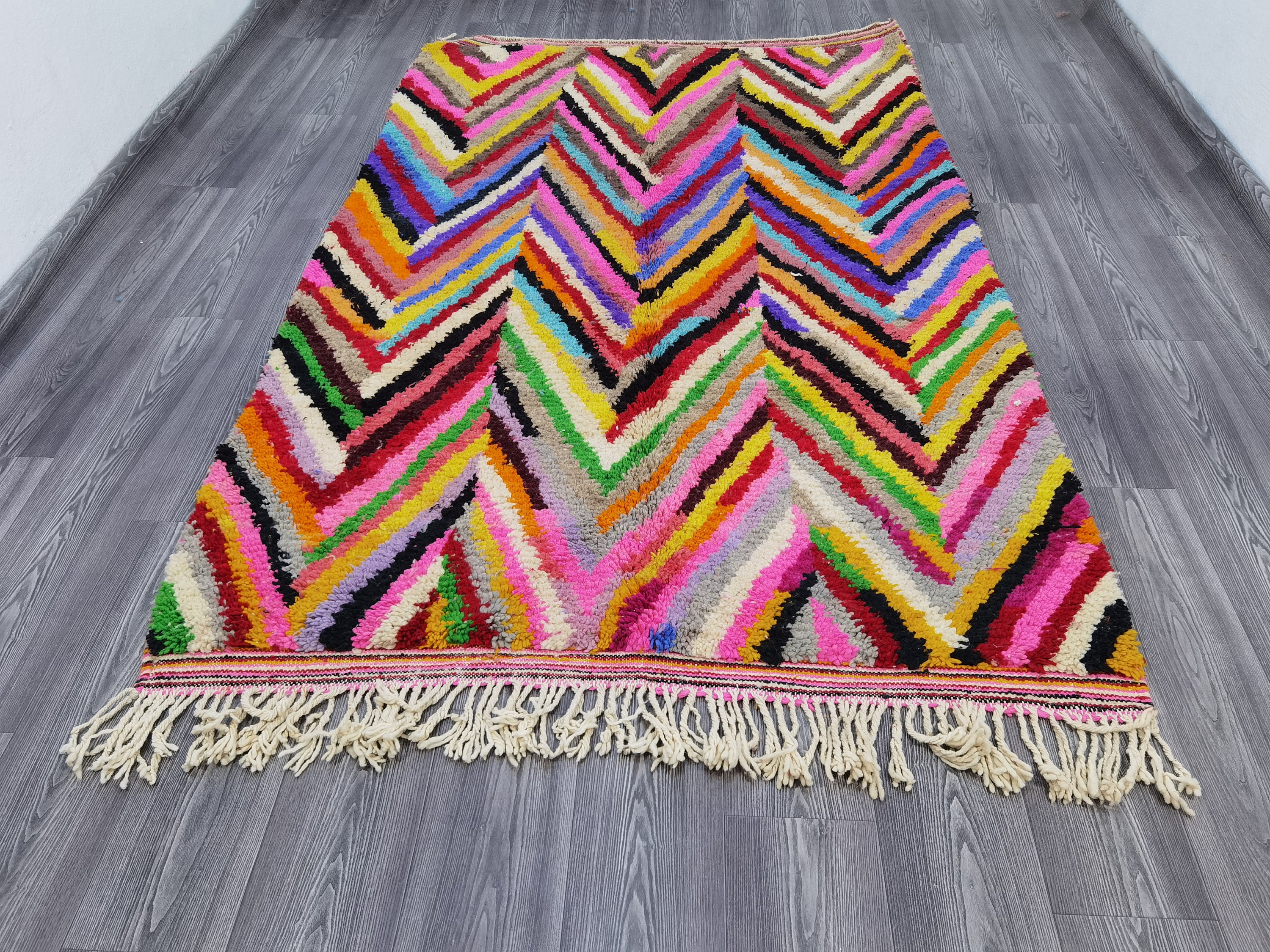 This unique Handwoven Moroccan Boujaad wool rug is one of a kind. A unique rare artistic handmade art, a beautiful combination of colors. which makes it the best choice whether for your house or your showroom. The famous Boujaad rug is now on the cover of the world’s leading home decoration magazines. This rug with character goes perfectly with all interior styles, Bohemian, Modern, Minimalist, Scandinavian, Traditional, which makes it the best choice for your needs.