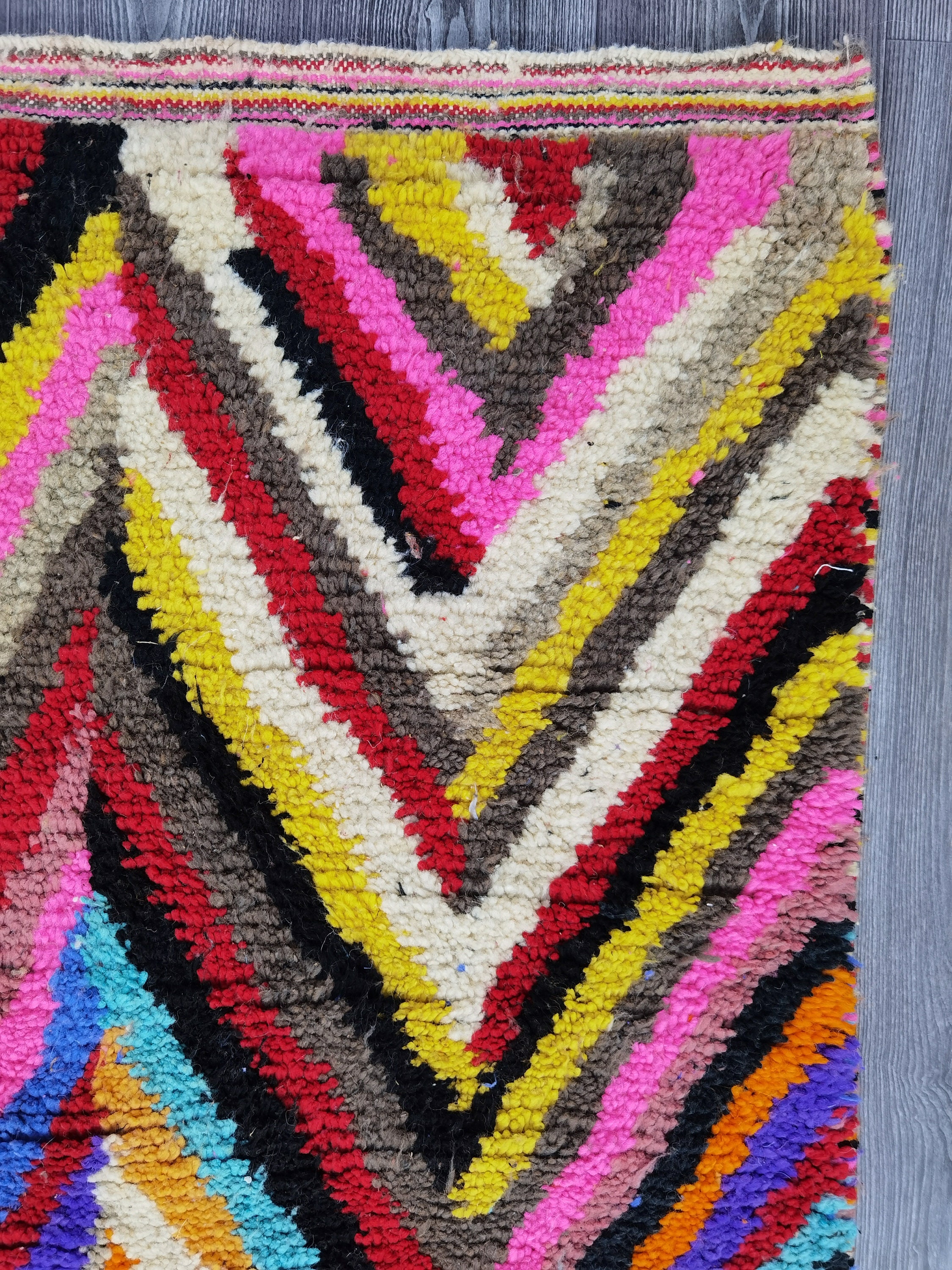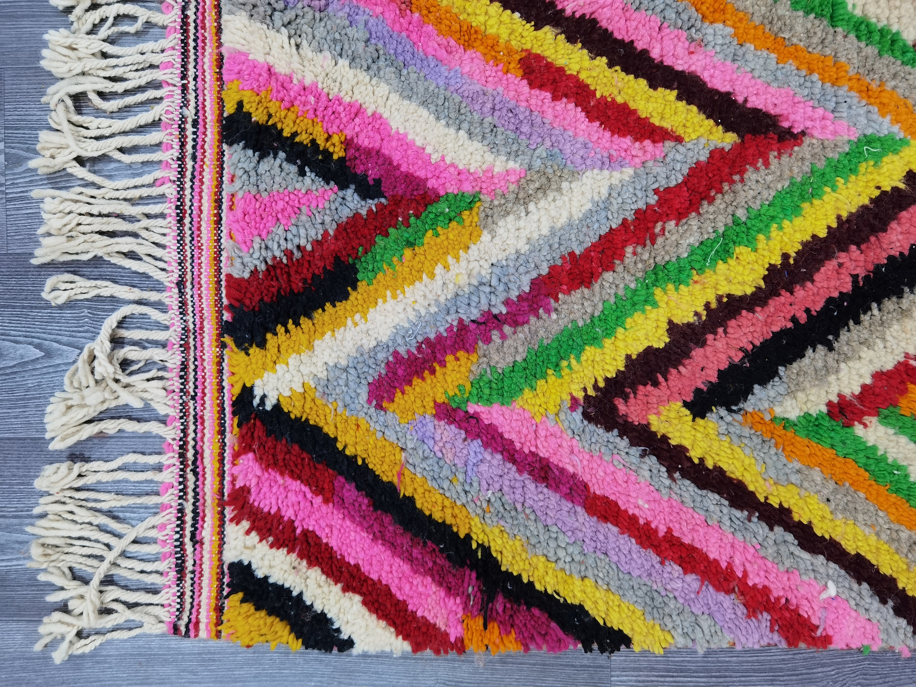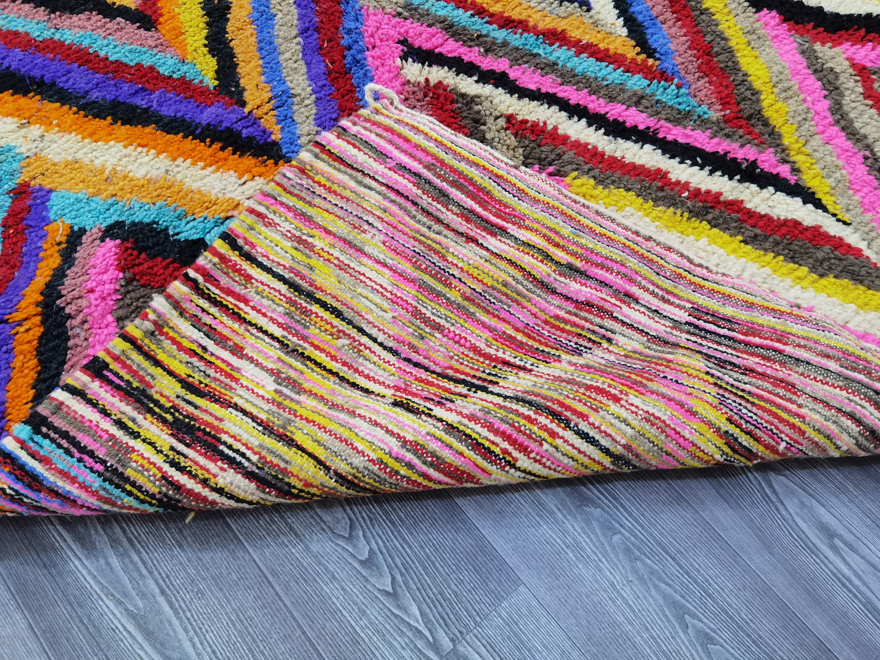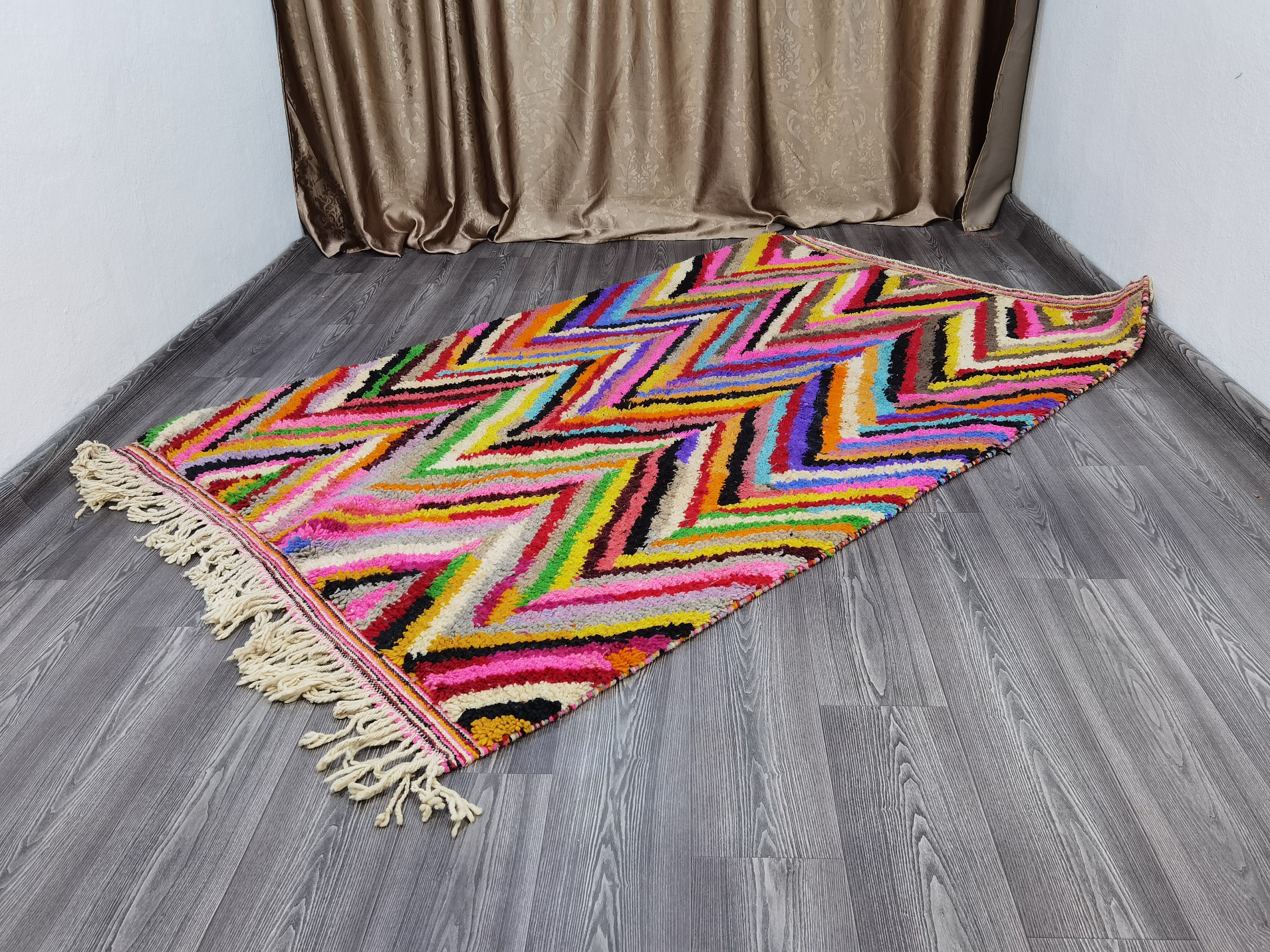 This unique Handwoven Moroccan Boujaad wool rug is one of a kind. A unique rare artistic handmade art, a beautiful combination of colors. which makes it the best choice whether for your house or your showroom. The famous Boujaad rug is now on the cover of the world’s leading home decoration magazines. This rug with character goes perfectly with all interior styles, Bohemian, Modern, Minimalist, Scandinavian, Traditional, which makes it the best choice for your needs.