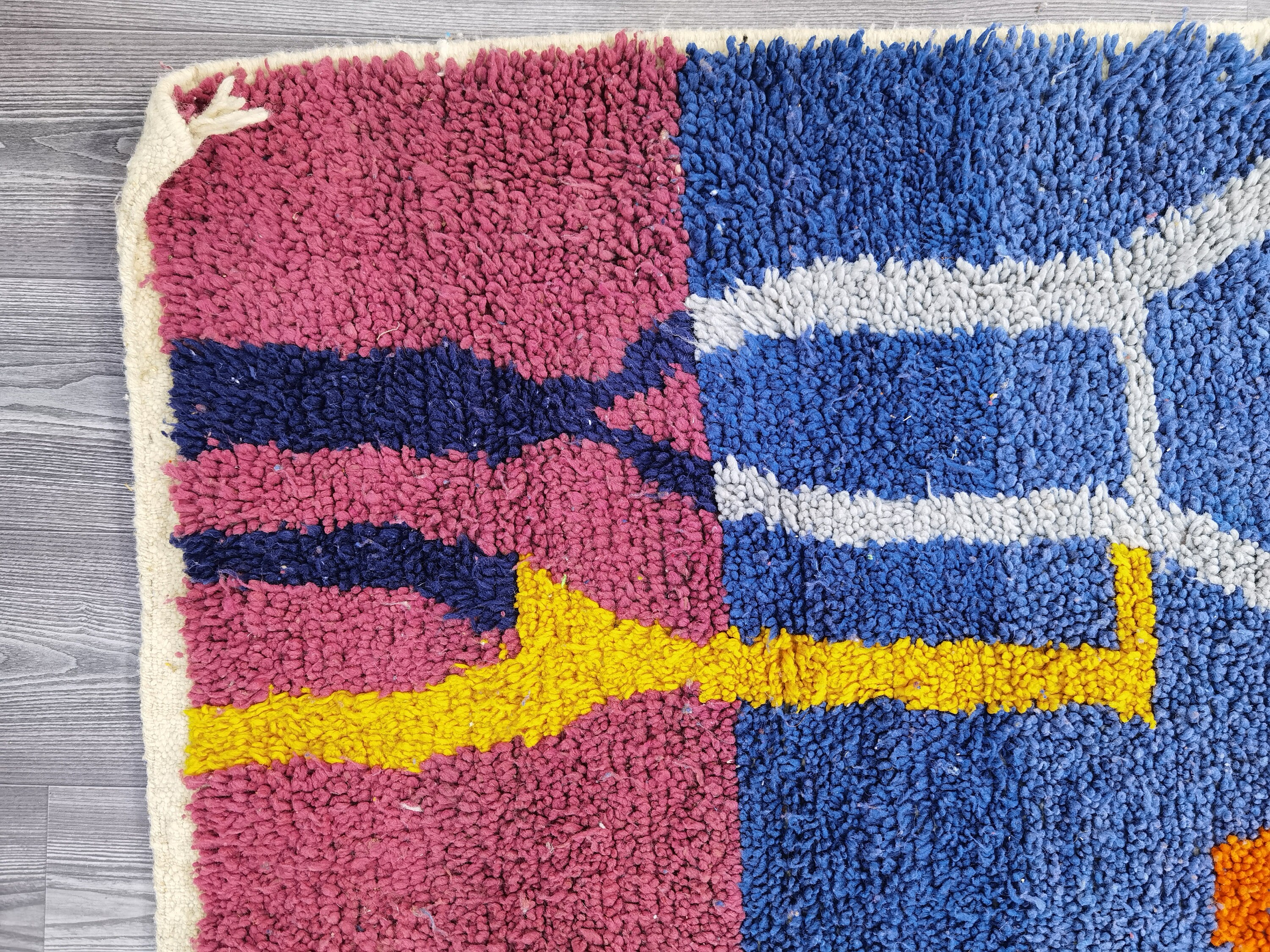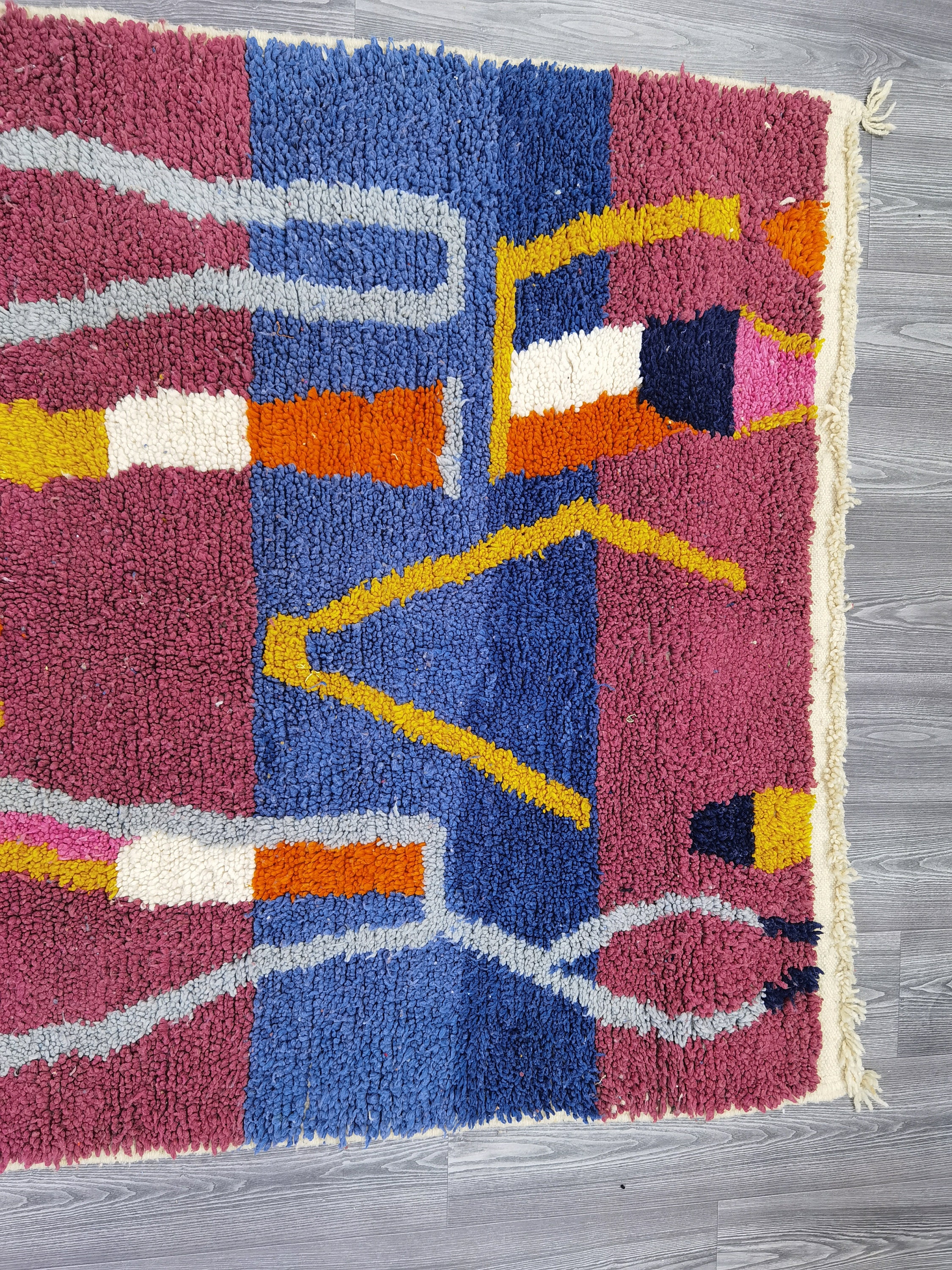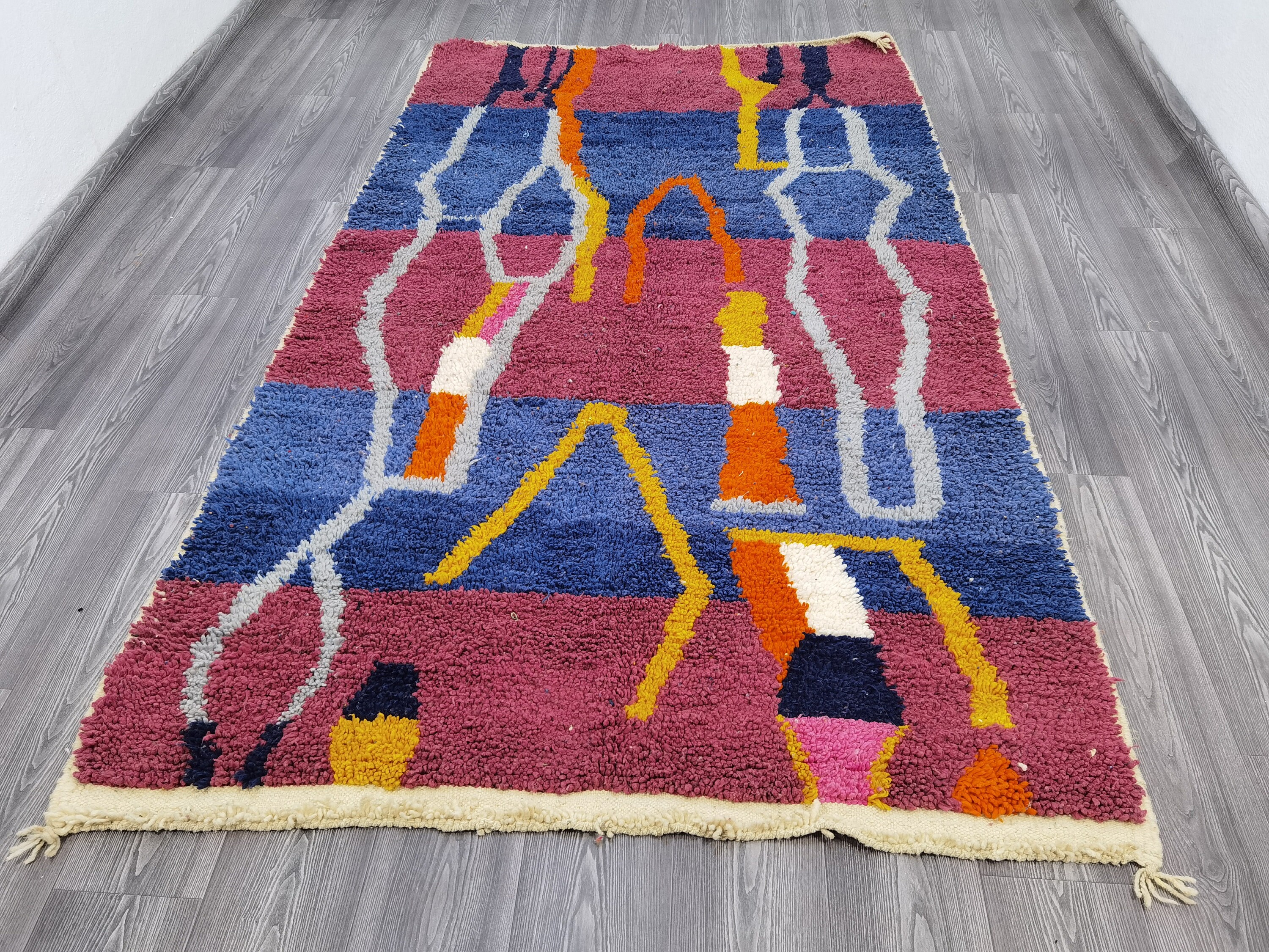 Blue Rug For Living Room, Tribal Berber Wool Rug , Abstract Area Rug , Abstract Rug For House Wool Rug , Plain Rug , Handmade Moroccan Rug