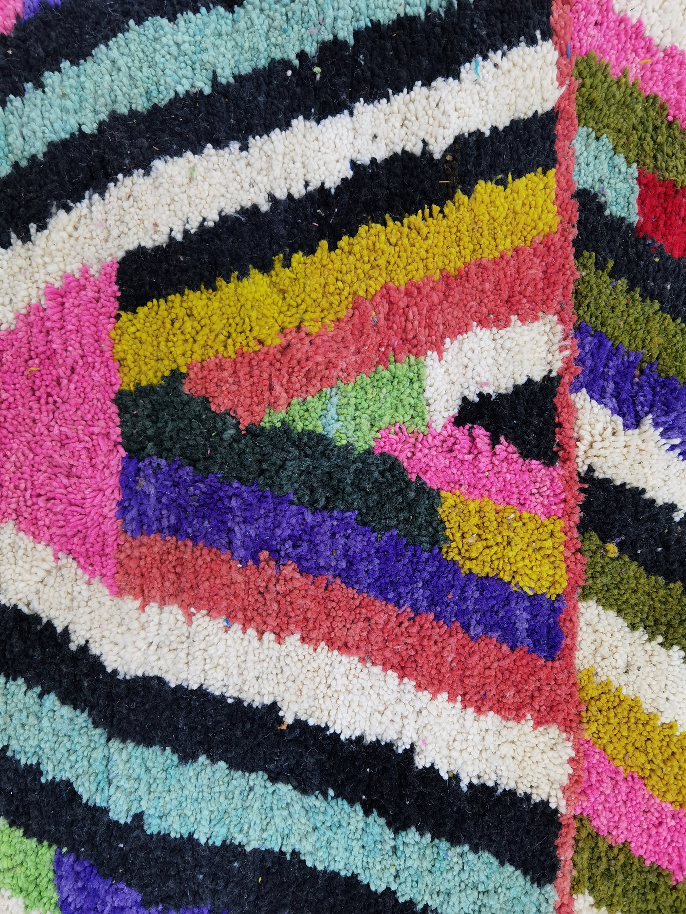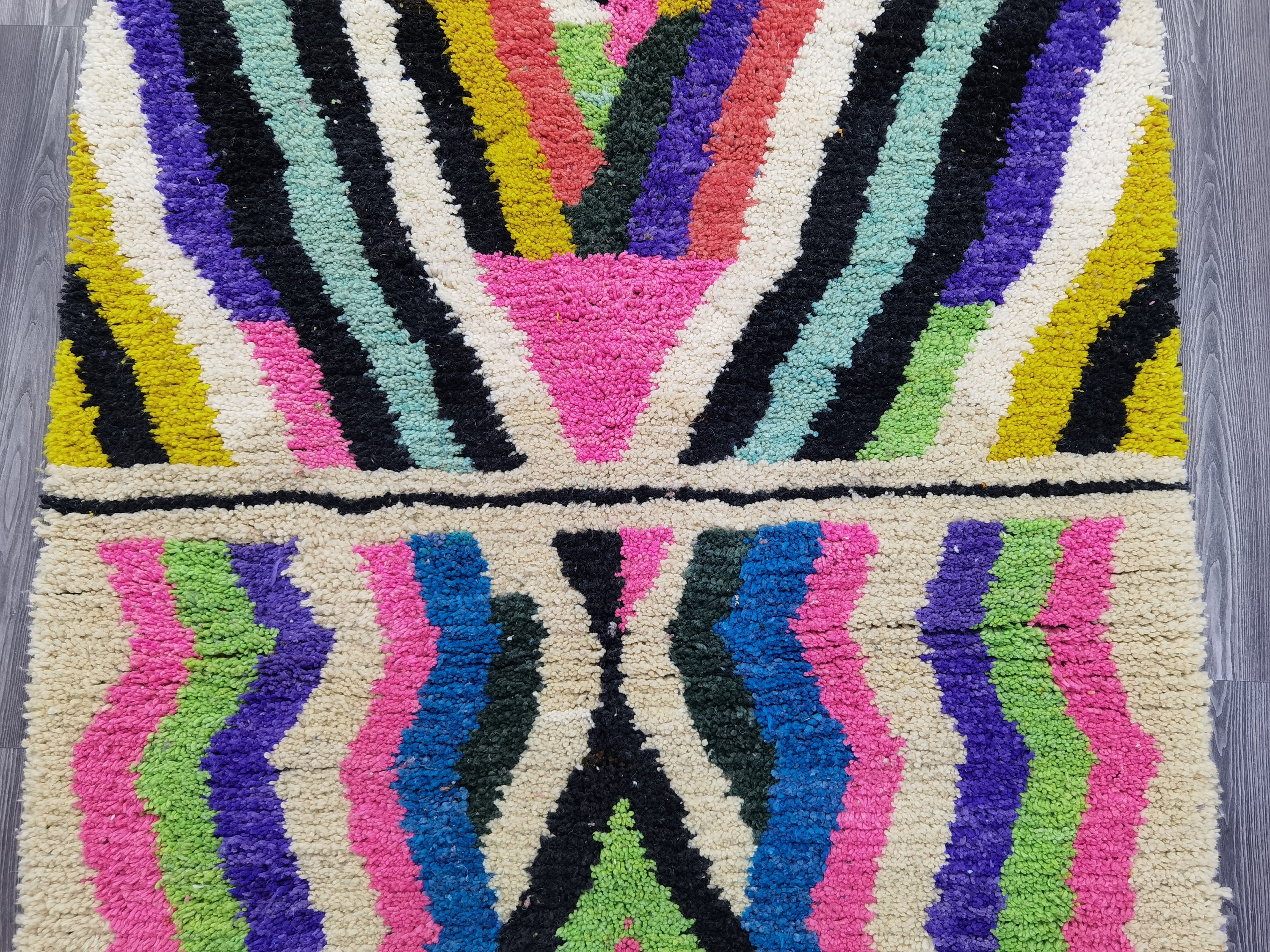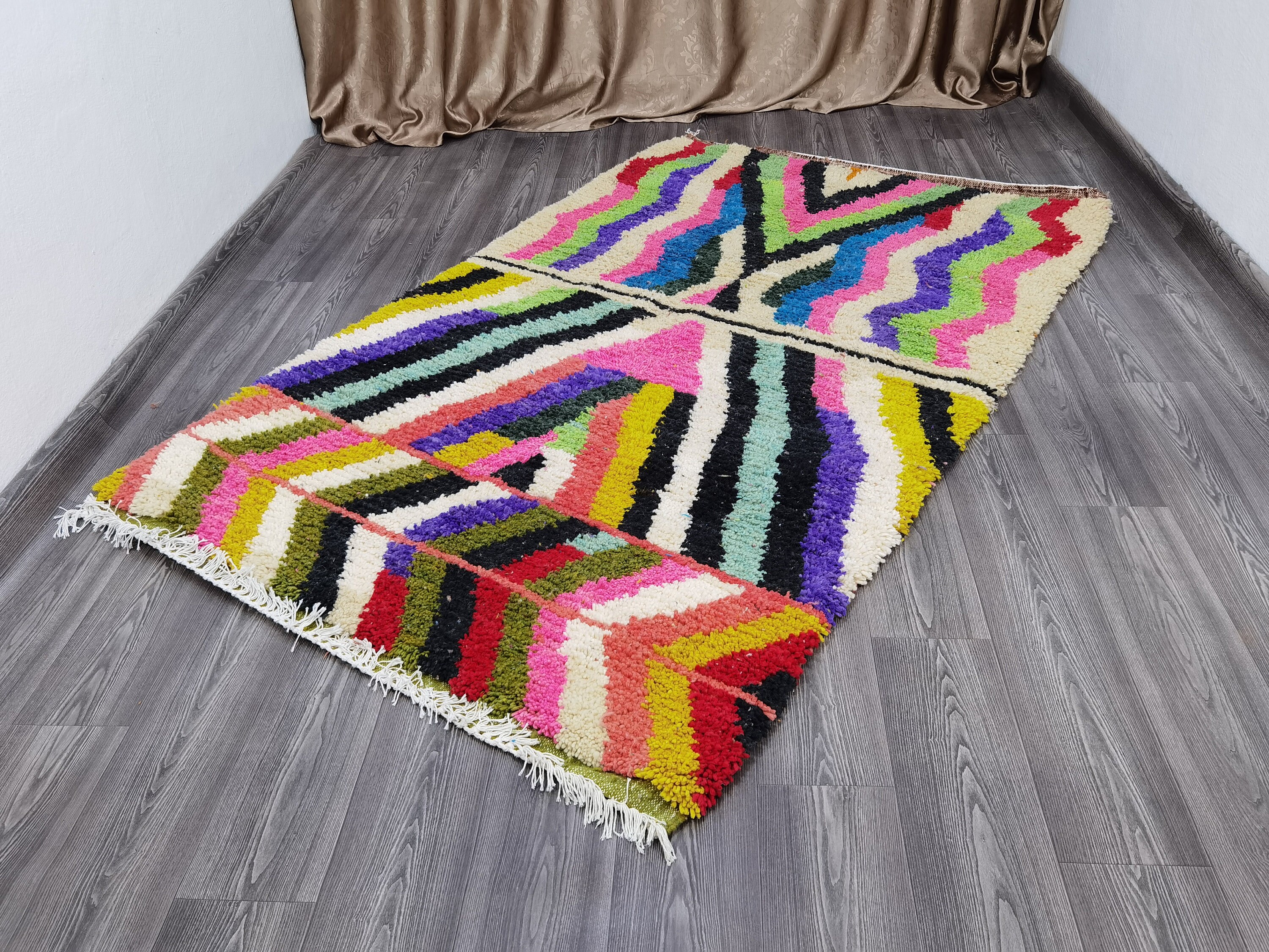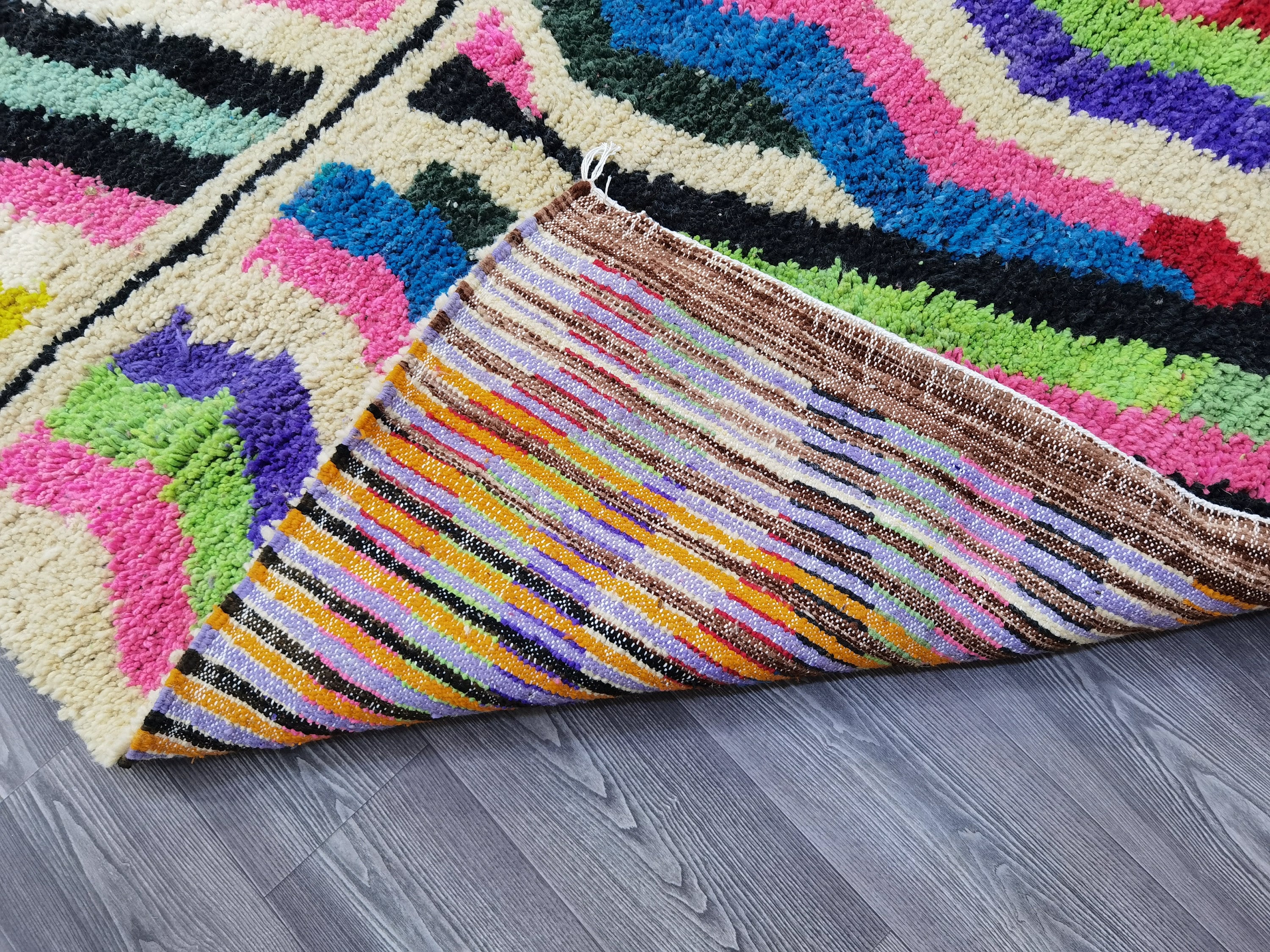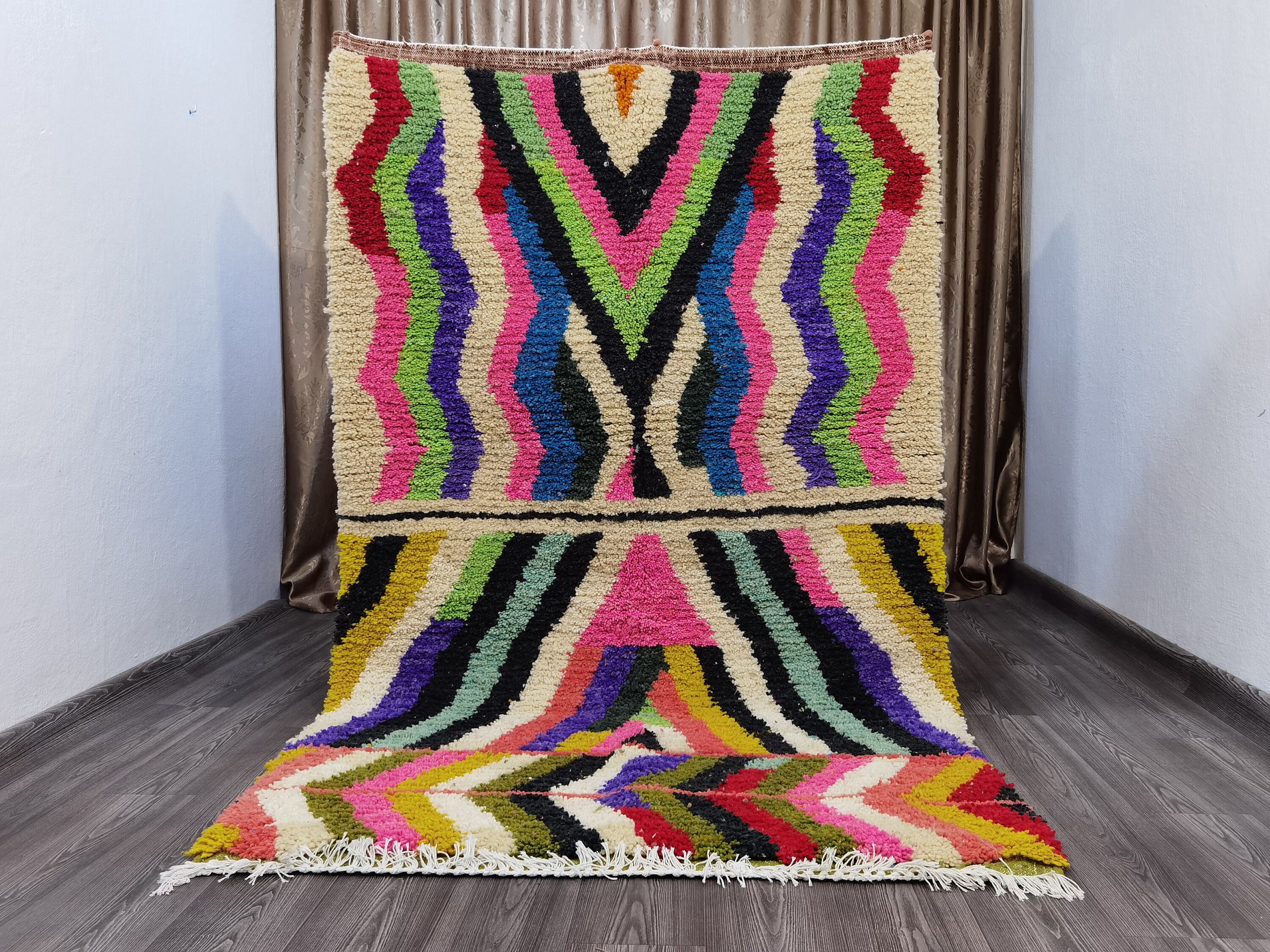 This unique Handwoven Moroccan Boujaad wool rug is one of a kind. A unique rare artistic handmade art, a beautiful combination of colors. which makes it the best choice whether for your house or your showroom. The famous Boujaad rug is now on the cover of the world’s leading home decoration magazines. This rug with character goes perfectly with all interior styles, Bohemian, Modern, Minimalist, Scandinavian, Traditional, which makes it the best choice for your needs.