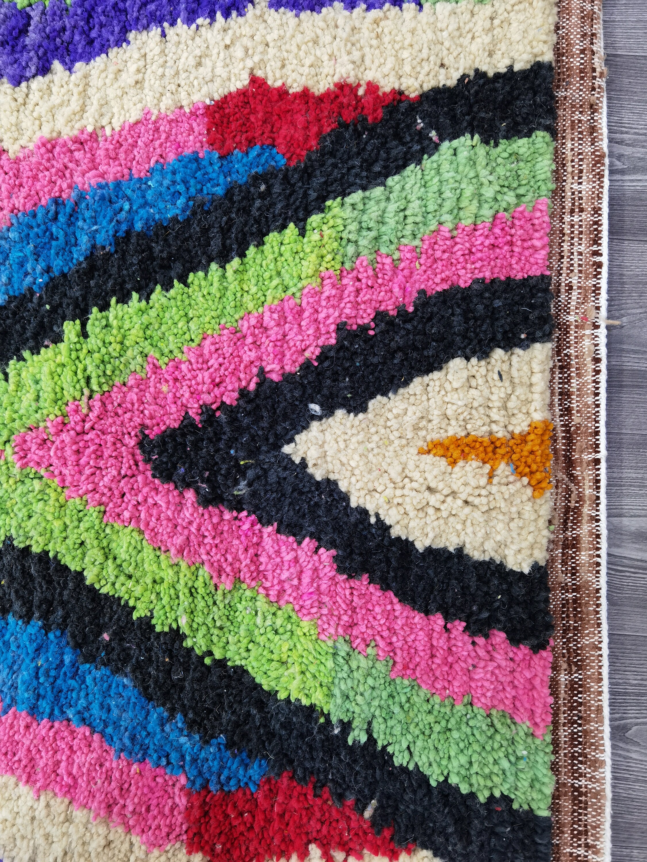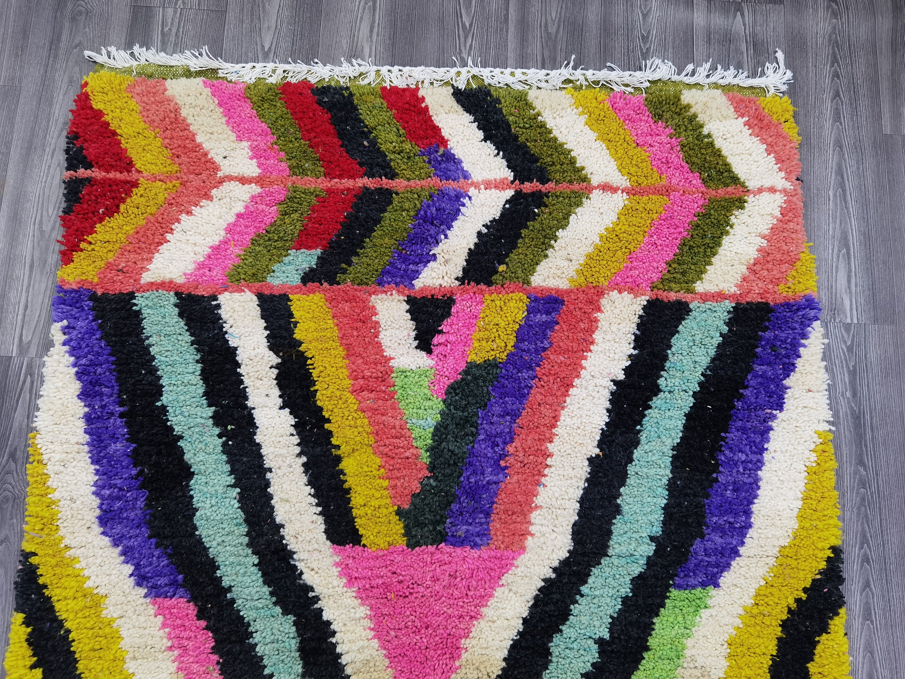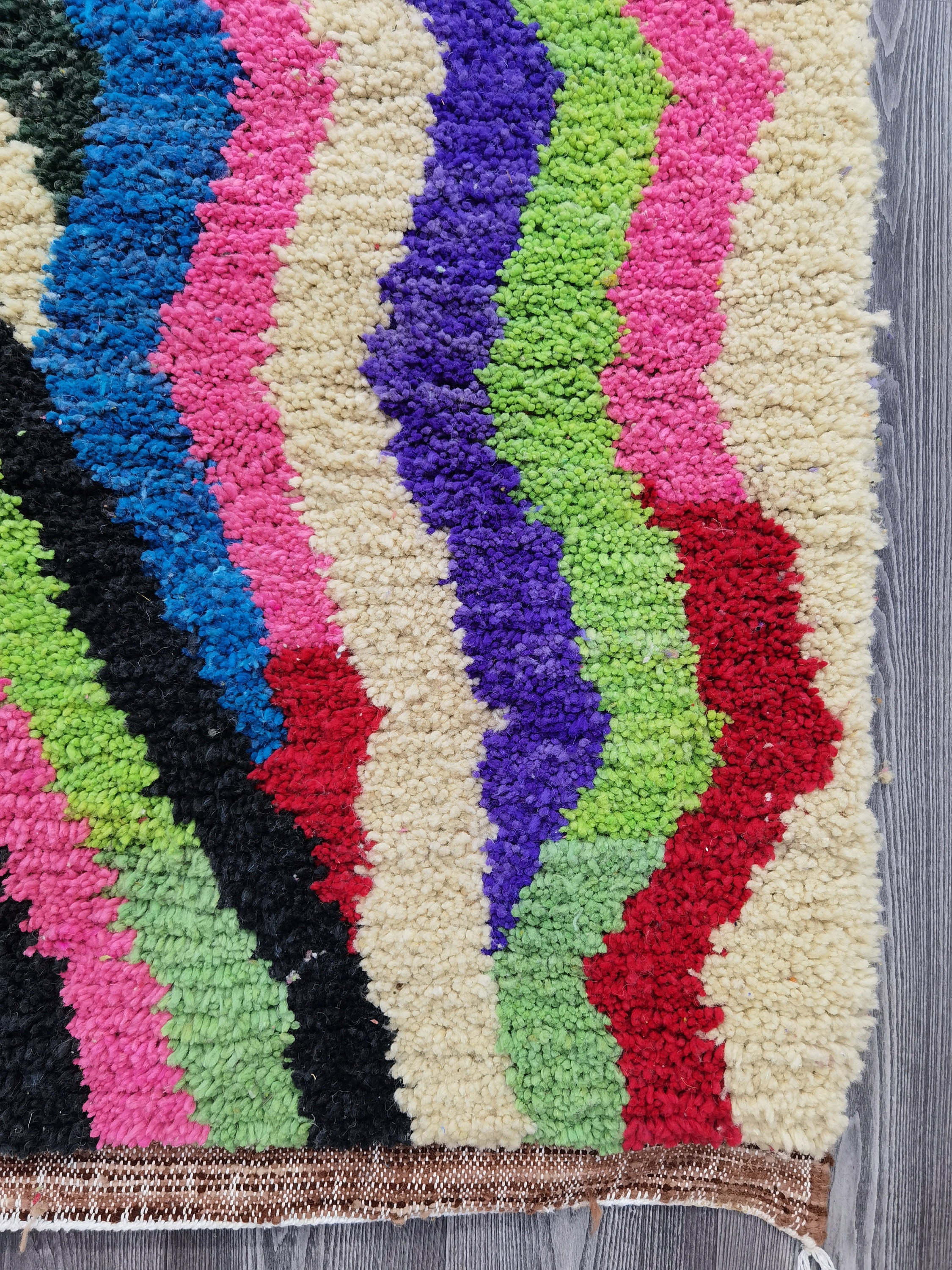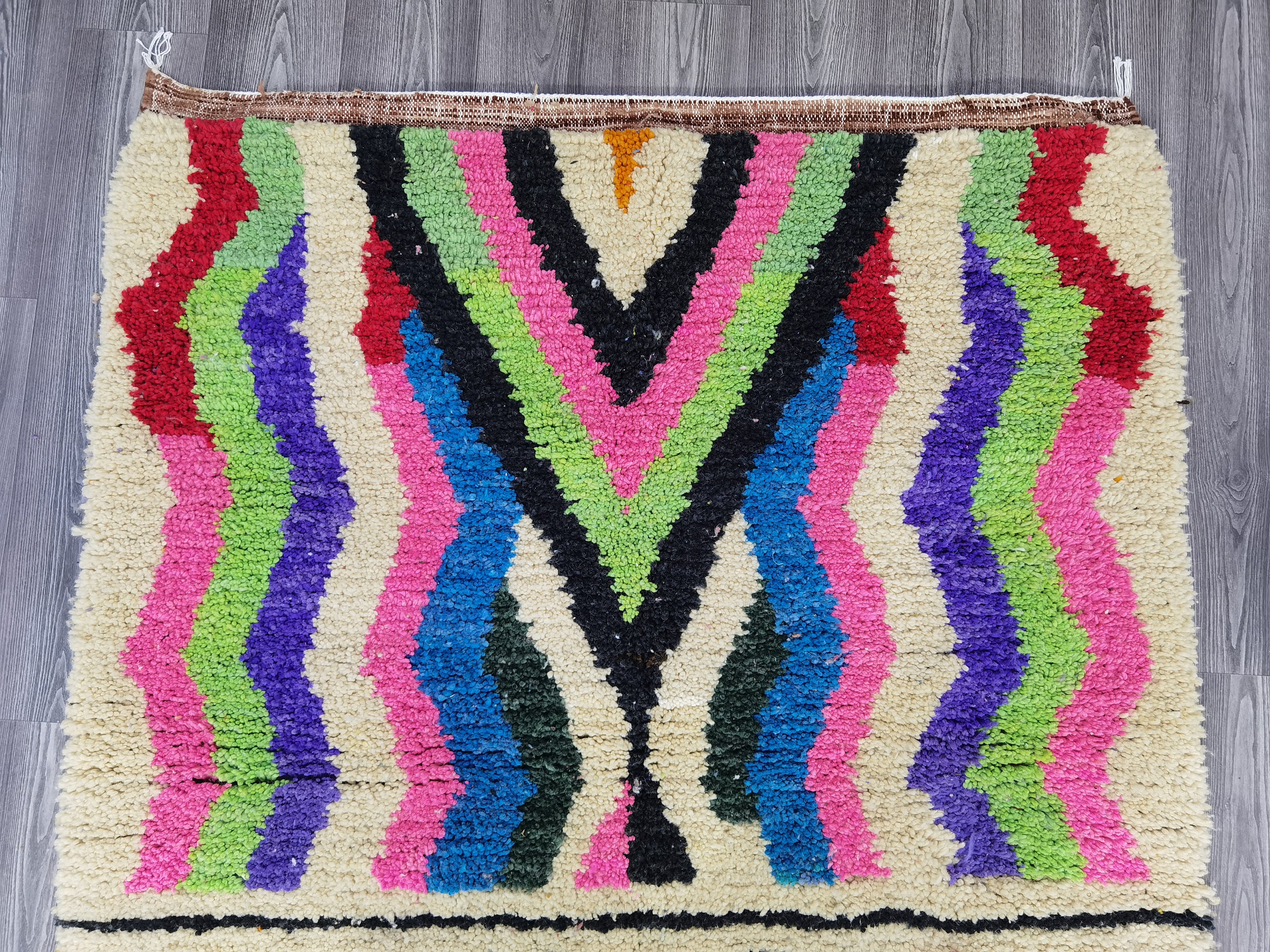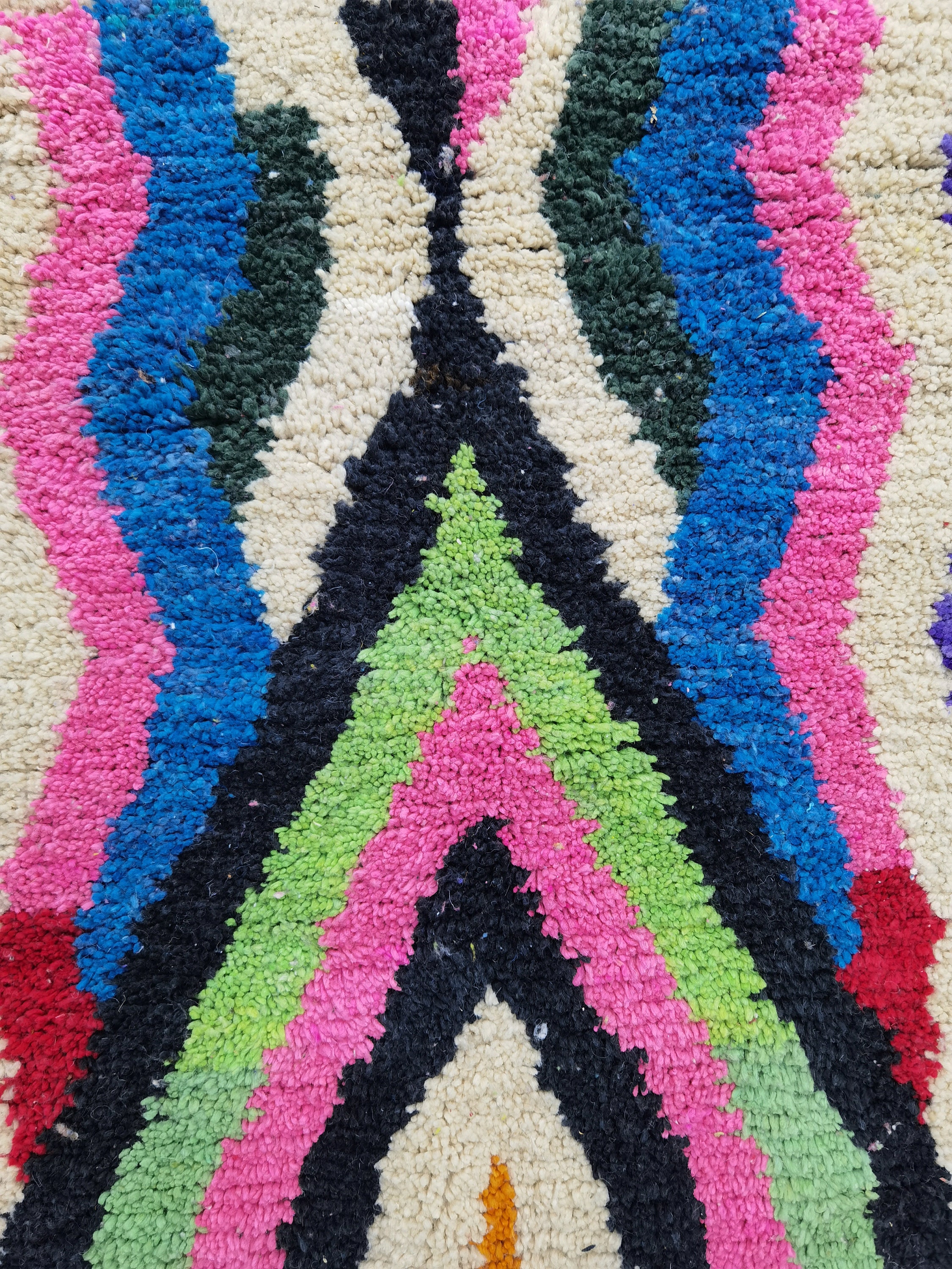 This unique Handwoven Moroccan Boujaad wool rug is one of a kind. A unique rare artistic handmade art, a beautiful combination of colors. which makes it the best choice whether for your house or your showroom. The famous Boujaad rug is now on the cover of the world’s leading home decoration magazines. This rug with character goes perfectly with all interior styles, Bohemian, Modern, Minimalist, Scandinavian, Traditional, which makes it the best choice for your needs.