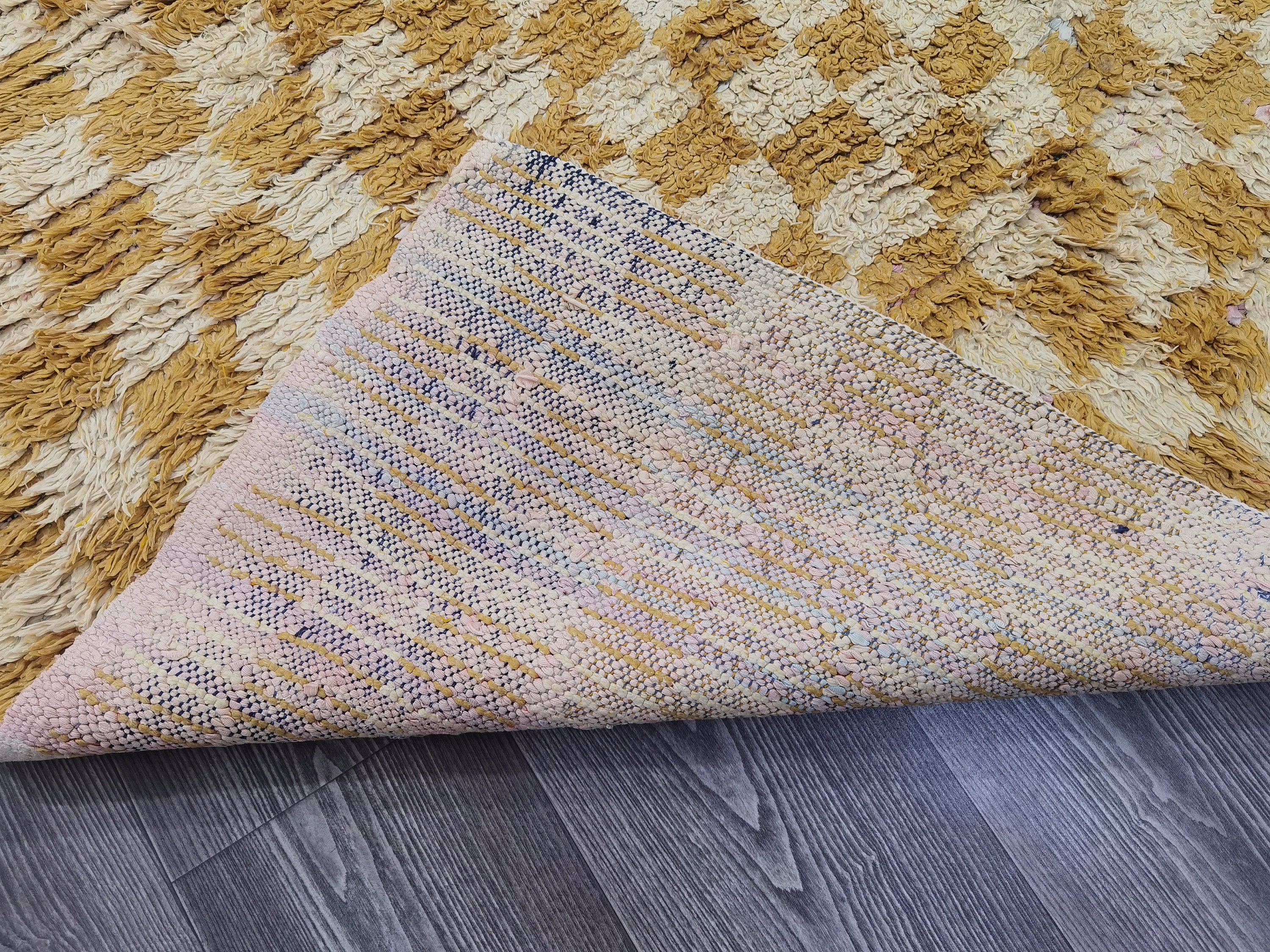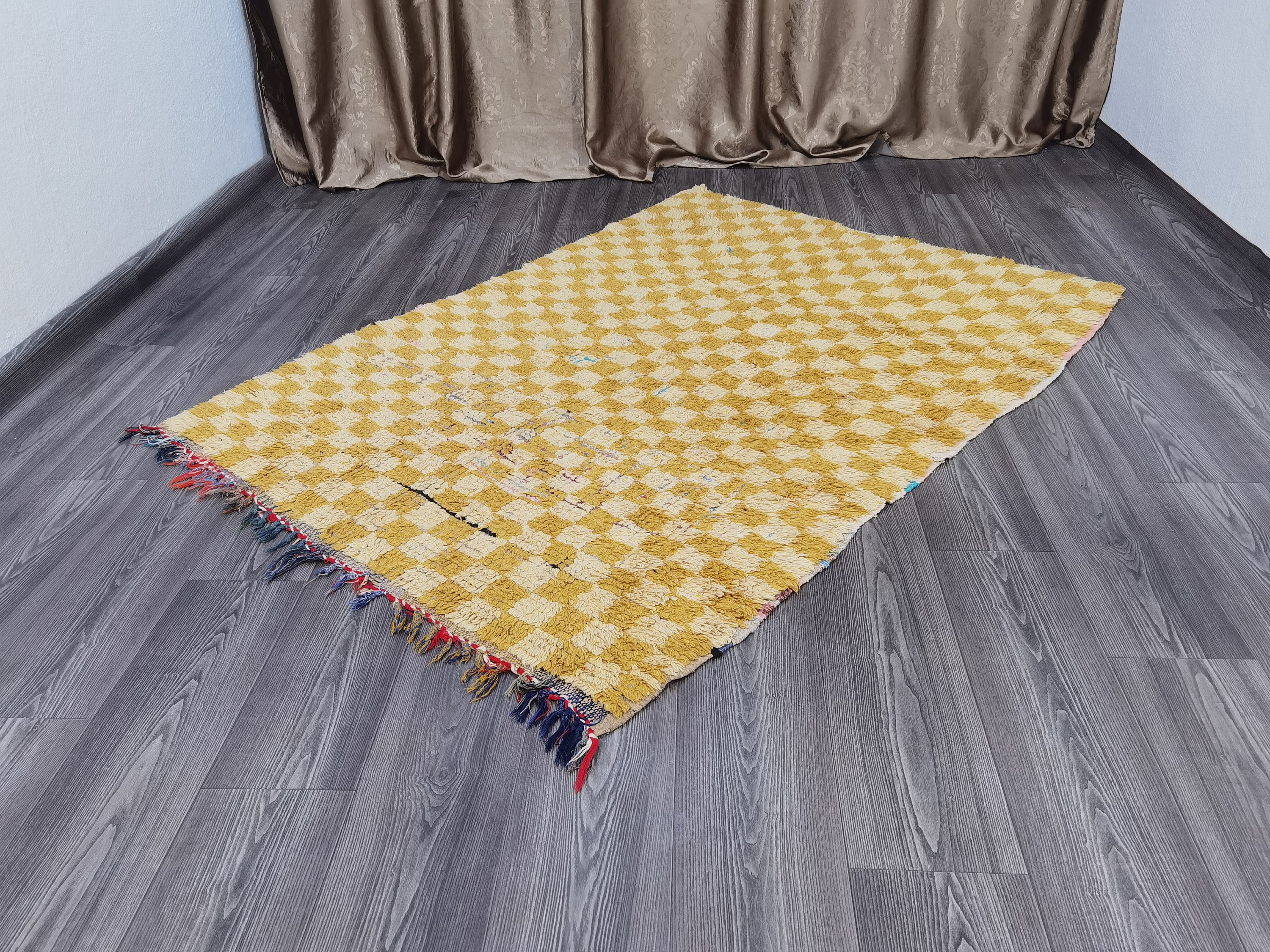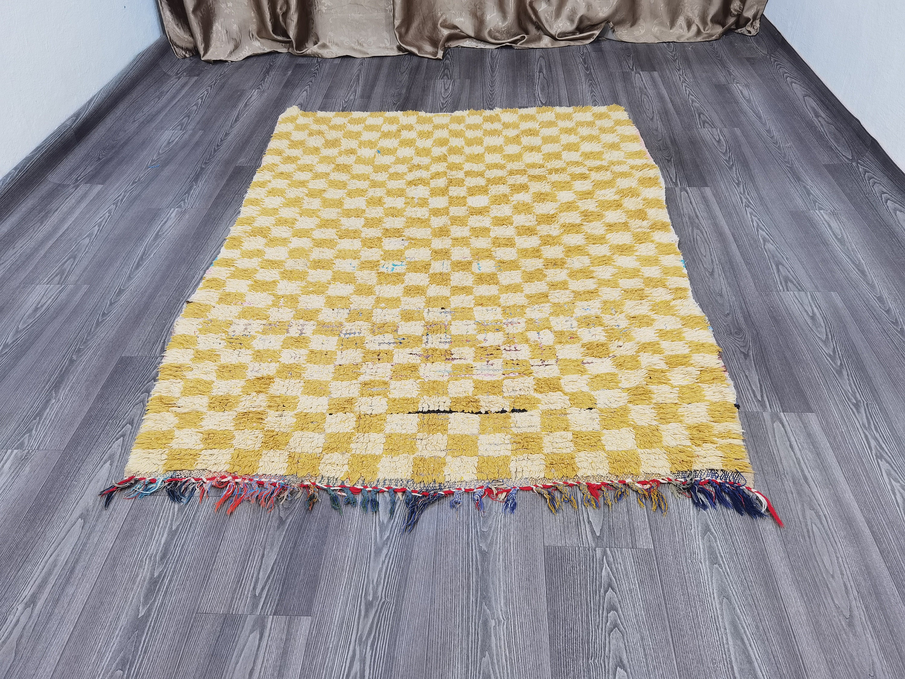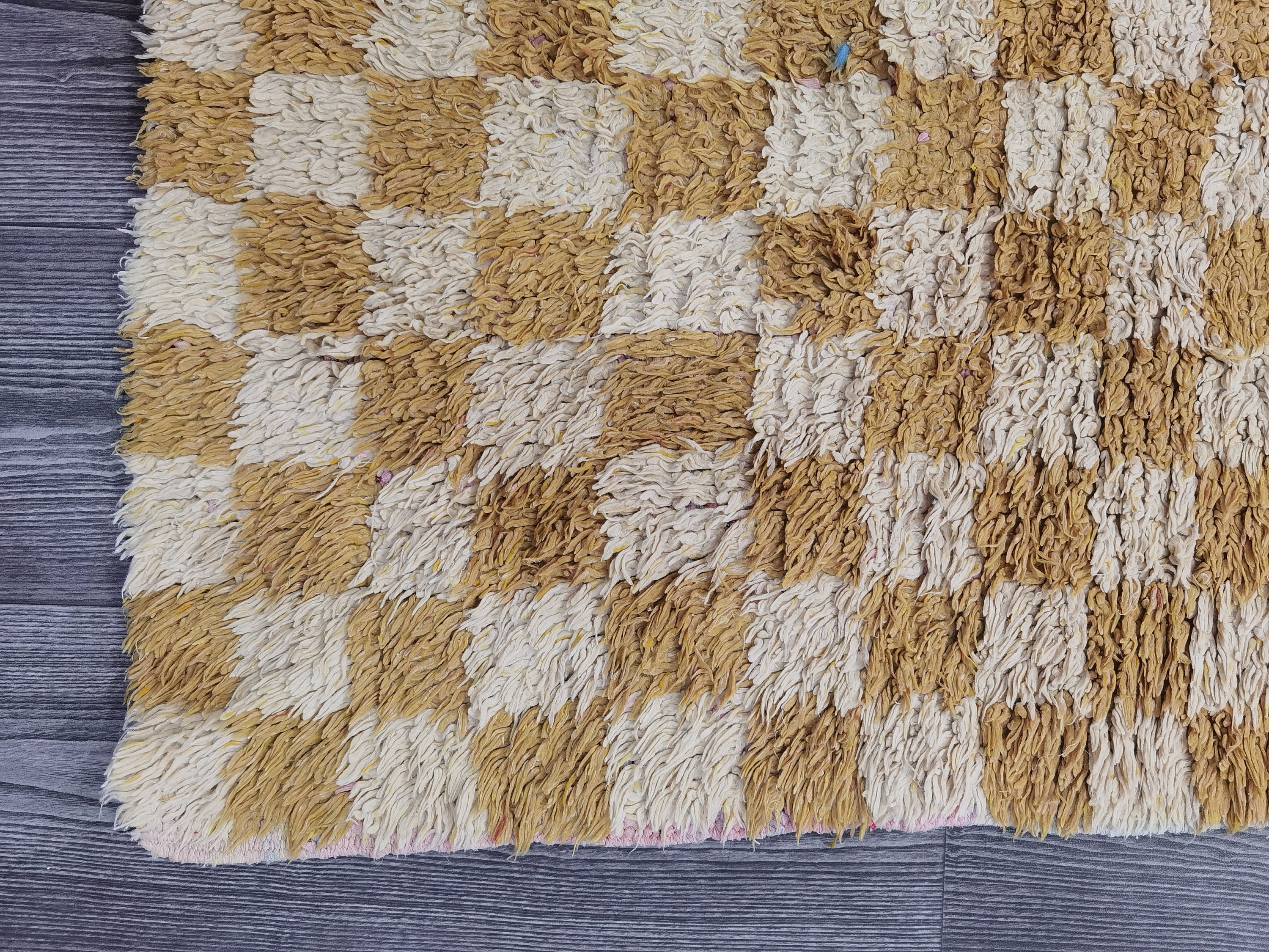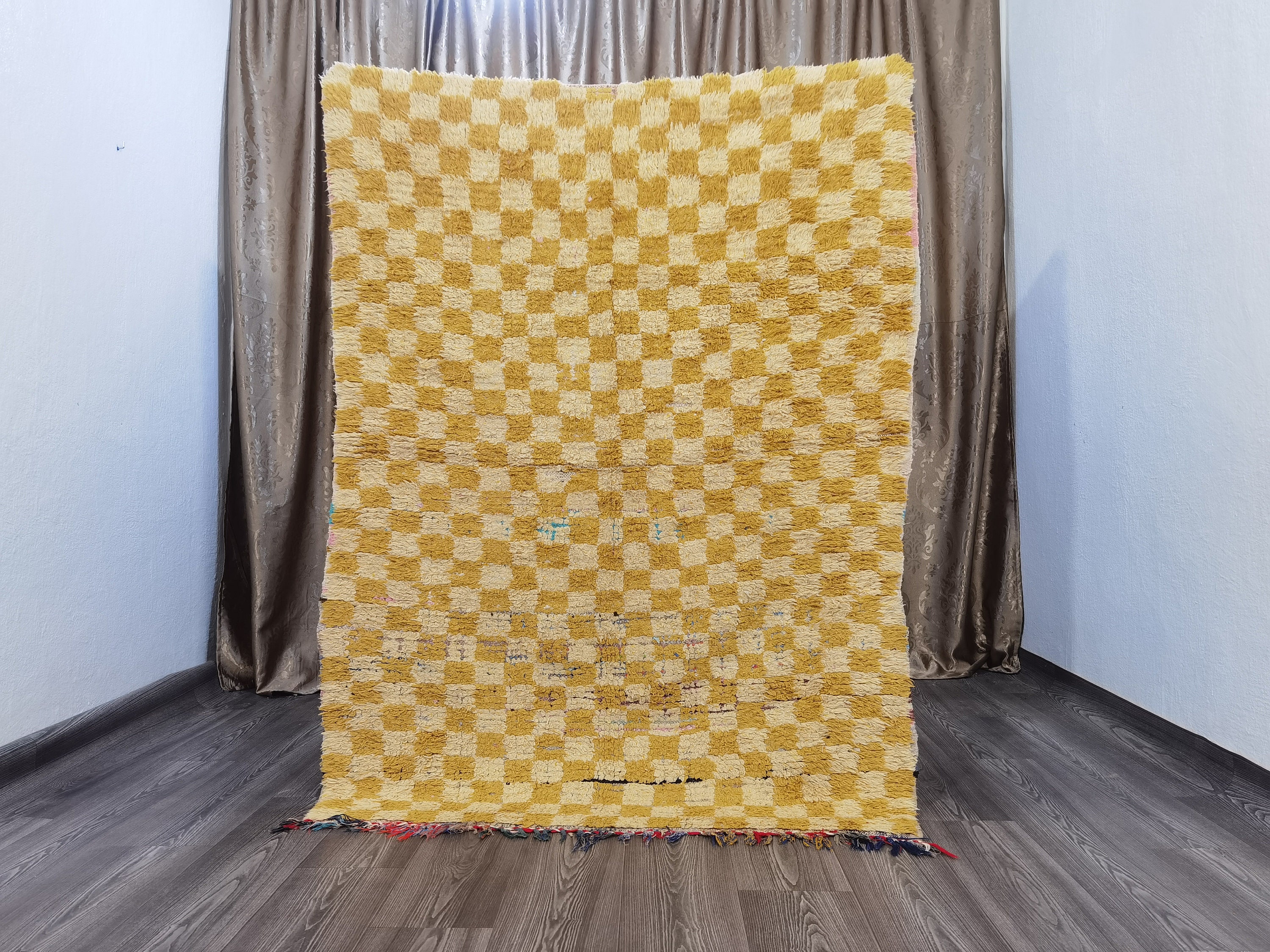This checkered rug is perfect for adding a touch of color to any room. Made from 100% Berber cotton, it features a beautiful yellow design. It's also made from durable materials, so you can use it in any room of your home. Plus, its woven construction means it's easy to clean and maintain. Whether you're looking for a new area rug or just want to add some extra beauty to your home, this checkered rug is a great choice.
