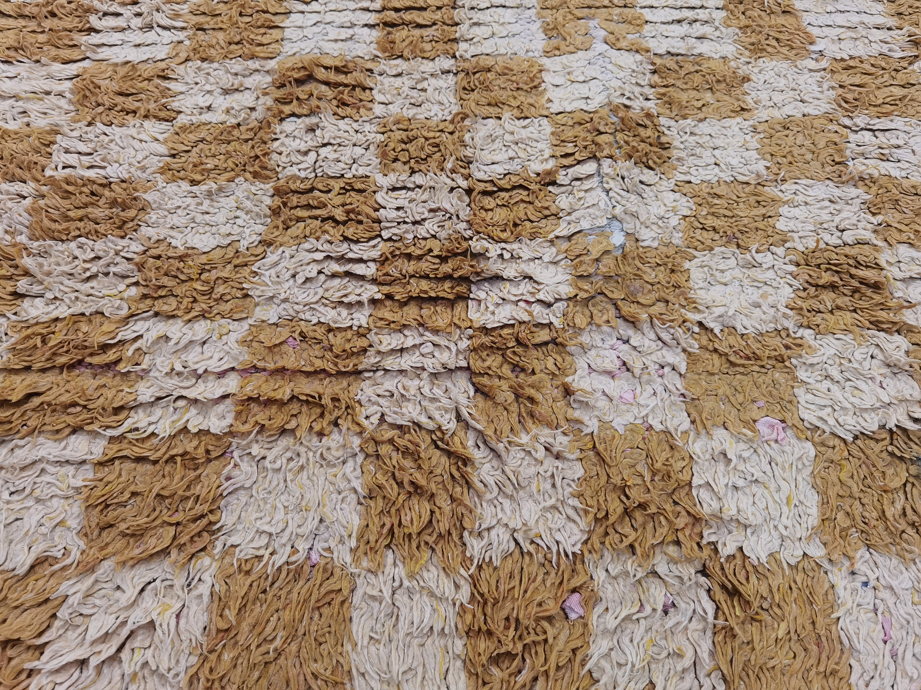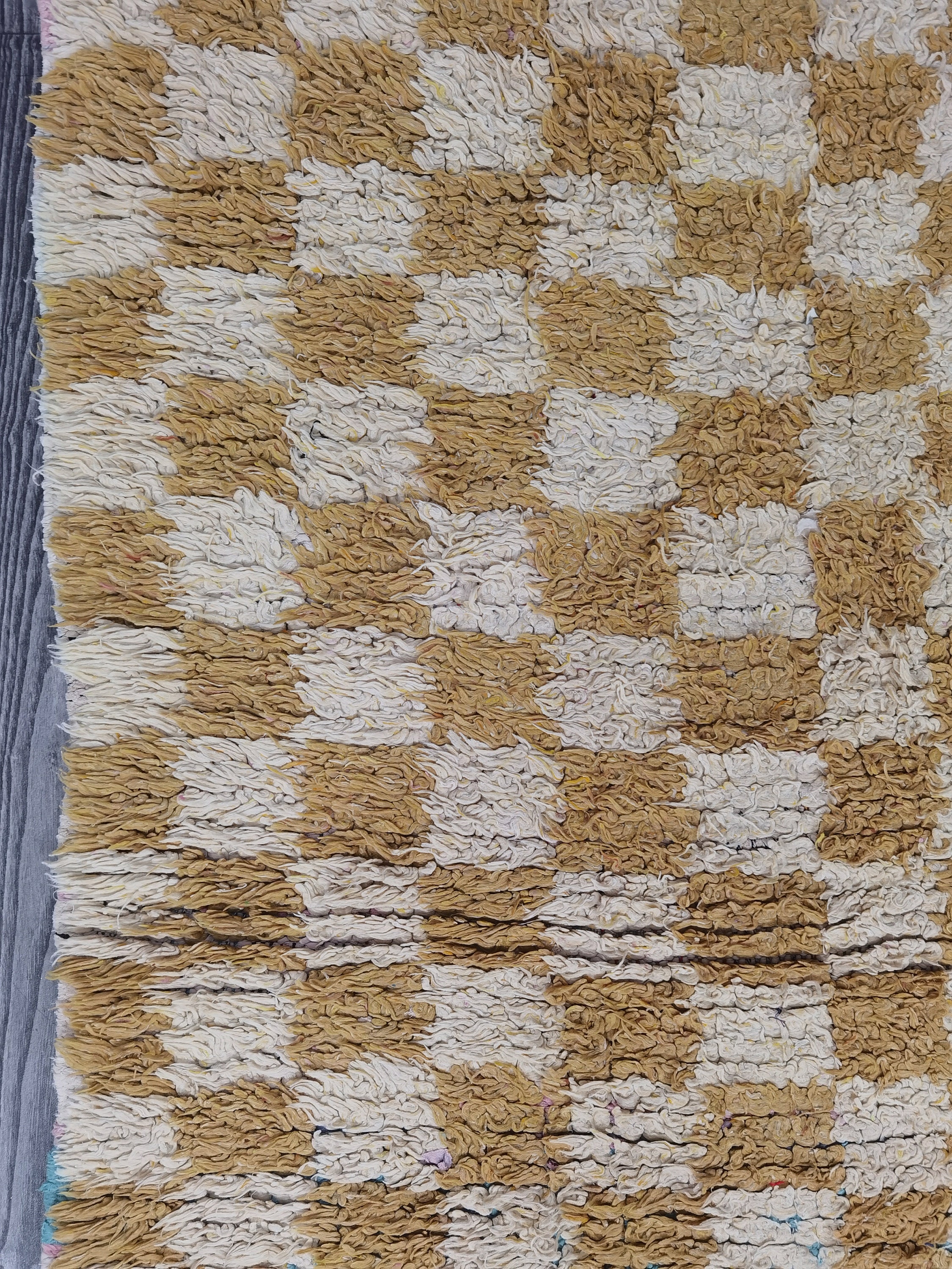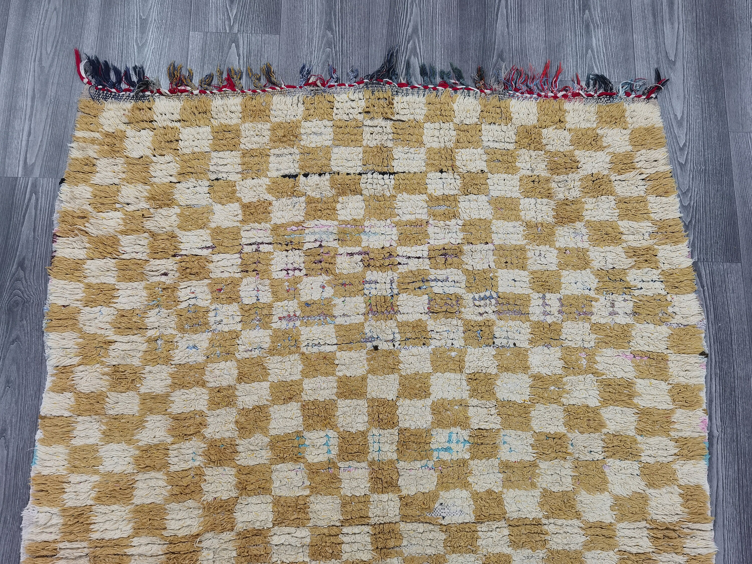 Hand-Knotted Yellow Checkered Berber Rug - 5.9 x 4.26 ft