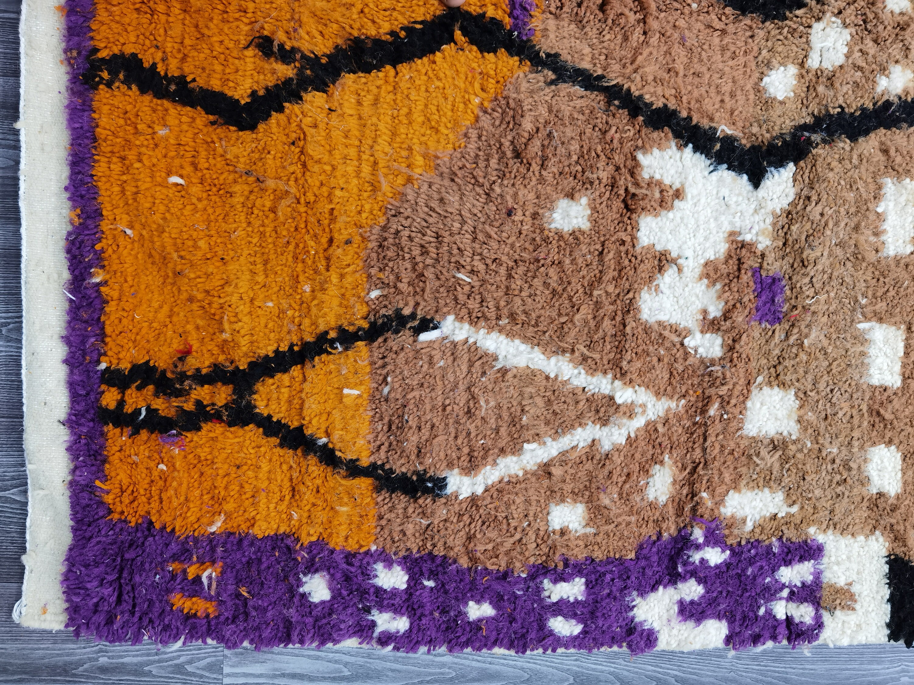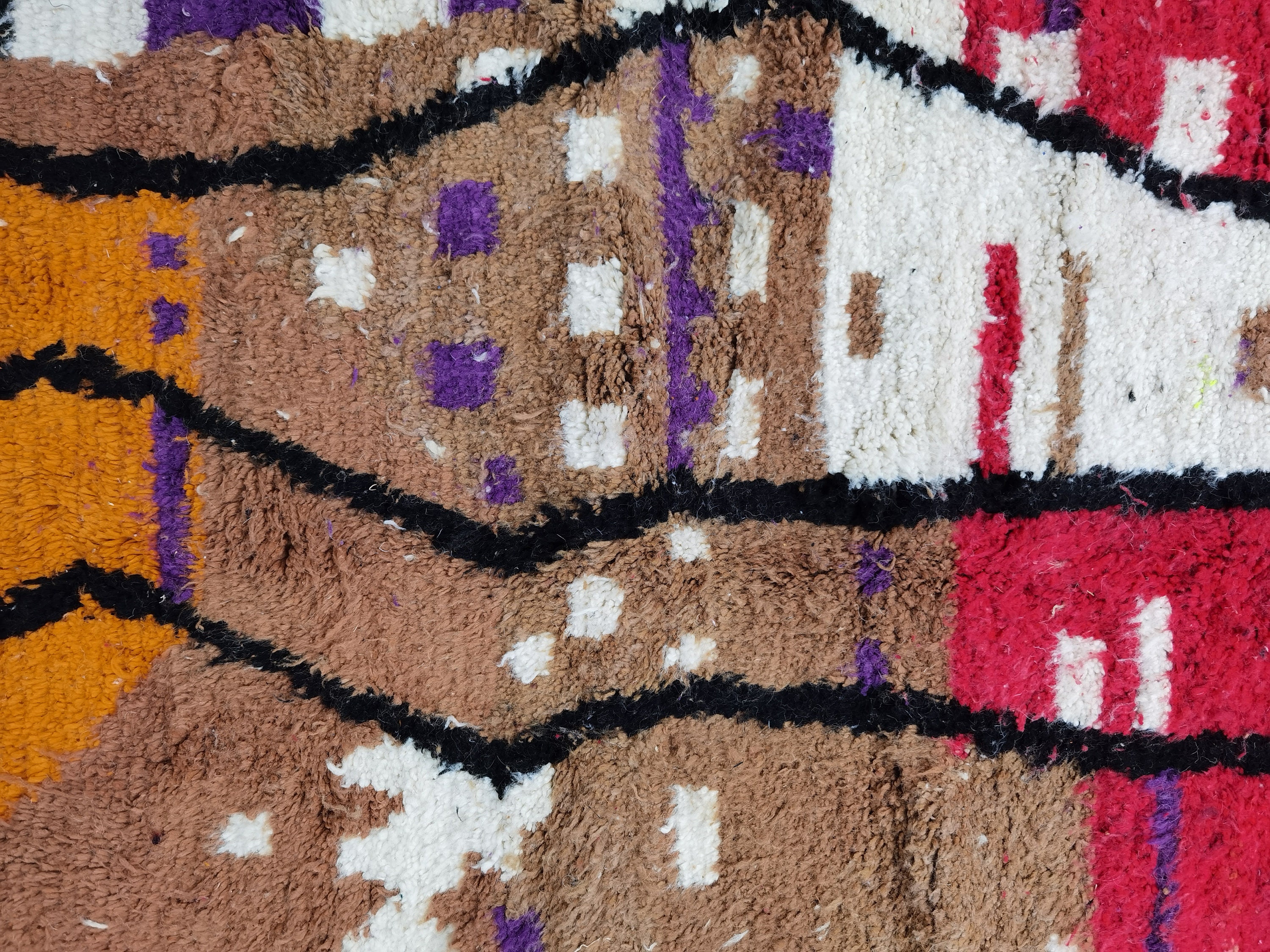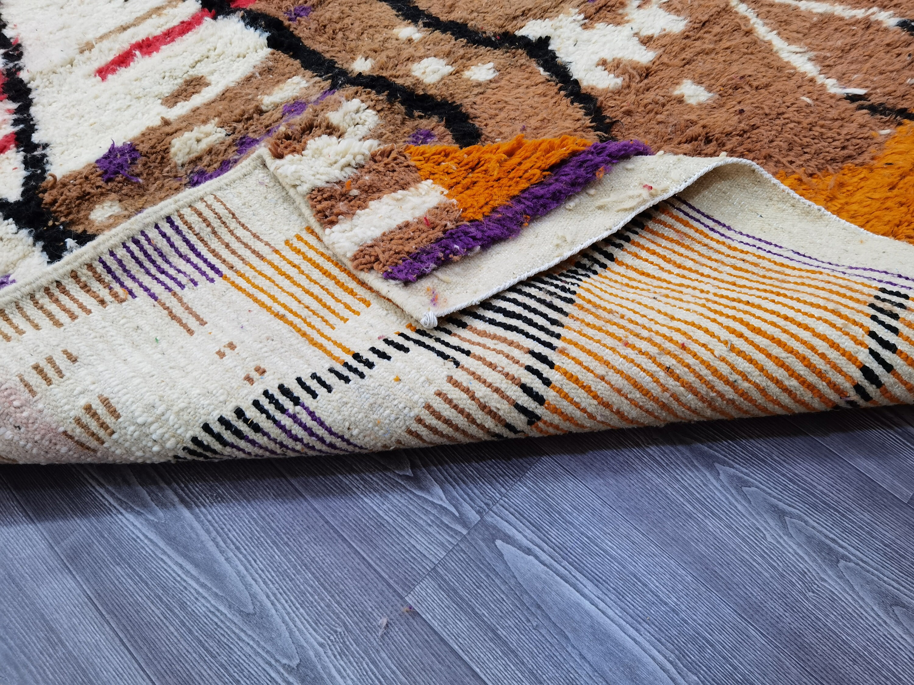 This unique Handwoven Moroccan Boujaad wool rug is one of a kind. A unique rare artistic handmade art, a beautiful combination of colors. which makes it the best choice whether for your house or your showroom. The famous Boujaad rug is now on the cover of the world’s leading home decoration magazines. This rug with character goes perfectly with all interior styles, Bohemian, Modern, Minimalist, Scandinavian, Traditional, which makes it the best choice for your needs.