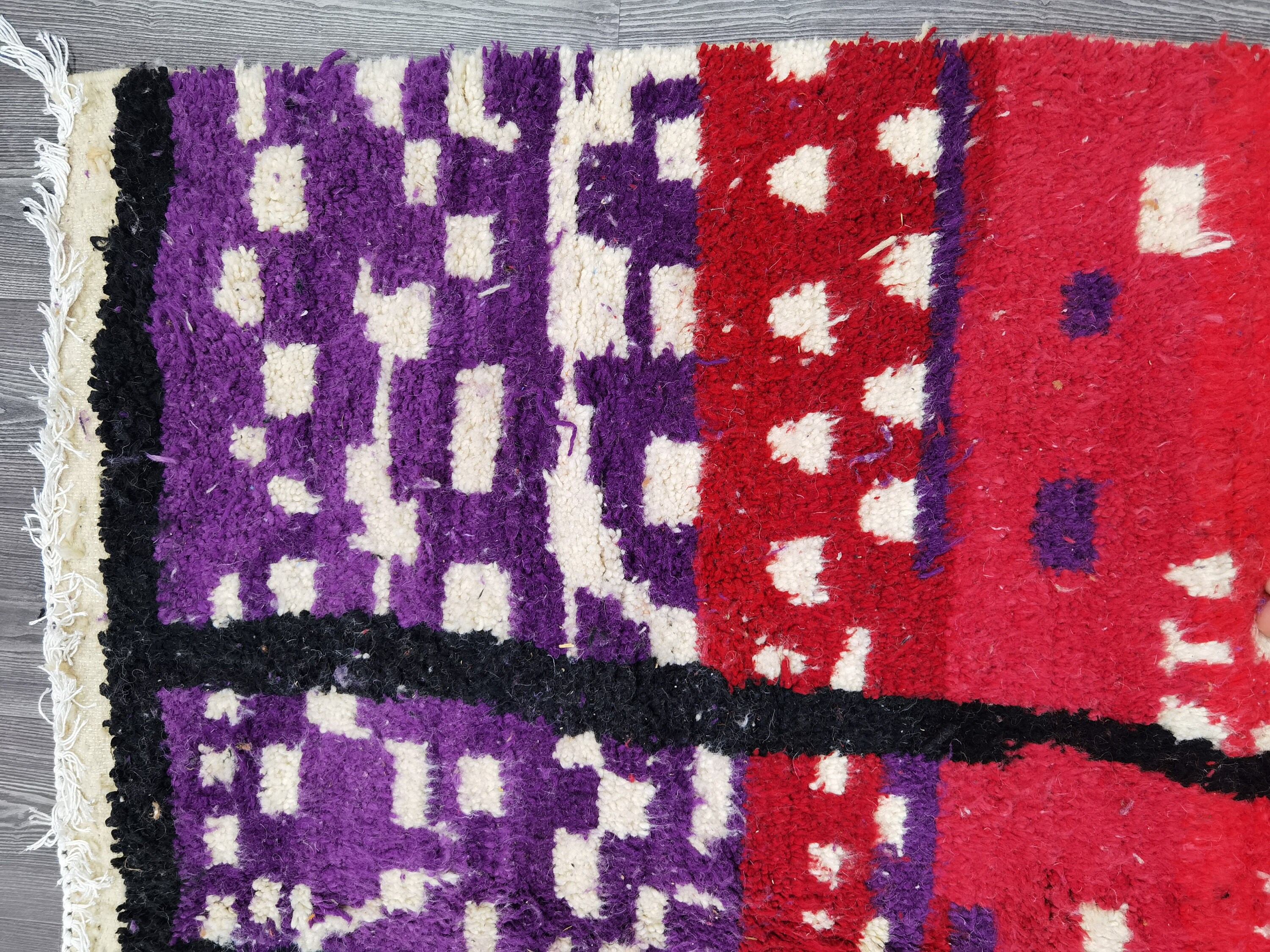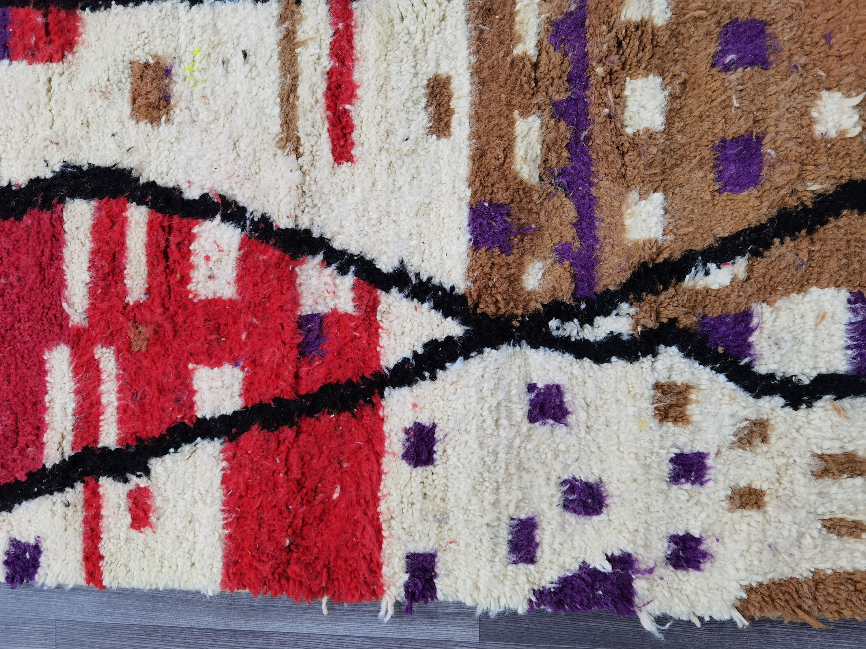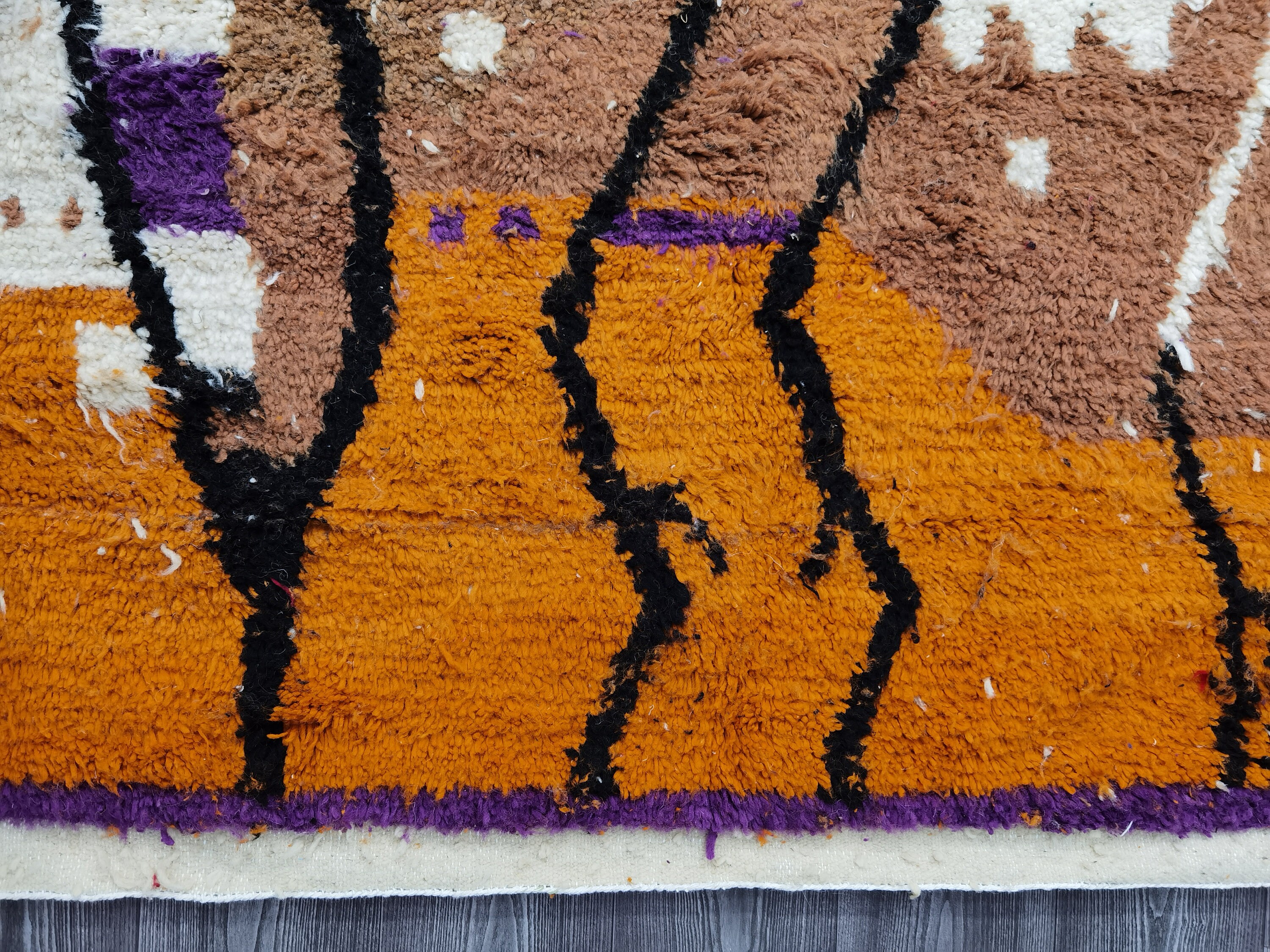 This unique Handwoven Moroccan Boujaad wool rug is one of a kind. A unique rare artistic handmade art, a beautiful combination of colors. which makes it the best choice whether for your house or your showroom. The famous Boujaad rug is now on the cover of the world’s leading home decoration magazines. This rug with character goes perfectly with all interior styles, Bohemian, Modern, Minimalist, Scandinavian, Traditional, which makes it the best choice for your needs.