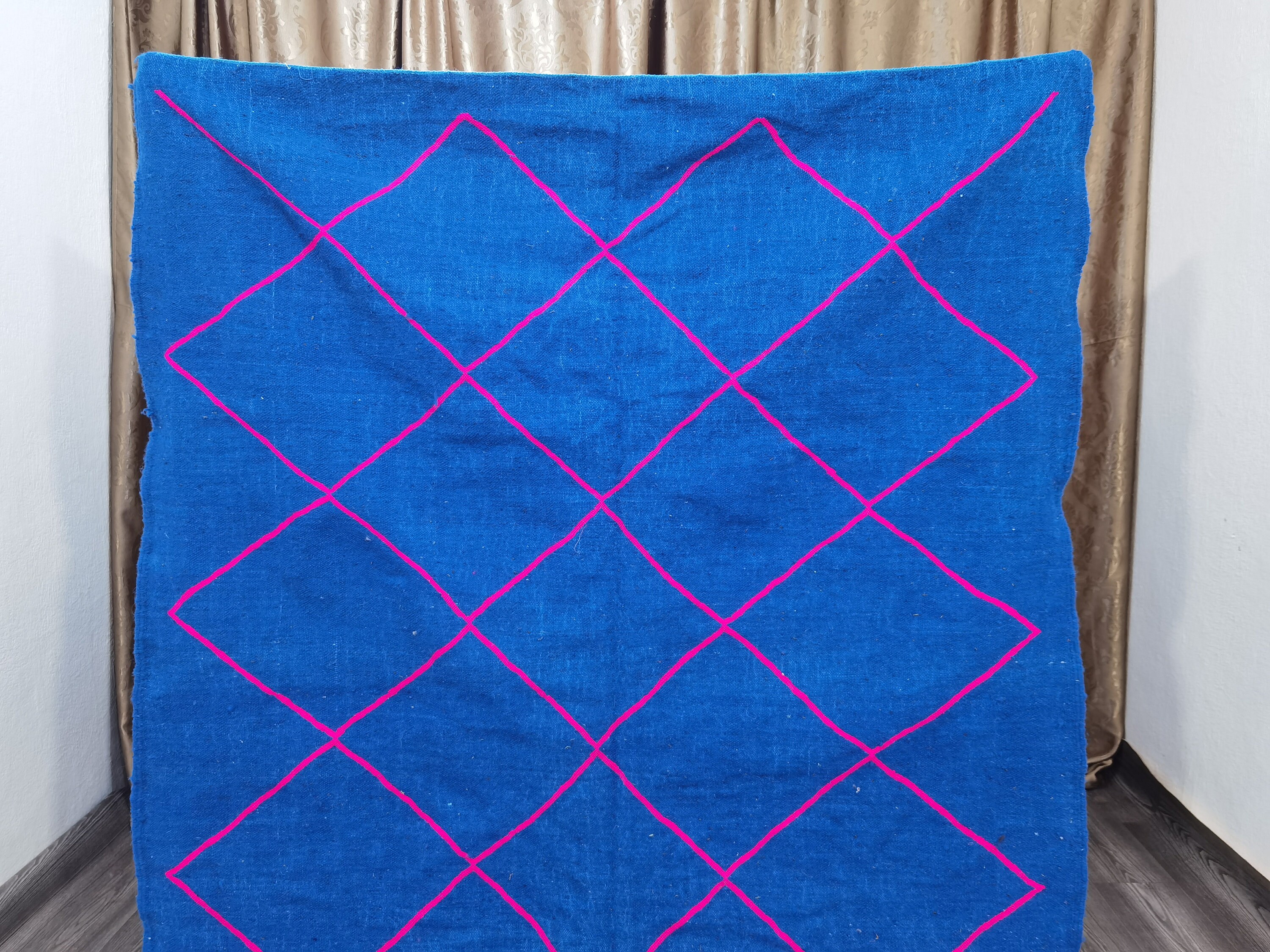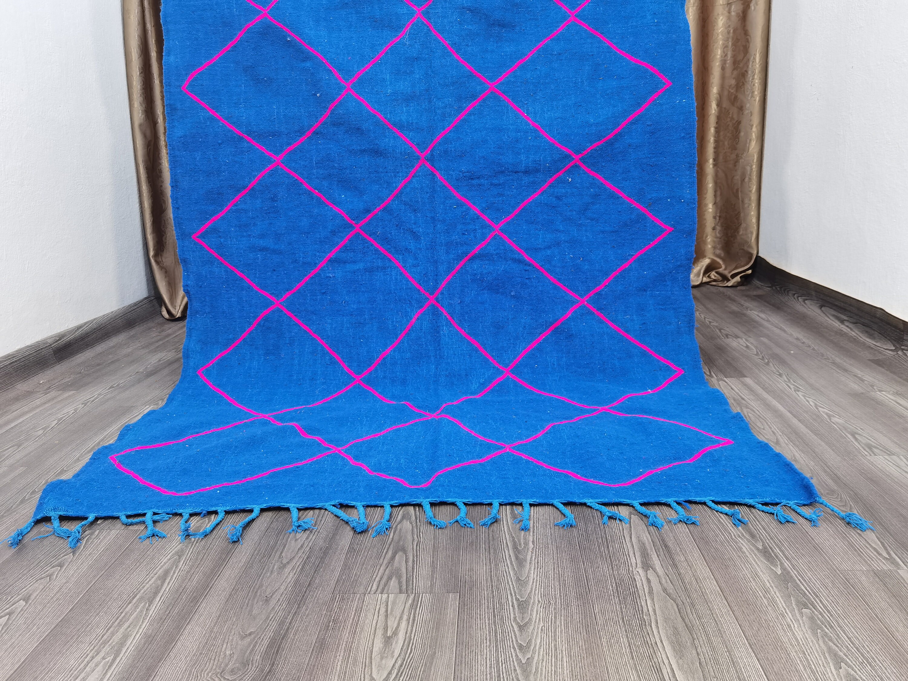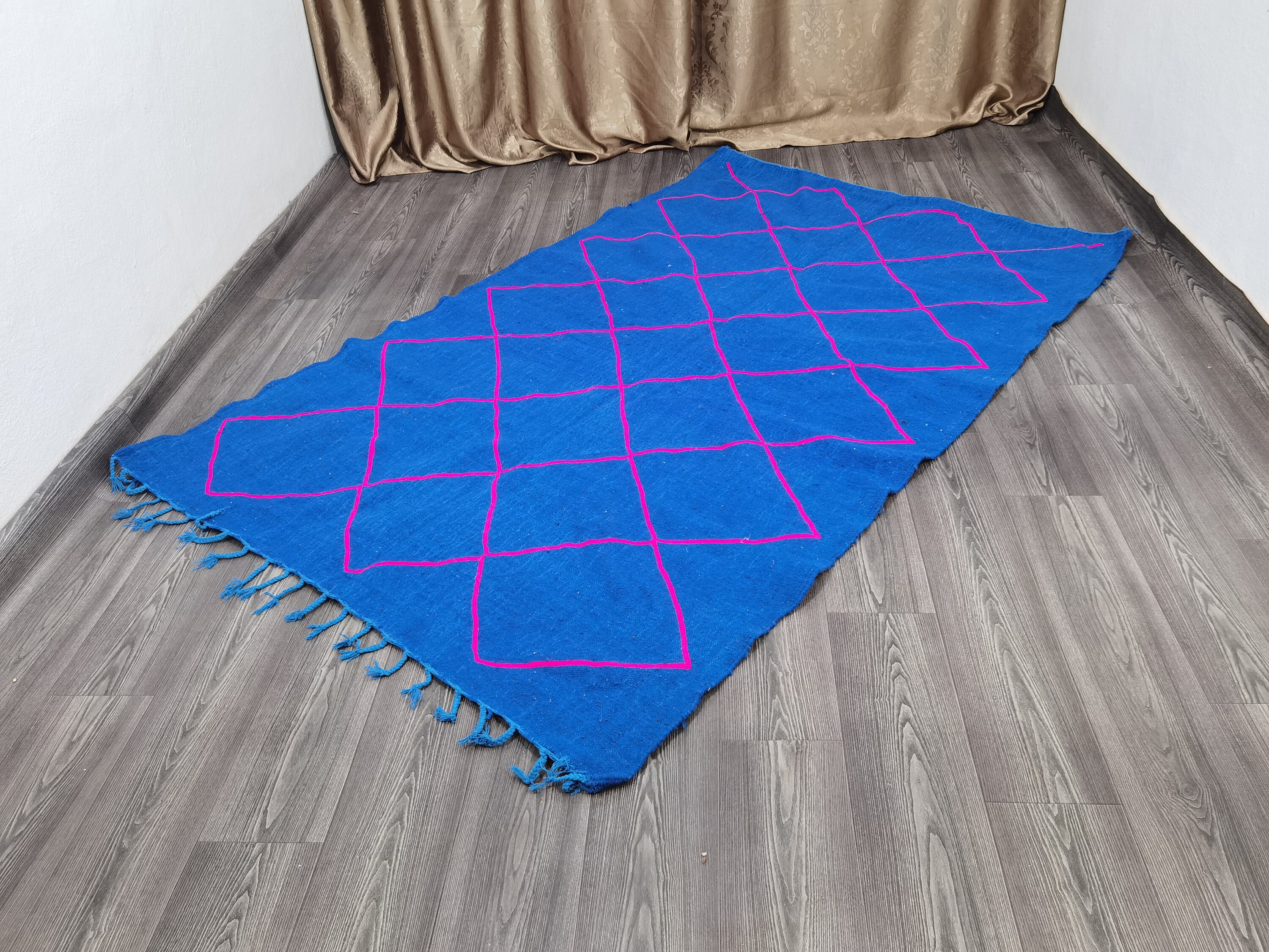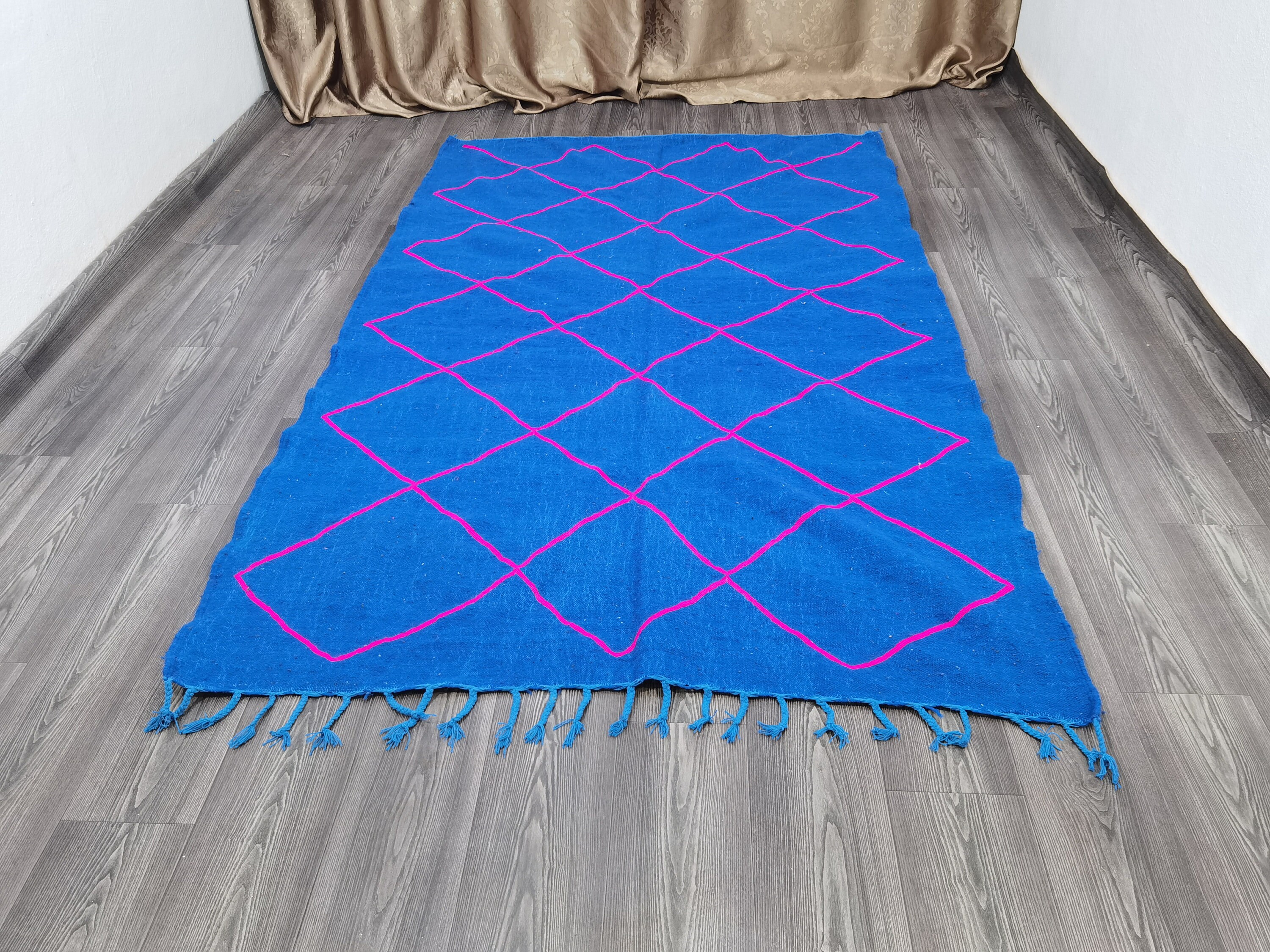 Custom Moroccan Kilim Rug, Blue Moroccan kilim rug, Custom Blue rug, Flat woven rug , Abstract Blue rug, Morrocan Area Rug, Berber Carpet