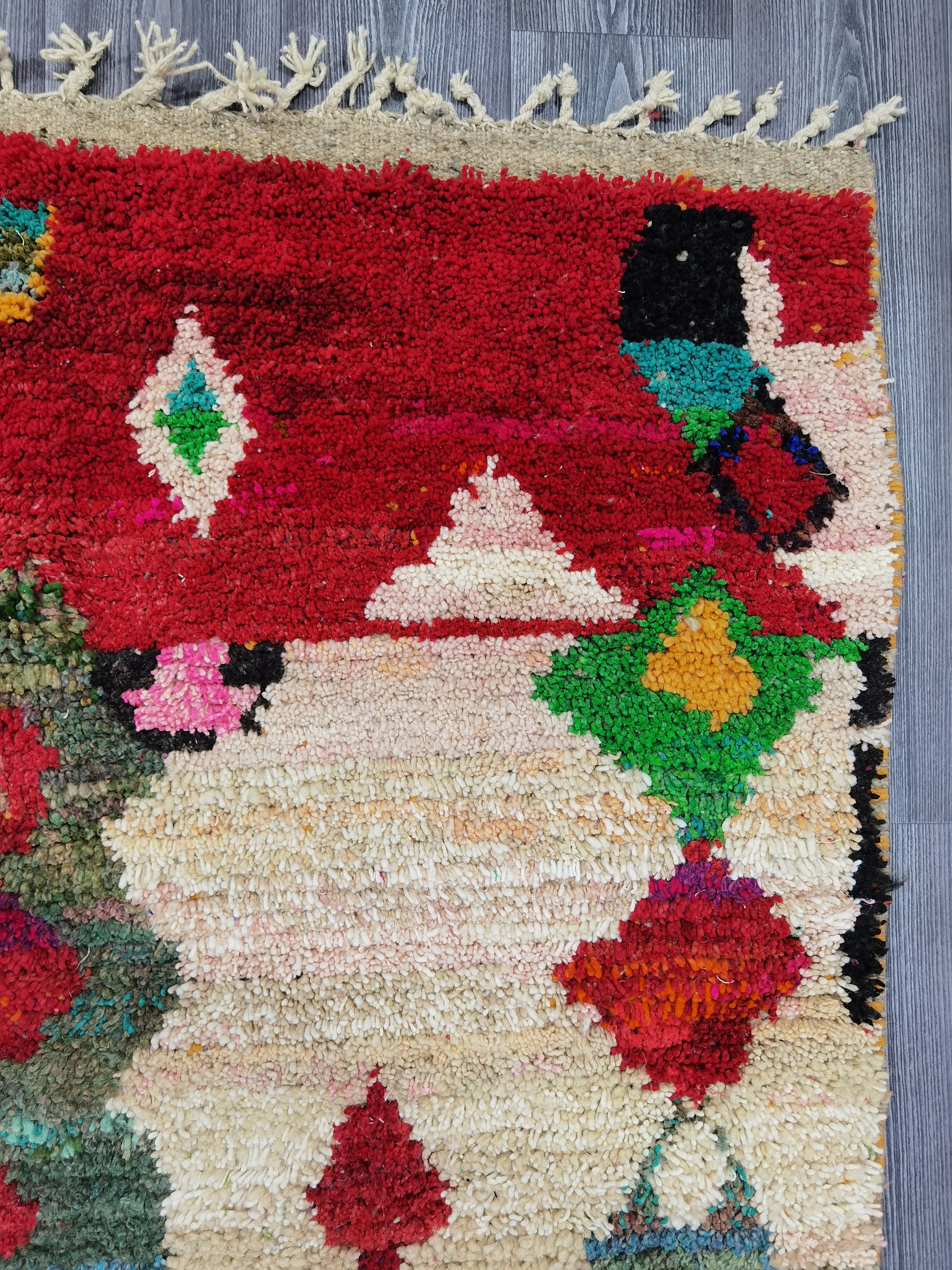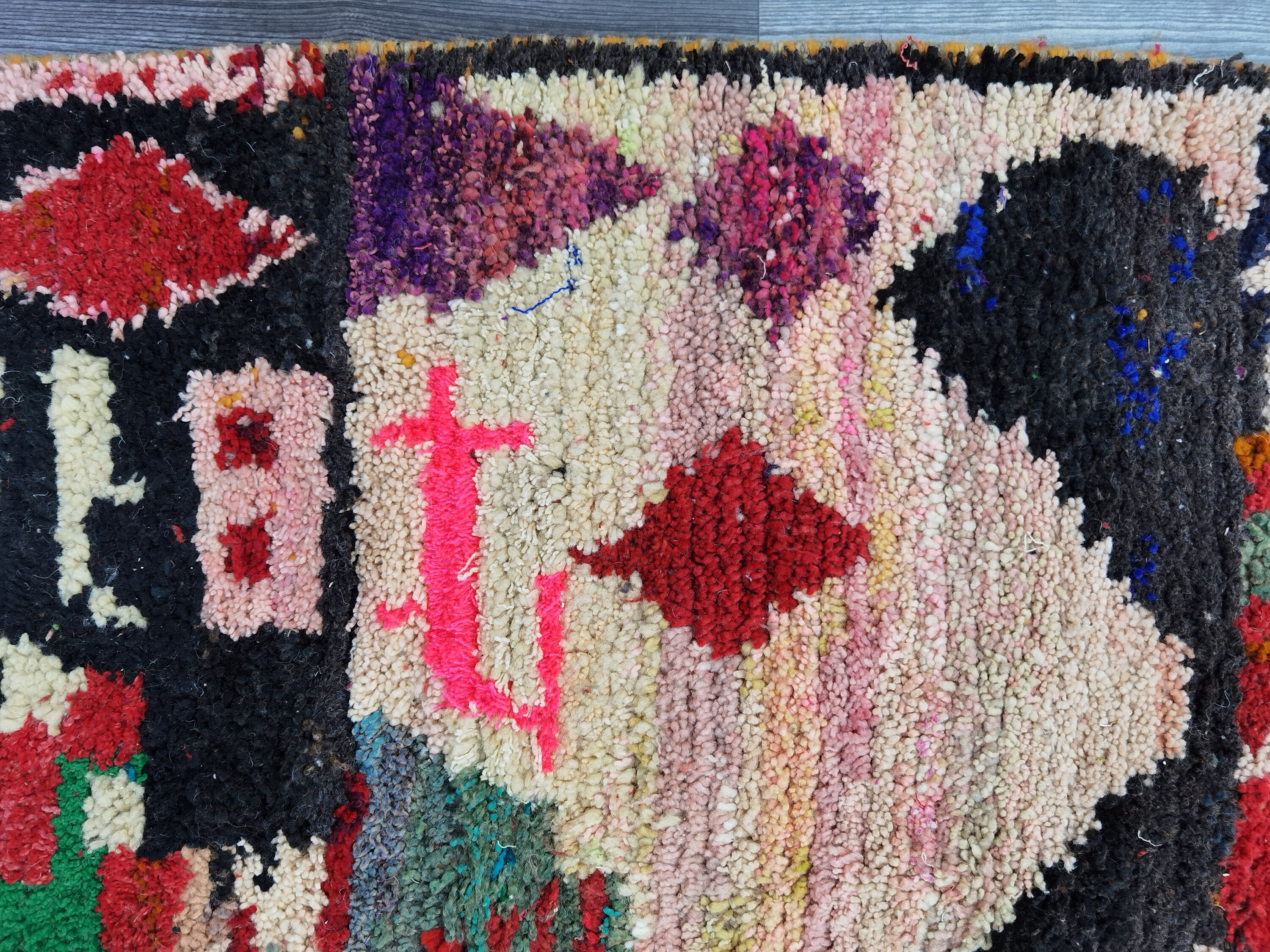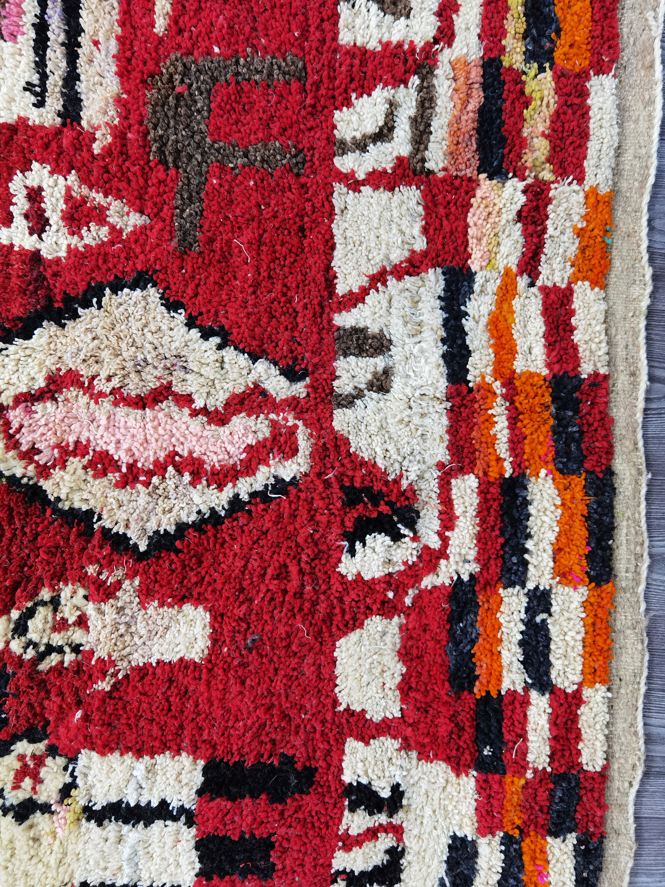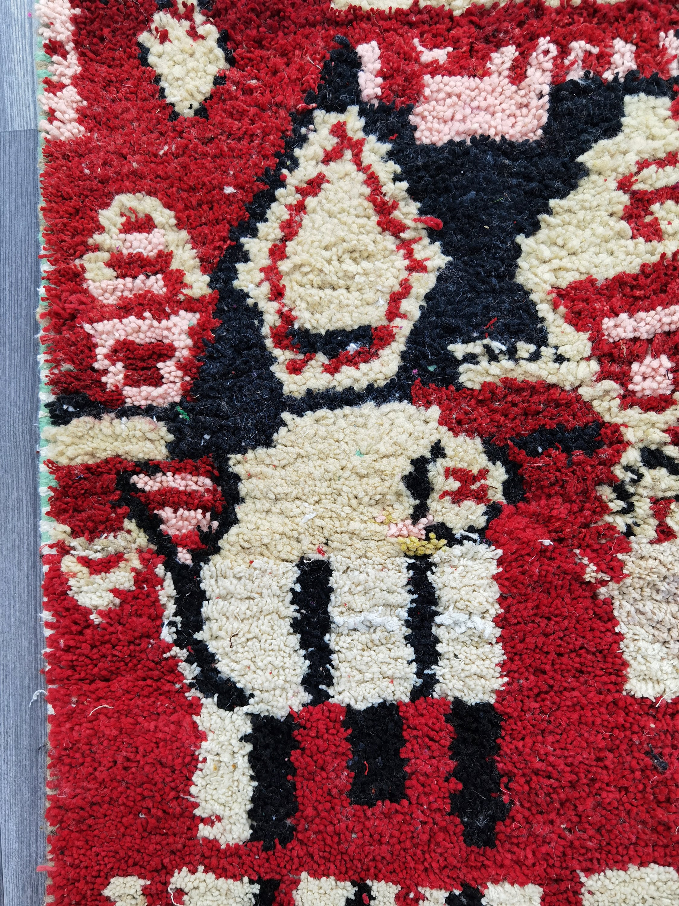 This unique Handwoven Moroccan Boujaad wool rug is one of a kind. A unique rare artistic handmade art, a beautiful combination of colors. which makes it the best choice whether for your house or your showroom. The famous Boujaad rug is now on the cover of the world’s leading home decoration magazines. This rug with character goes perfectly with all interior styles, Bohemian, Modern, Minimalist, Scandinavian, Traditional, which makes it the best choice for your needs.