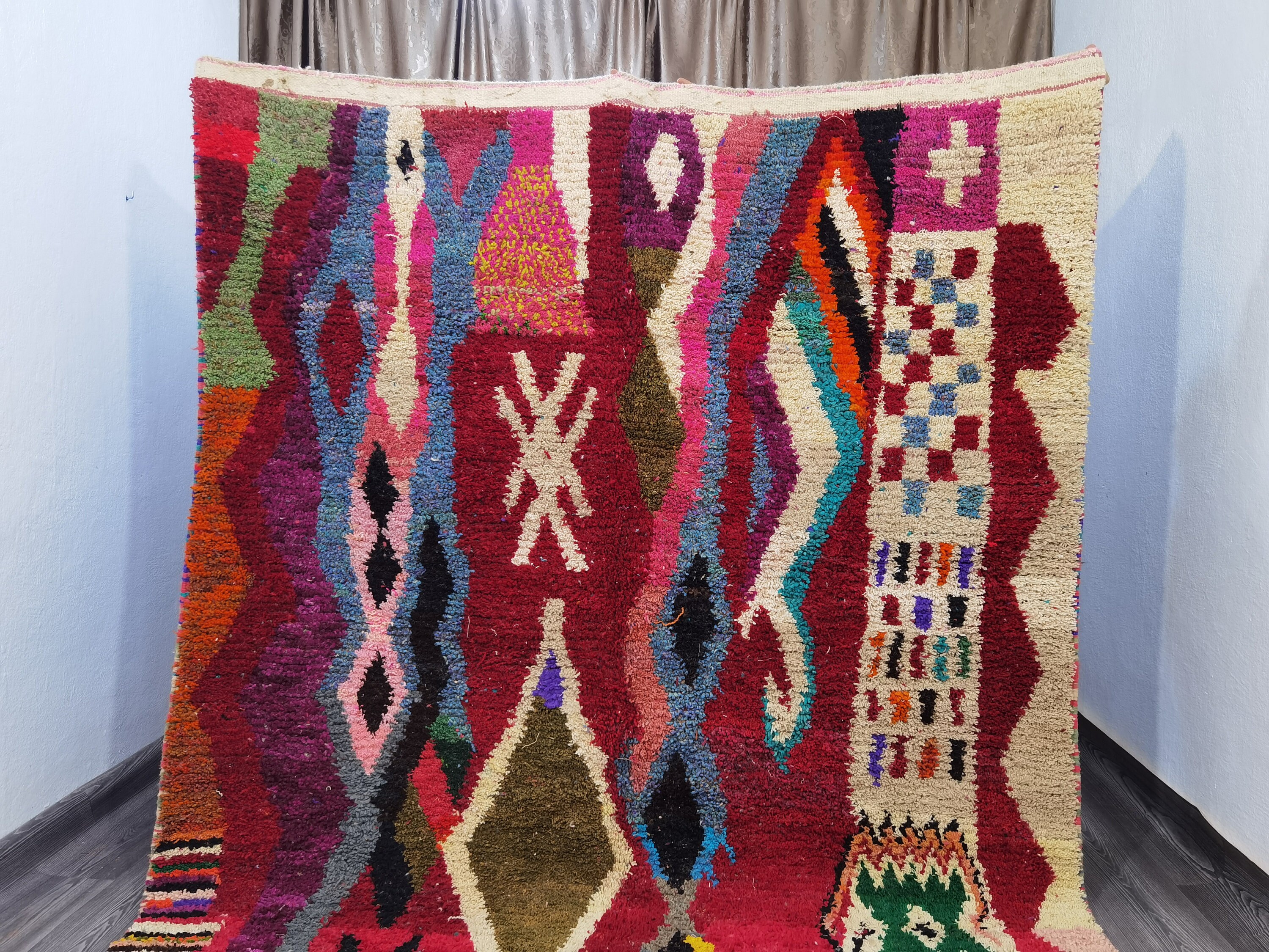 Moroccan Boujad Rug, Moroccan Berber Rug, Bedrom Area Rug , Custom Area Rug , Abstract Multicolored Carpet , Azilal Rug , Moroccan Carpet