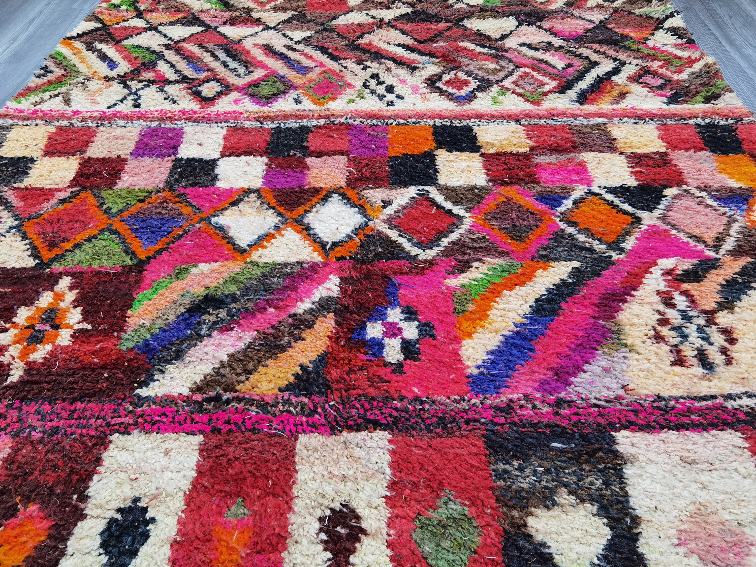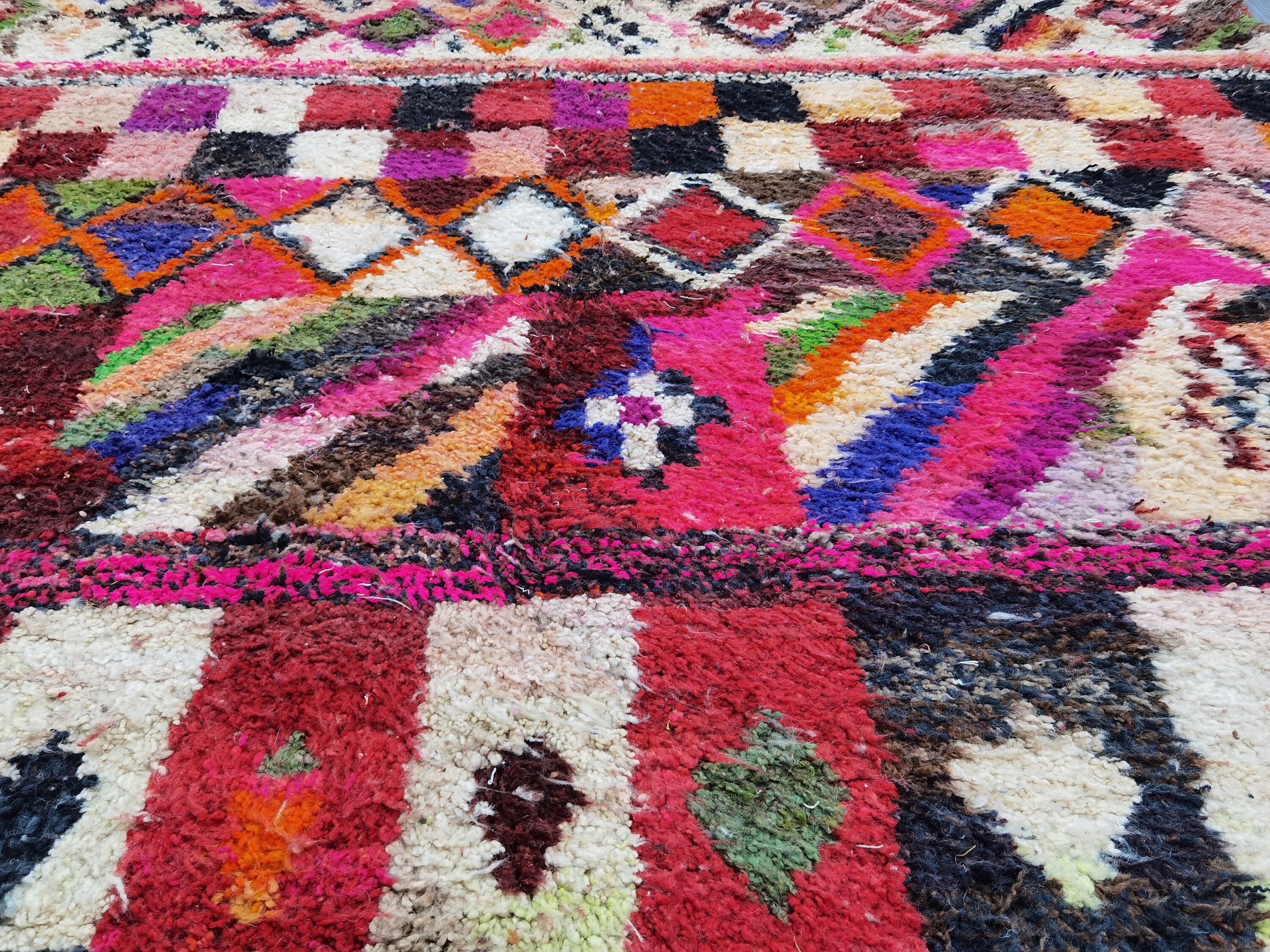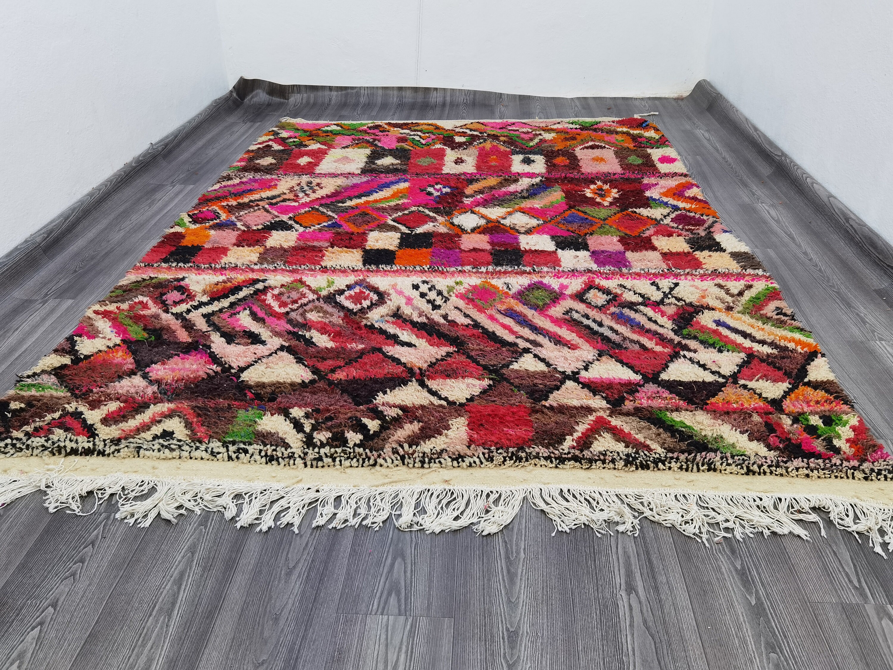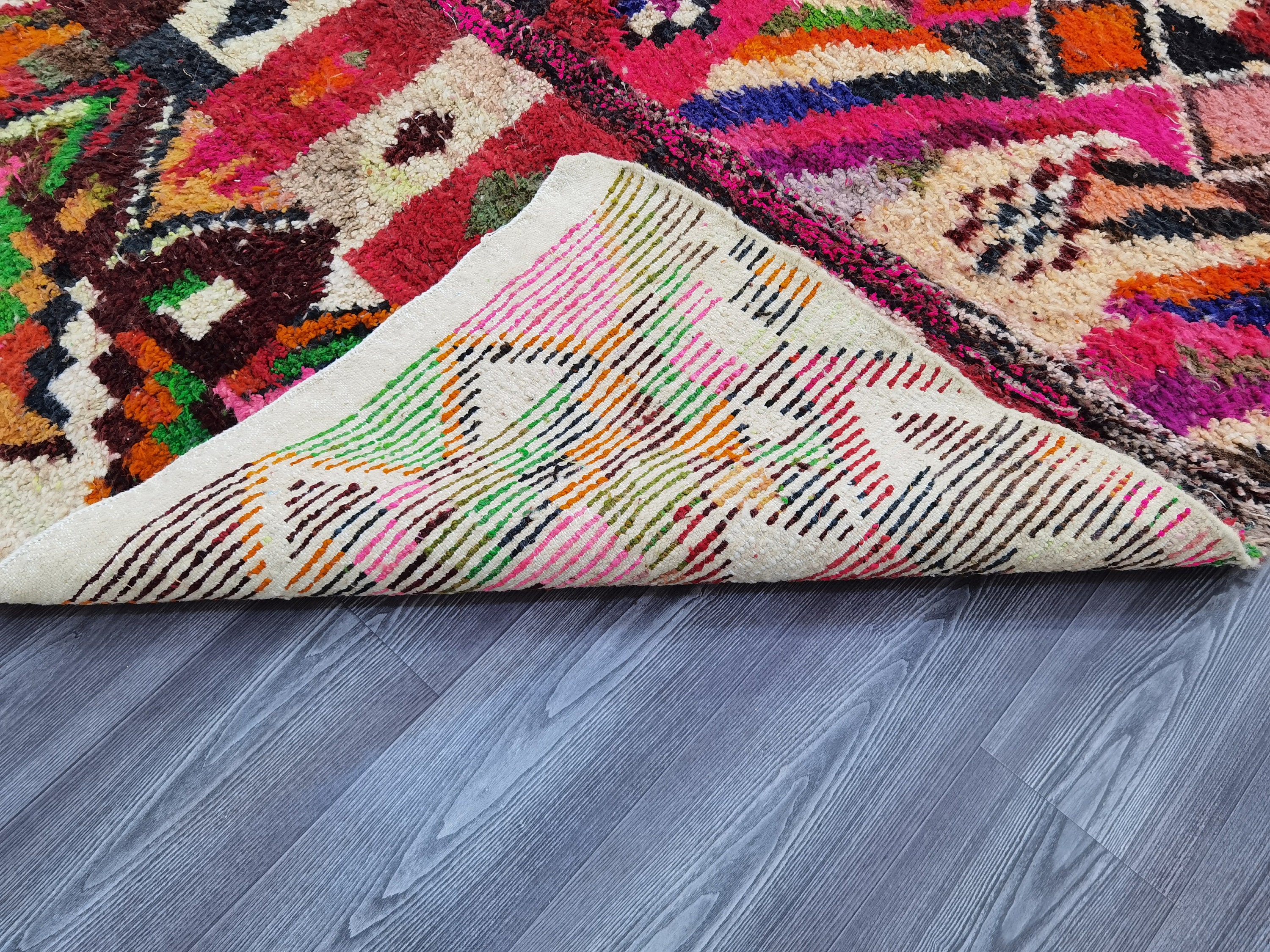 This unique Handwoven Moroccan Boujaad wool rug is one of a kind. A unique rare artistic handmade art, a beautiful combination of colors. which makes it the best choice whether for your house or your showroom. The famous Boujaad rug is now on the cover of the world’s leading home decoration magazines. This rug with character goes perfectly with all interior styles, Bohemian, Modern, Minimalist, Scandinavian, Traditional, which makes it the best choice for your needs.