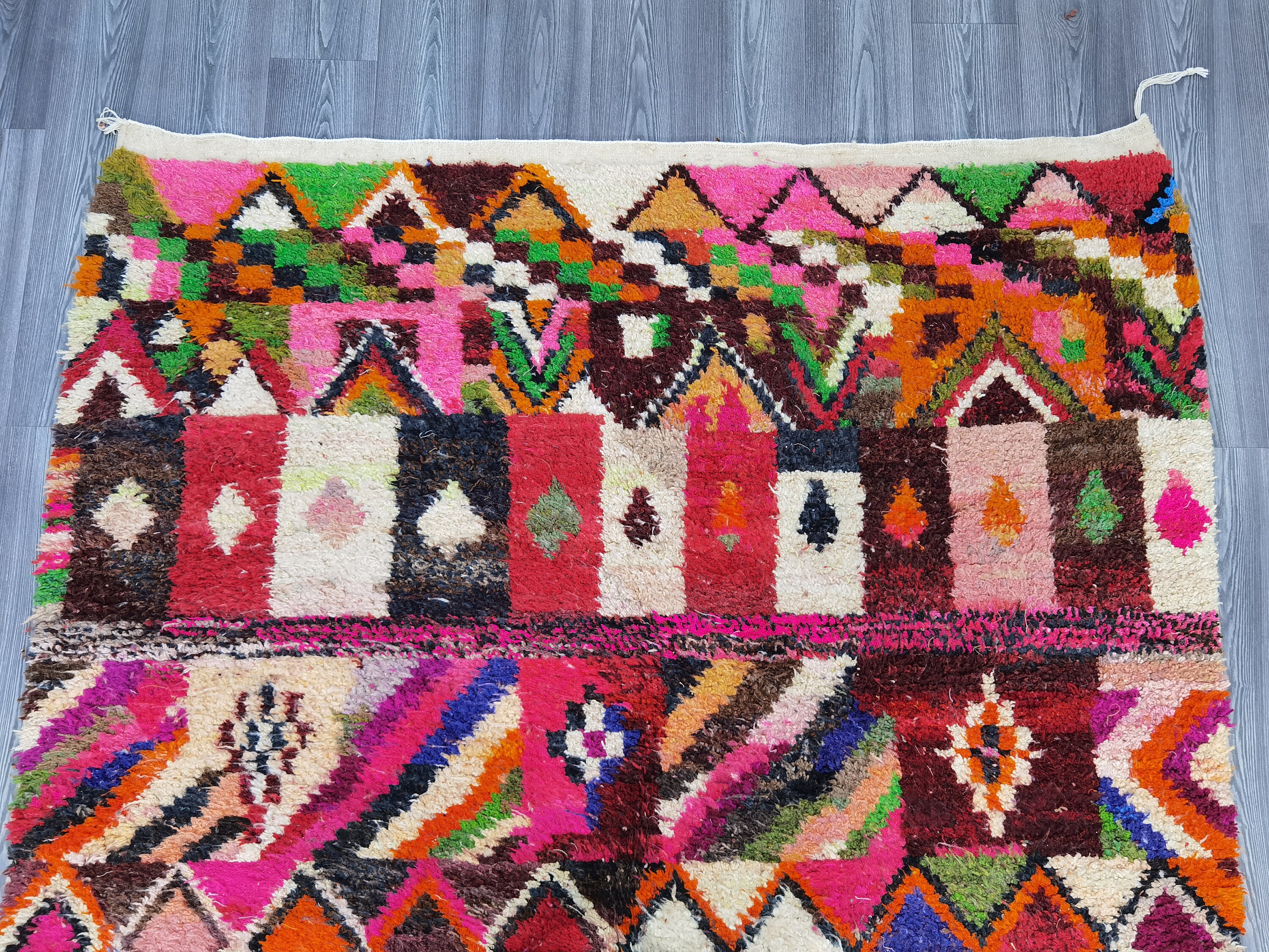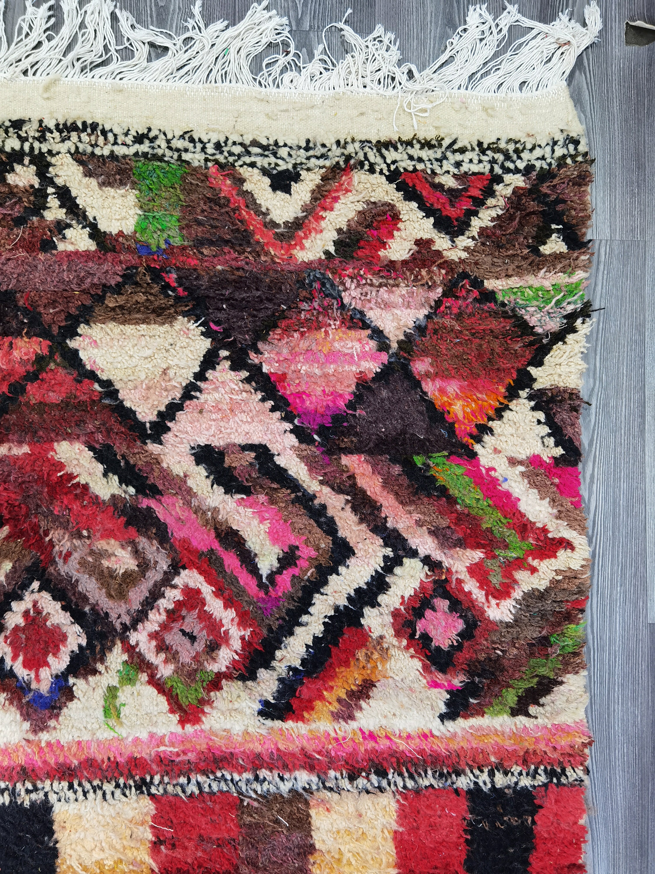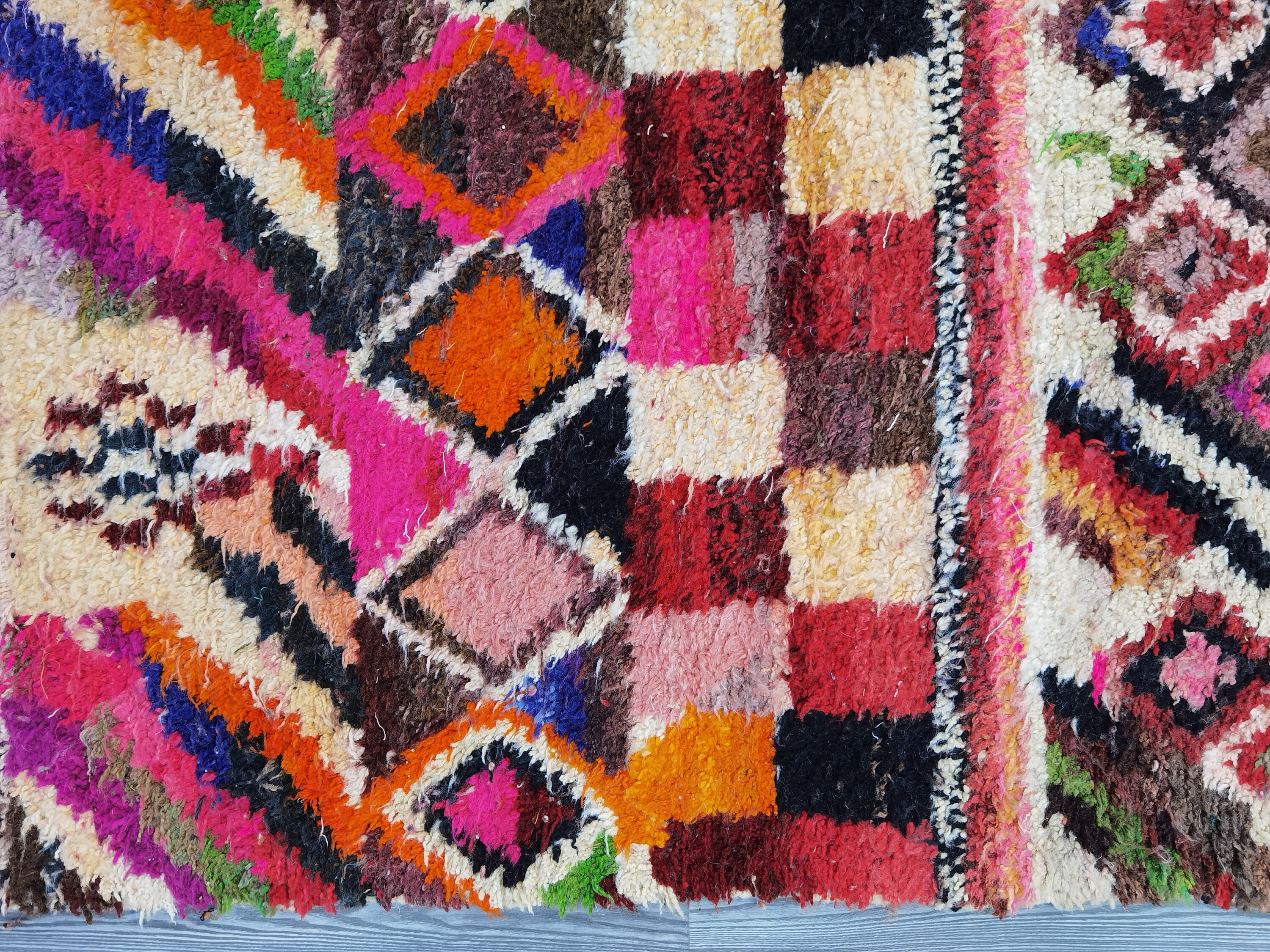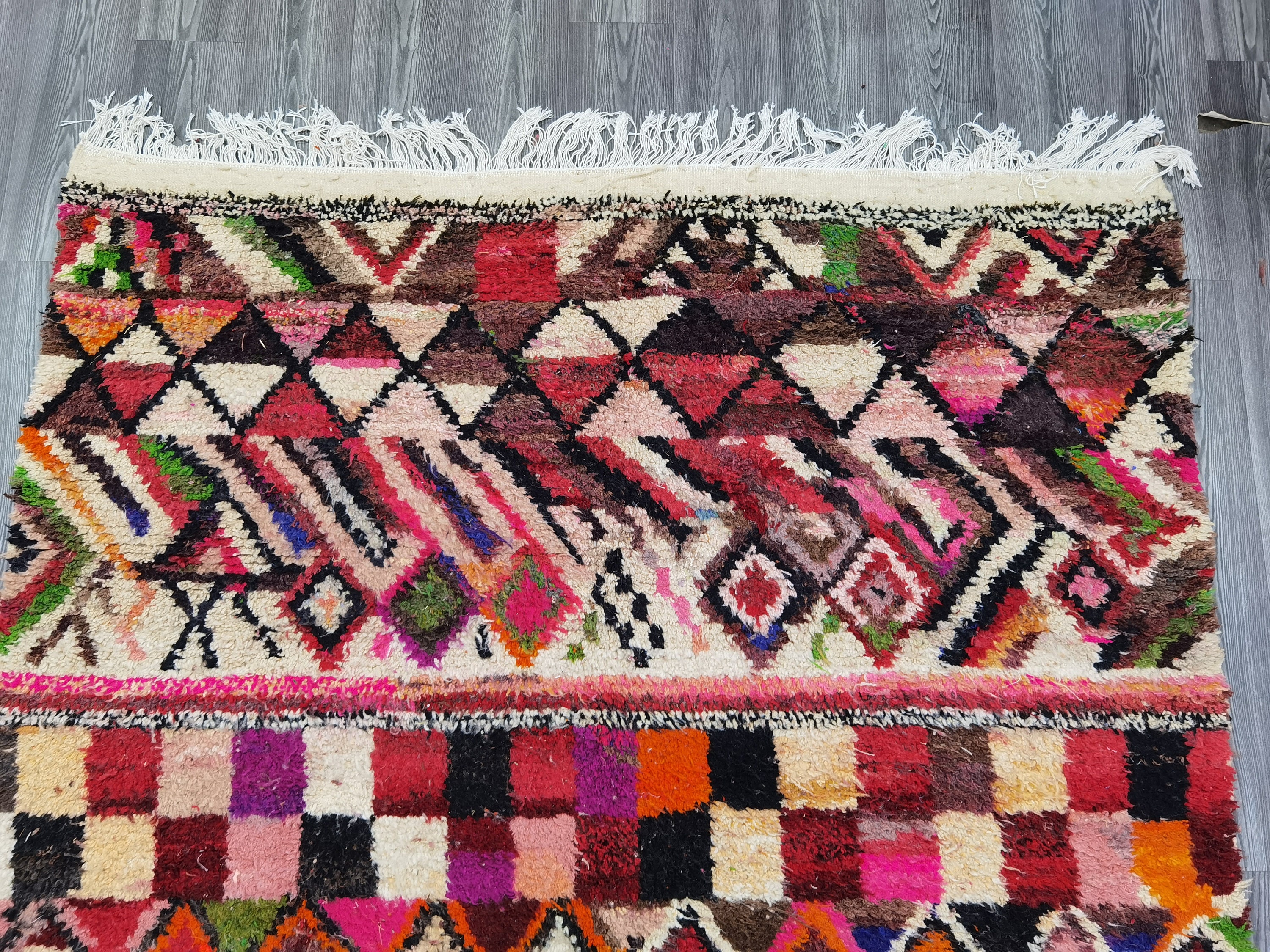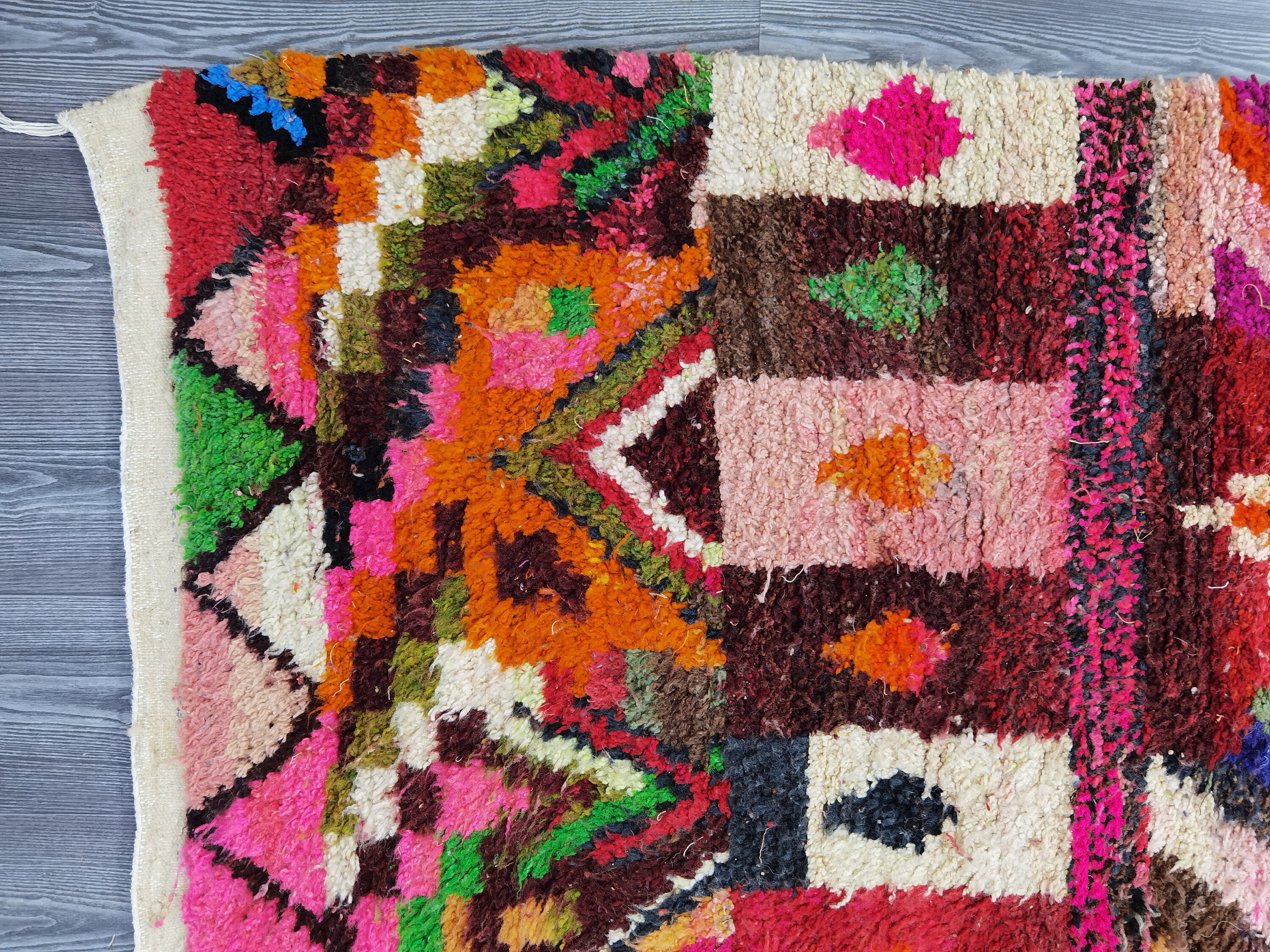 This unique Handwoven Moroccan Boujaad wool rug is one of a kind. A unique rare artistic handmade art, a beautiful combination of colors. which makes it the best choice whether for your house or your showroom. The famous Boujaad rug is now on the cover of the world’s leading home decoration magazines. This rug with character goes perfectly with all interior styles, Bohemian, Modern, Minimalist, Scandinavian, Traditional, which makes it the best choice for your needs.