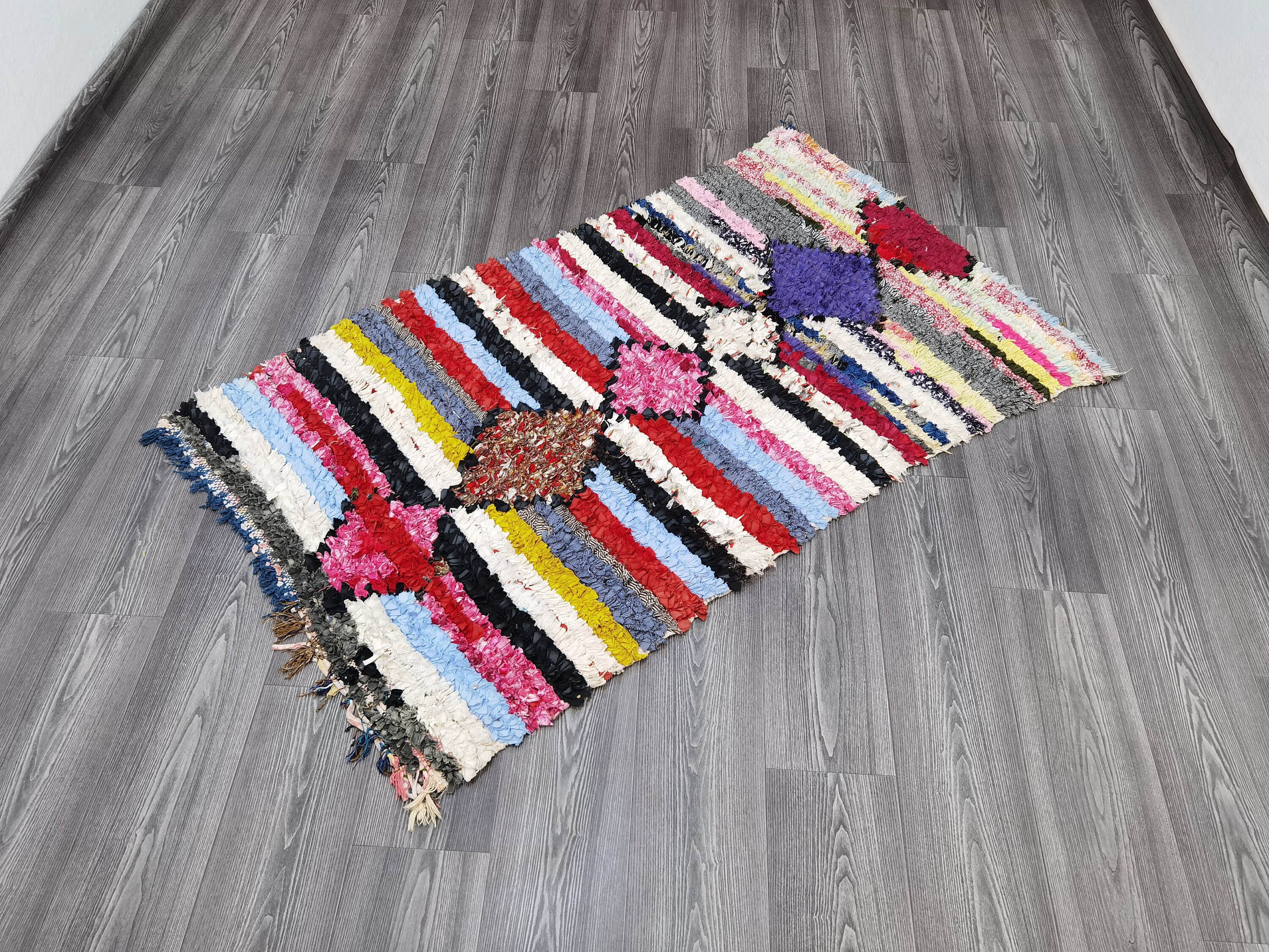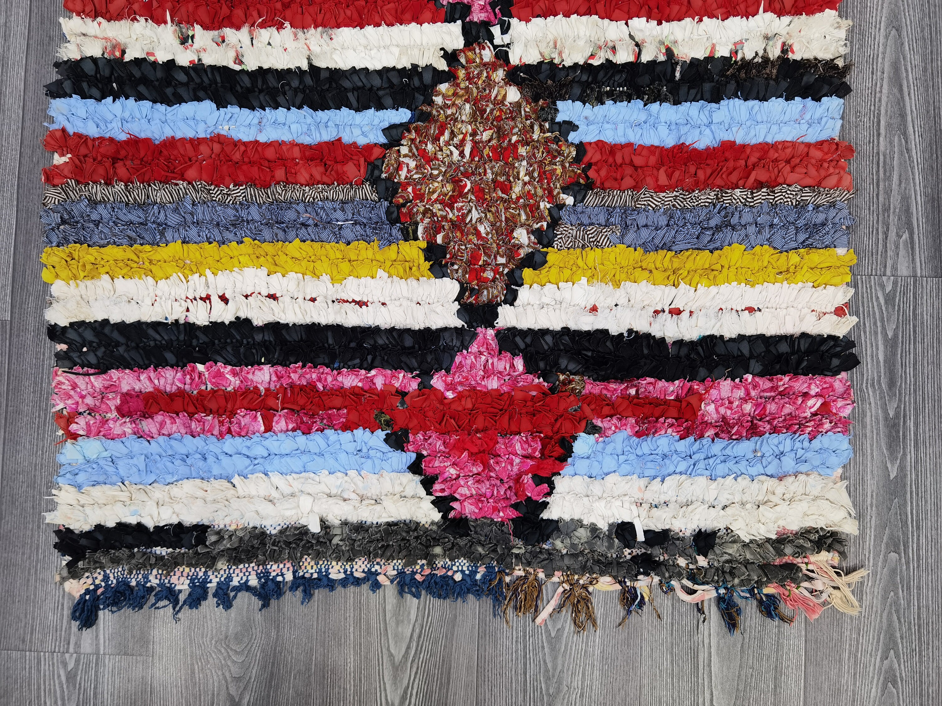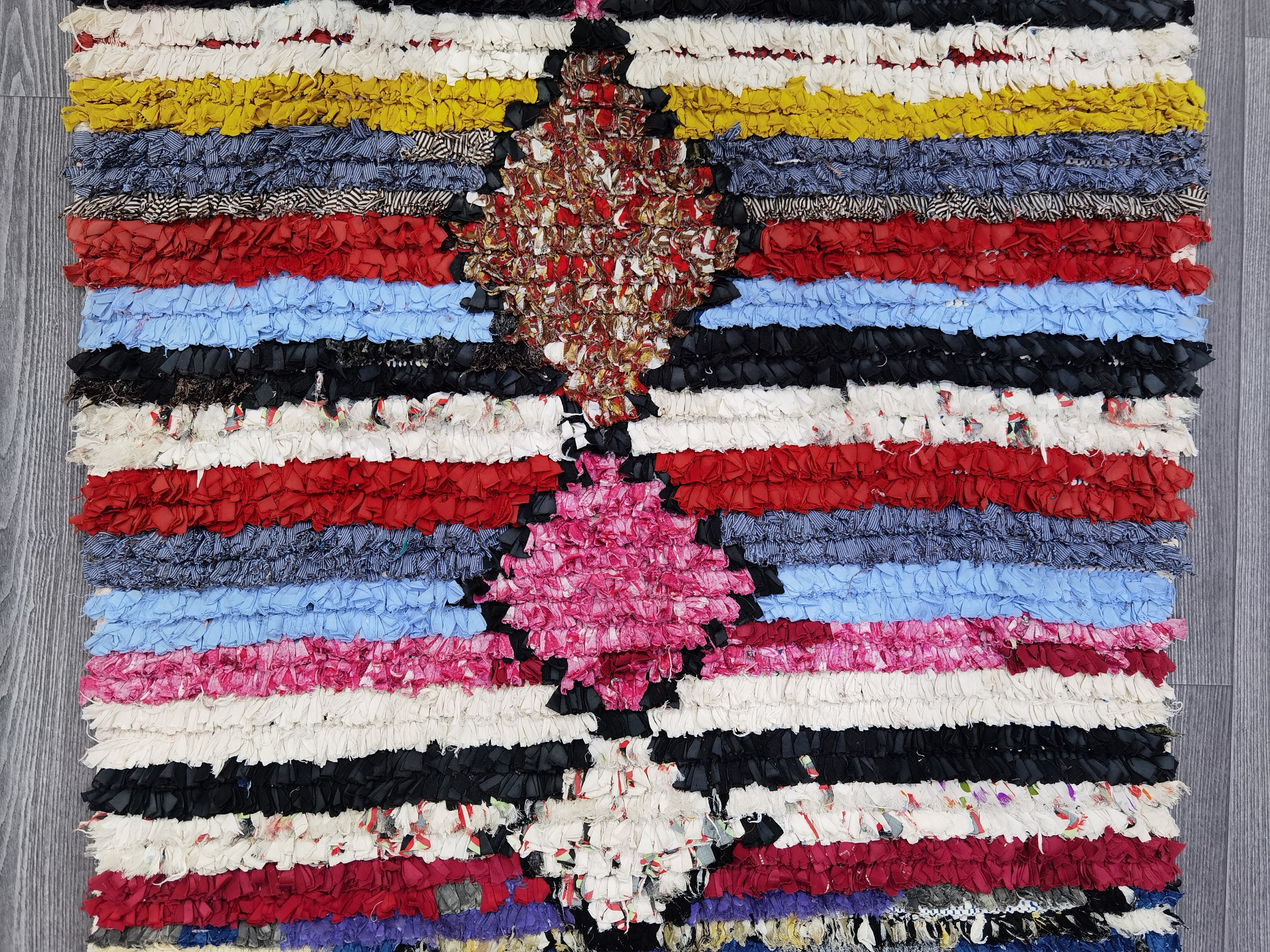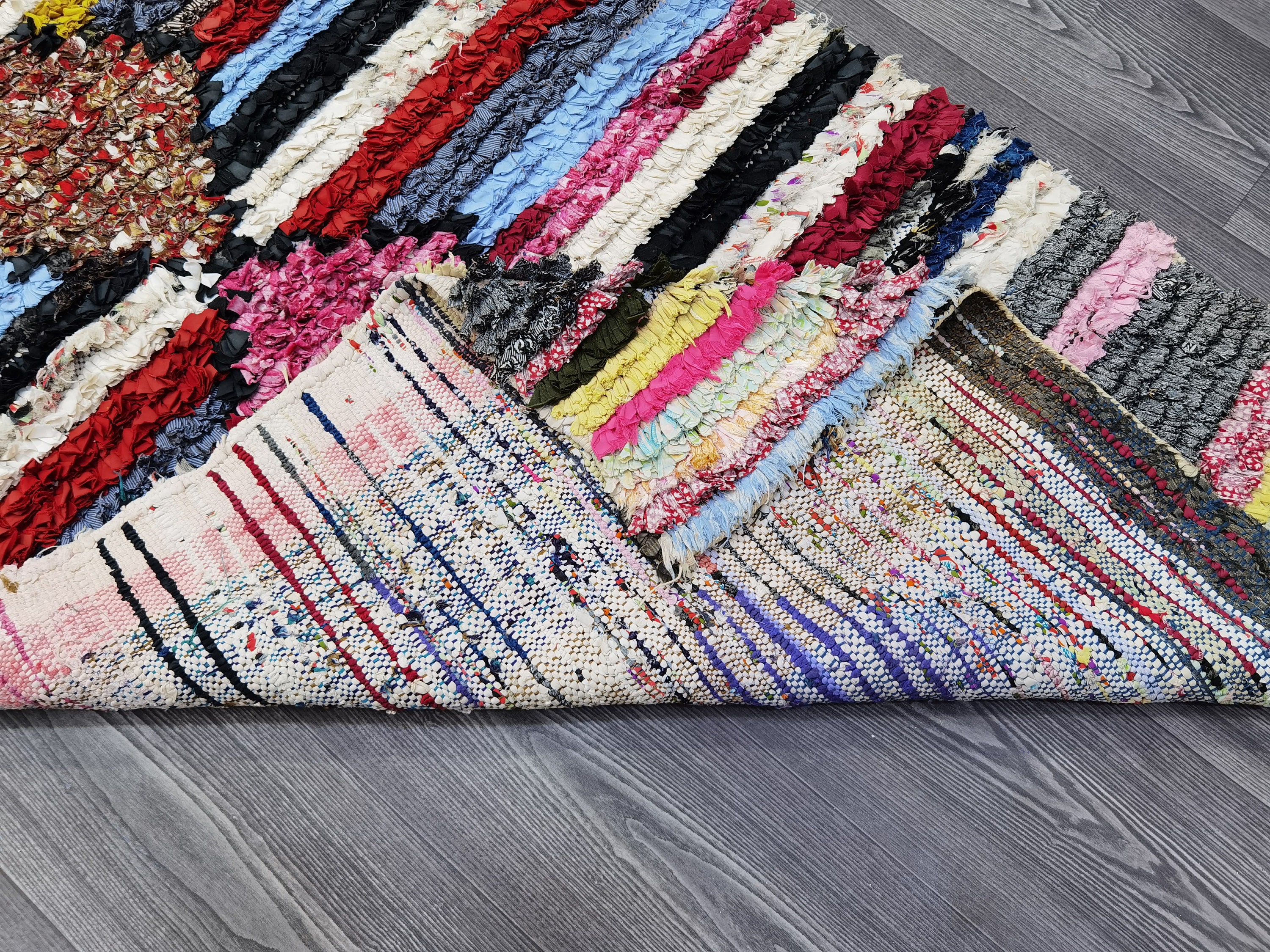 Introducing the Boucherouite Rug - a colorful and unique rug perfect for any room in your home! Made from recycled fabric, this runner is durable and easy to care for - perfect for use in your kitchen, bedroom, or anywhere you need a bit of color and personality.