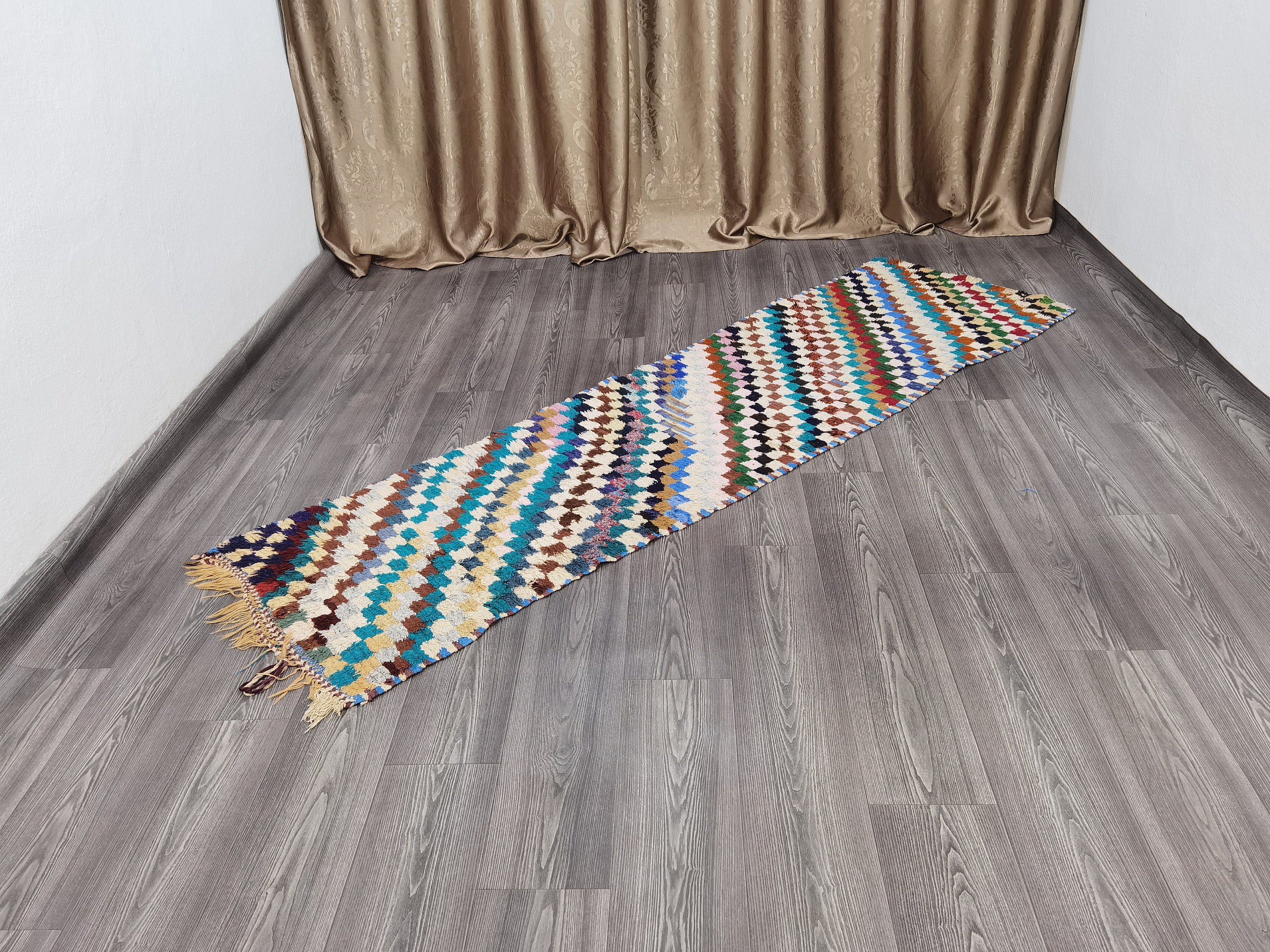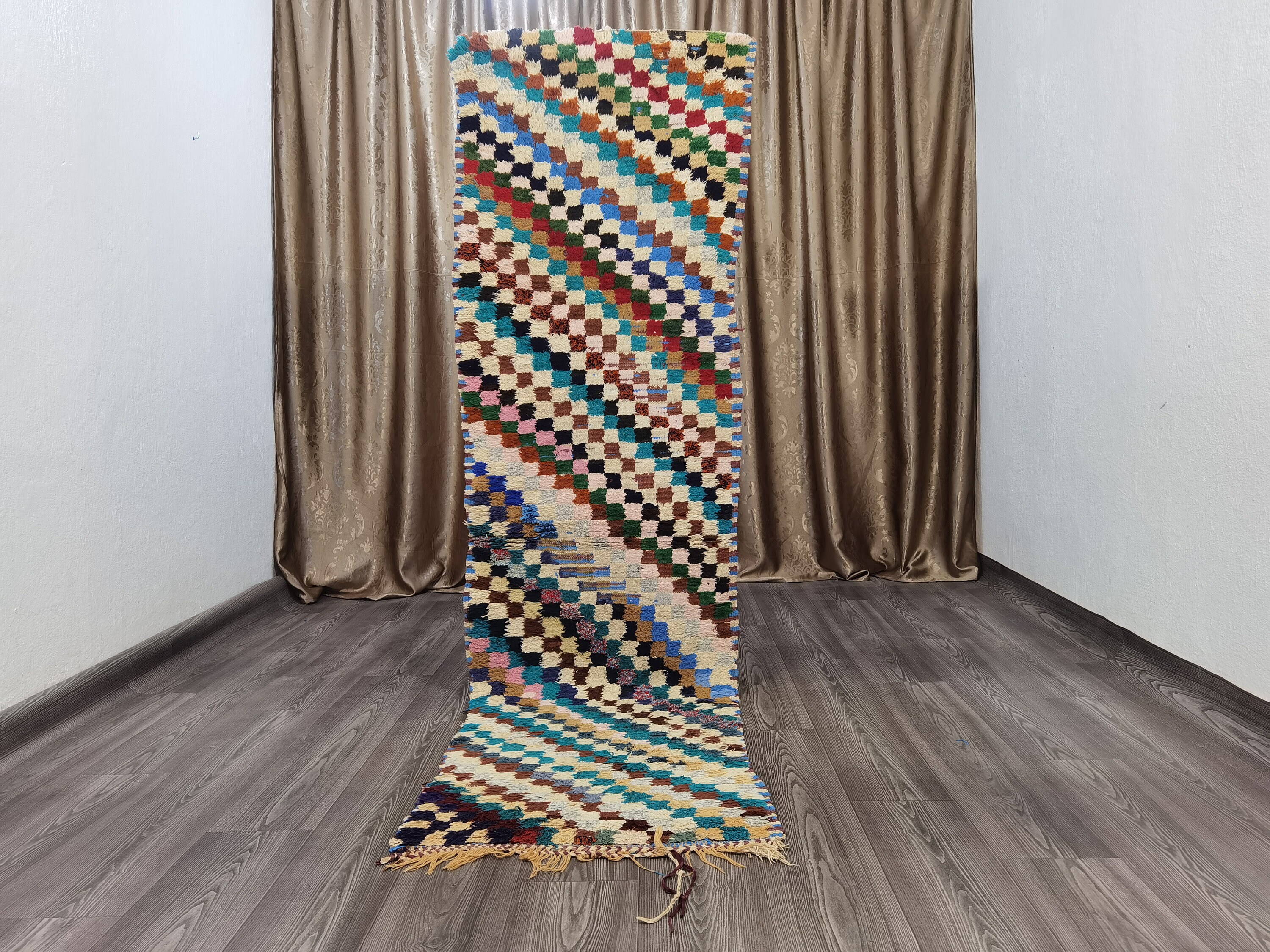 2,29 x 8,26Feet - Moroccan vintage Berber checkered runner rug - Antique runner - Vintage Azilal Rug - Carpet Runner - Handmade runner