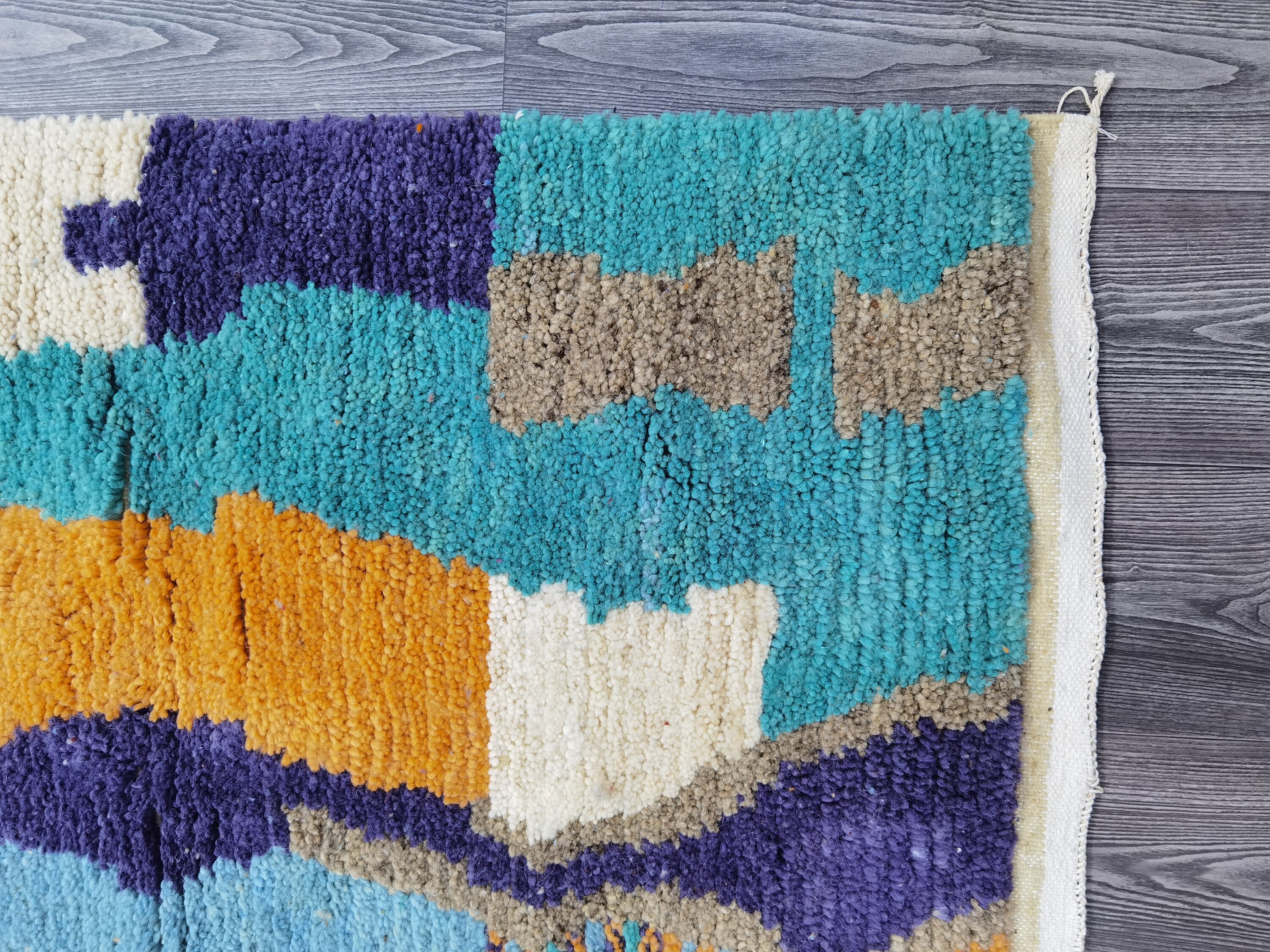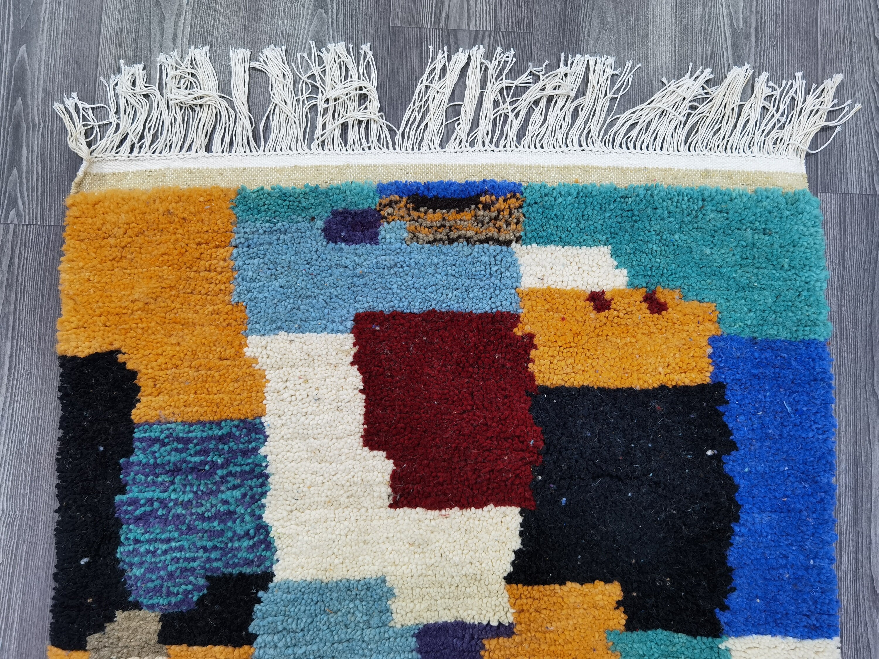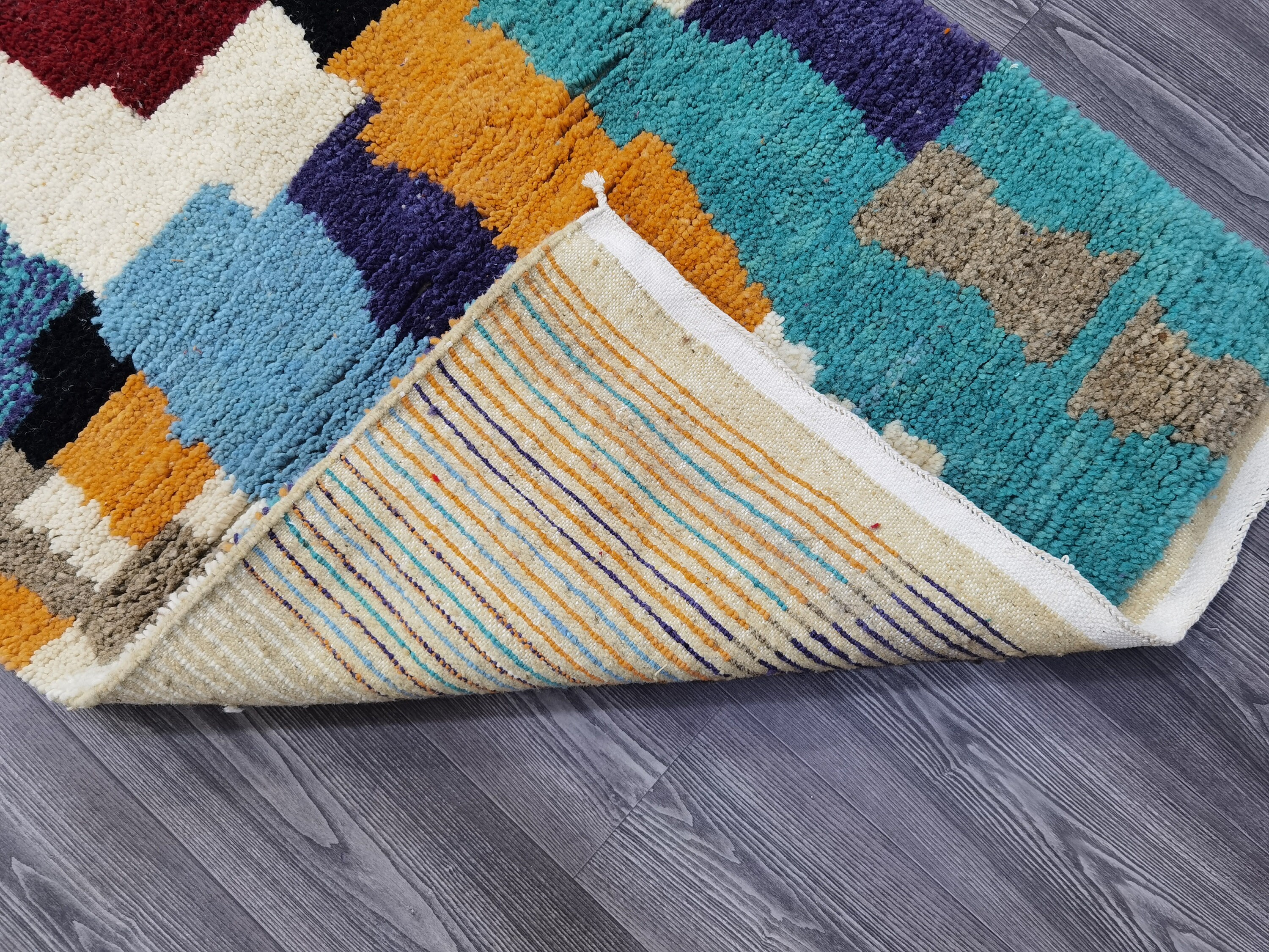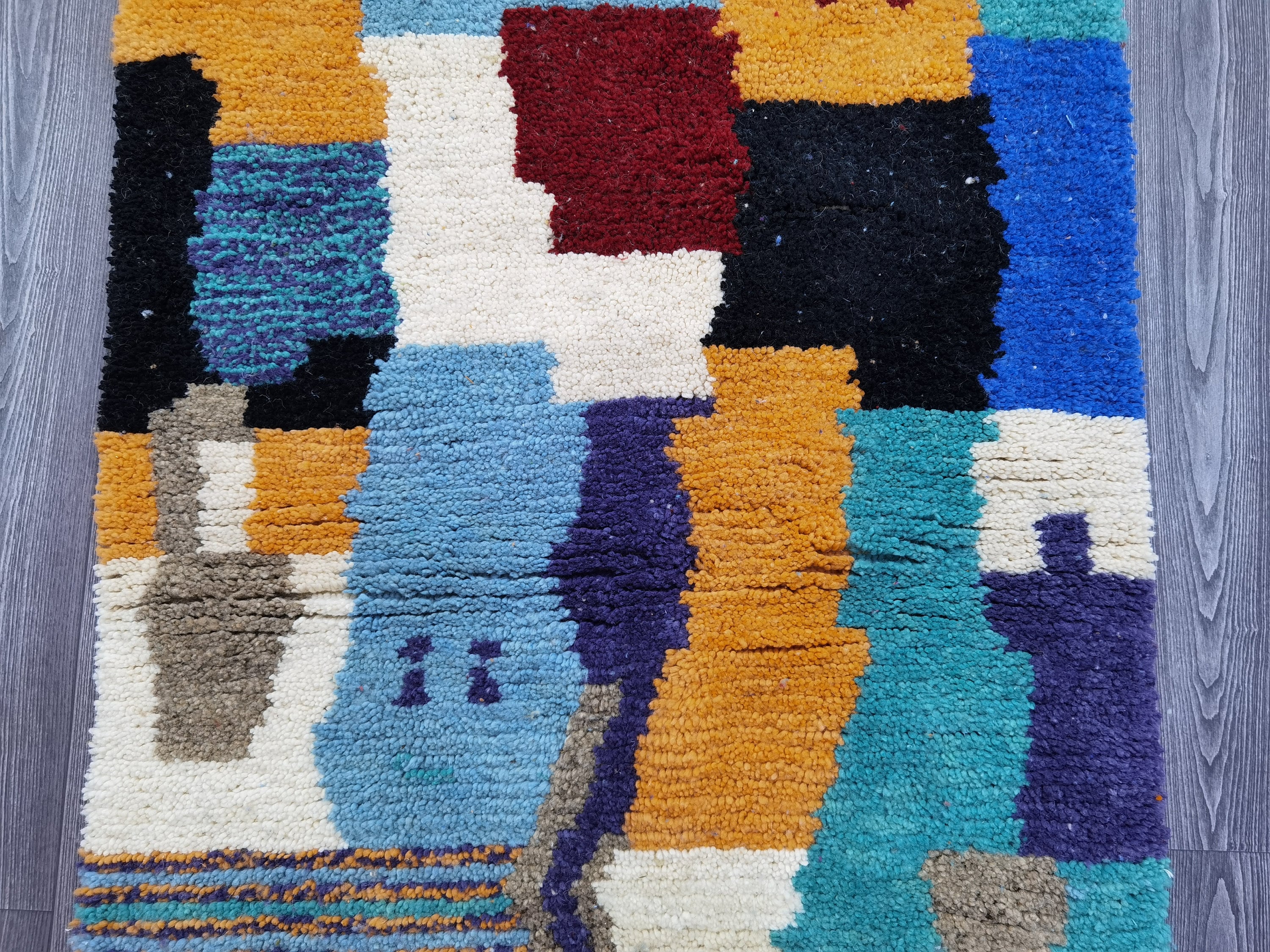 Abstract Rug, Handmade Area Rug, Handwoven Rug, Berber Rug, Wool Rug, Azilal Berber Rug , Multicolored Runner Rug, New Beni Ouarain Rug