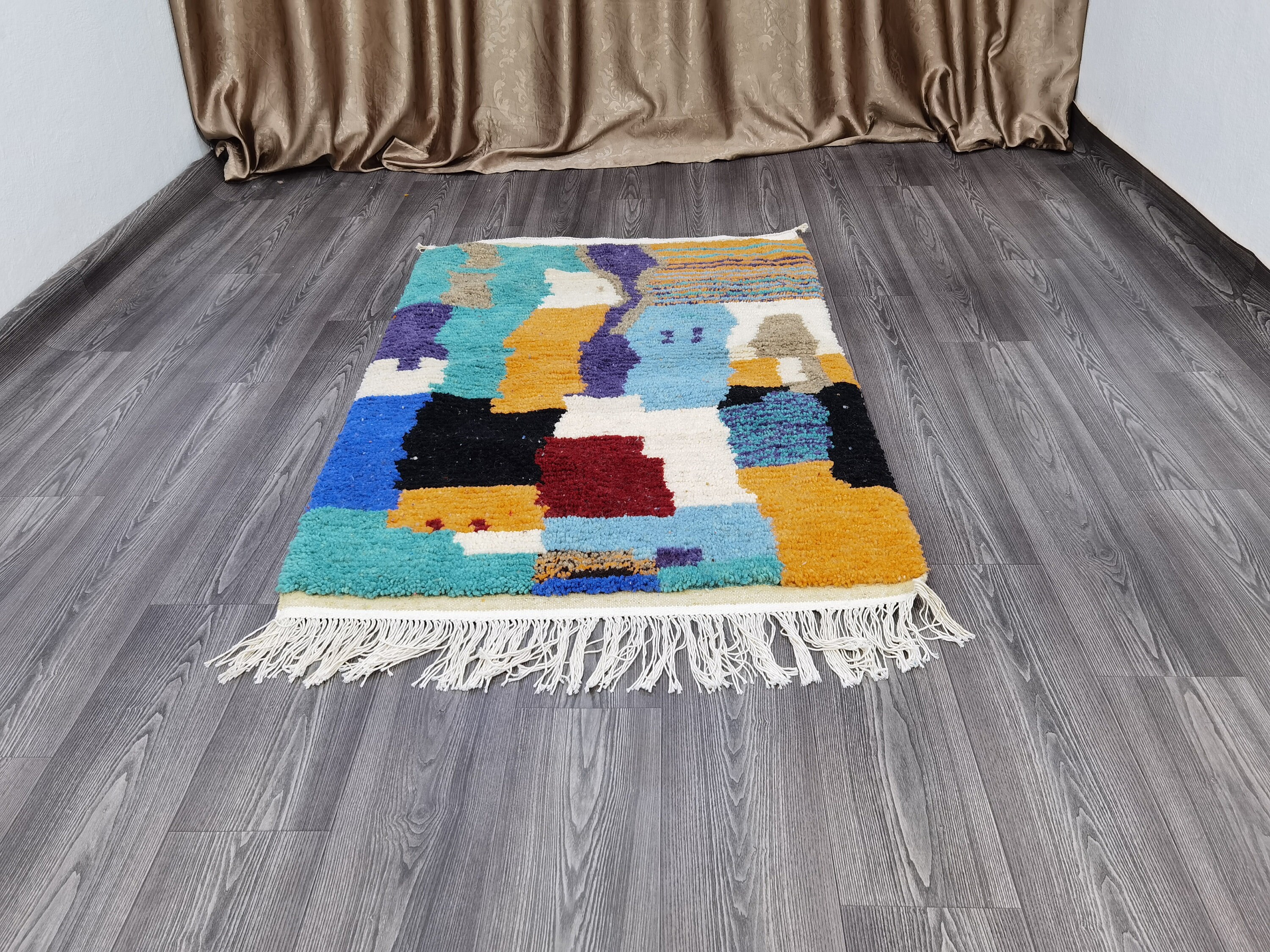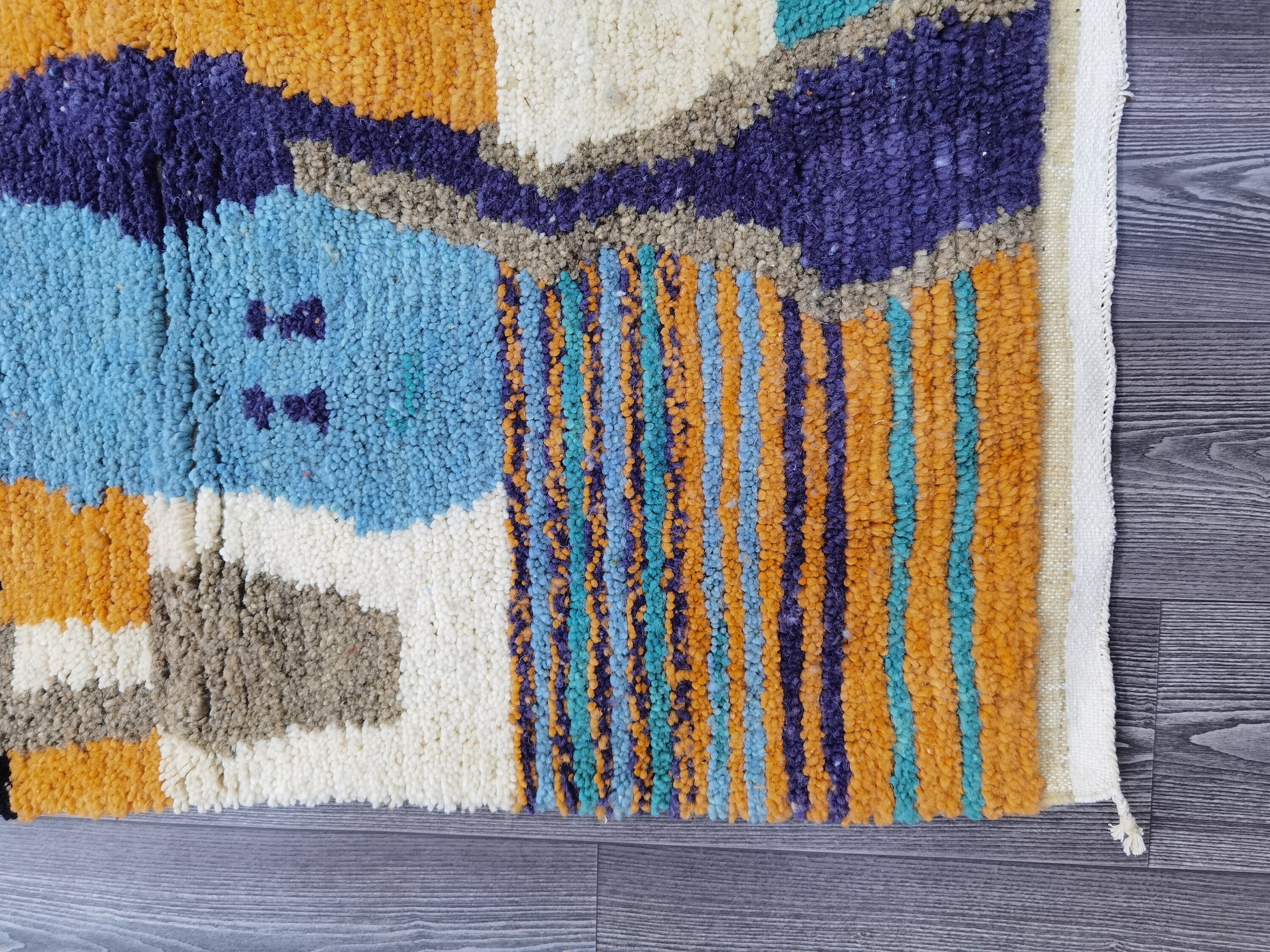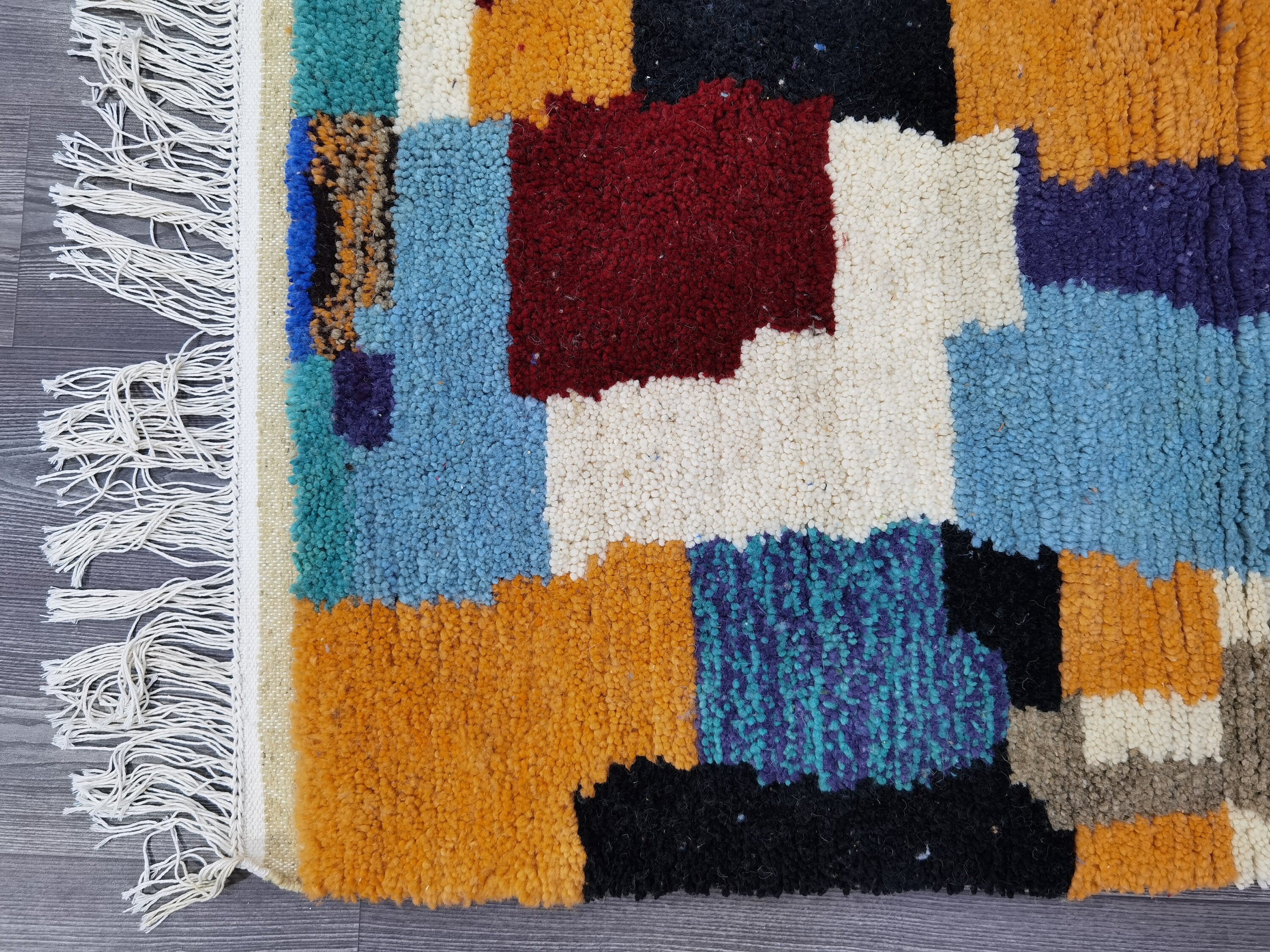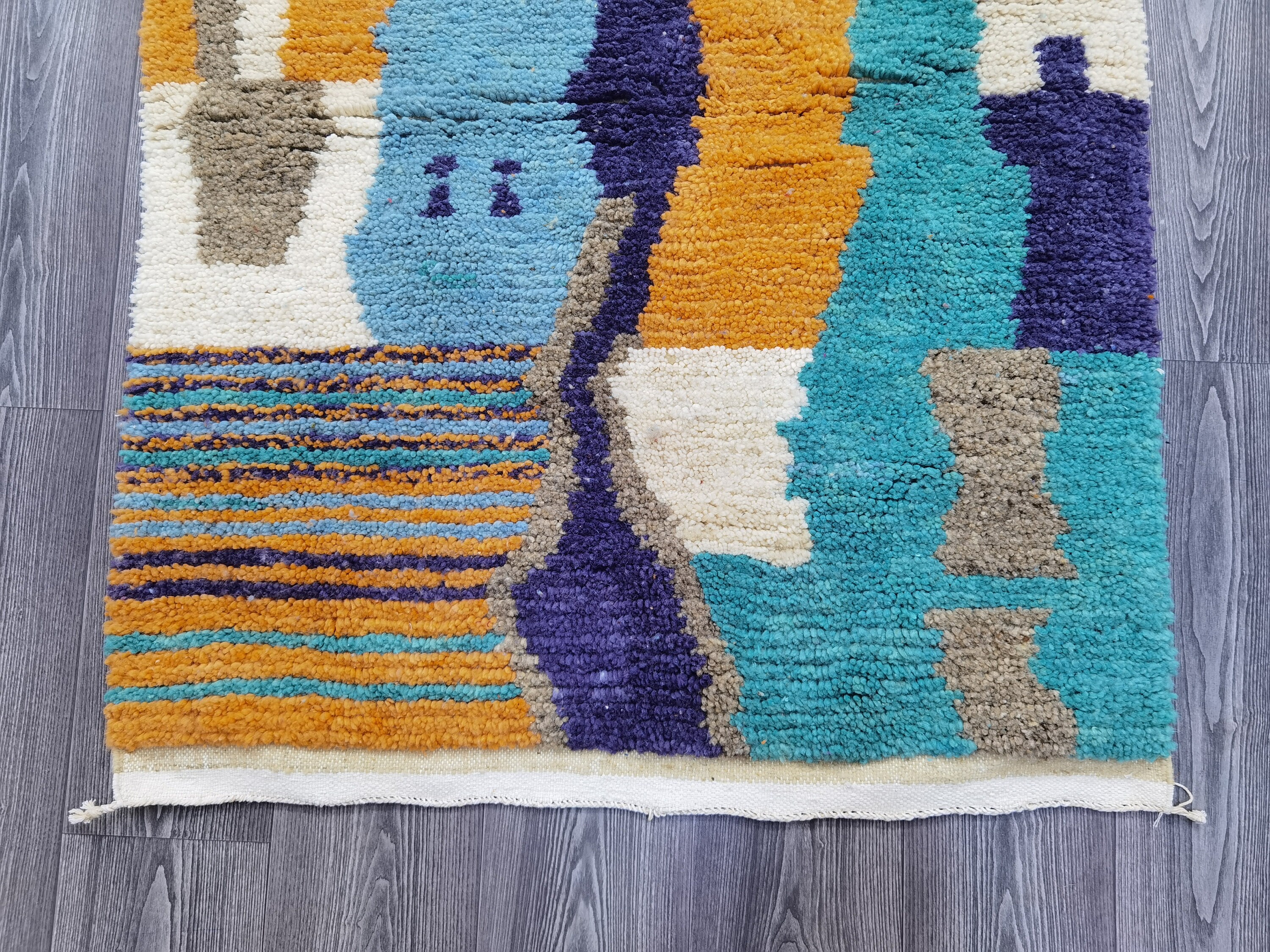 Abstract Rug, Handmade Area Rug, Handwoven Rug, Berber Rug, Wool Rug, Azilal Berber Rug , Multicolored Runner Rug, New Beni Ouarain Rug