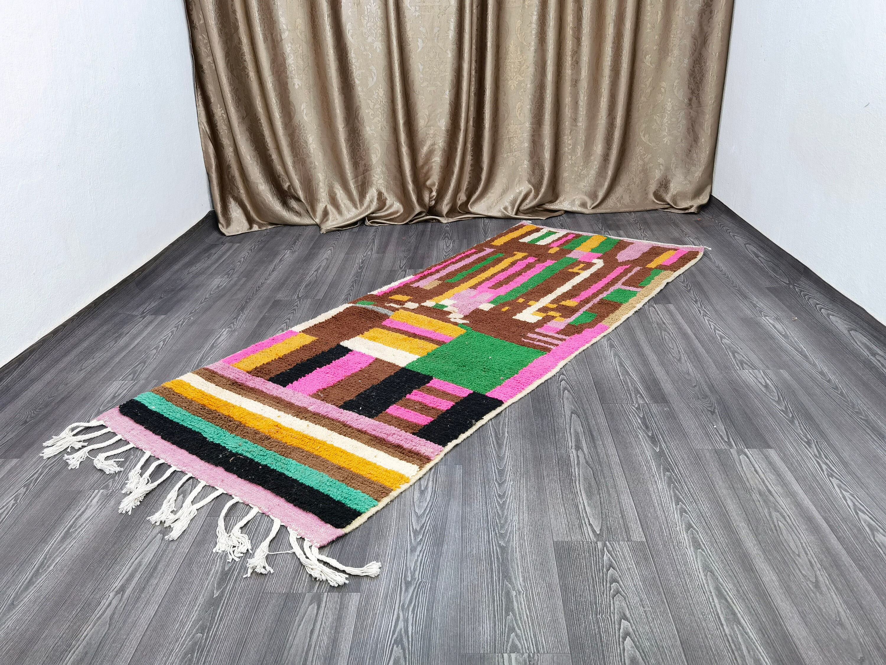 Boujaad Moroccan Runner Rug, Berber Runner Carpet, Custom Rugs For Living Room, Soft Area Rug, Authentic Abstract Runner Rug, Sheep Wool Rug