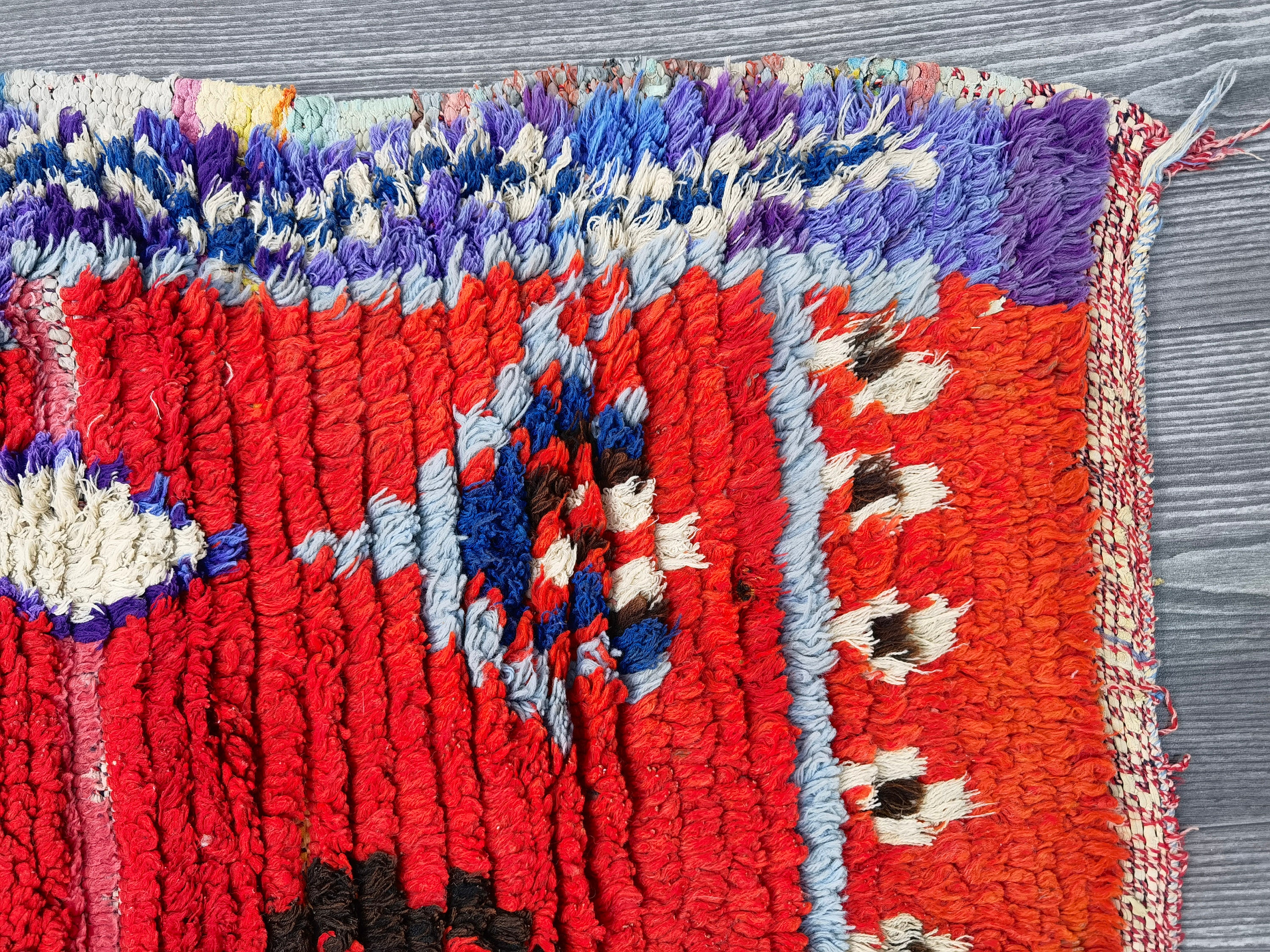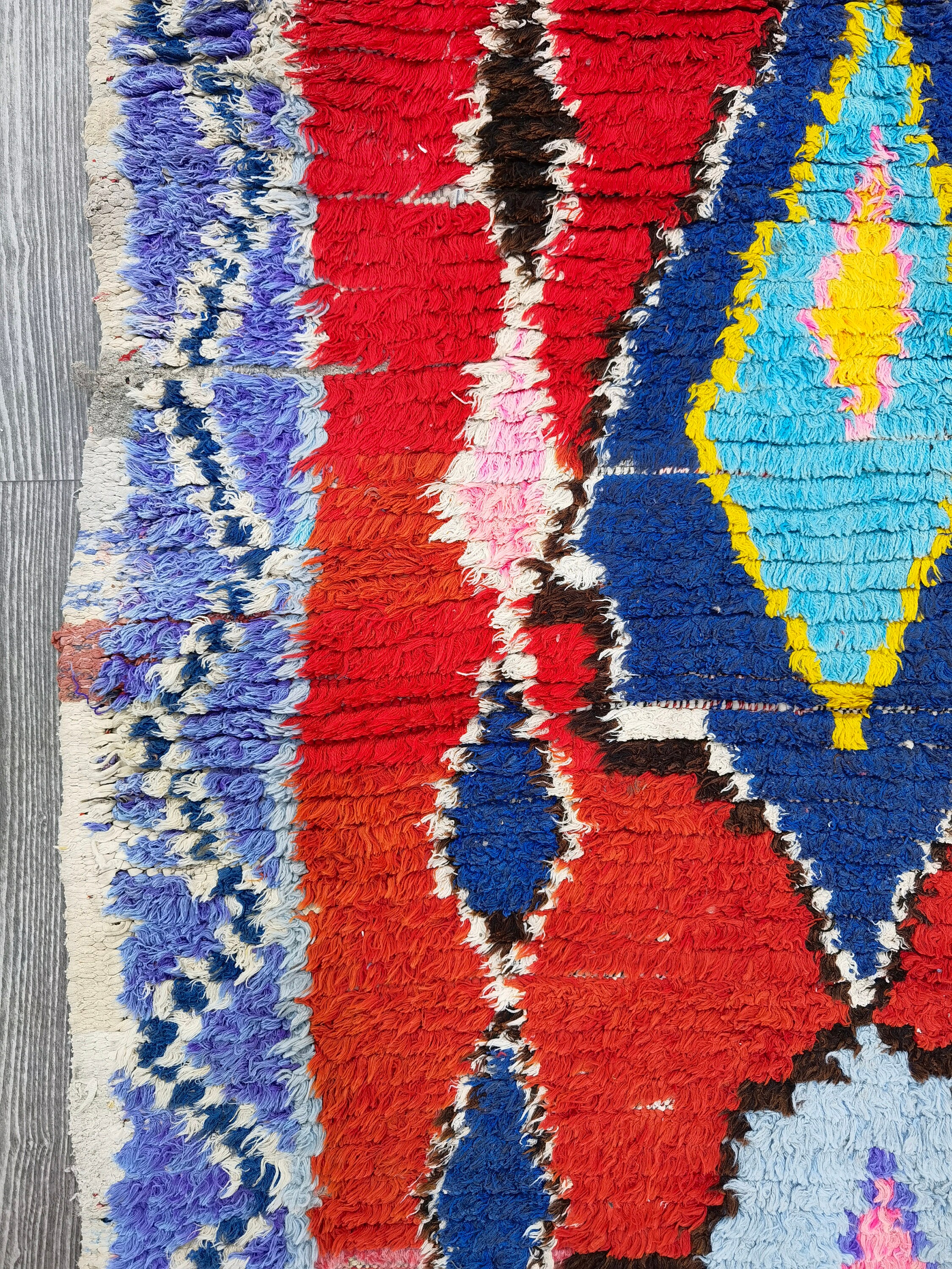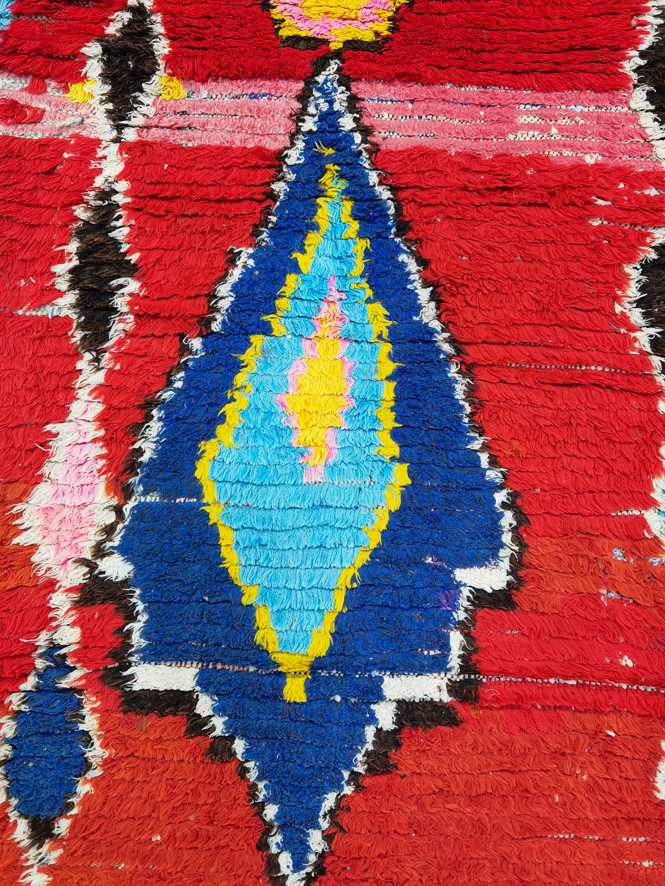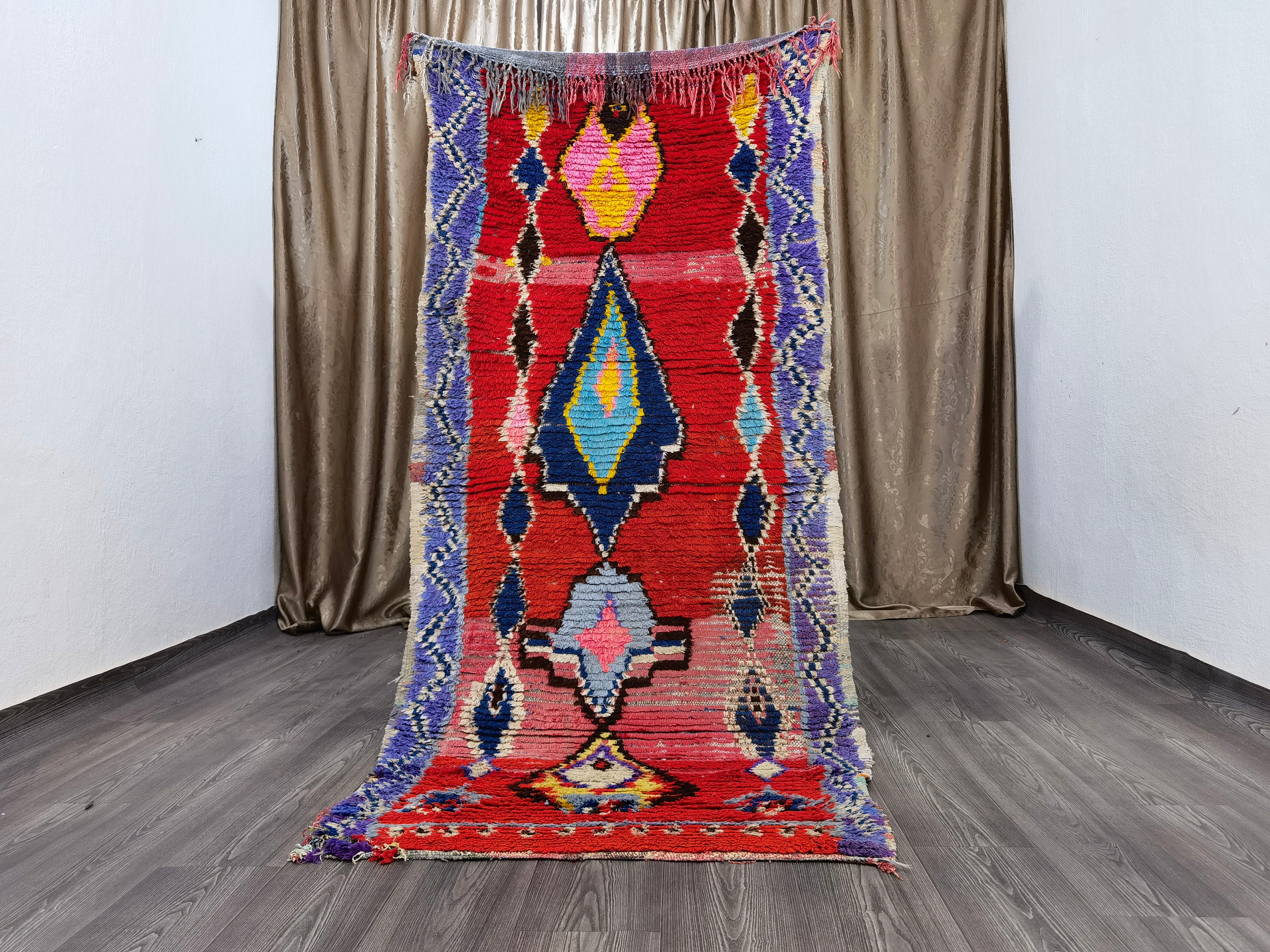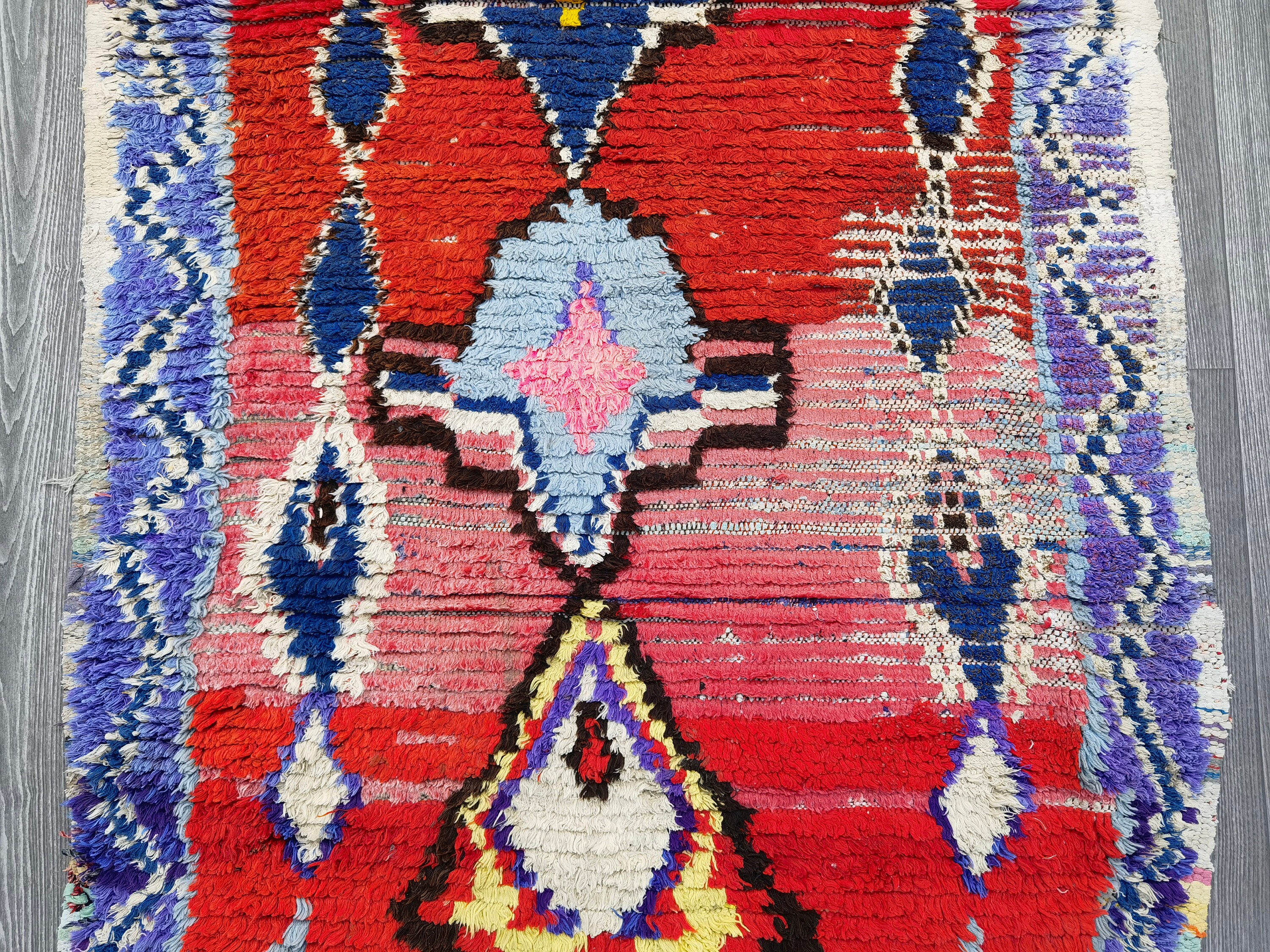 This Moroccan Rug Vintage is a unique and colorful addition to any living space. Measuring 3x7 ft, this rug is the perfect size for a hallway, entryway, or as a runner for your living room. The vintage Berber design is inspired by traditional Moroccan weaving techniques and features a beautiful array of abstract patterns in bold and vibrant colors.