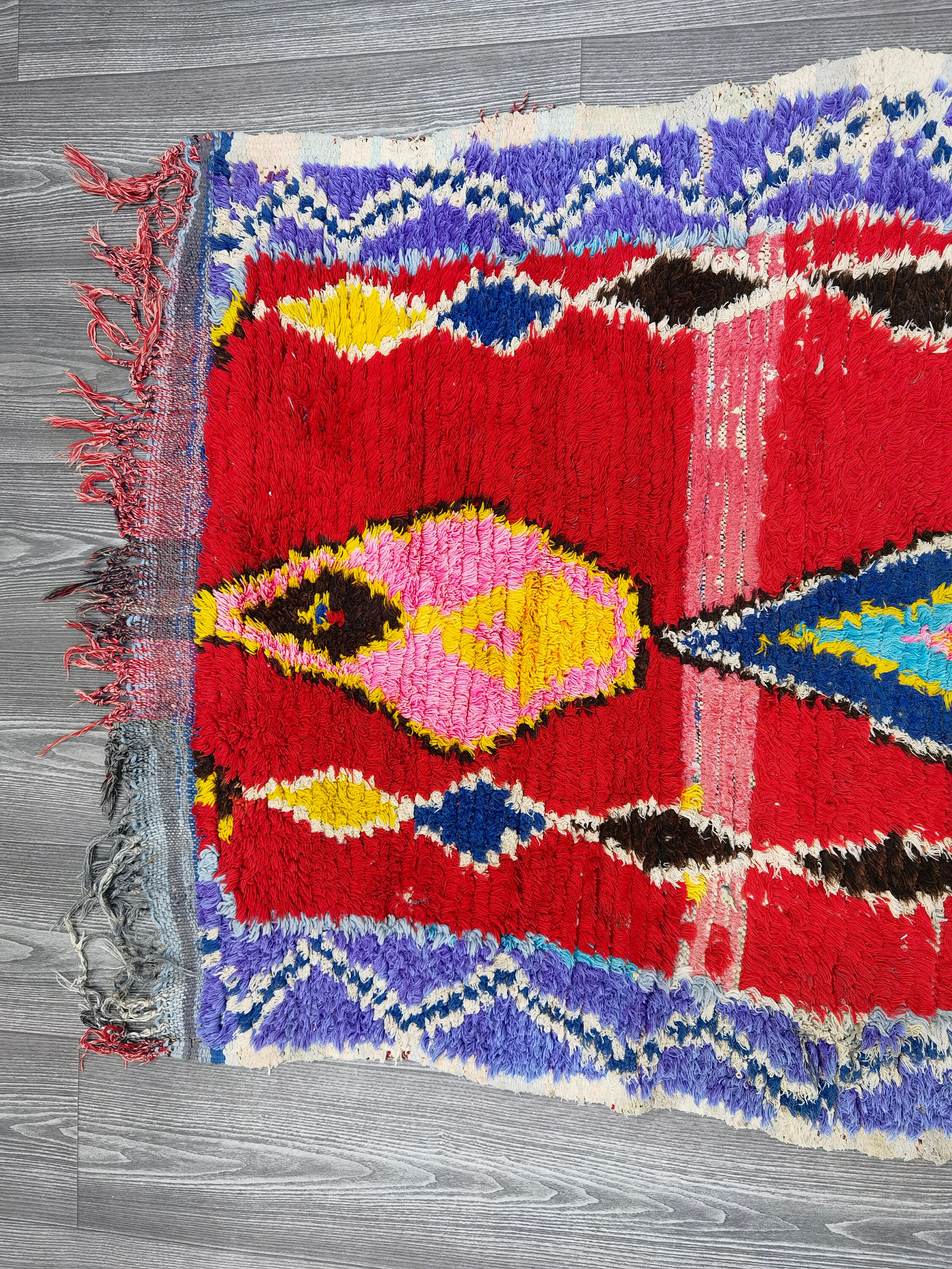 This Moroccan Area Rug is a vintage piece, meaning that it has been pre-owned and has some signs of wear and tear, adding to its unique character and charm. Its vintage condition gives it a one-of-a-kind quality that cannot be replicated, making it a true collector's item.