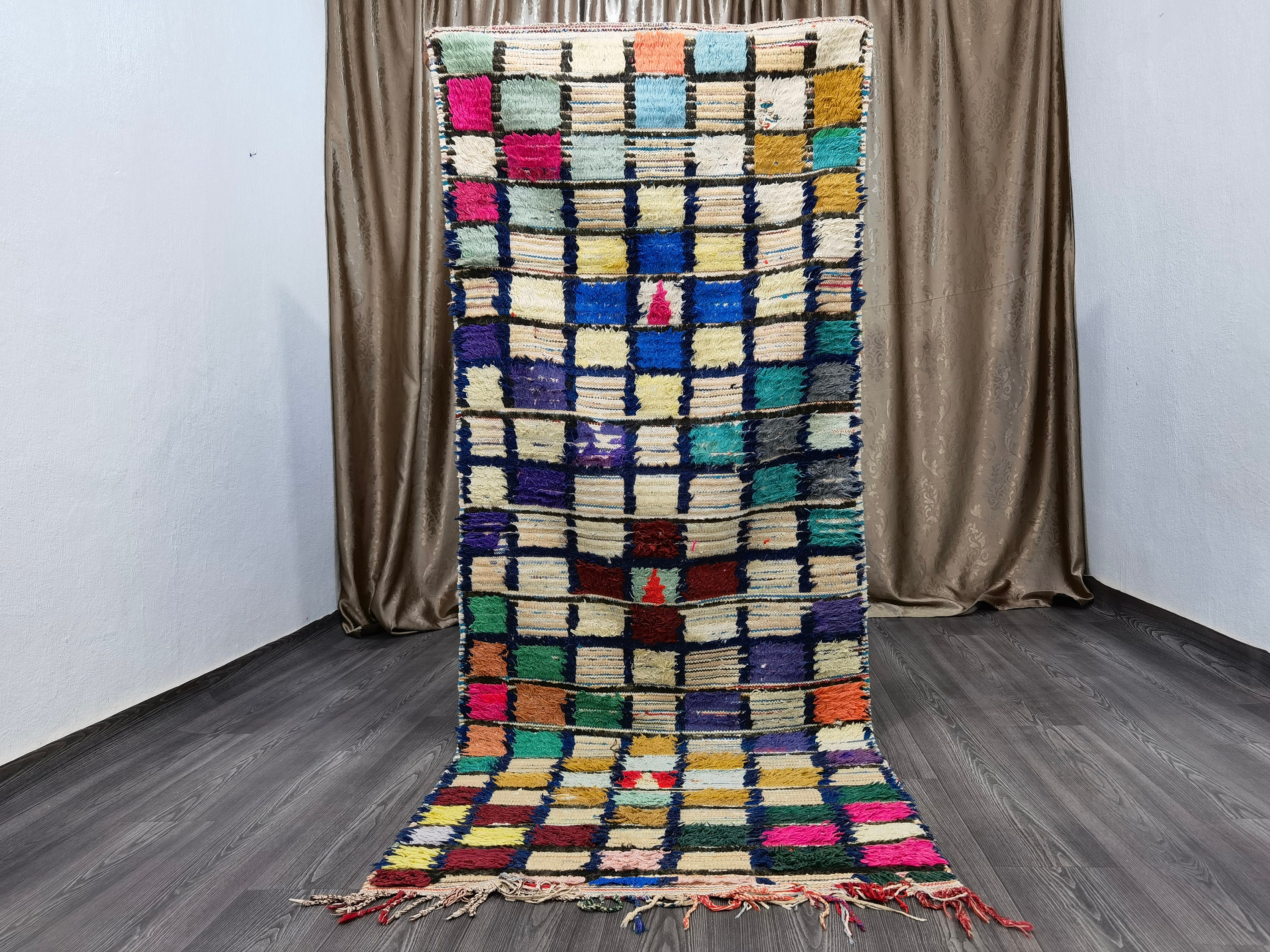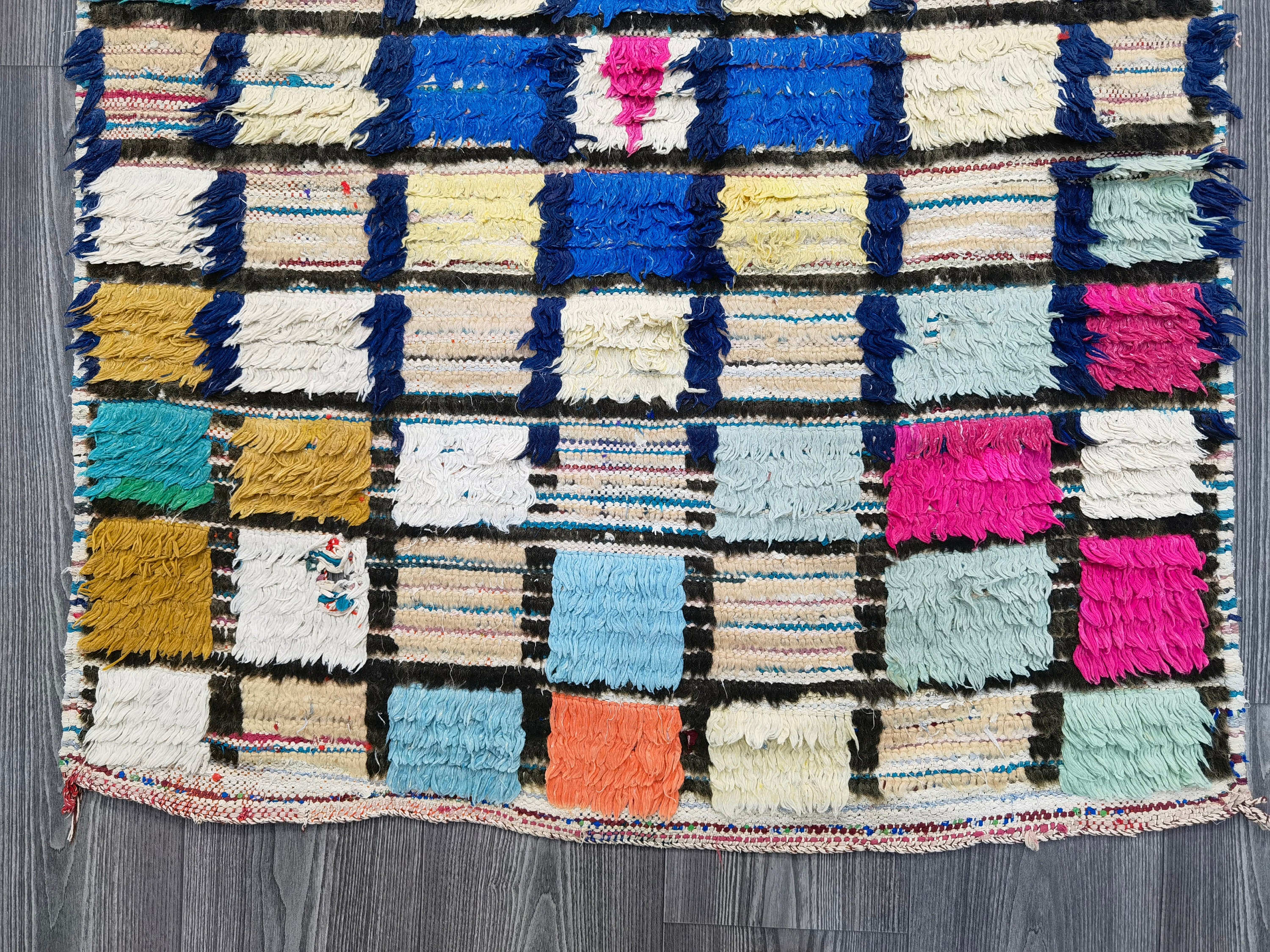 Shaggy Azilal Area Rug, Floor Handmade Rug Blue, Rug For Bedroom Aesthetic, Berber Runner Vintage, Berber Bohemian Rug , Berber Carpet