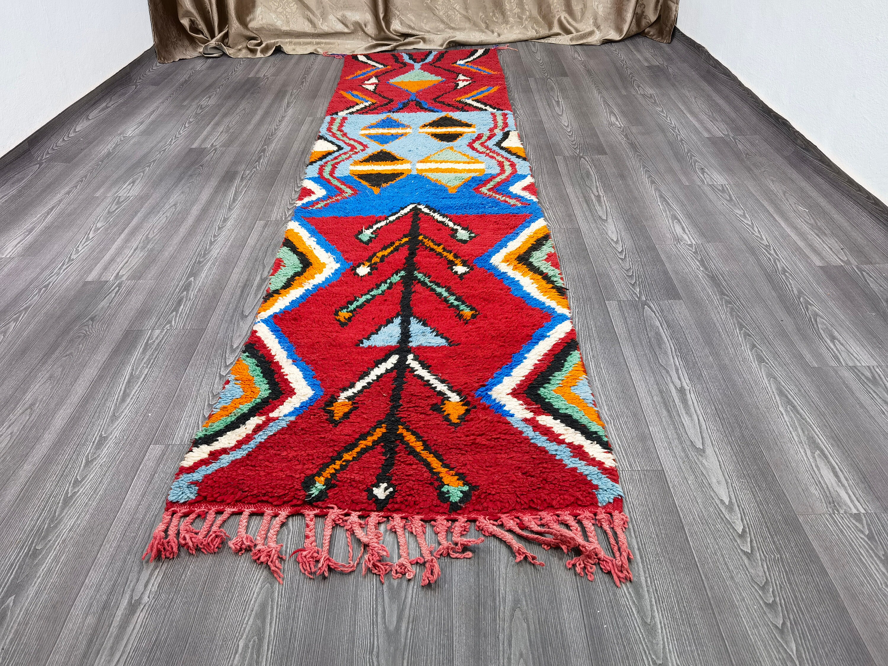 Boujaad Moroccan Runner Rug - Custom Rugs For Living Room -Soft Area Rug - Midcentury Modern Decor - Morrocan Rugs Bohemian - Red Runner Rug